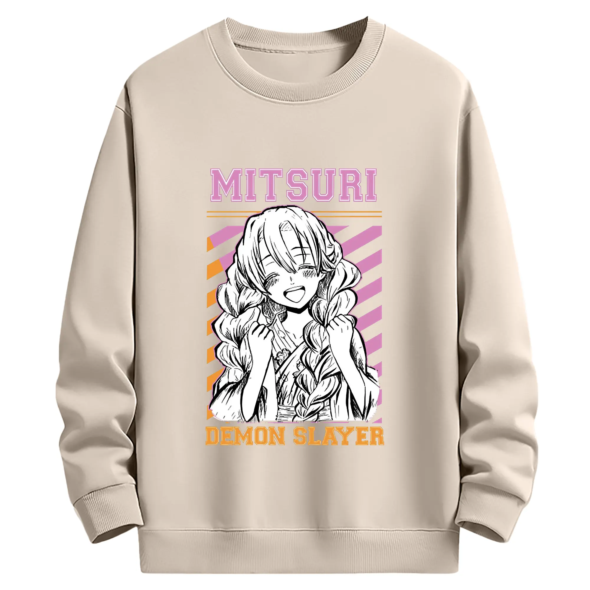 鬼滅の刃 甘露寺蜜璃 - 高品質 クルーネック スウェット ・ コットン59% ポリエステル41% ・ ユニセックス 長袖 トレーナー ・ カジュアル デイリー スポーツ 散歩用