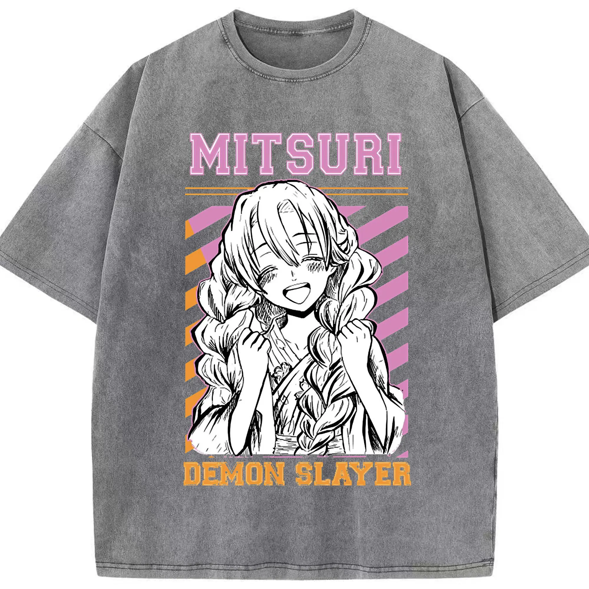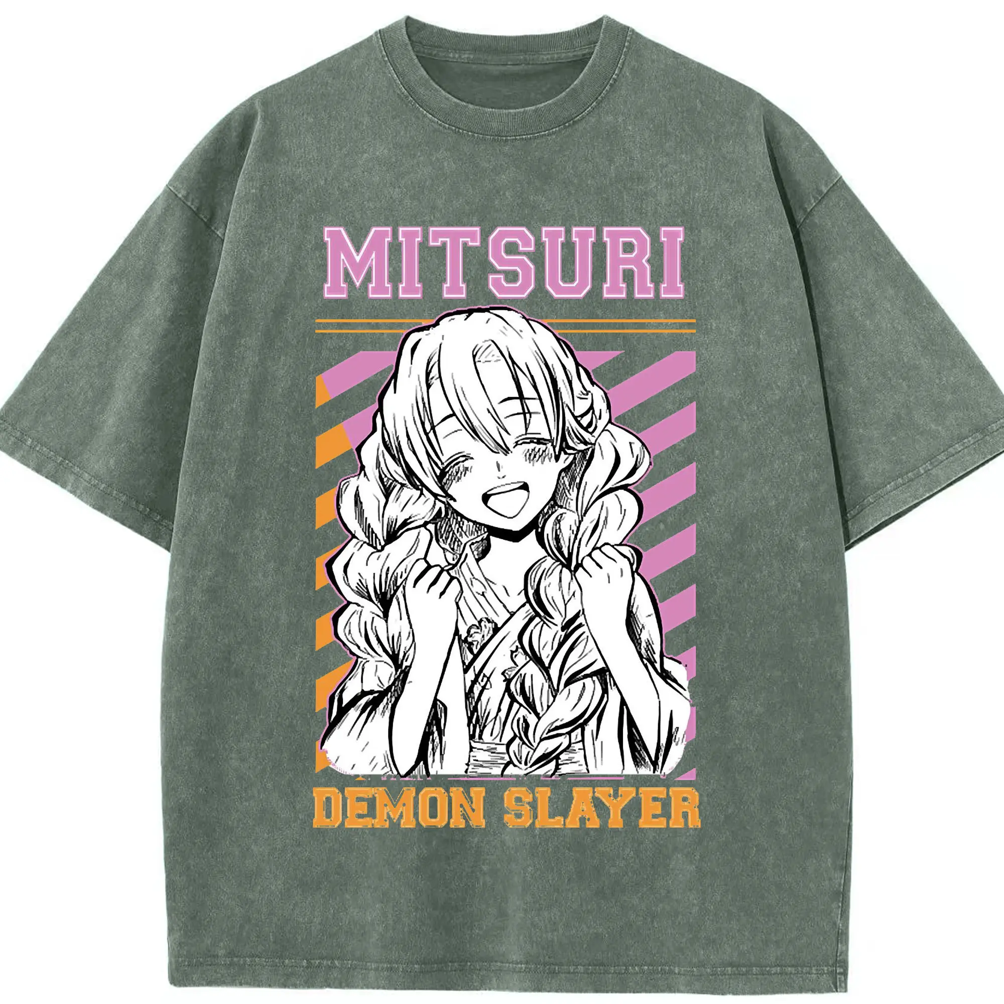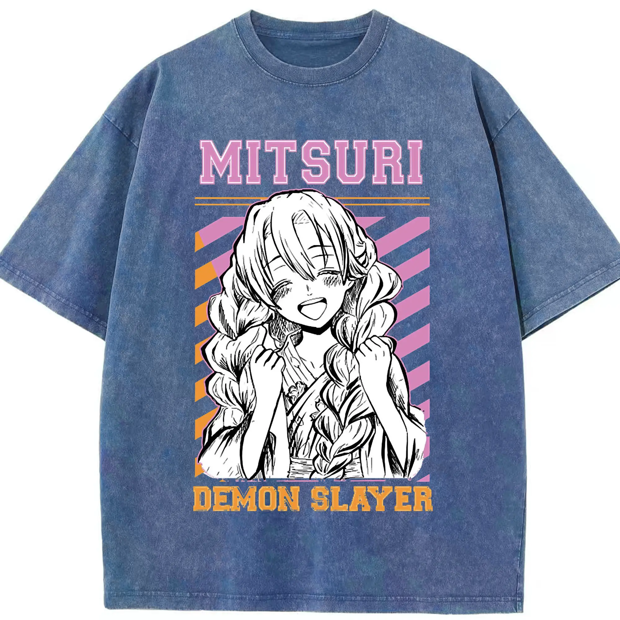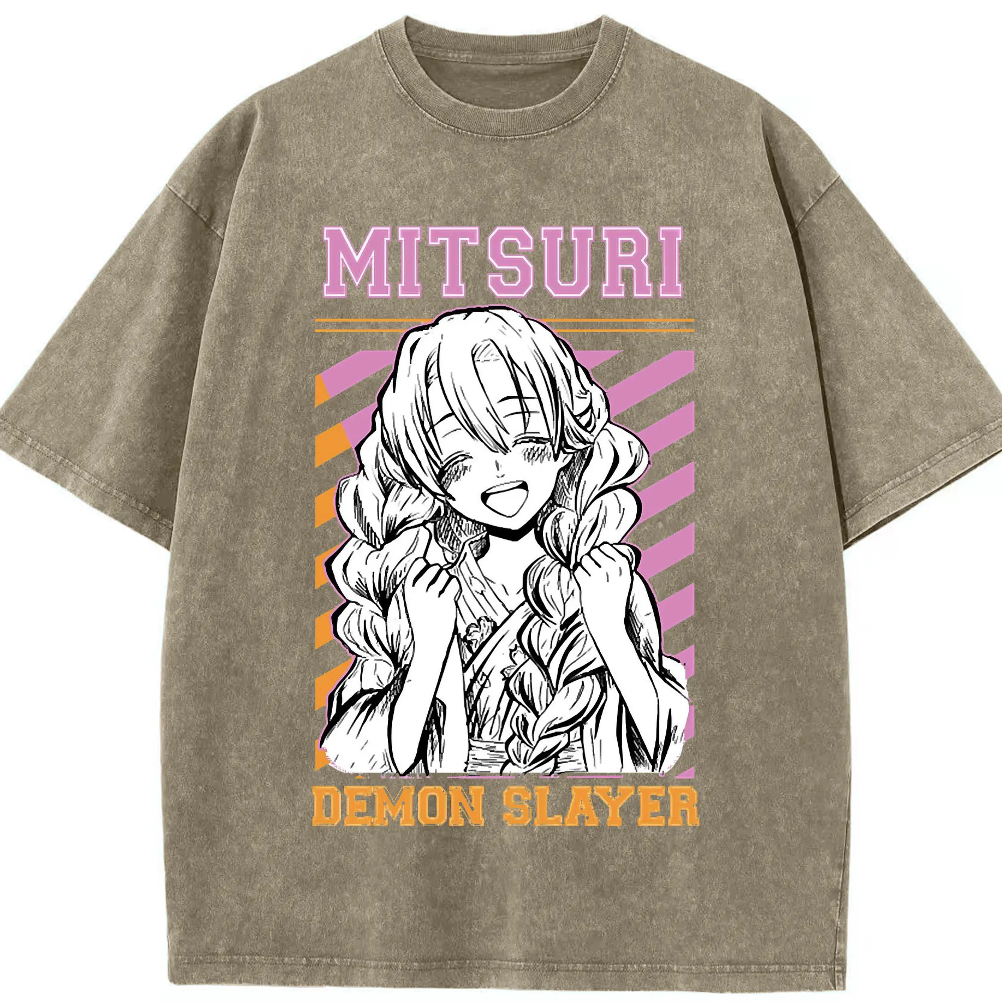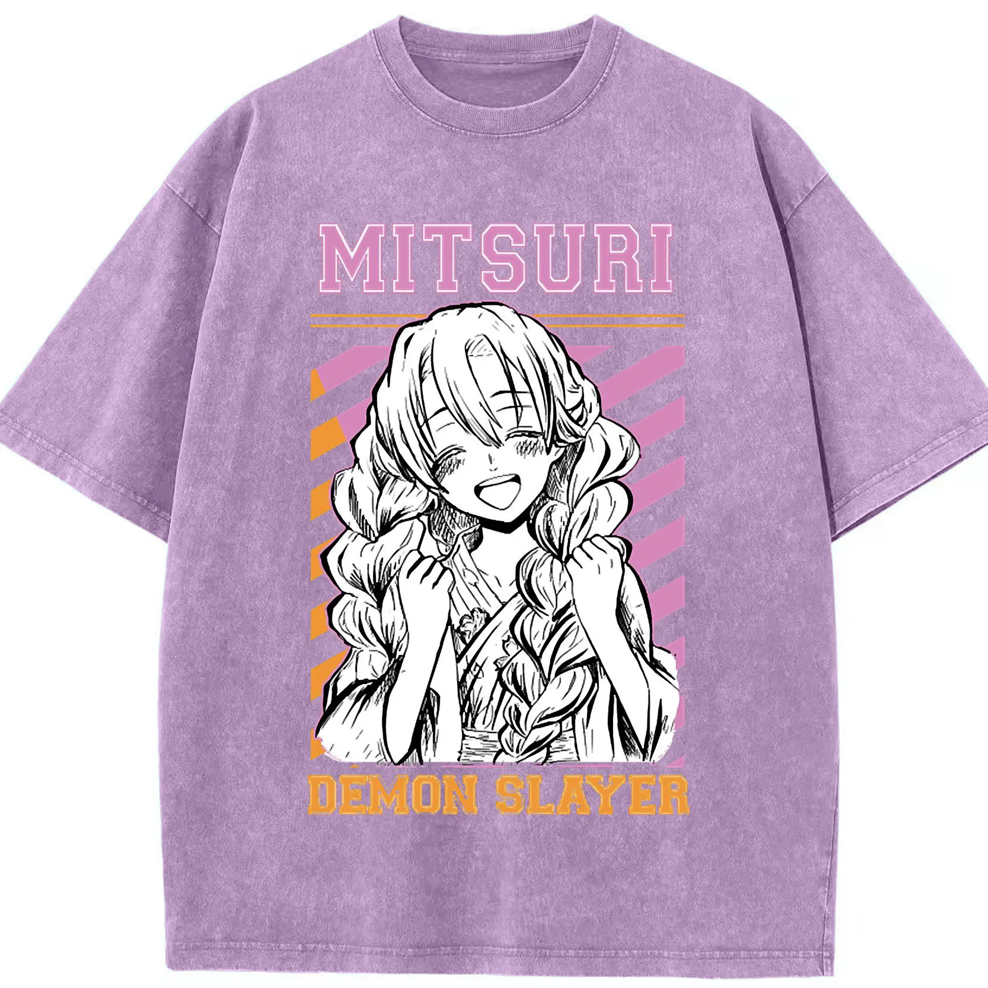 鬼滅の刃 甘露寺蜜璃 - 綿100% ヴィンテージ風 半袖Tシャツ ・ フロントプリント ・ 柔らか肌触り ・ 通気性 快適 ・ スポーツ カジュアル 外出用