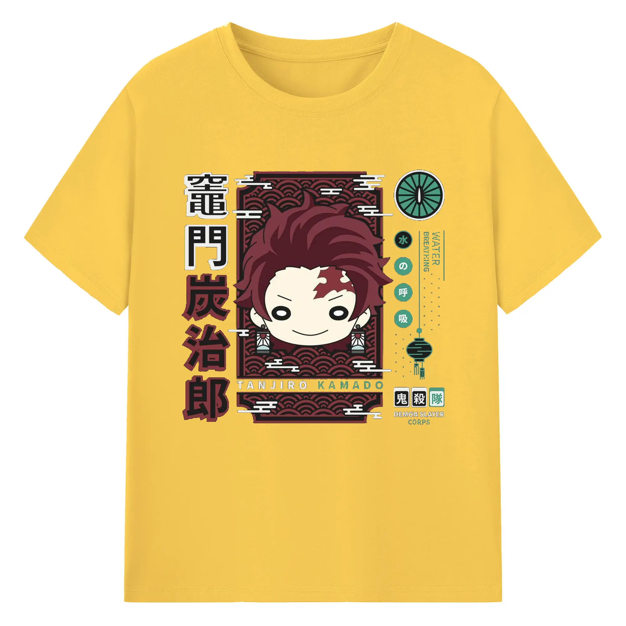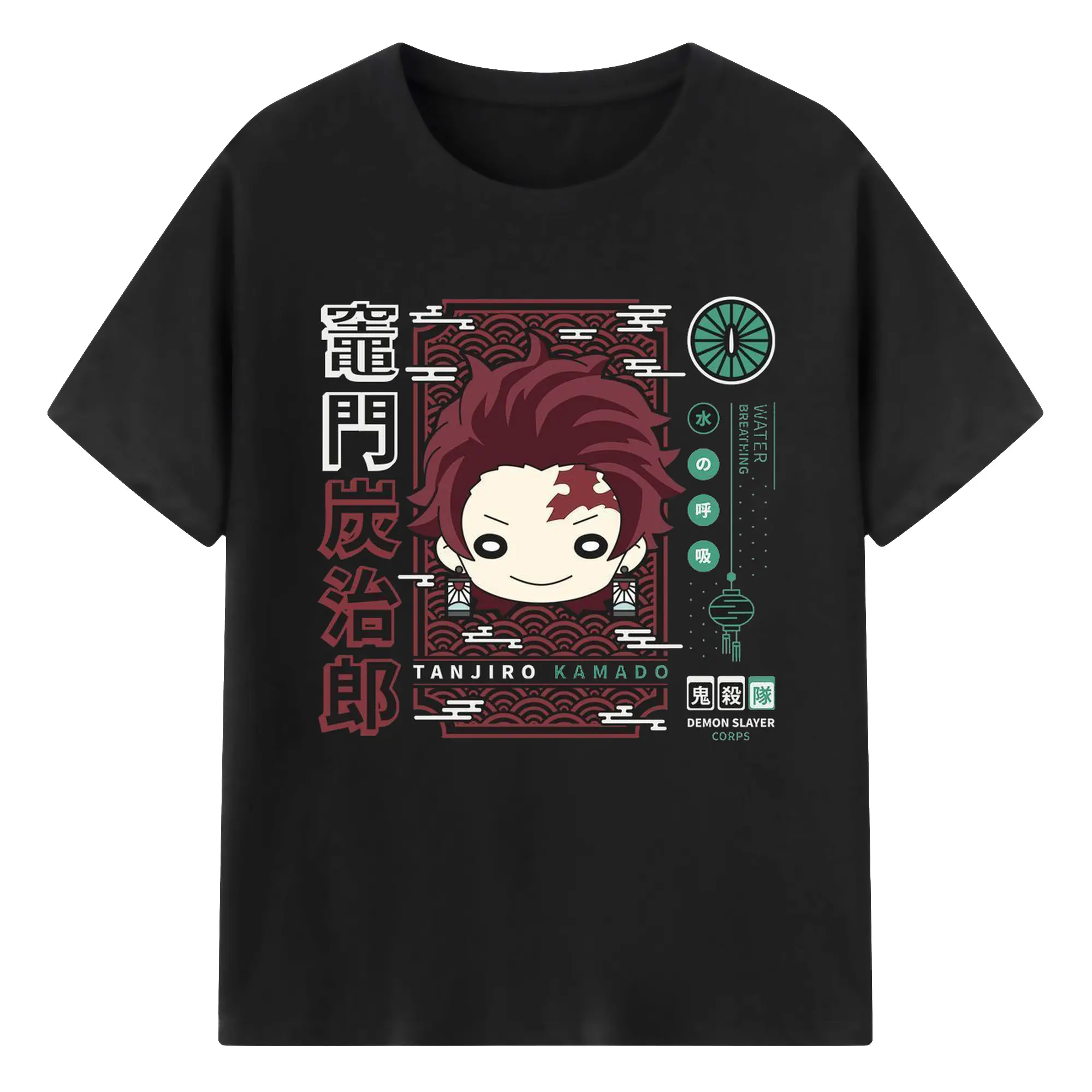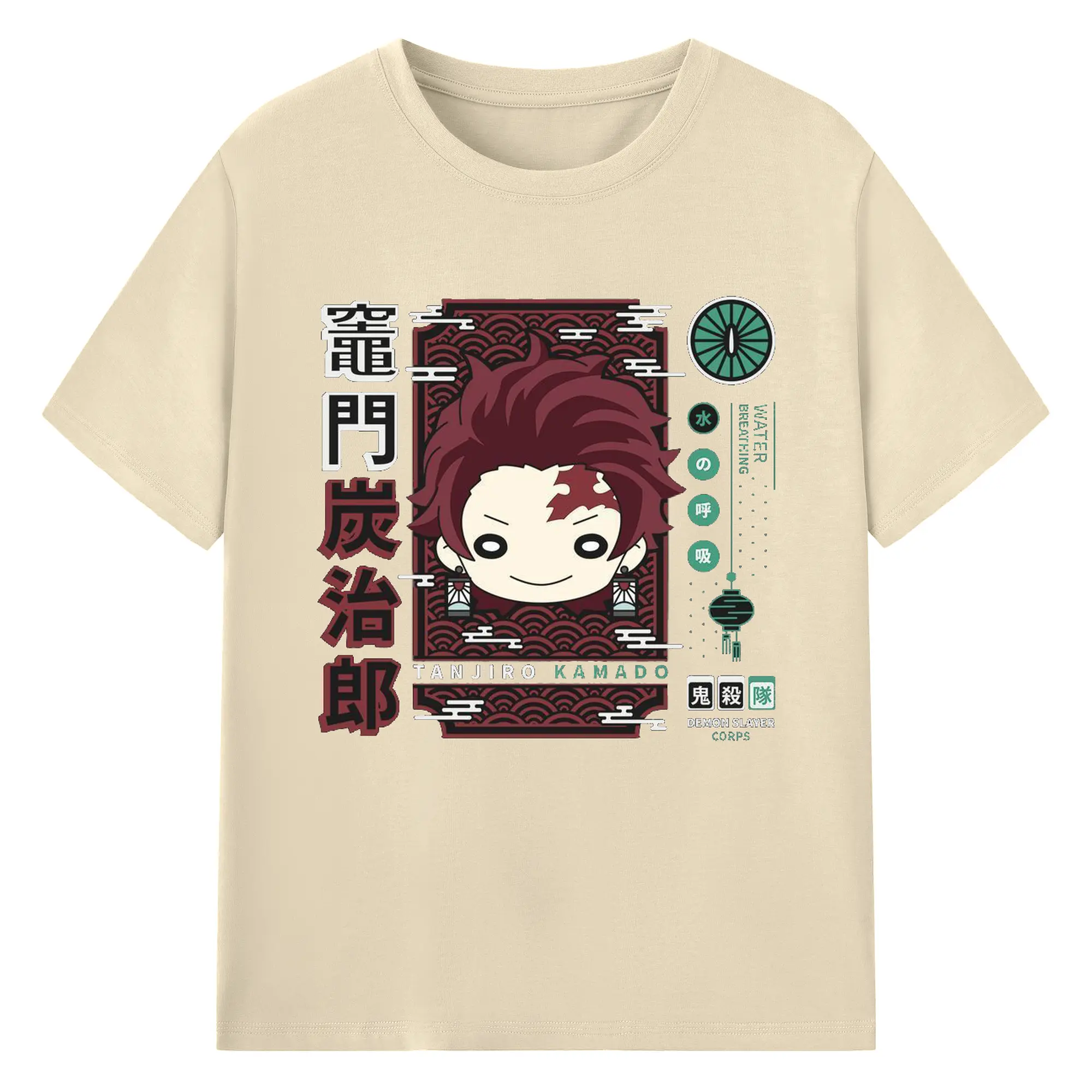 鬼滅の刃 竈門炭治郎 - 綿100% 半袖Tシャツ ・ フロントプリント ・ 快適 通気性 ・ 日常使い 散歩 スポーツ用