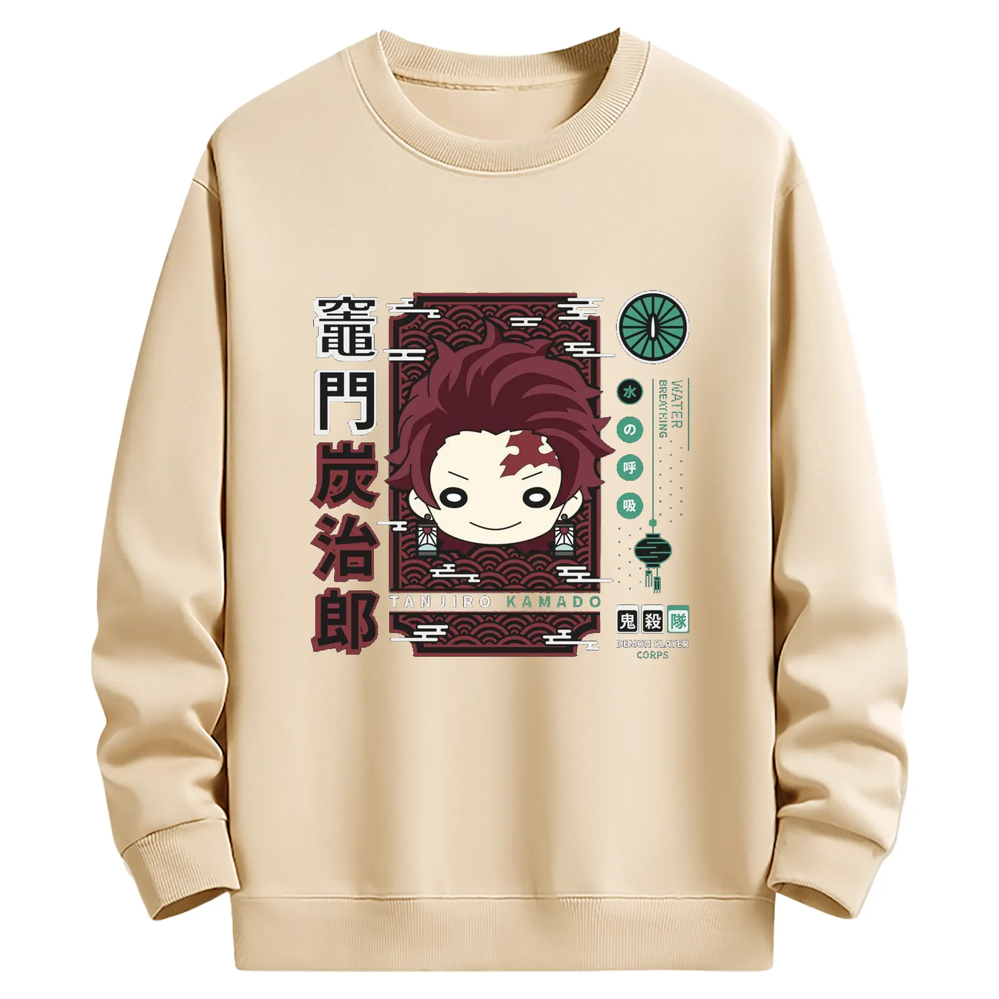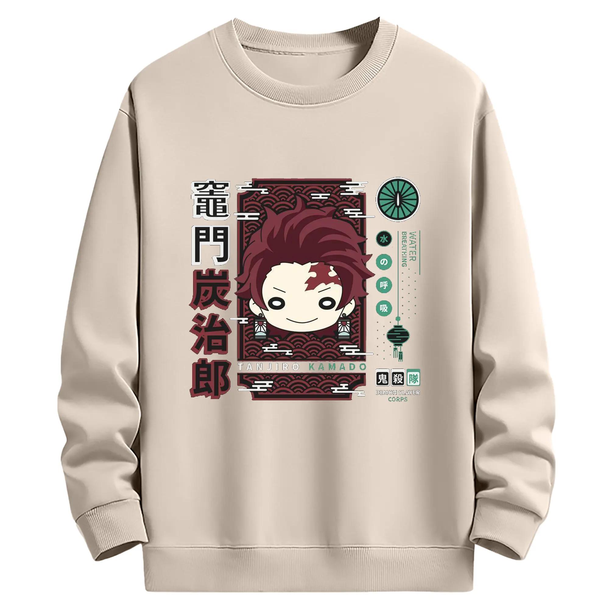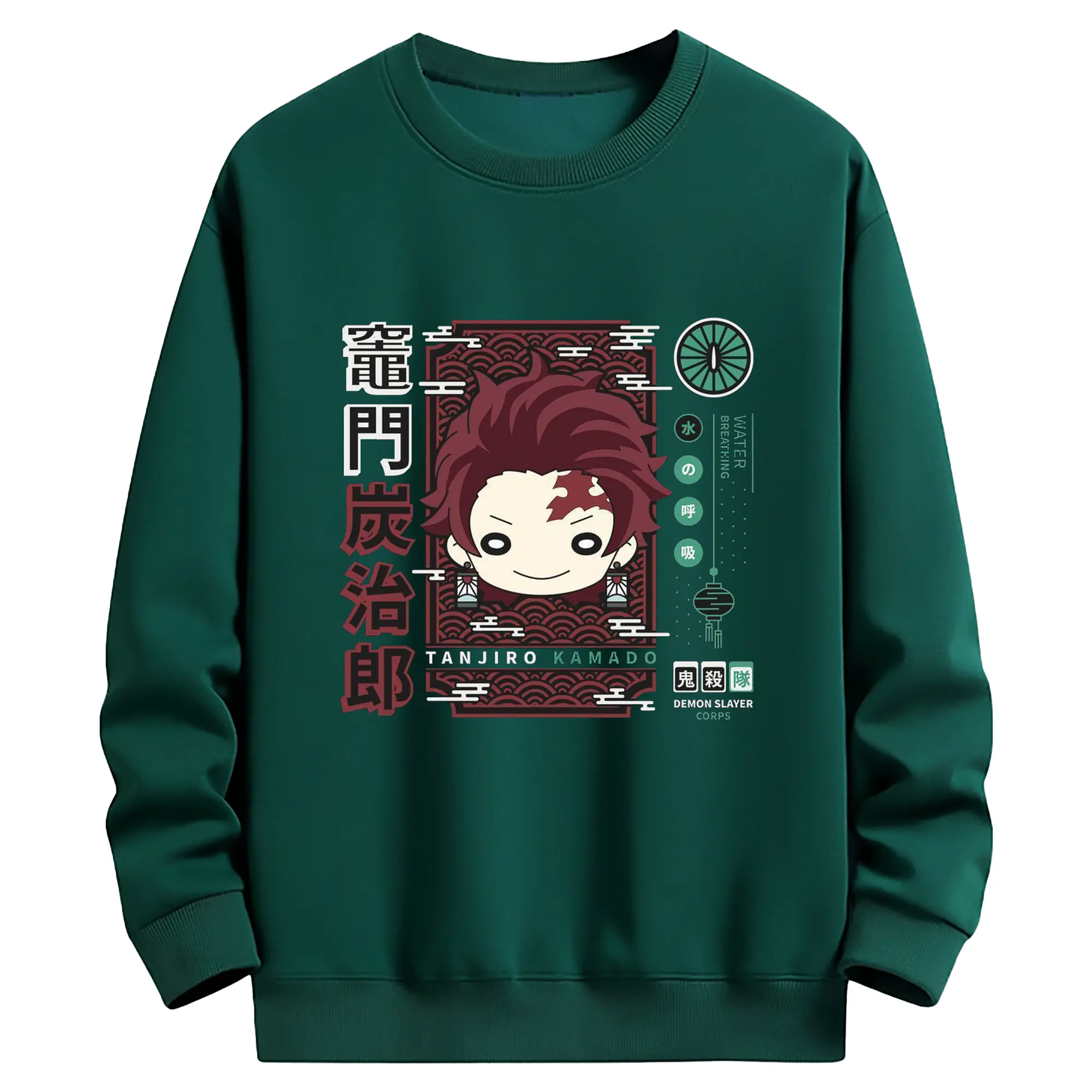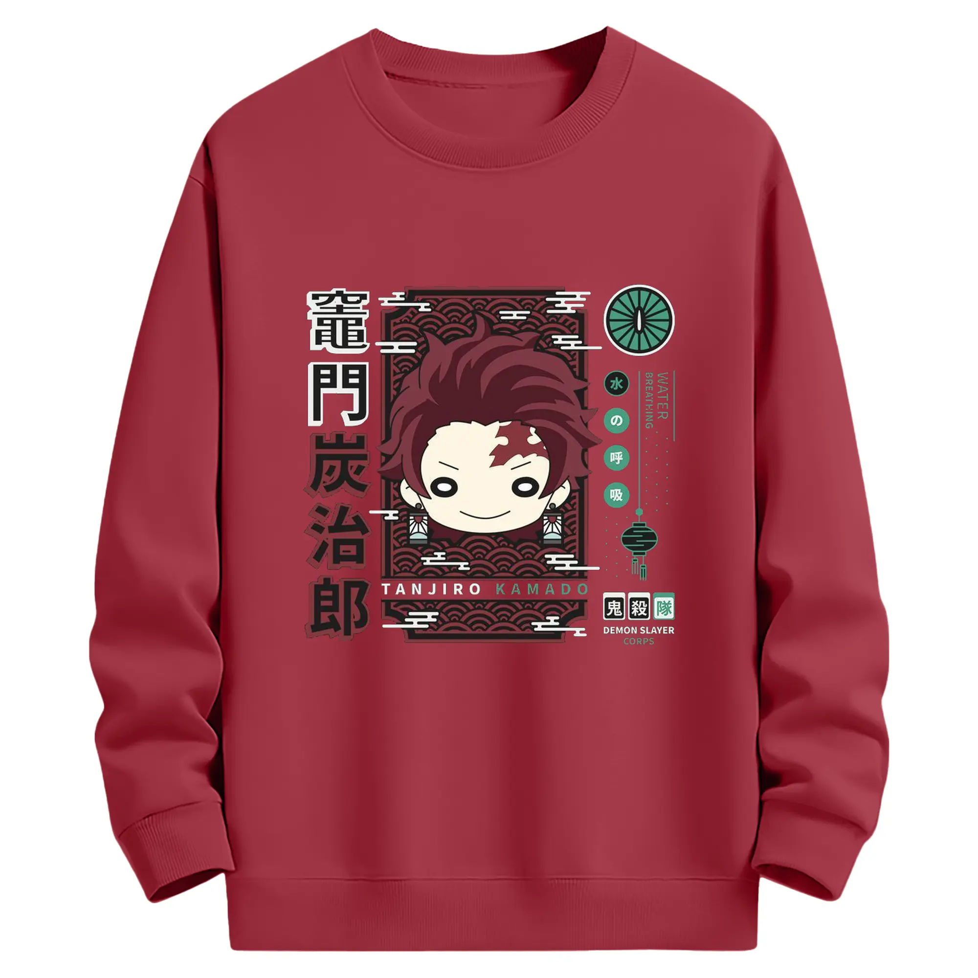 鬼滅の刃 竈門炭治郎 - 高品質 クルーネック スウェット ・ コットン59% ポリエステル41% ・ ユニセックス 長袖 トレーナー ・ カジュアル デイリー スポーツ 散歩用