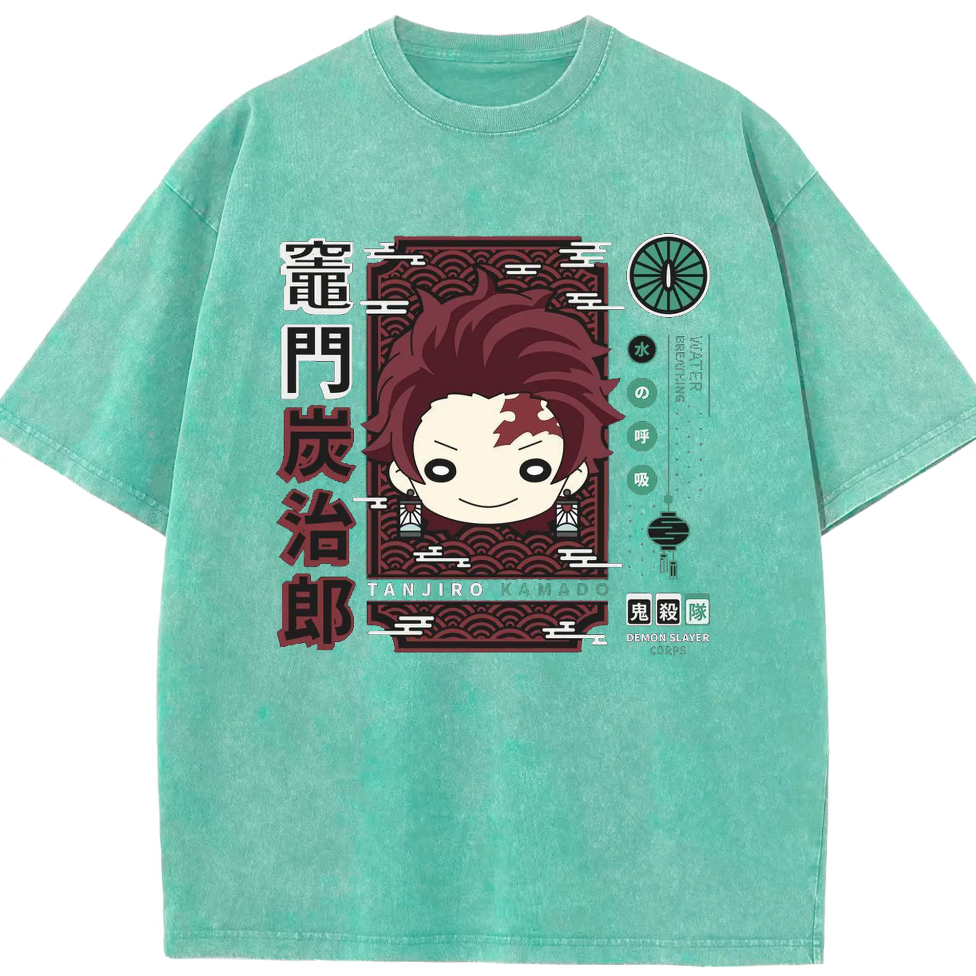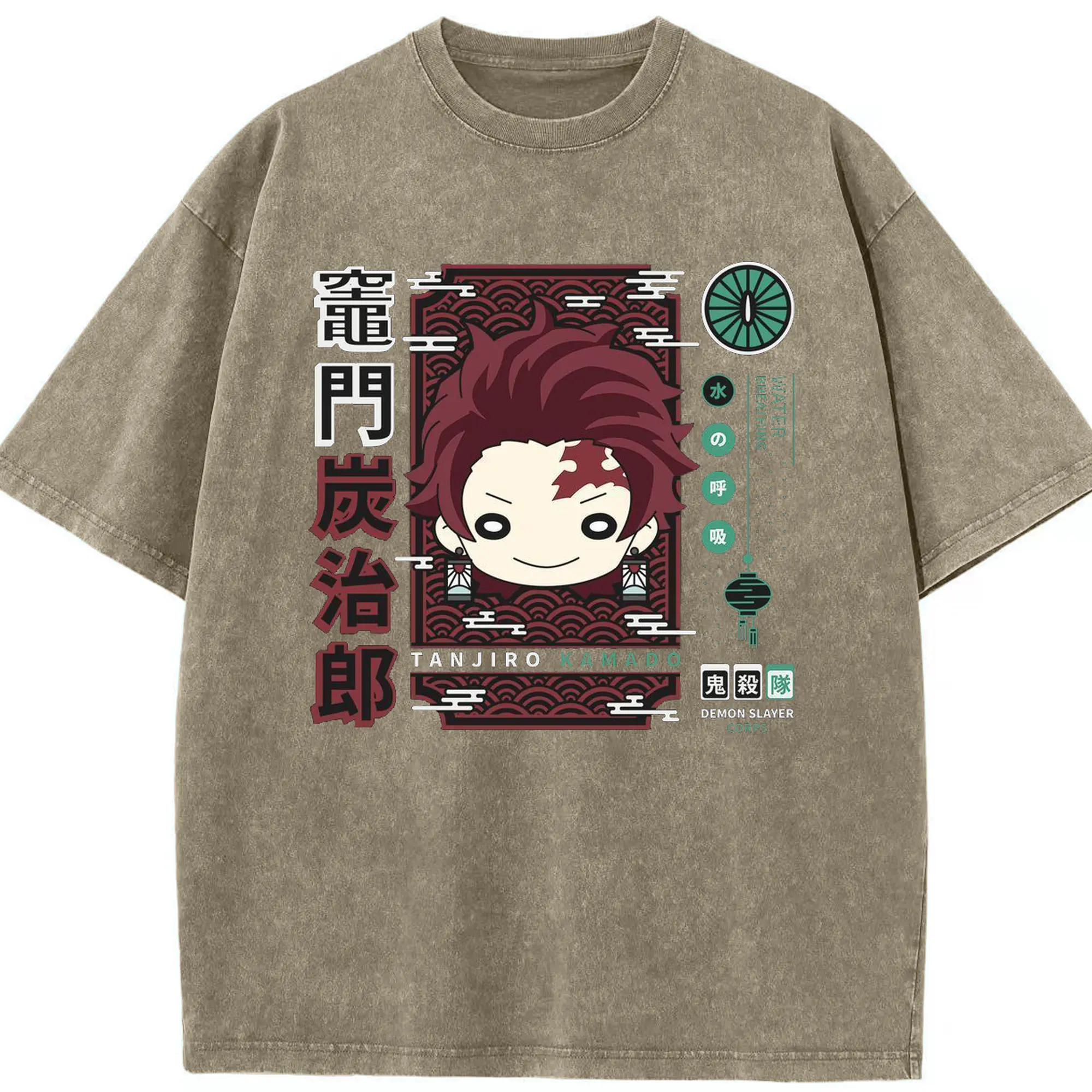 鬼滅の刃 竈門炭治郎 - 綿100% ヴィンテージ風 半袖Tシャツ ・ フロントプリント ・ 柔らか肌触り ・ 通気性 快適 ・ スポーツ カジュアル 外出用