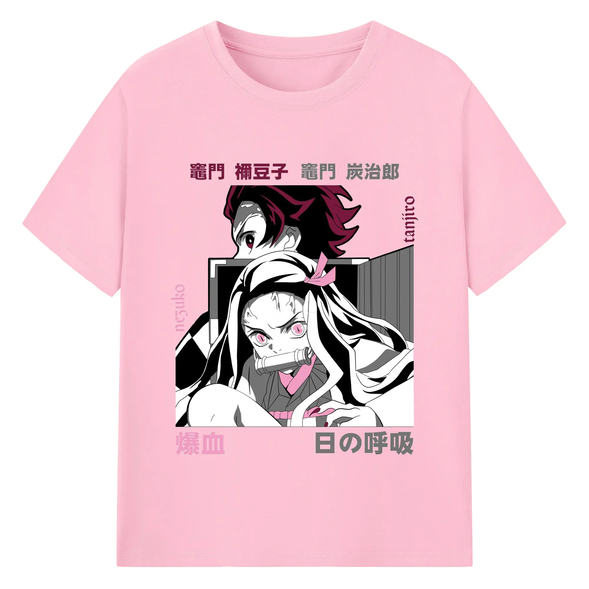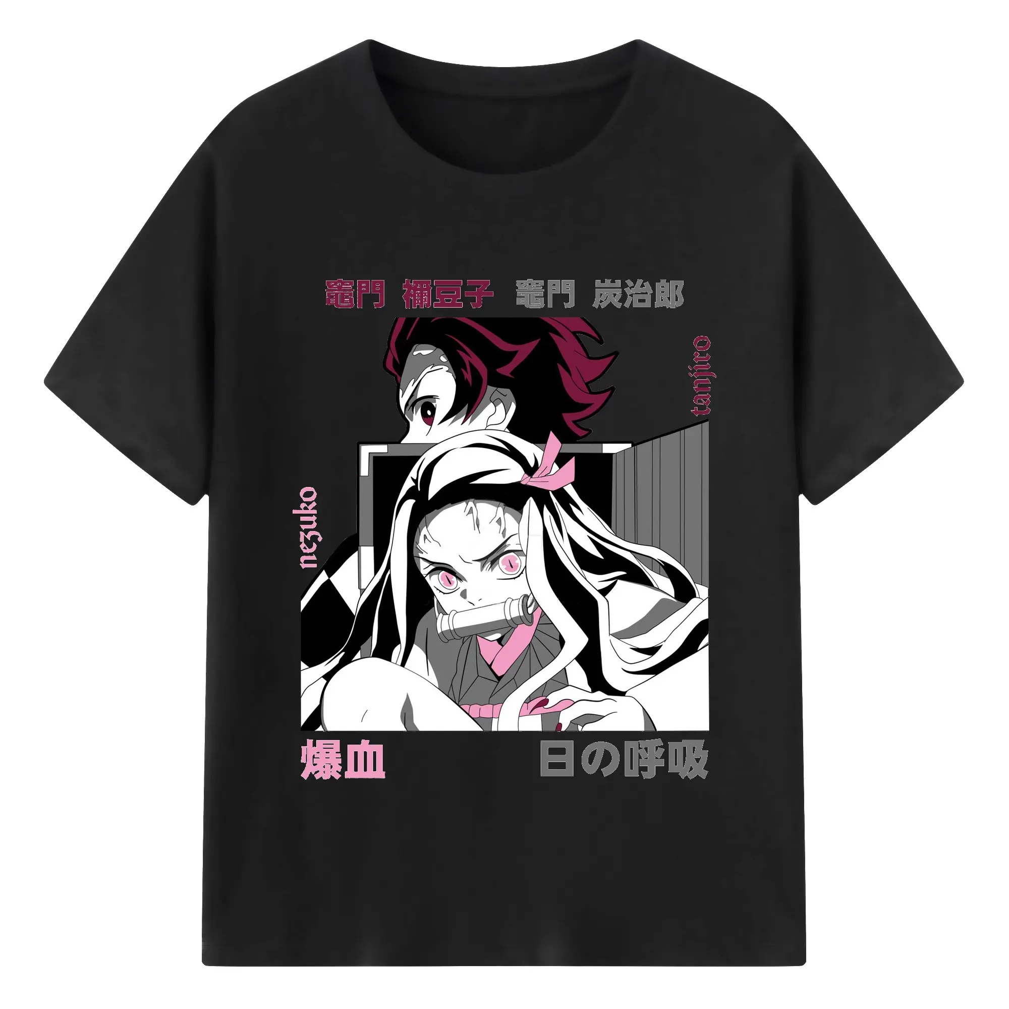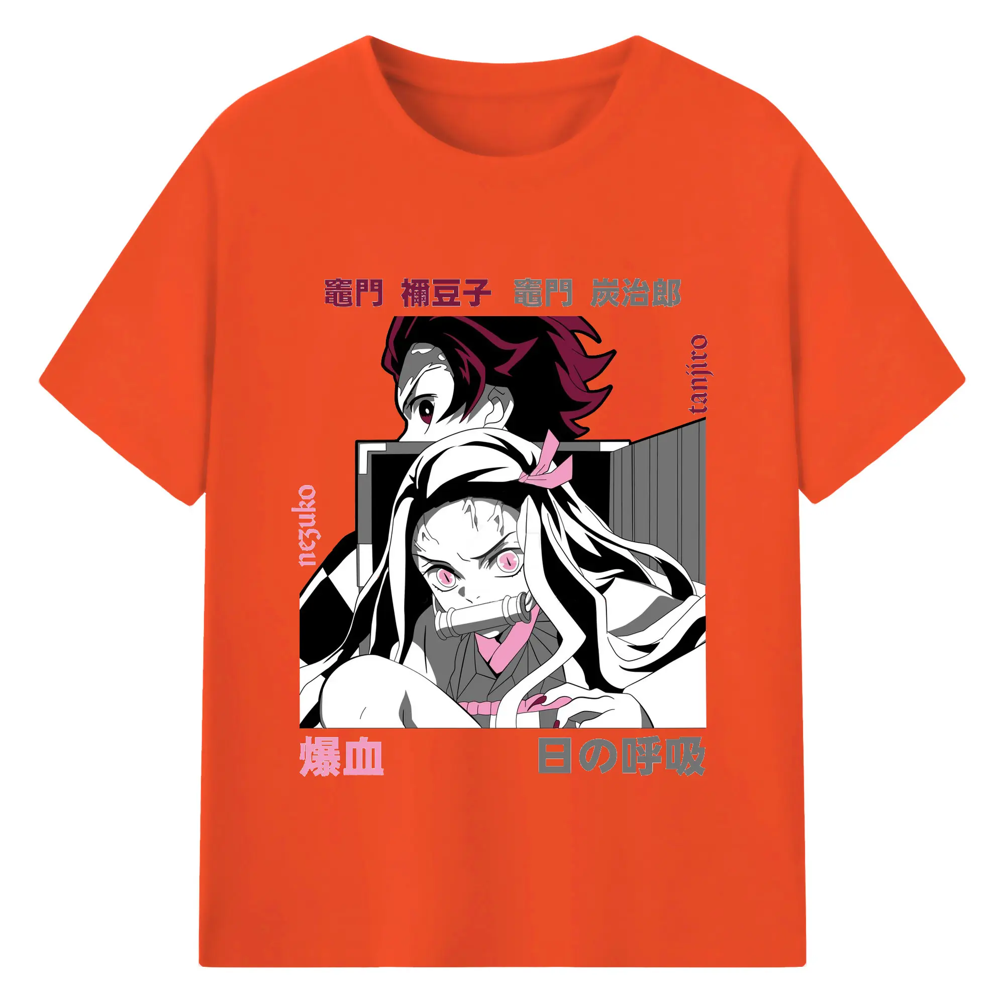 鬼滅の刃 竈門禰豆子 炭治郎兄妹 - 綿100% 半袖Tシャツ ・ フロントプリント ・ 快適 通気性 ・ 日常使い 散歩 スポーツ用