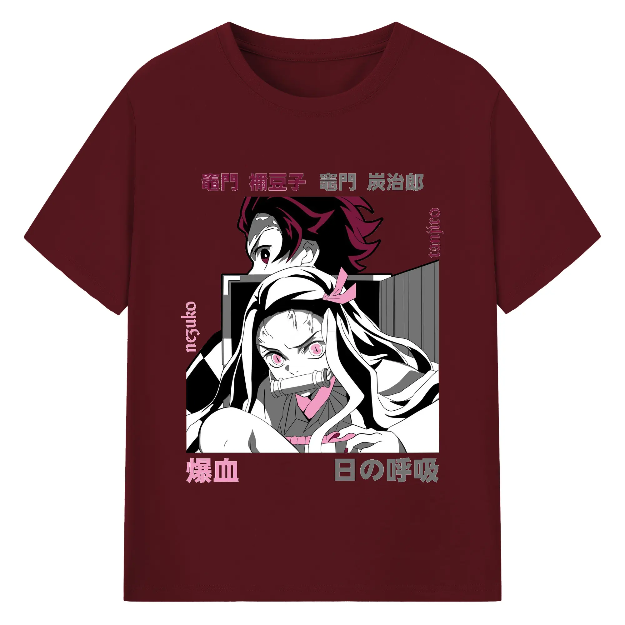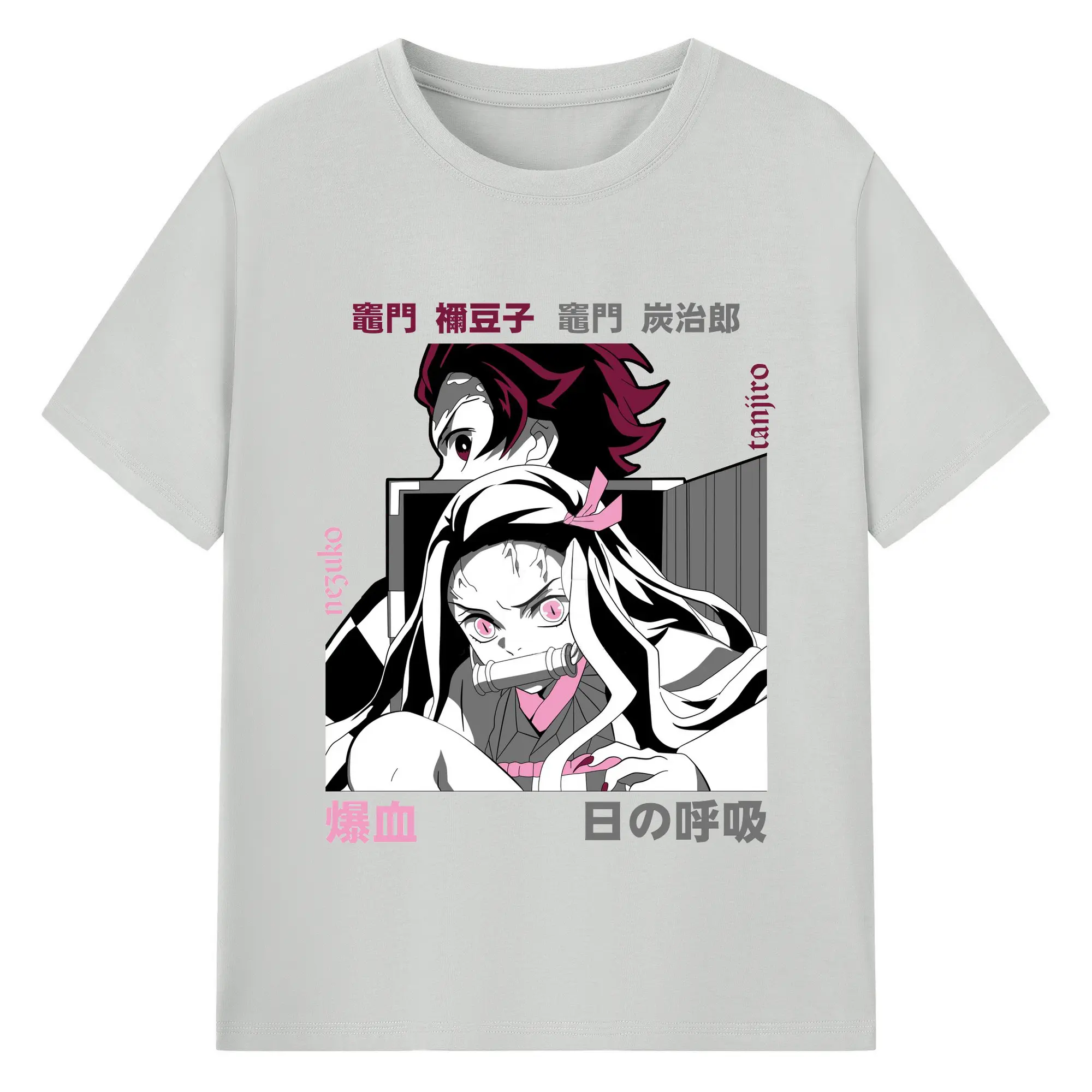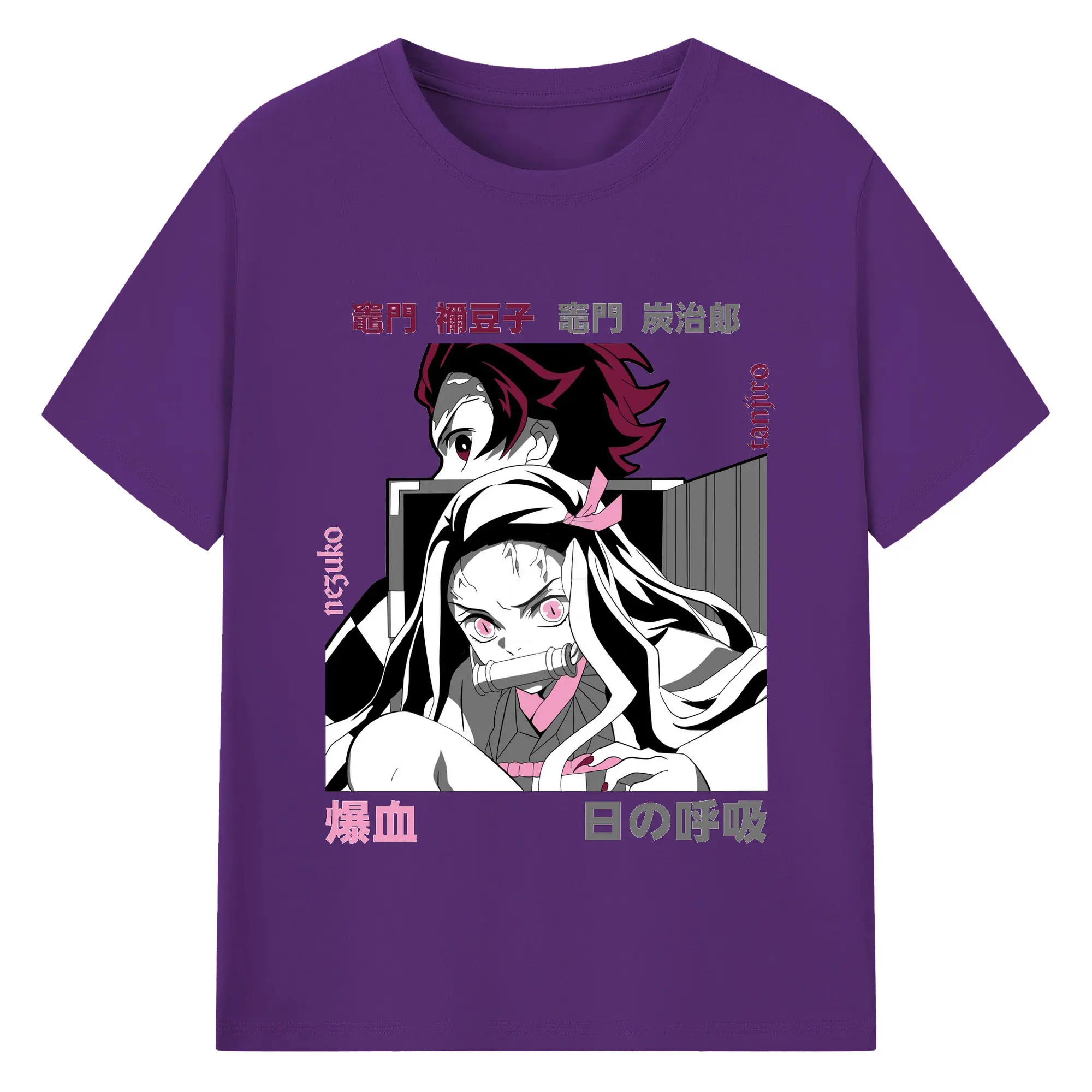 鬼滅の刃 竈門禰豆子 炭治郎兄妹 - 綿100% 半袖Tシャツ ・ フロントプリント ・ 快適 通気性 ・ 日常使い 散歩 スポーツ用