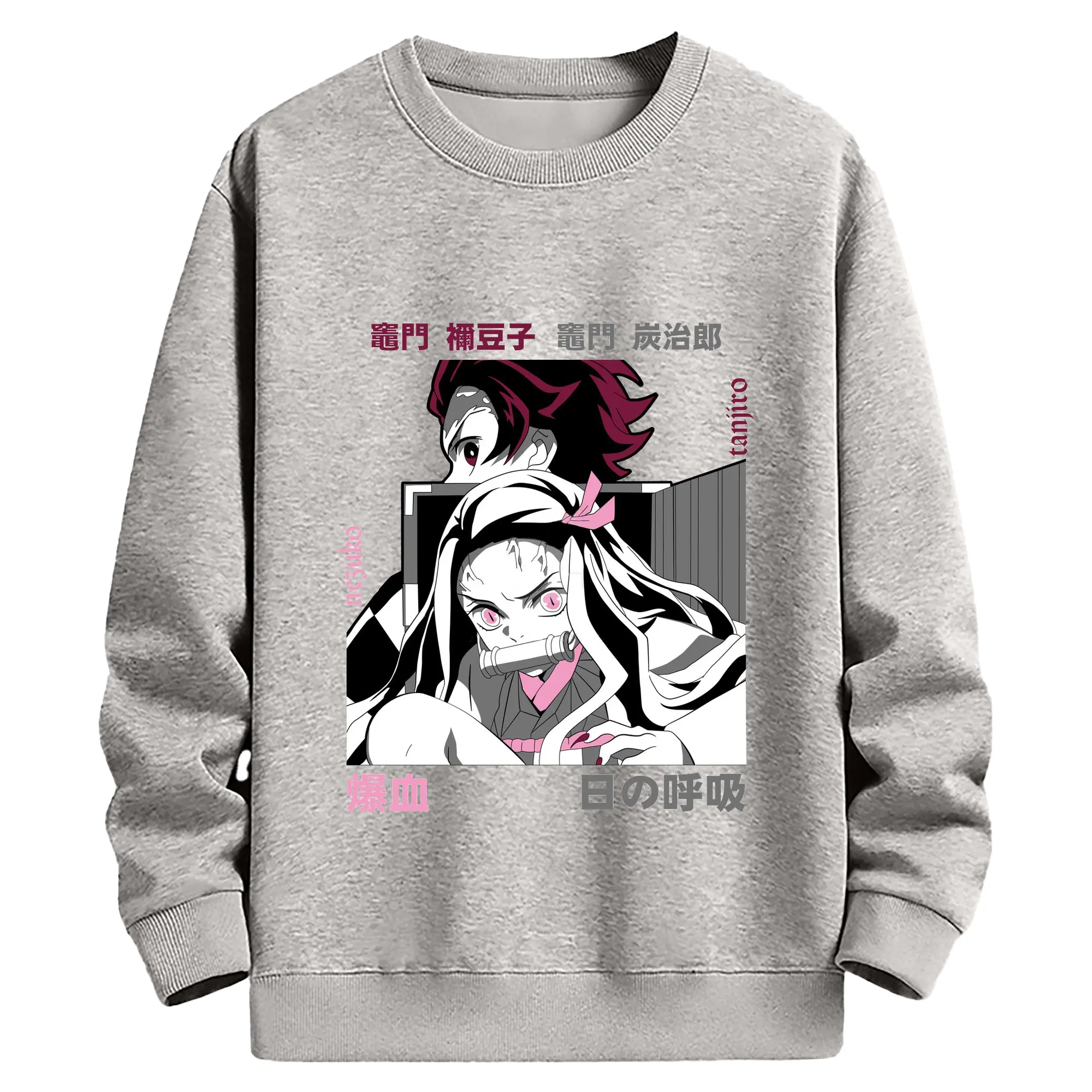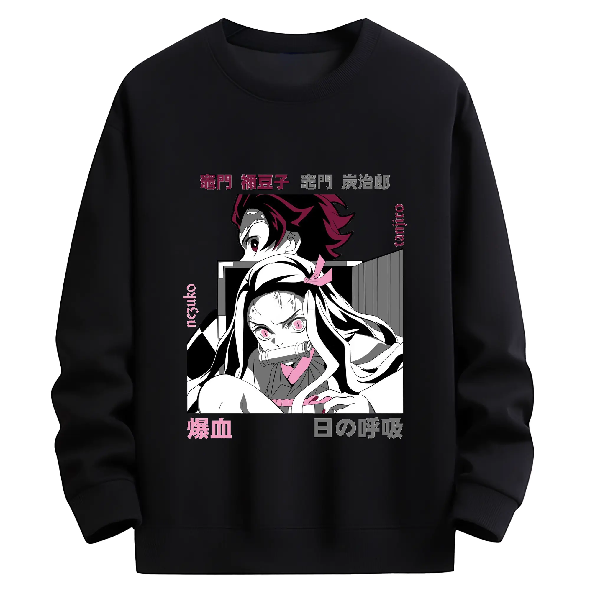 鬼滅の刃 竈門禰豆子 炭治郎兄妹 - 高品質 クルーネック スウェット ・ コットン59% ポリエステル41% ・ ユニセックス 長袖 トレーナー ・ カジュアル デイリー スポーツ 散歩用