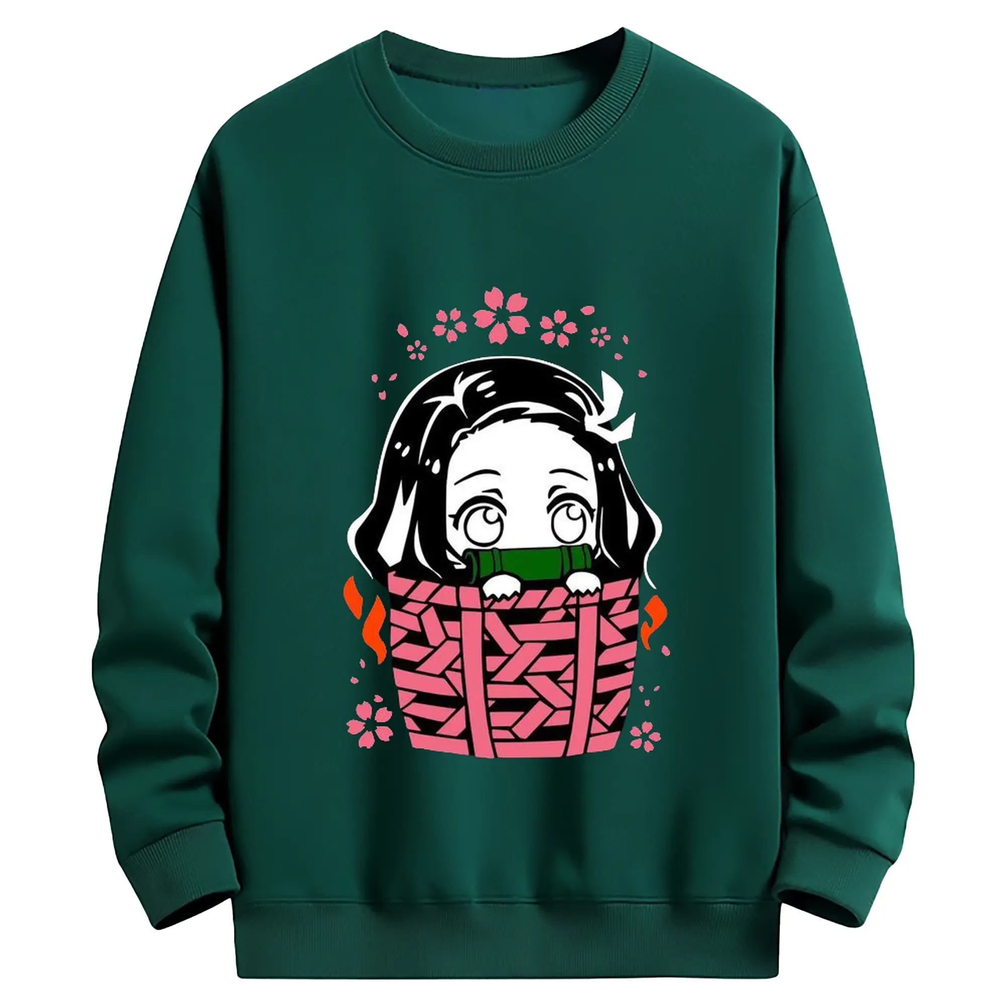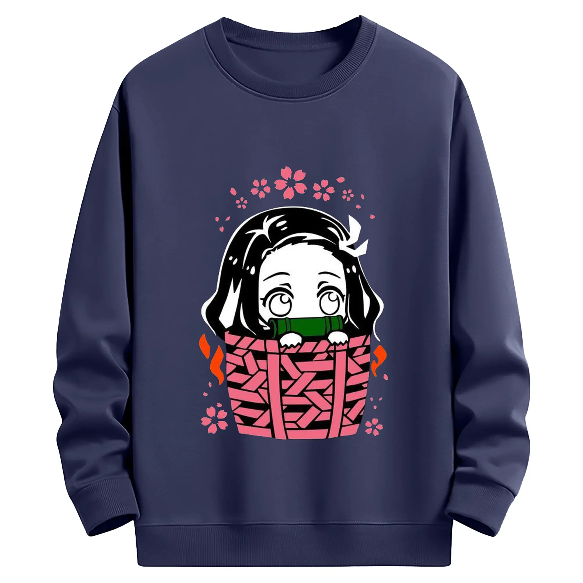 鬼滅の刃 竈門禰豆子 禰豆子かわいい - 高品質 クルーネック スウェット ・ コットン59% ポリエステル41% ・ ユニセックス 長袖 トレーナー ・ カジュアル デイリー スポーツ 散歩用