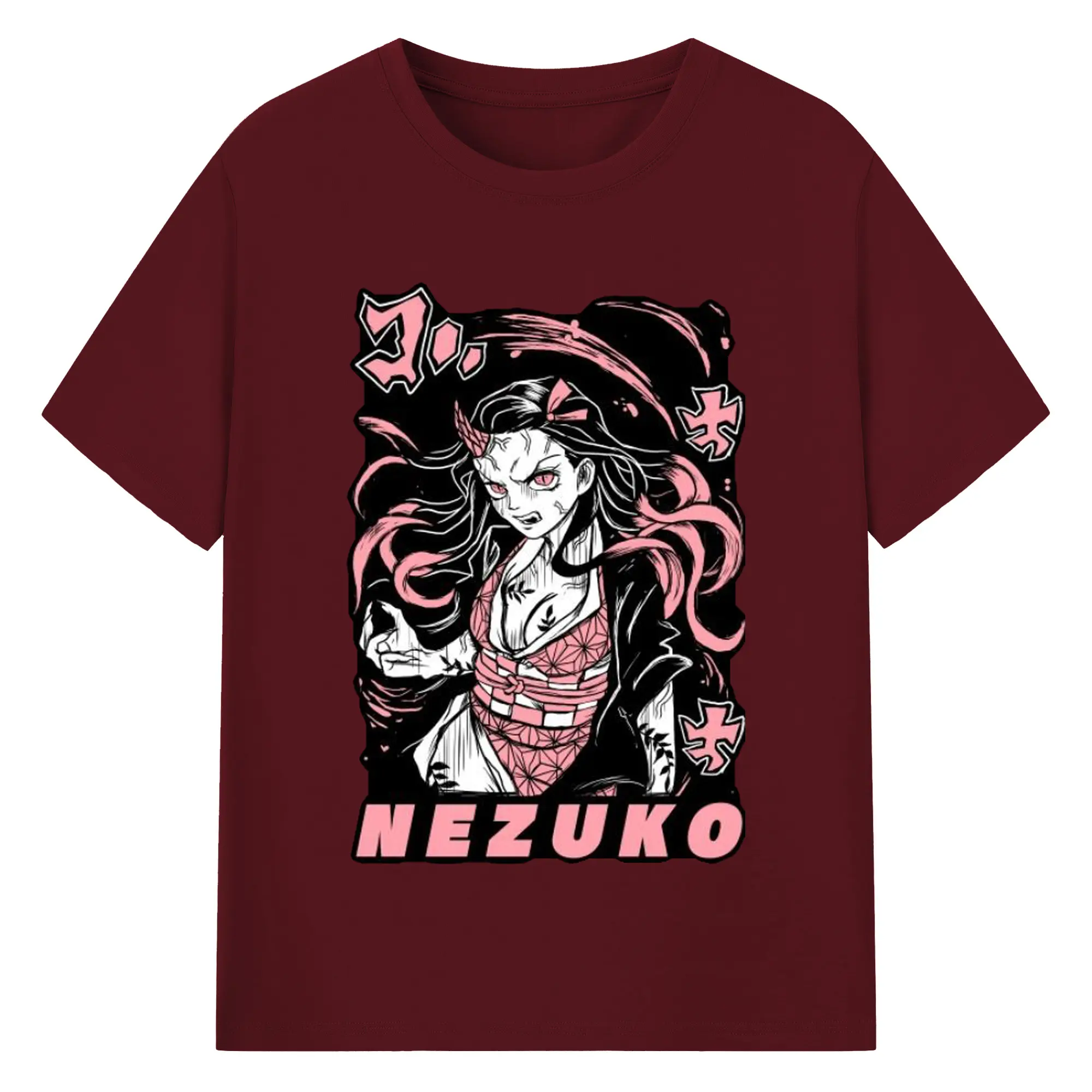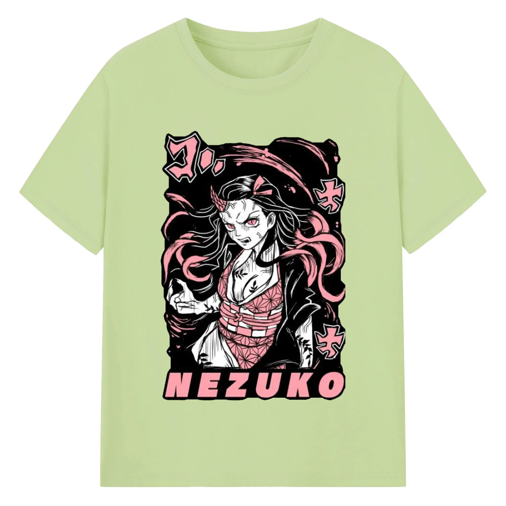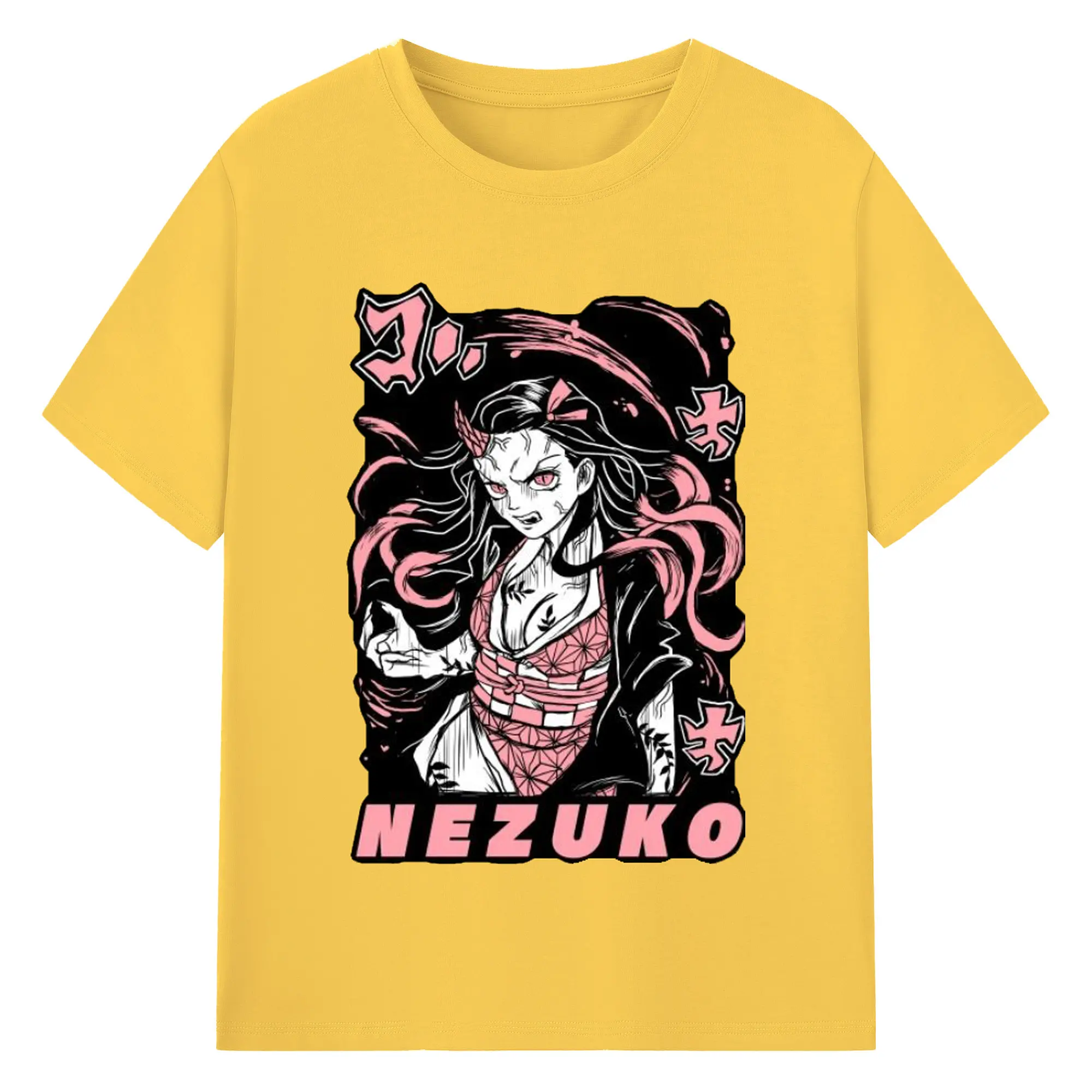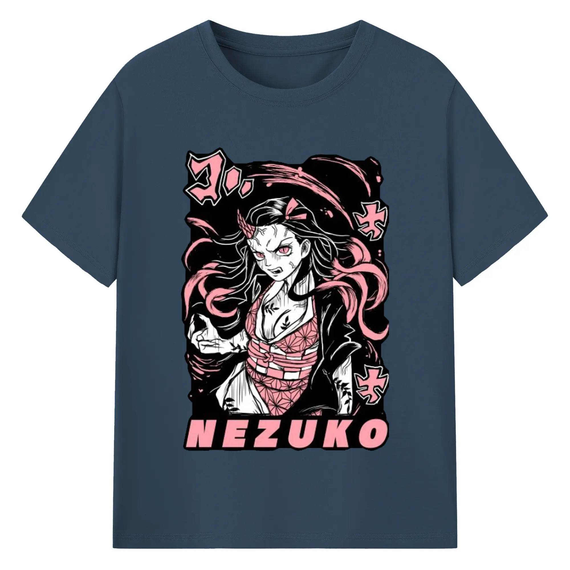 鬼滅の刃 竈門禰豆子 - 綿100% 半袖Tシャツ ・ フロントプリント ・ 快適 通気性 ・ 日常使い 散歩 スポーツ用