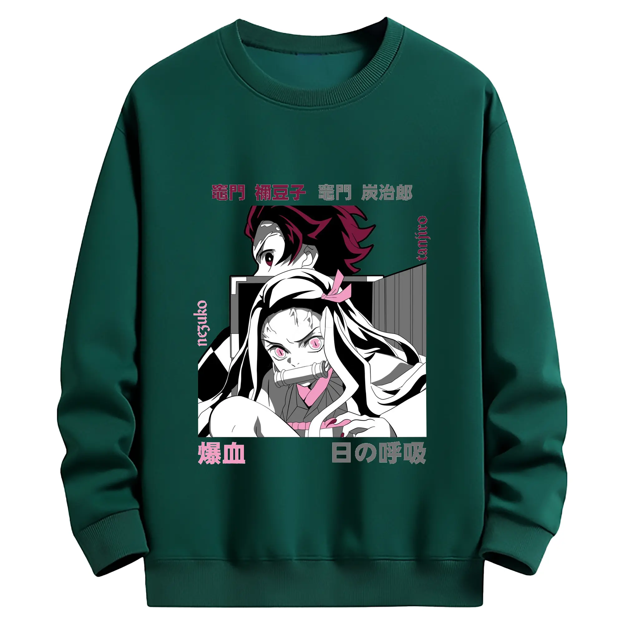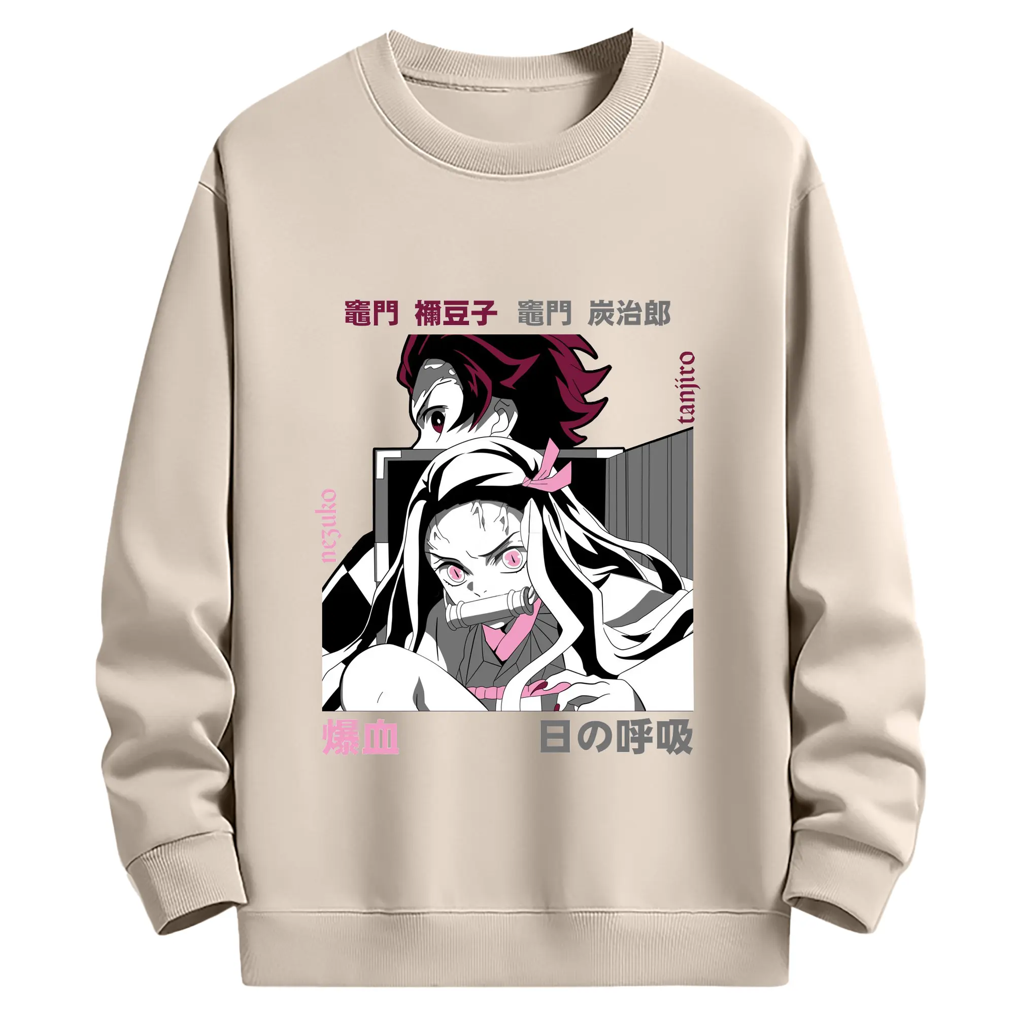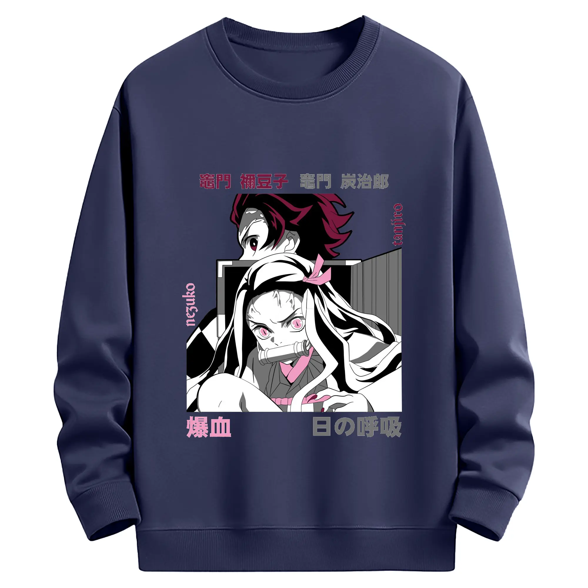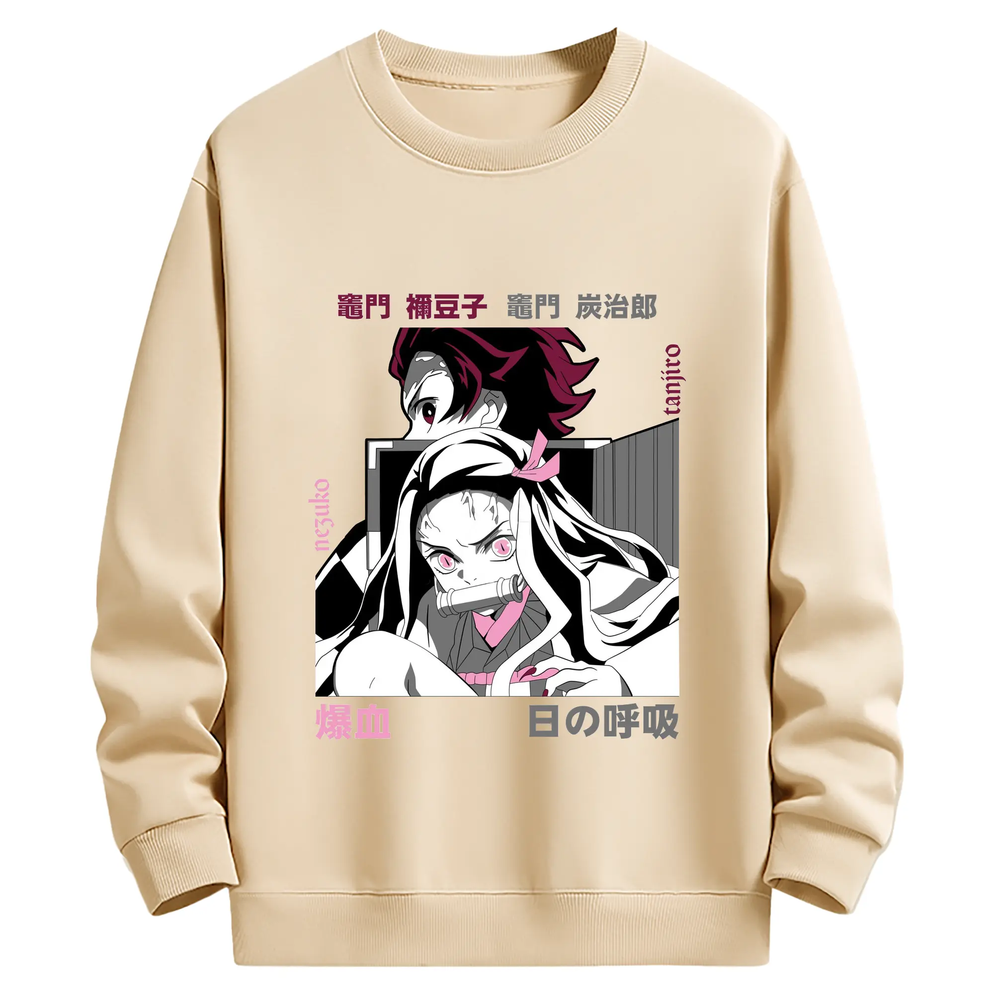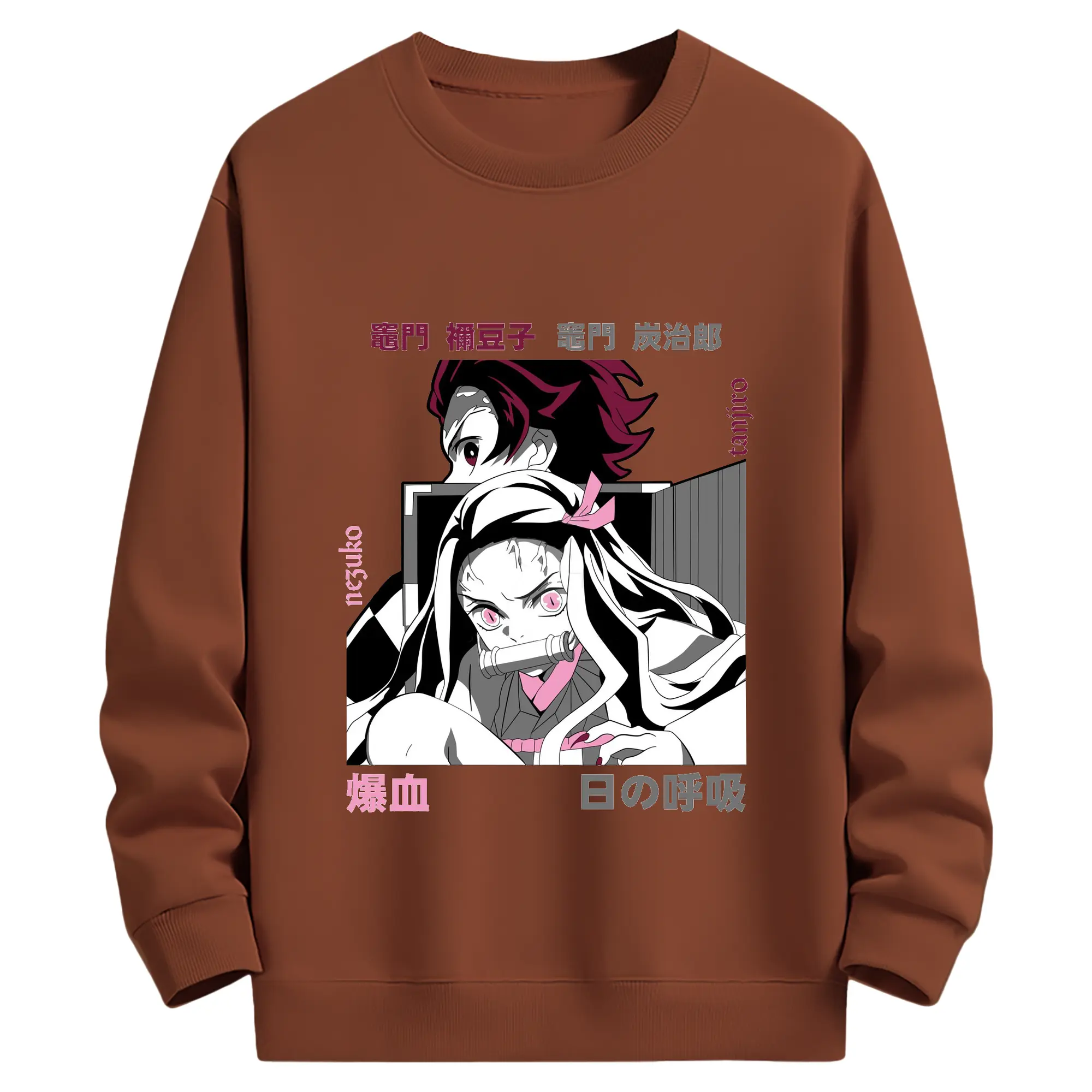 鬼滅の刃 竈門禰豆子 炭治郎兄妹 - 高品質 クルーネック スウェット ・ コットン59% ポリエステル41% ・ ユニセックス 長袖 トレーナー ・ カジュアル デイリー スポーツ 散歩用
