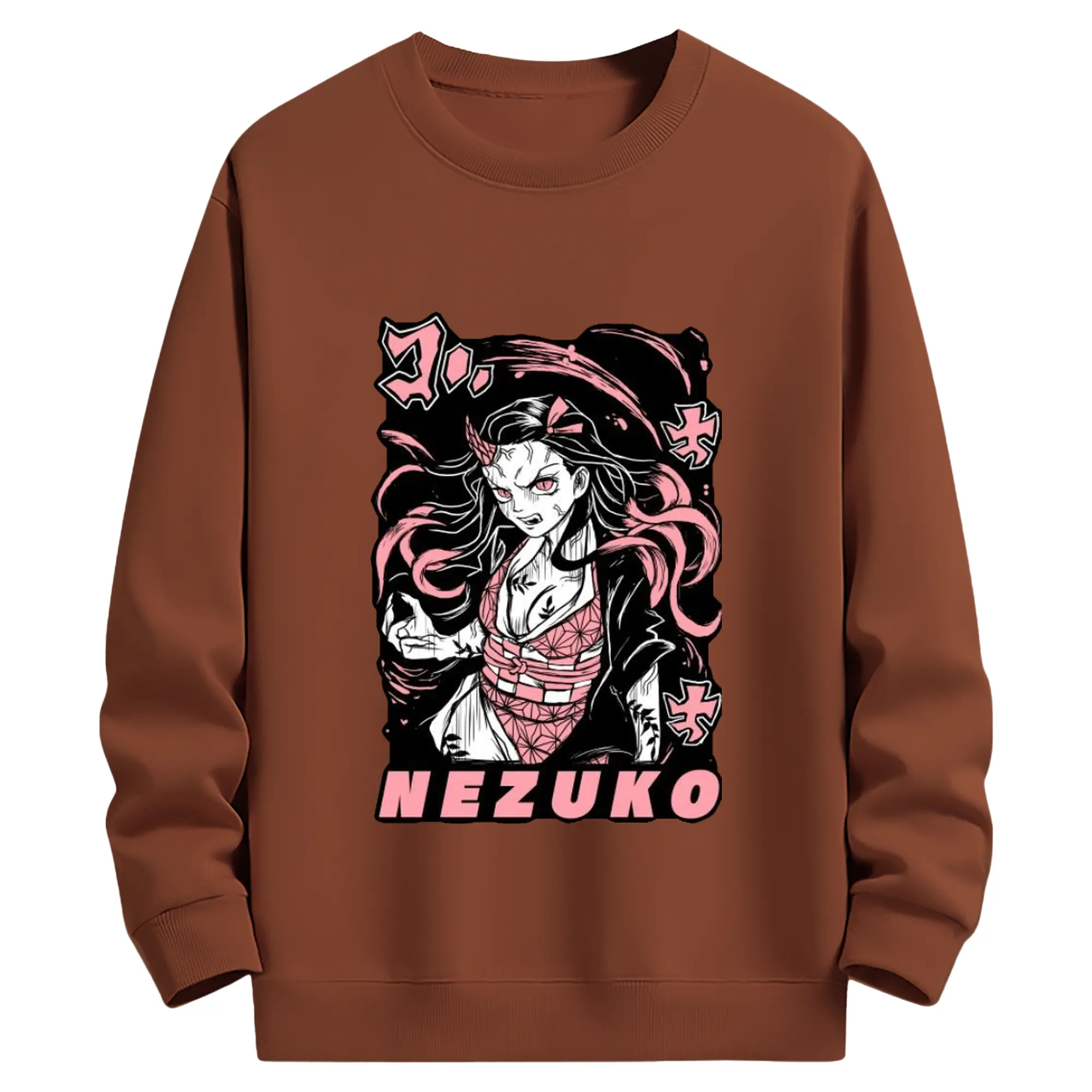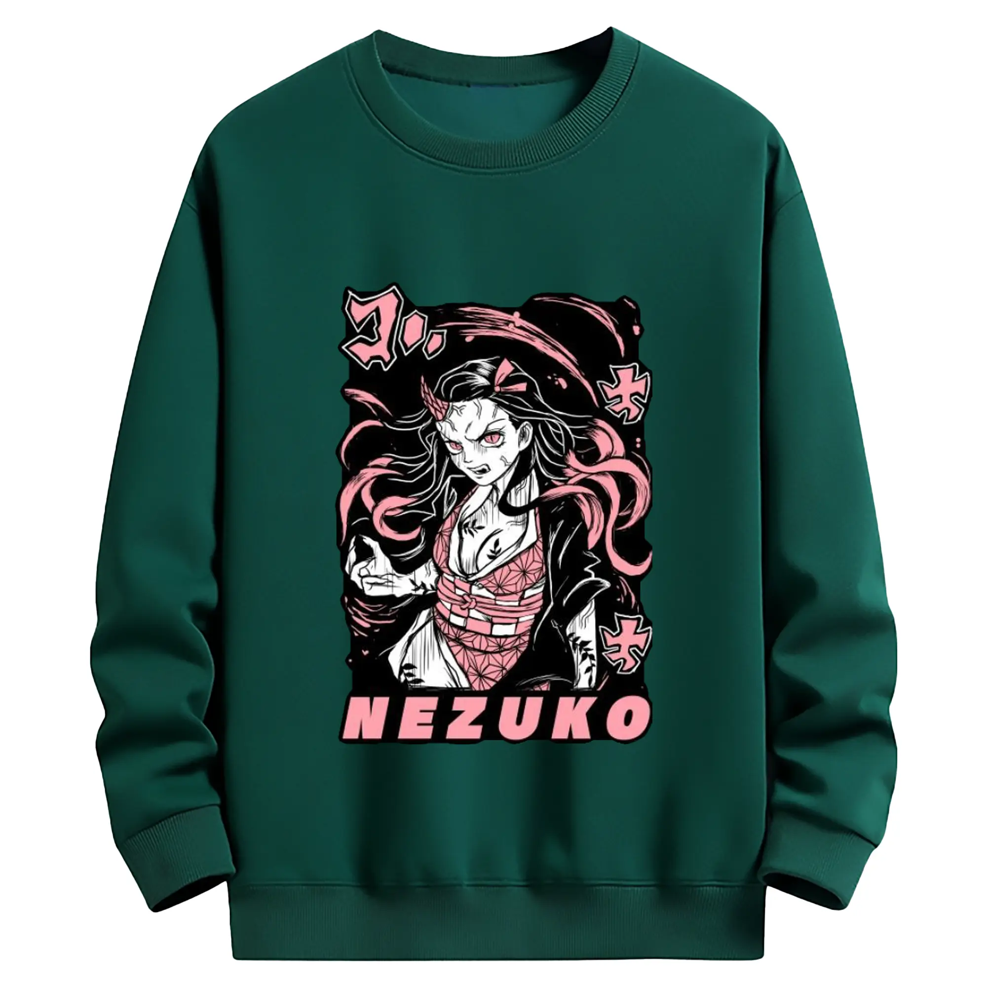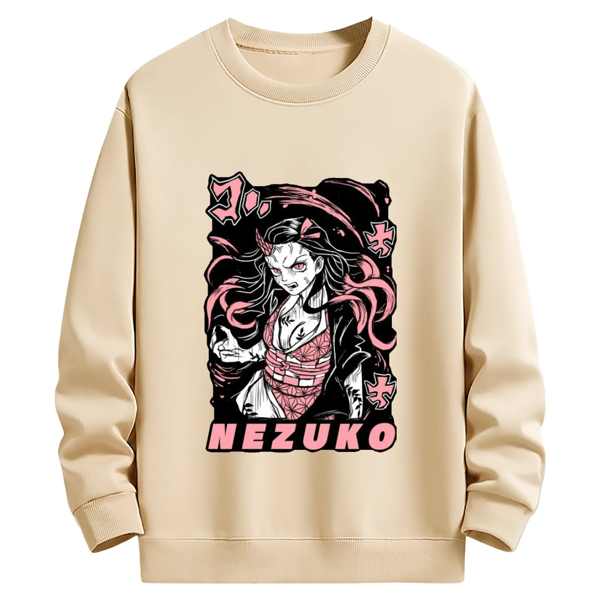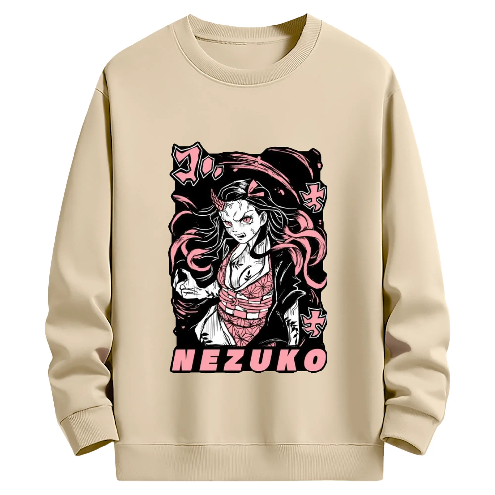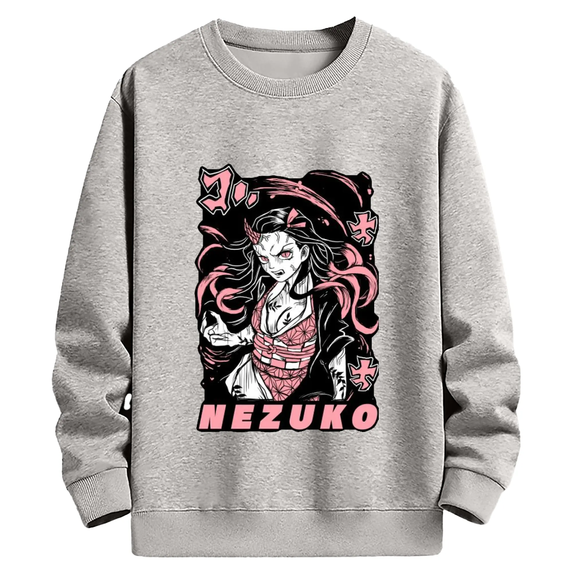 鬼滅の刃 竈門禰豆子 - 高品質 クルーネック スウェット ・ コットン59% ポリエステル41% ・ ユニセックス 長袖 トレーナー ・ カジュアル デイリー スポーツ 散歩用