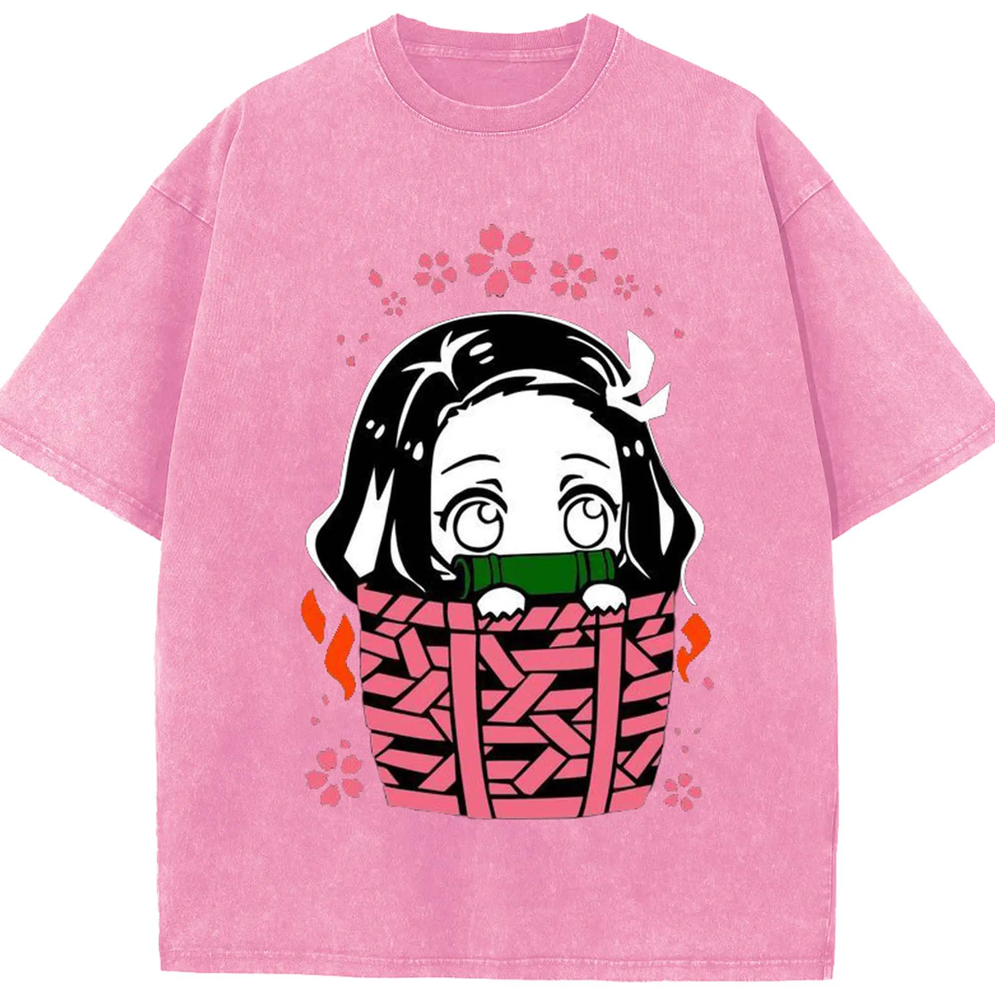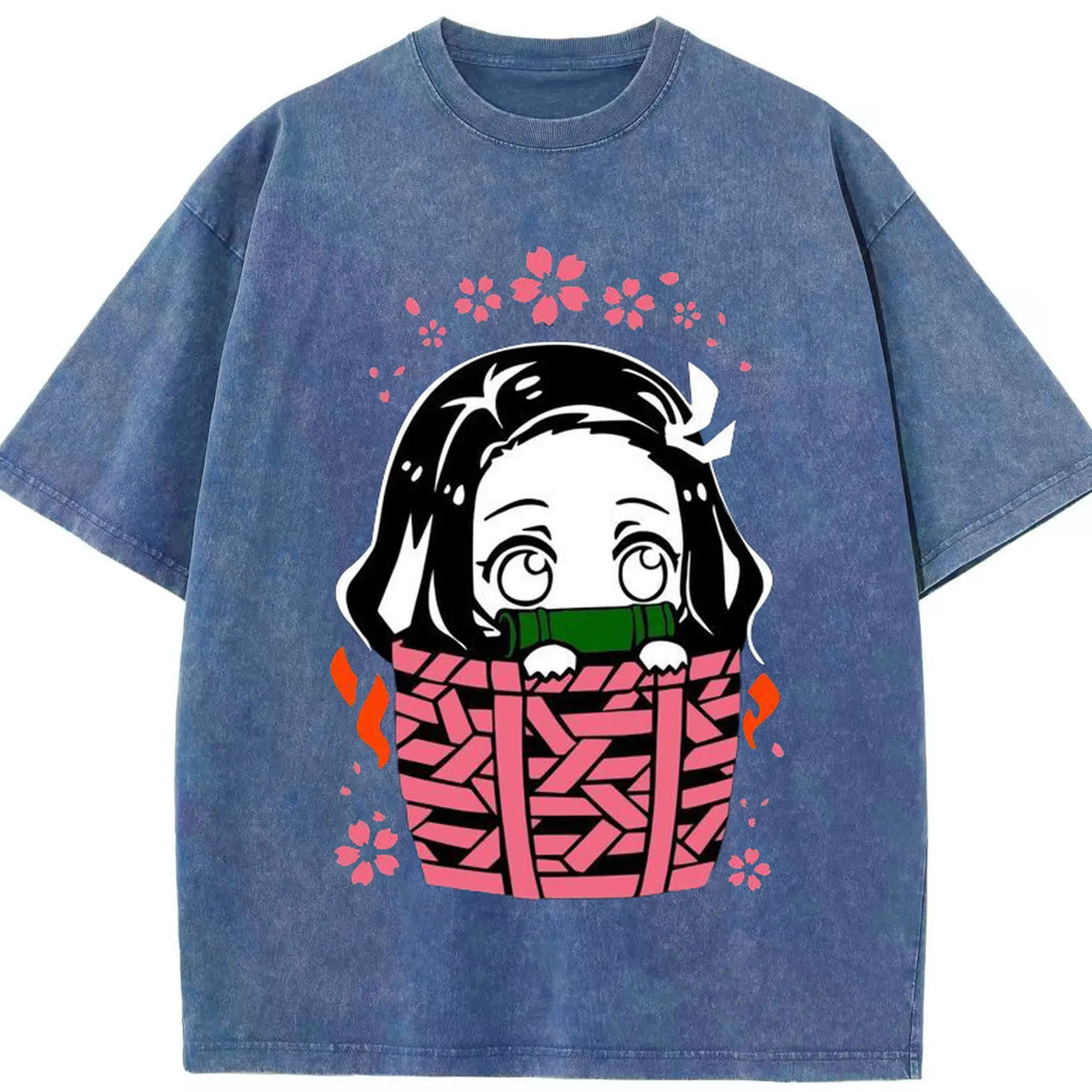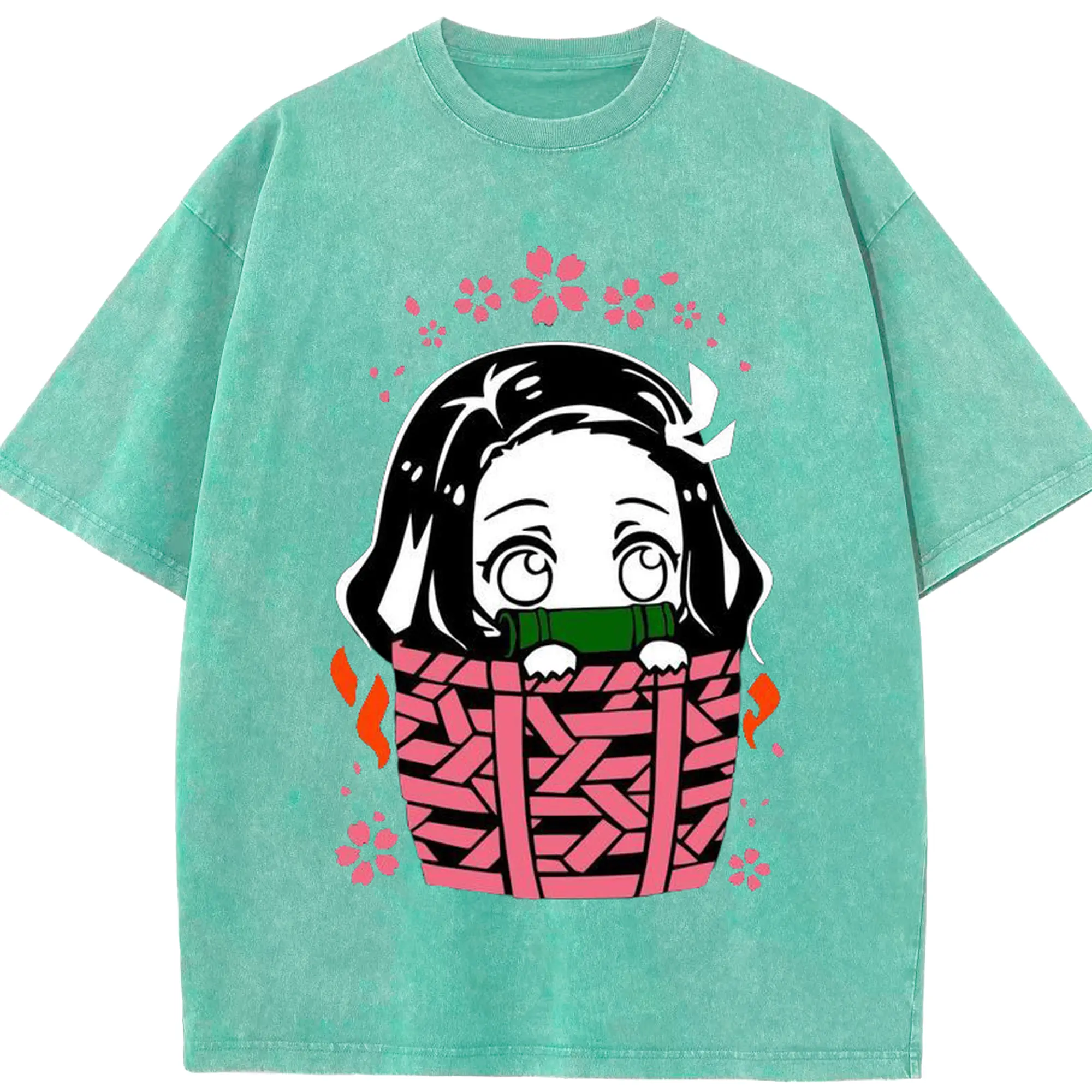 鬼滅の刃 竈門禰豆子 禰豆子かわいい - 綿100% ヴィンテージ風 半袖Tシャツ ・ フロントプリント ・ 柔らか肌触り ・ 通気性 快適 ・ スポーツ カジュアル 外出用