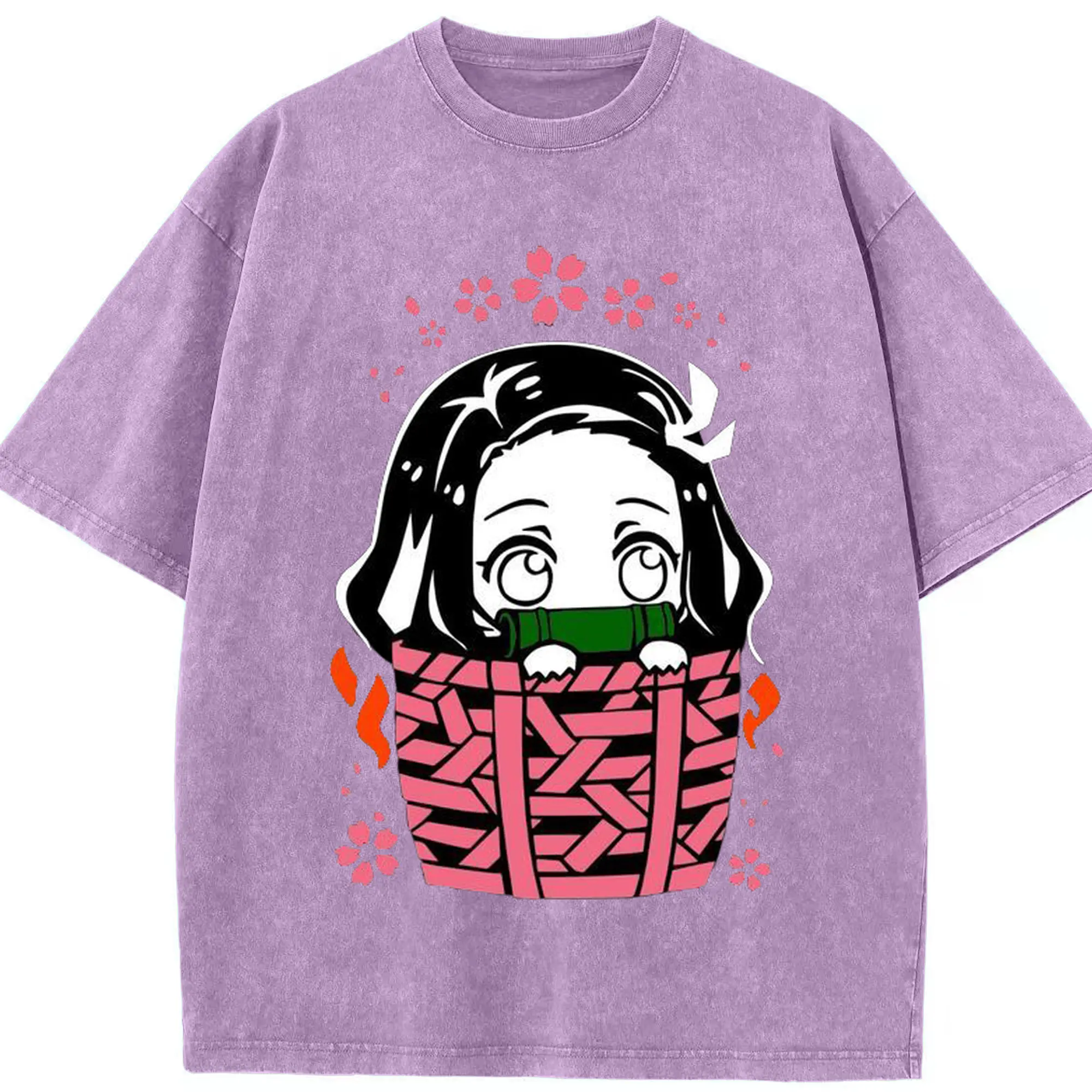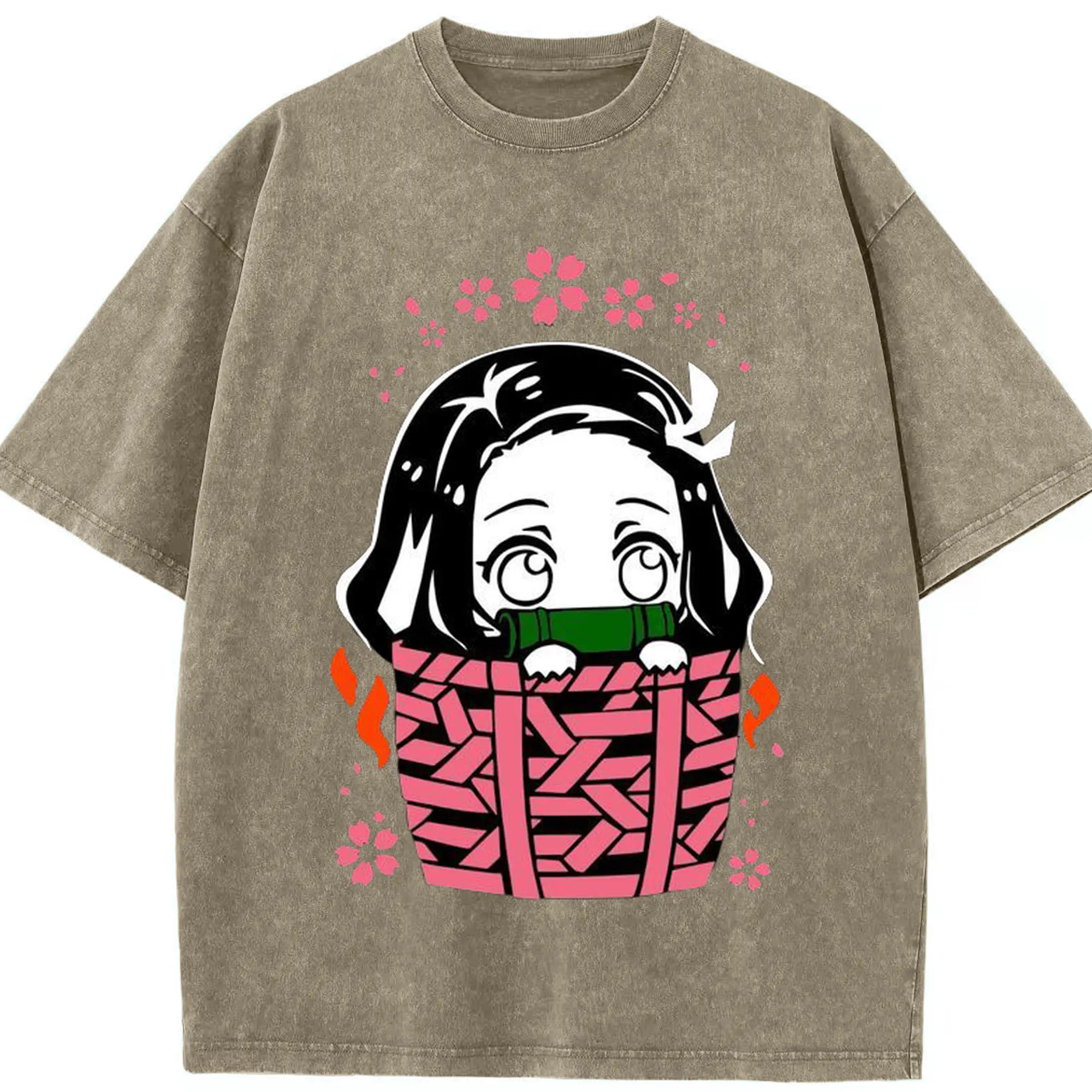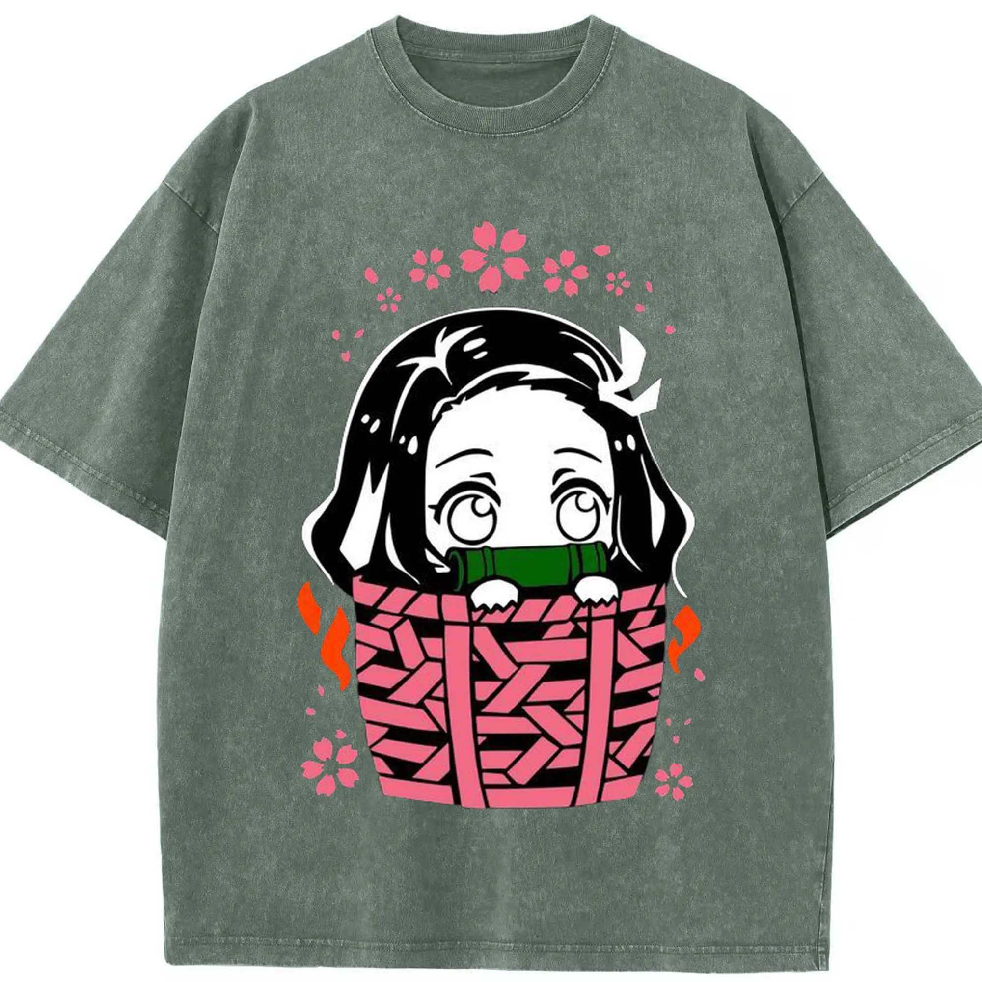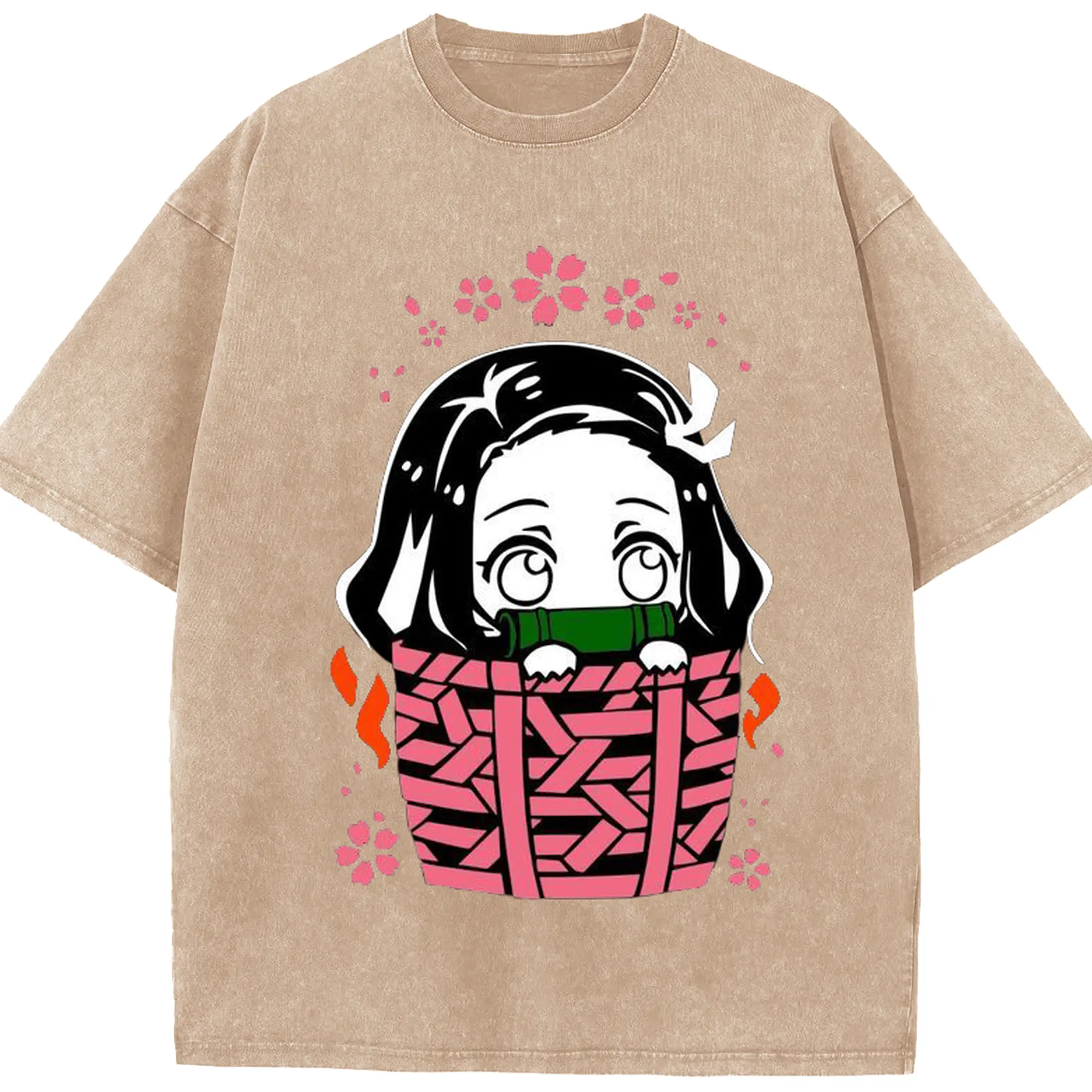 鬼滅の刃 竈門禰豆子 禰豆子かわいい - 綿100% ヴィンテージ風 半袖Tシャツ ・ フロントプリント ・ 柔らか肌触り ・ 通気性 快適 ・ スポーツ カジュアル 外出用