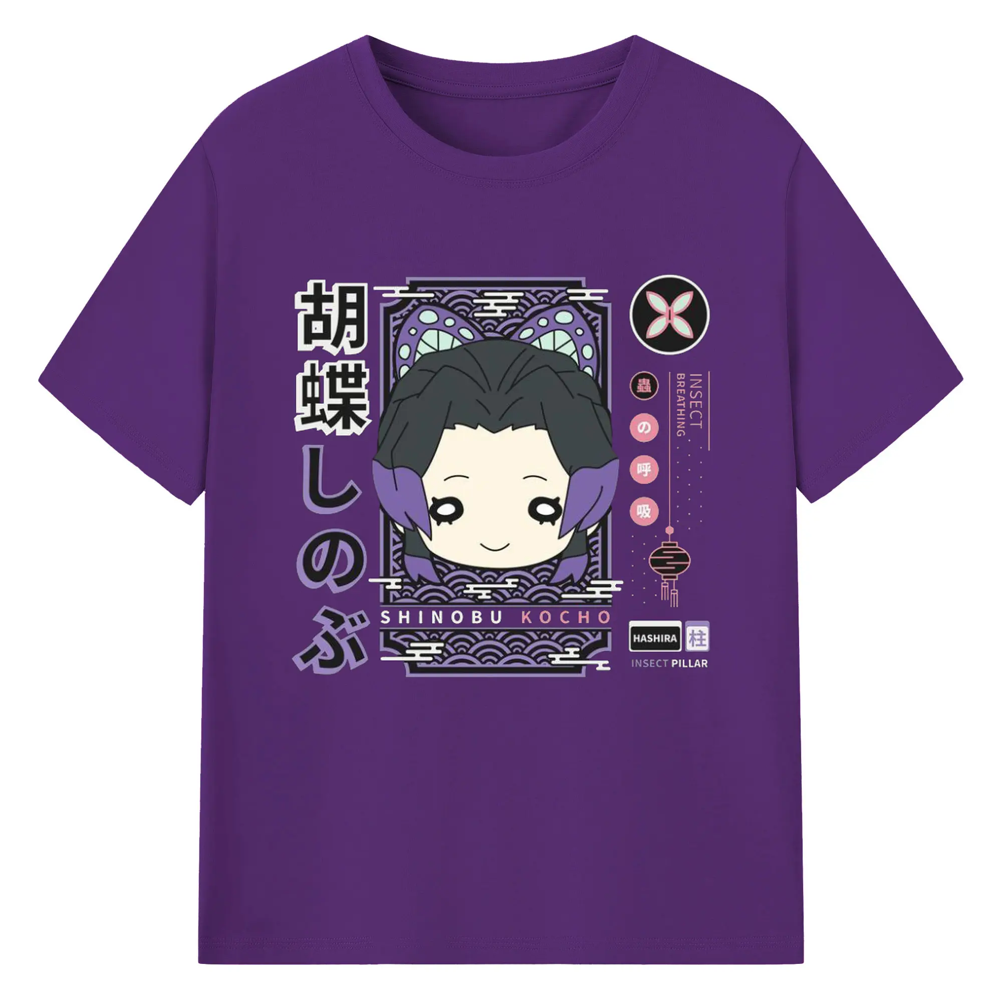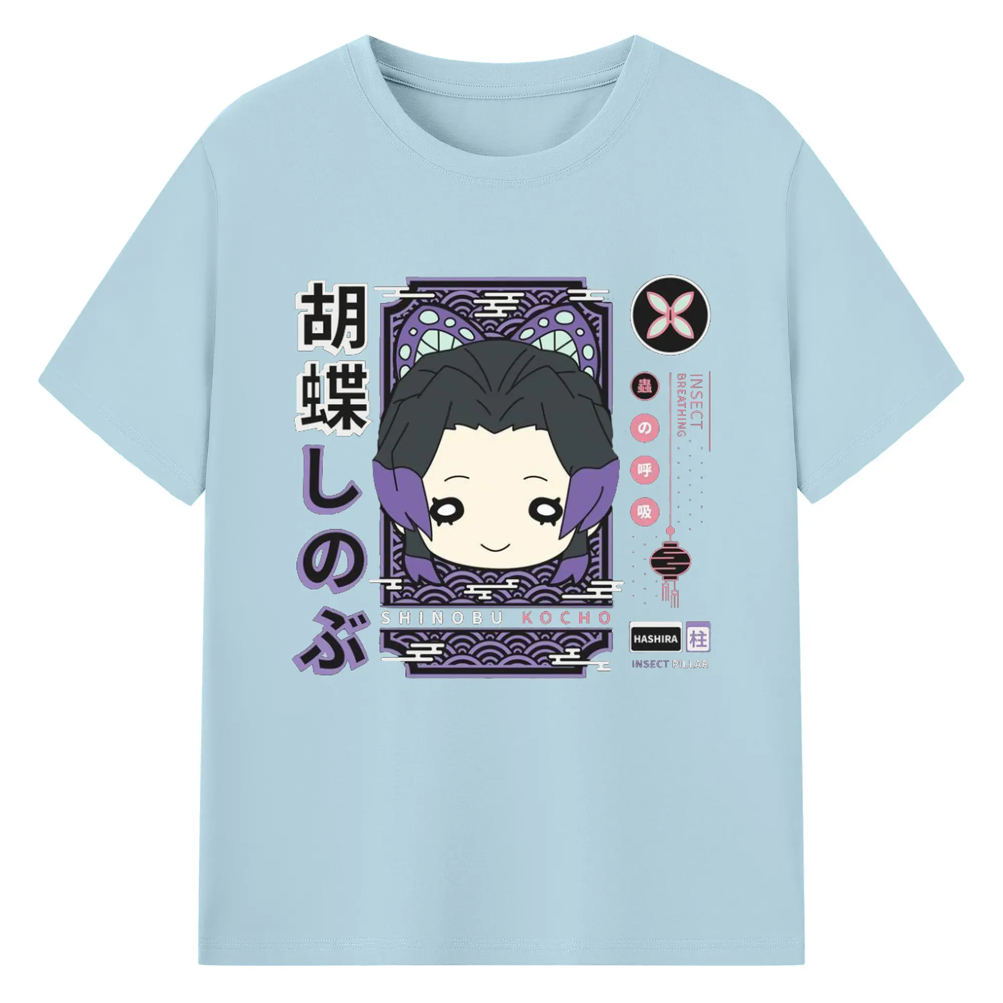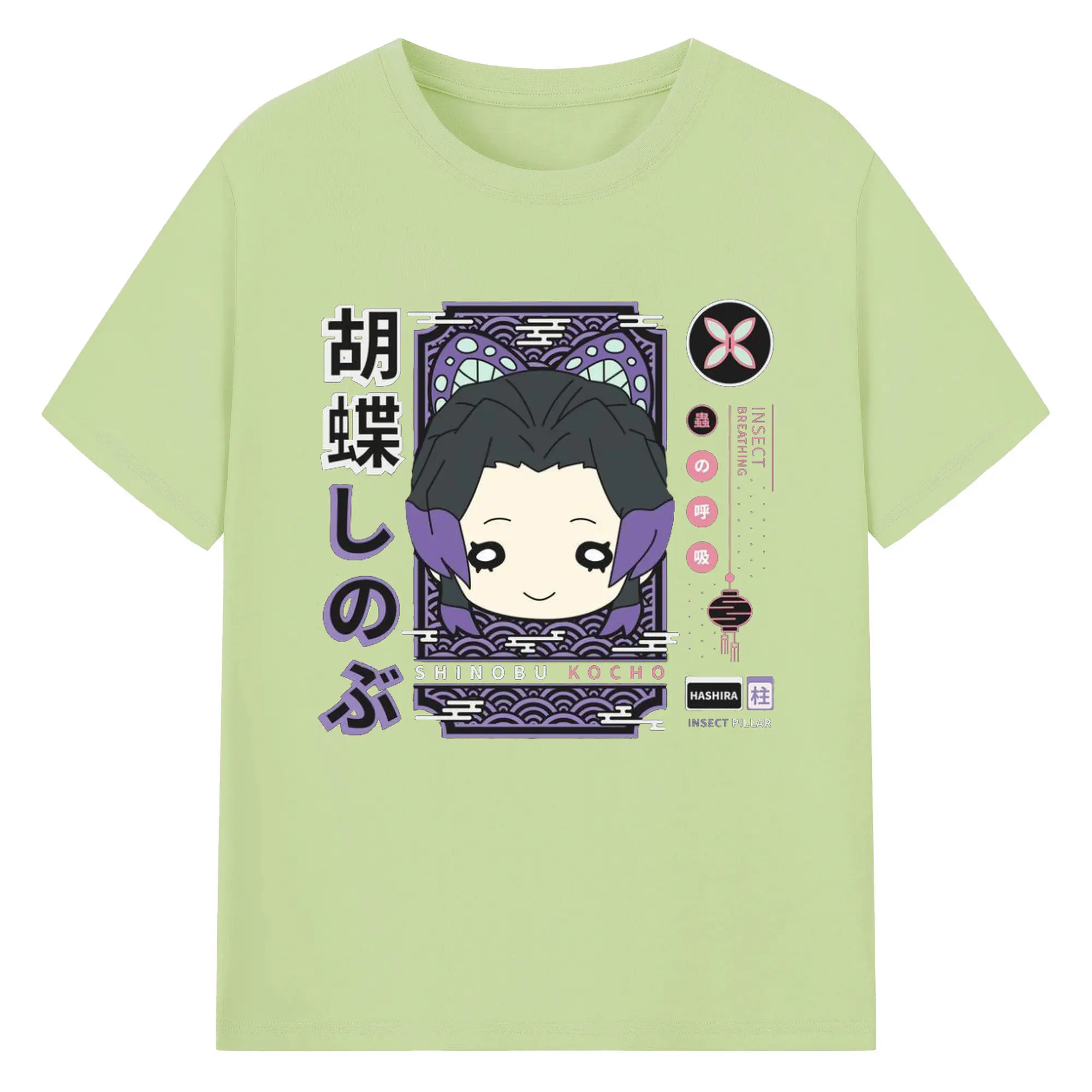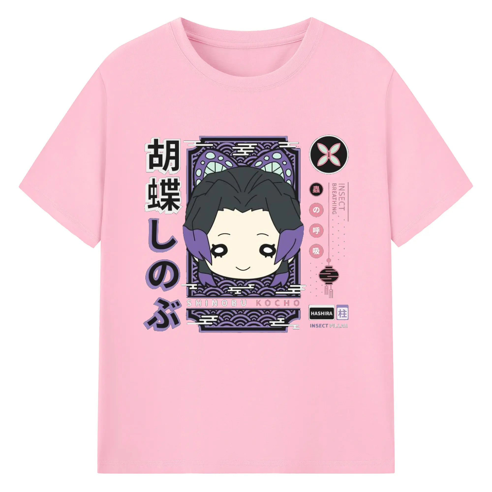 鬼滅の刃 胡蝶しのぶ - 綿100% 半袖Tシャツ ・ フロントプリント ・ 快適 通気性 ・ 日常使い 散歩 スポーツ用
