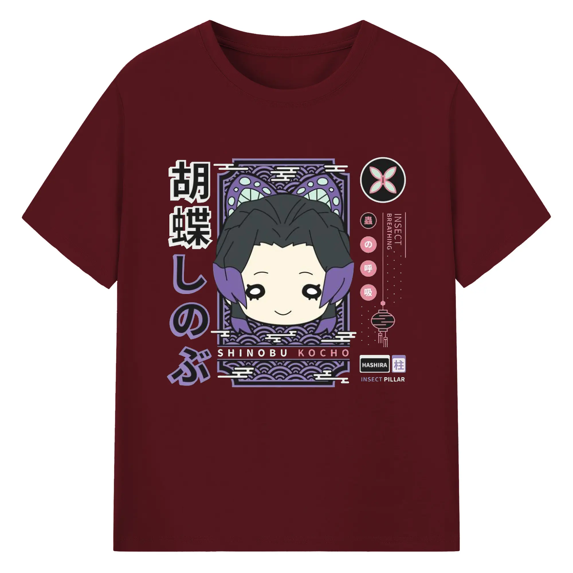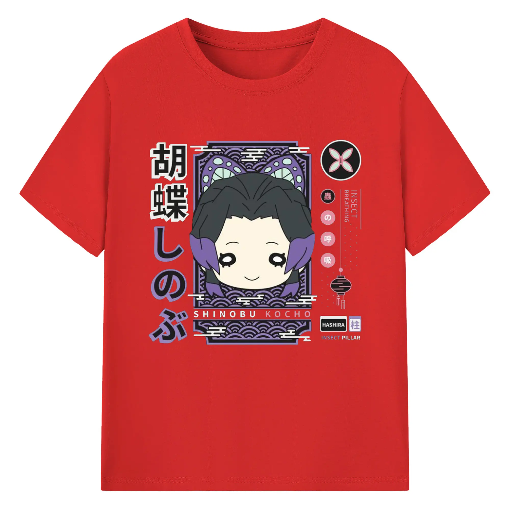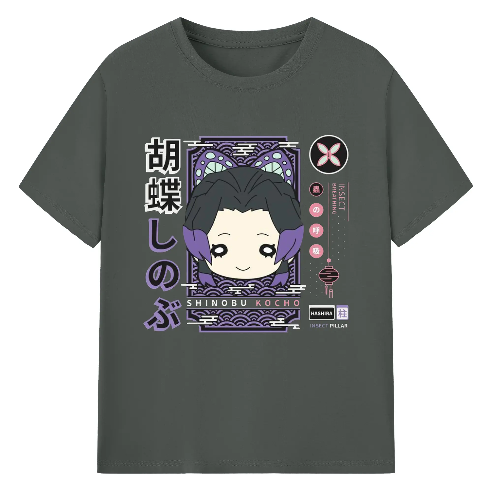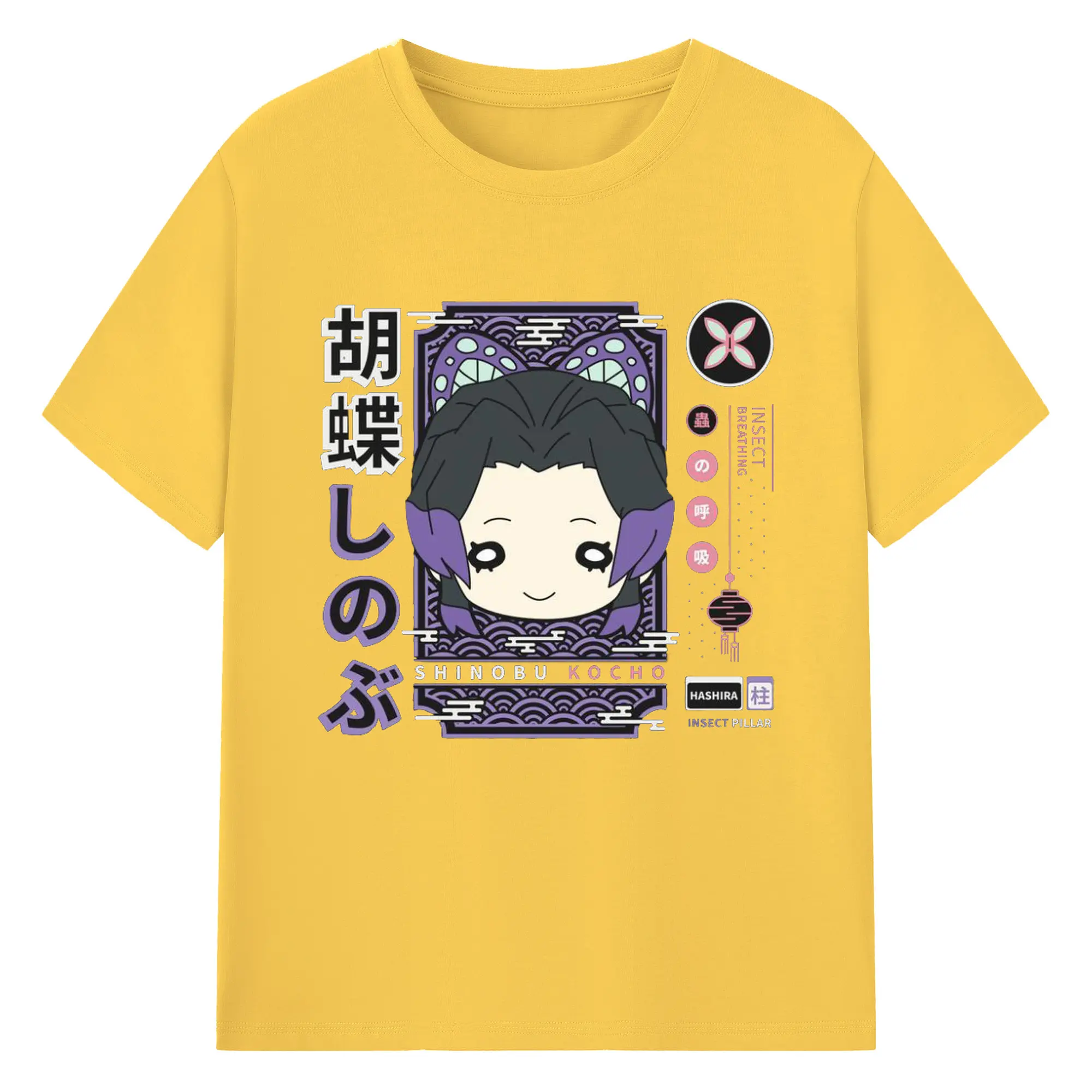 鬼滅の刃 胡蝶しのぶ - 綿100% 半袖Tシャツ ・ フロントプリント ・ 快適 通気性 ・ 日常使い 散歩 スポーツ用