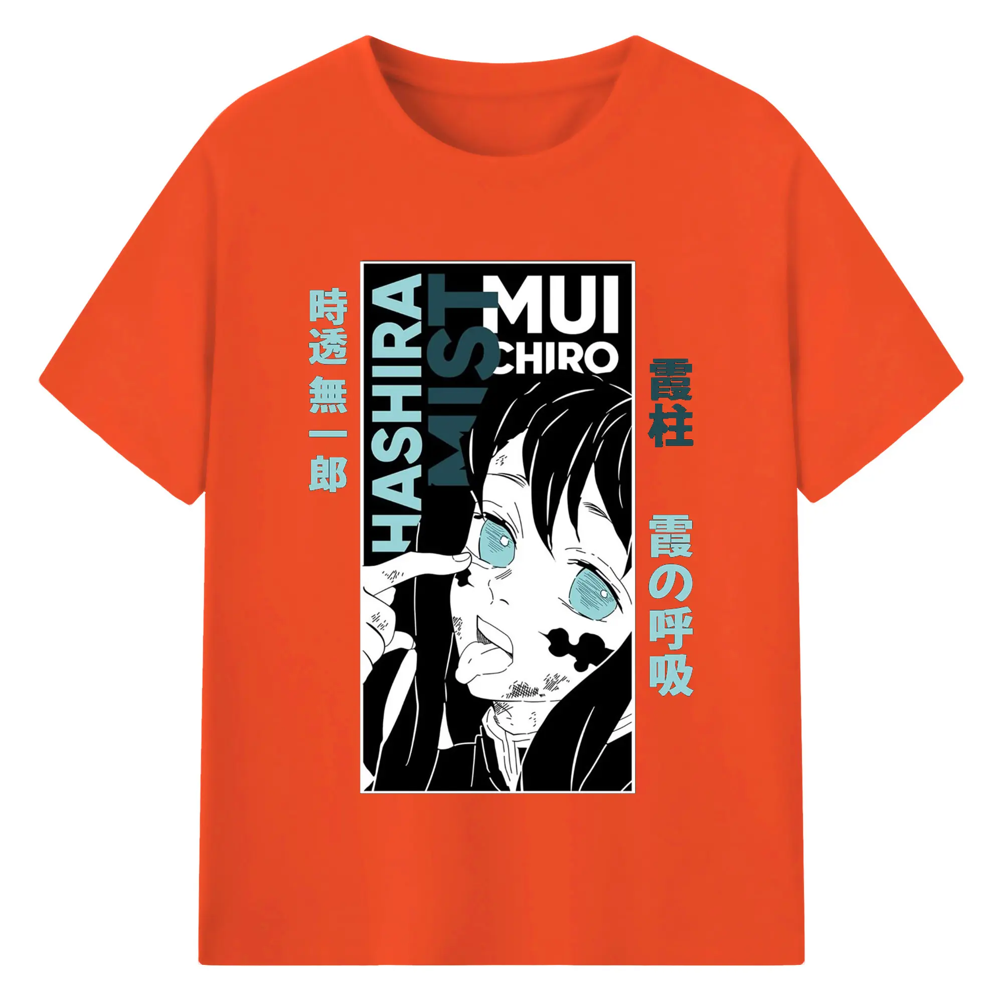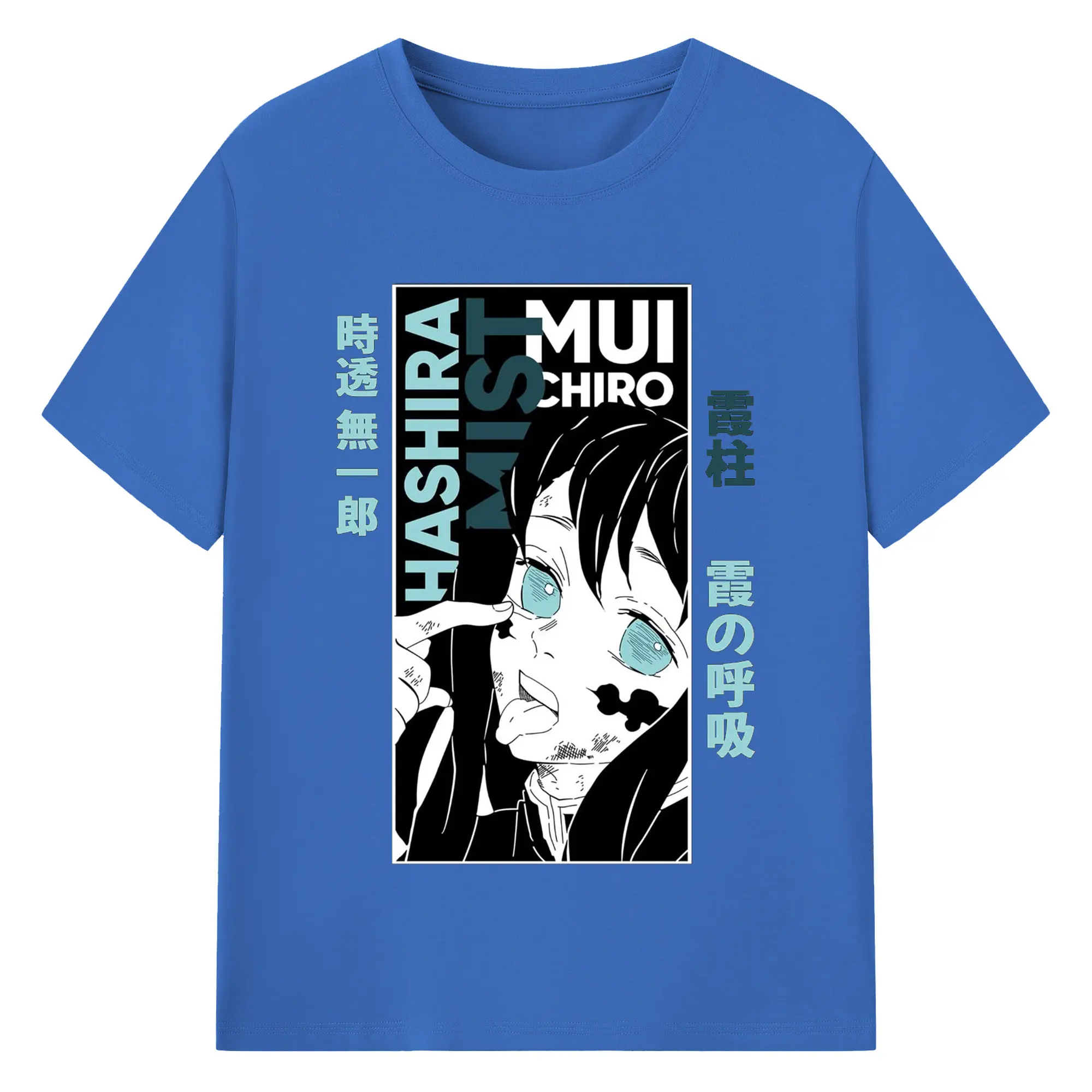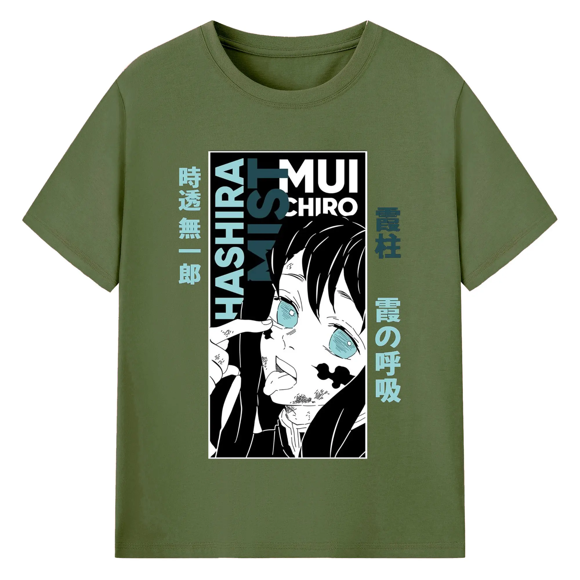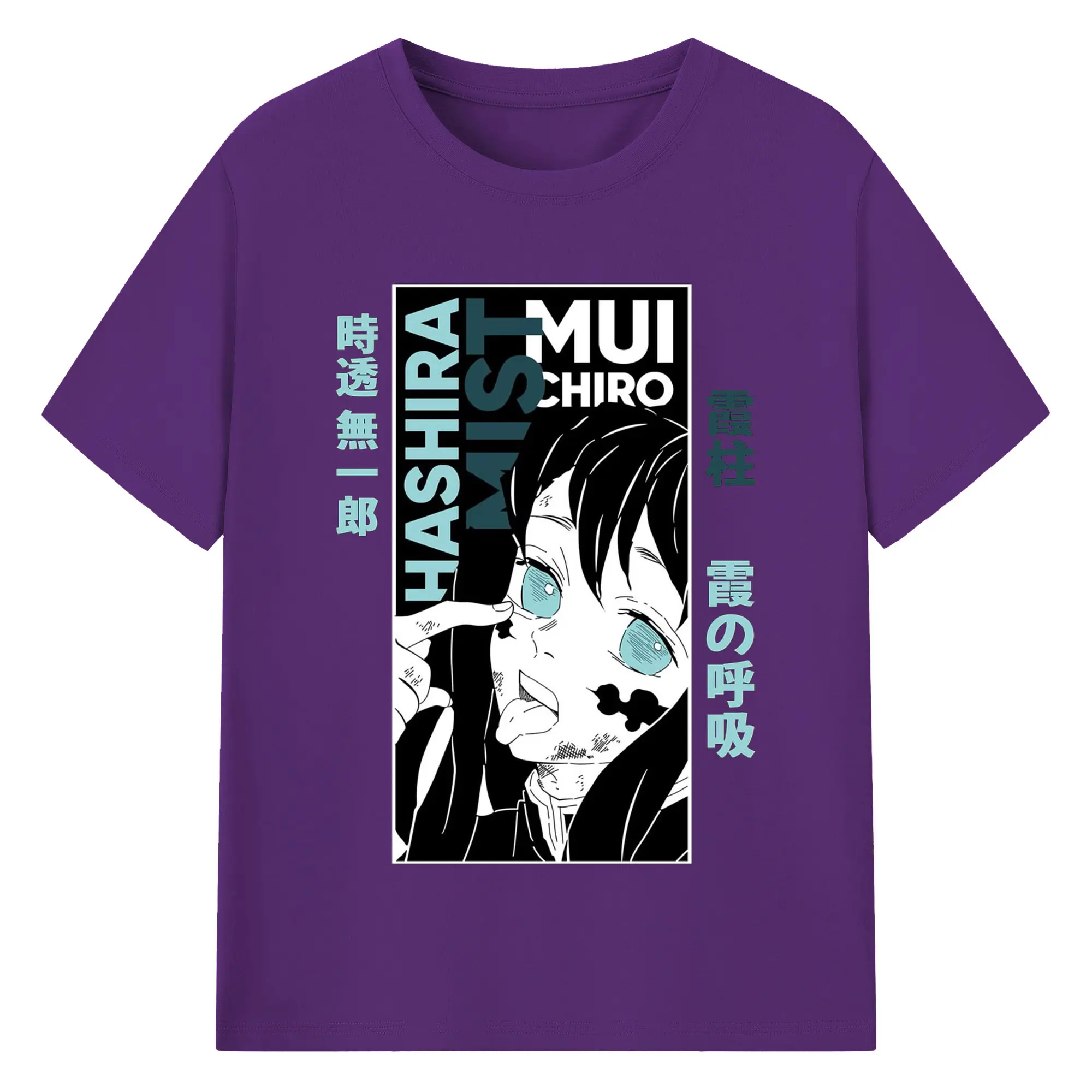 鬼滅の刃 冨岡義勇 - 綿100% 半袖Tシャツ ・ フロントプリント ・ 快適 通気性 ・ 日常使い 散歩 スポーツ用