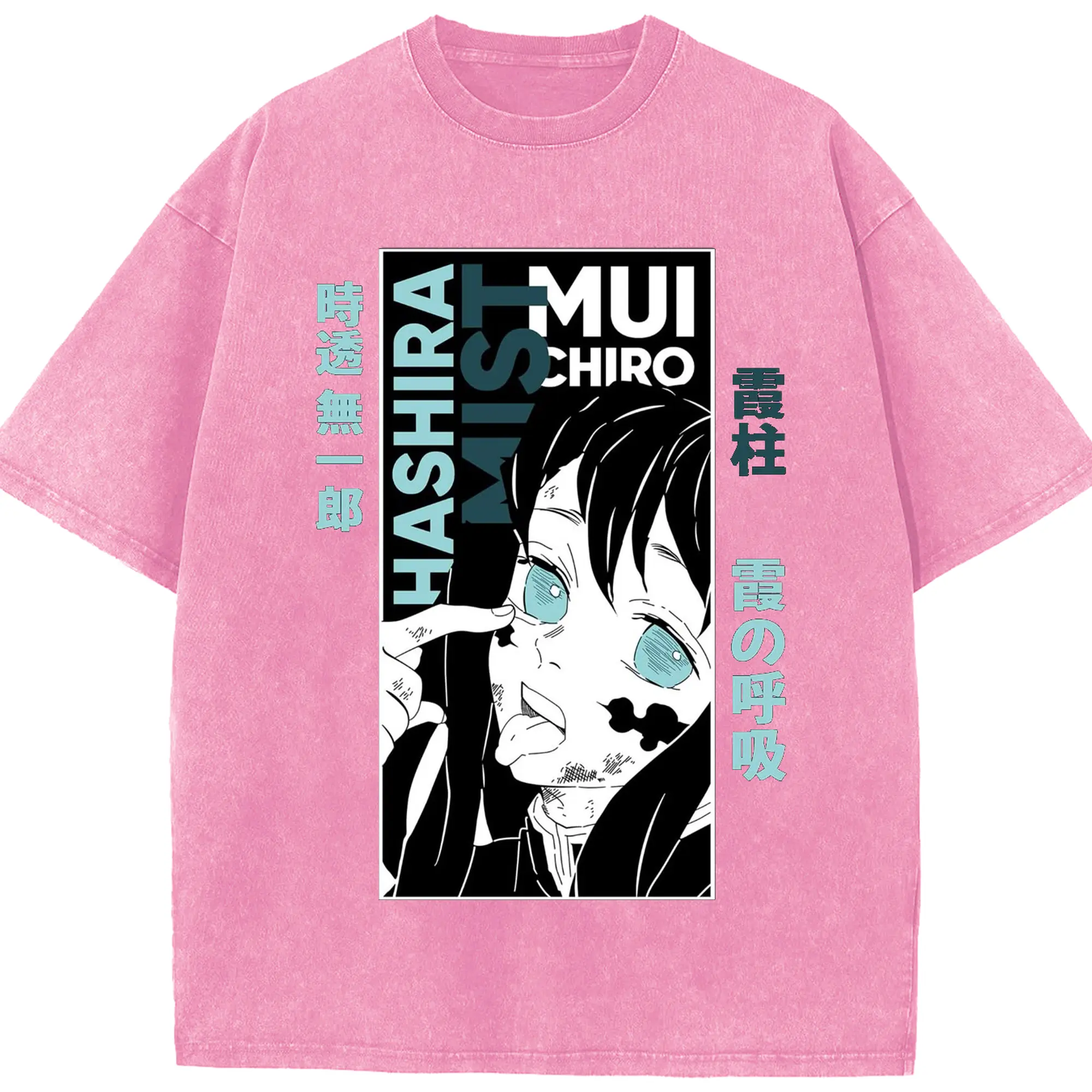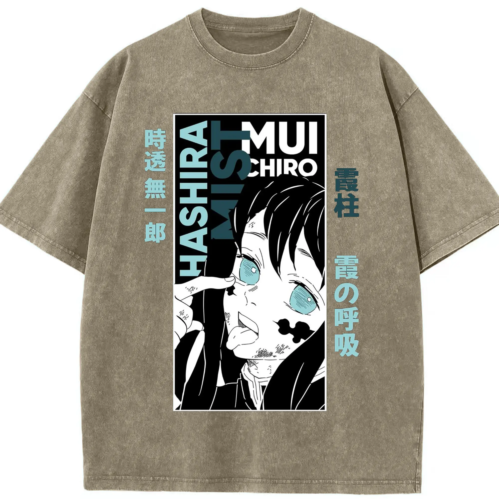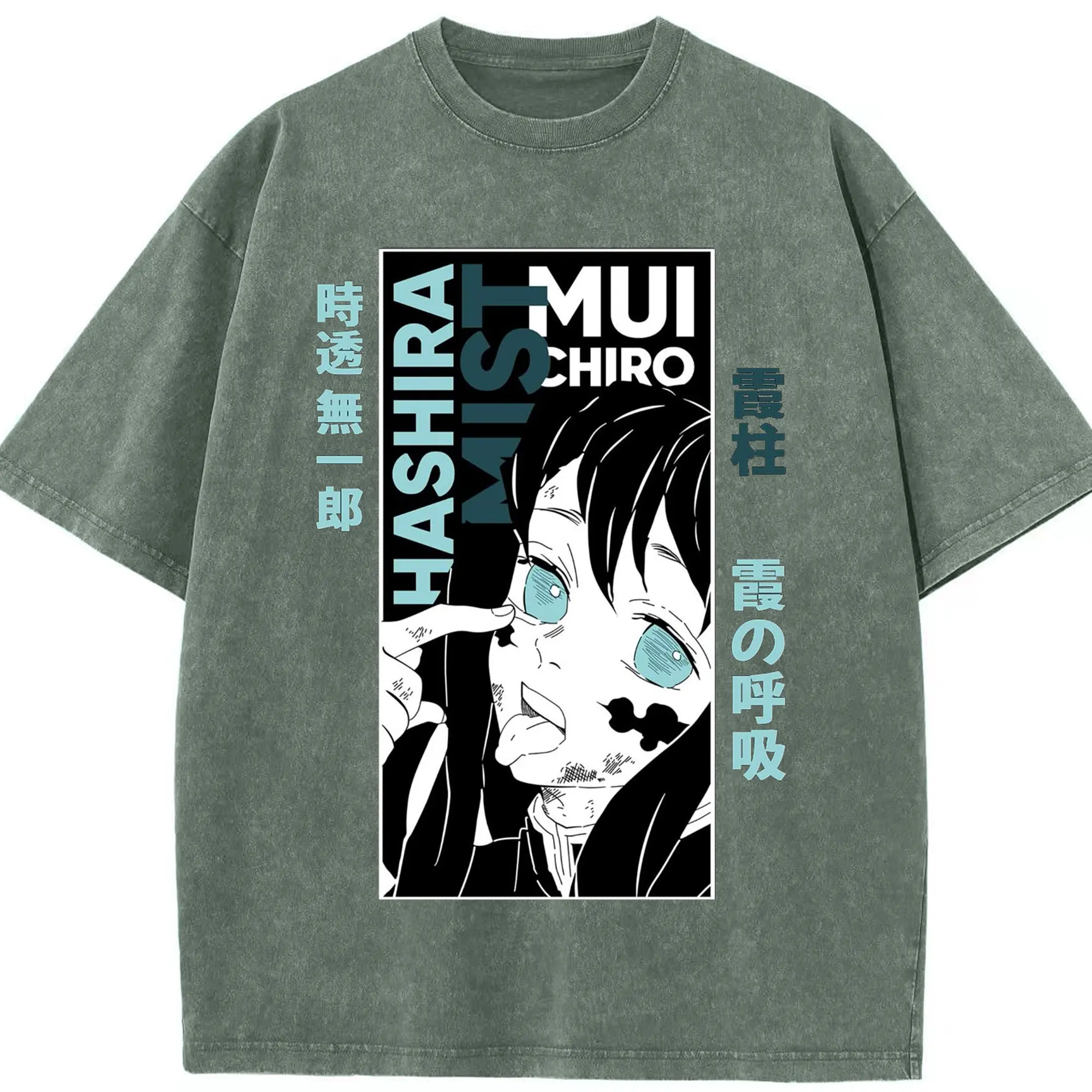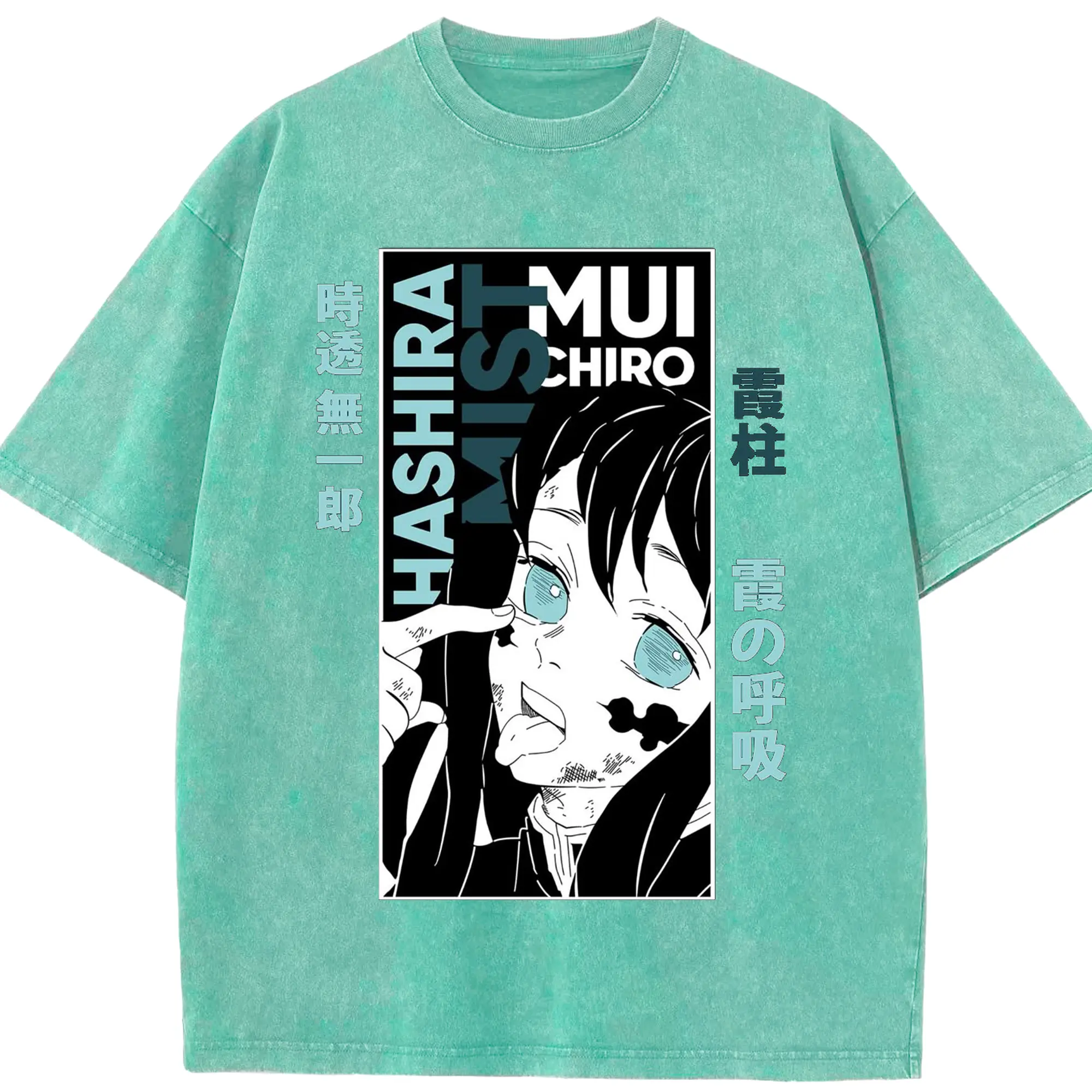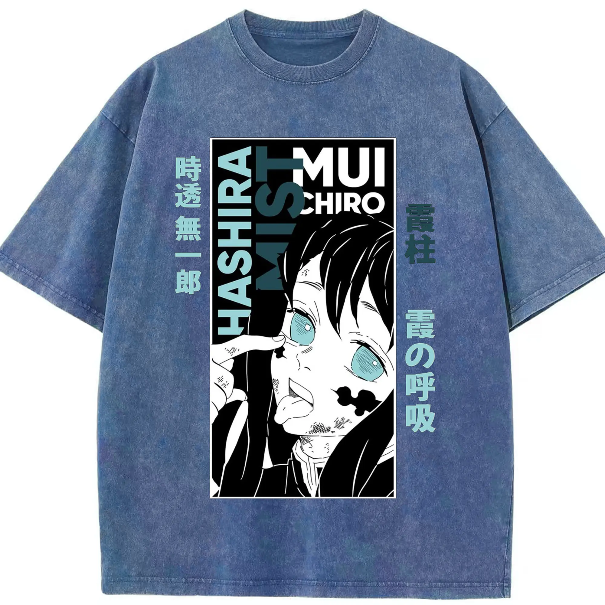 鬼滅の刃 霞の呼吸(時透) - 綿100% ヴィンテージ風 半袖Tシャツ ・ フロントプリント ・ 柔らか肌触り ・ 通気性 快適 ・ スポーツ カジュアル 外出用