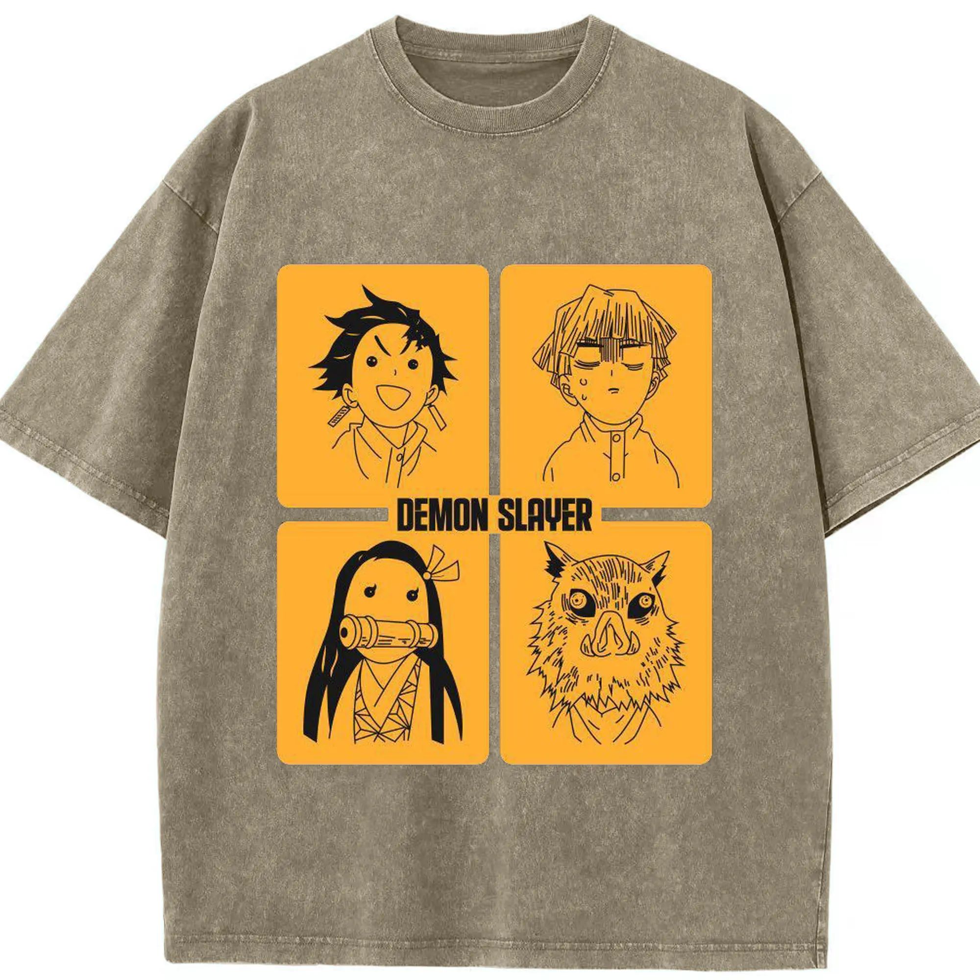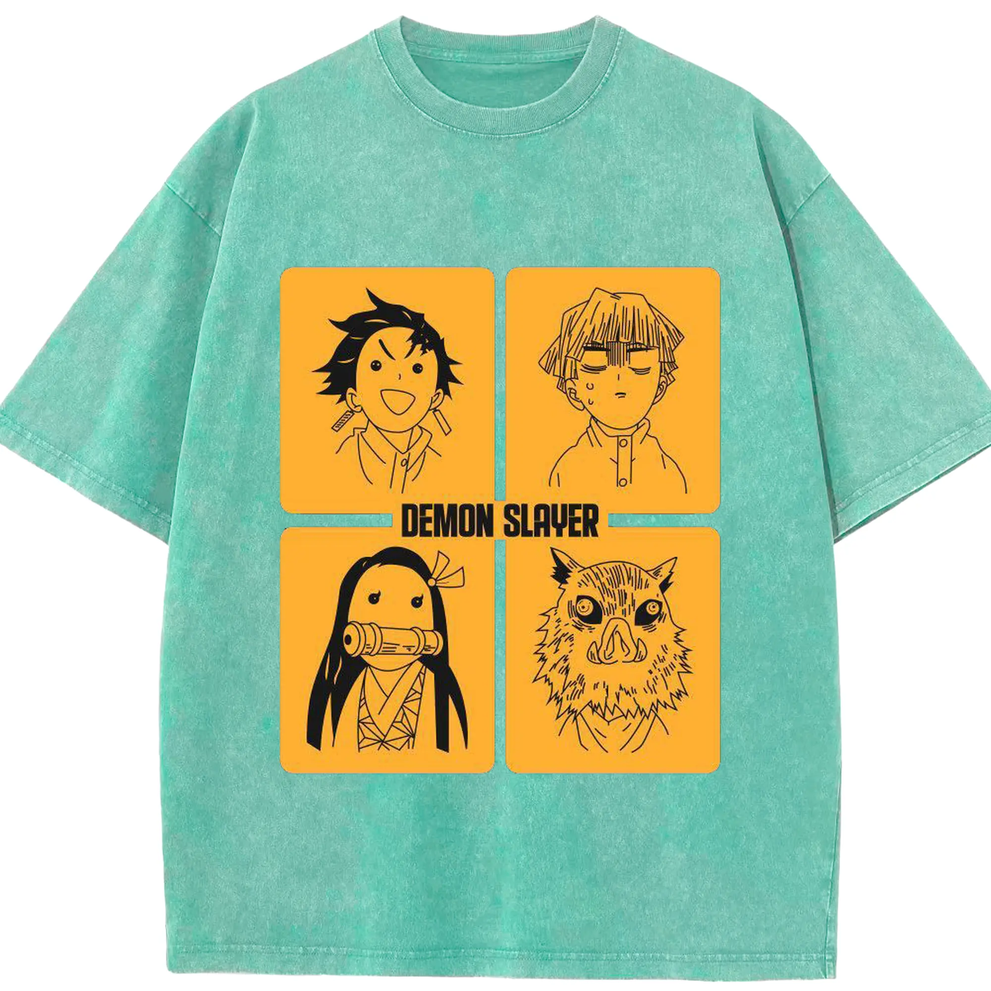 鬼滅の刃 鬼殺隊 デフォルト - 綿100% ヴィンテージ風 半袖Tシャツ ・ フロントプリント ・ 柔らか肌触り ・ 通気性 快適 ・ スポーツ カジュアル 外出用