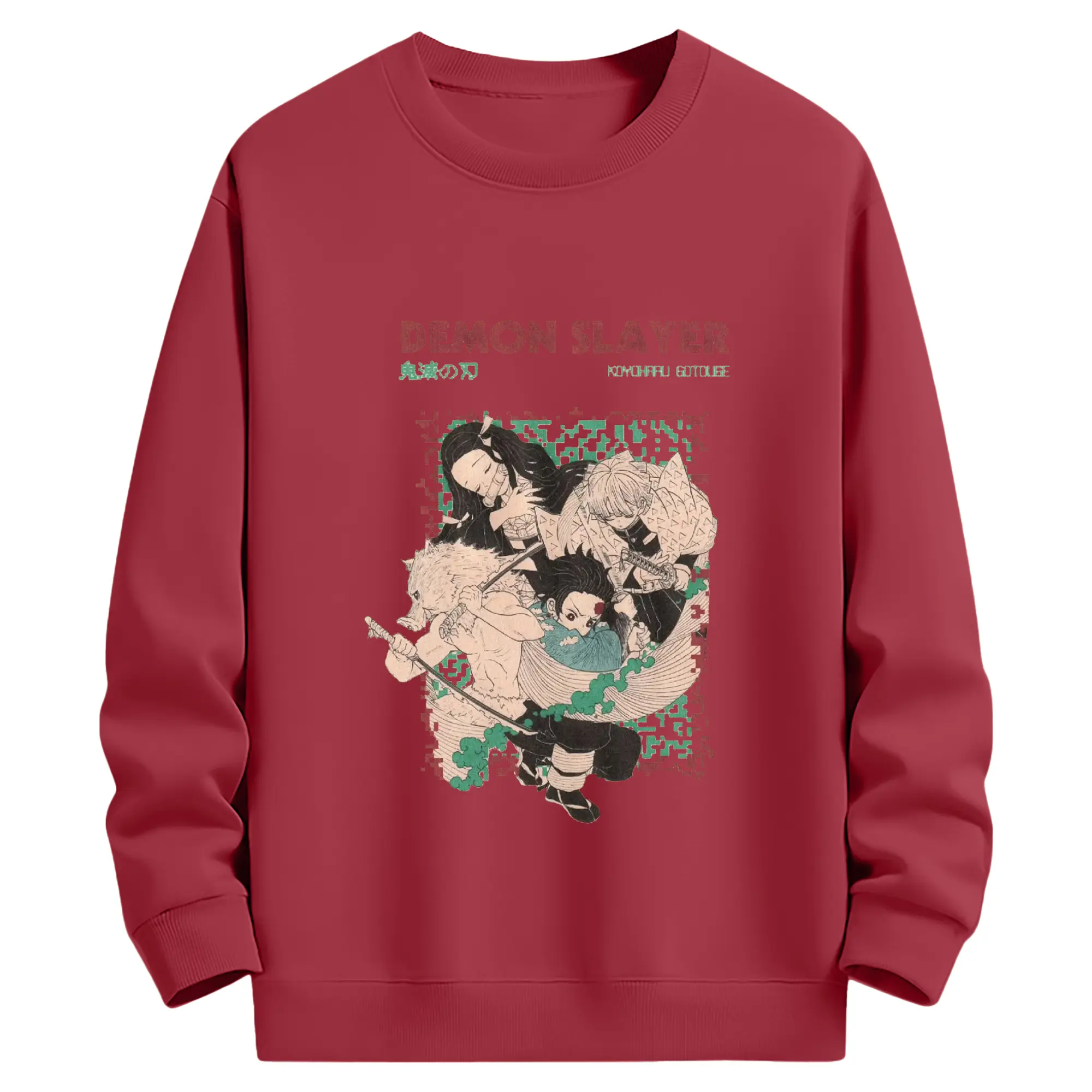鬼滅の刃 竈門禰豆子 - 高品質 クルーネック スウェット ・ コットン59% ポリエステル41% ・ ユニセックス 長袖 トレーナー ・ カジュアル デイリー スポーツ 散歩用