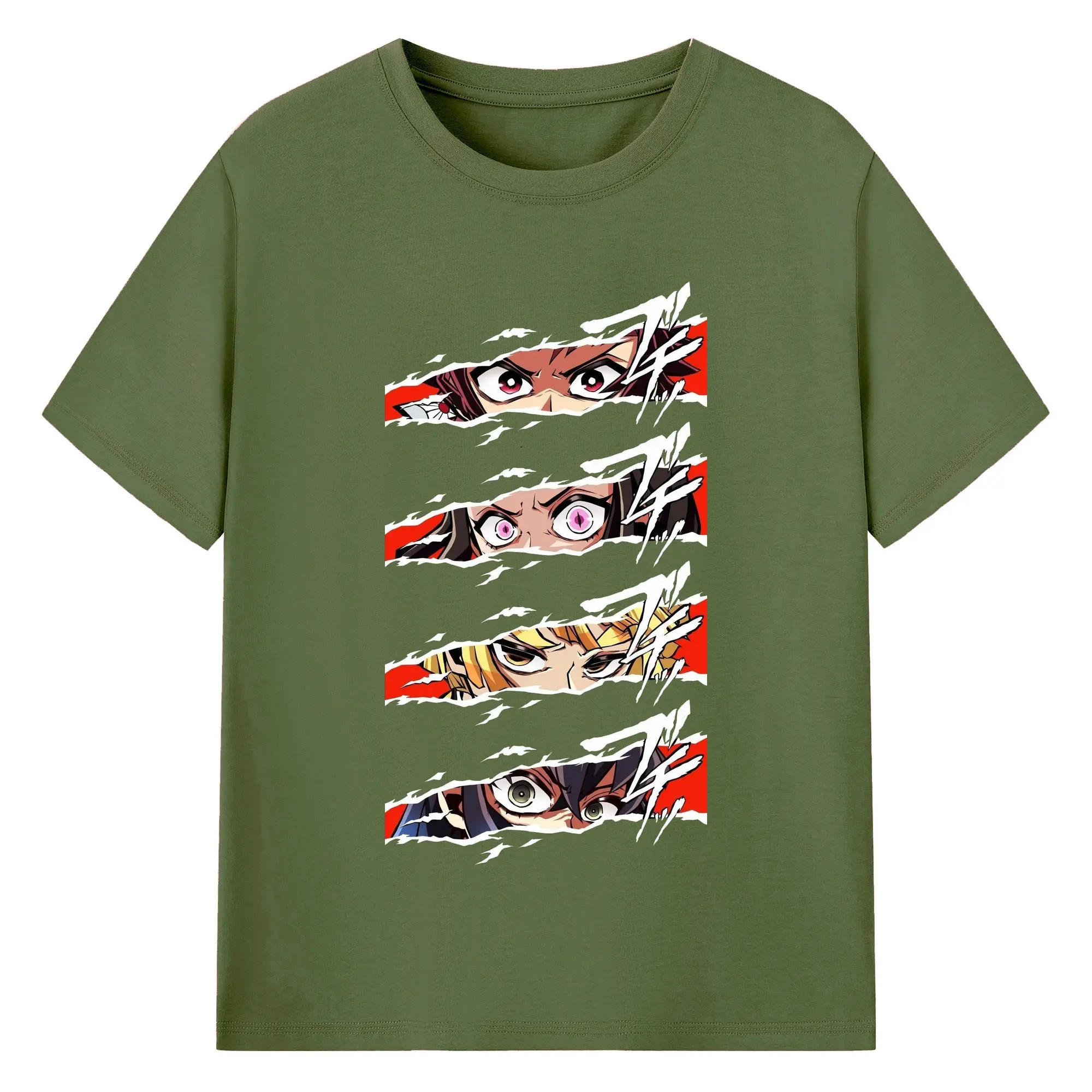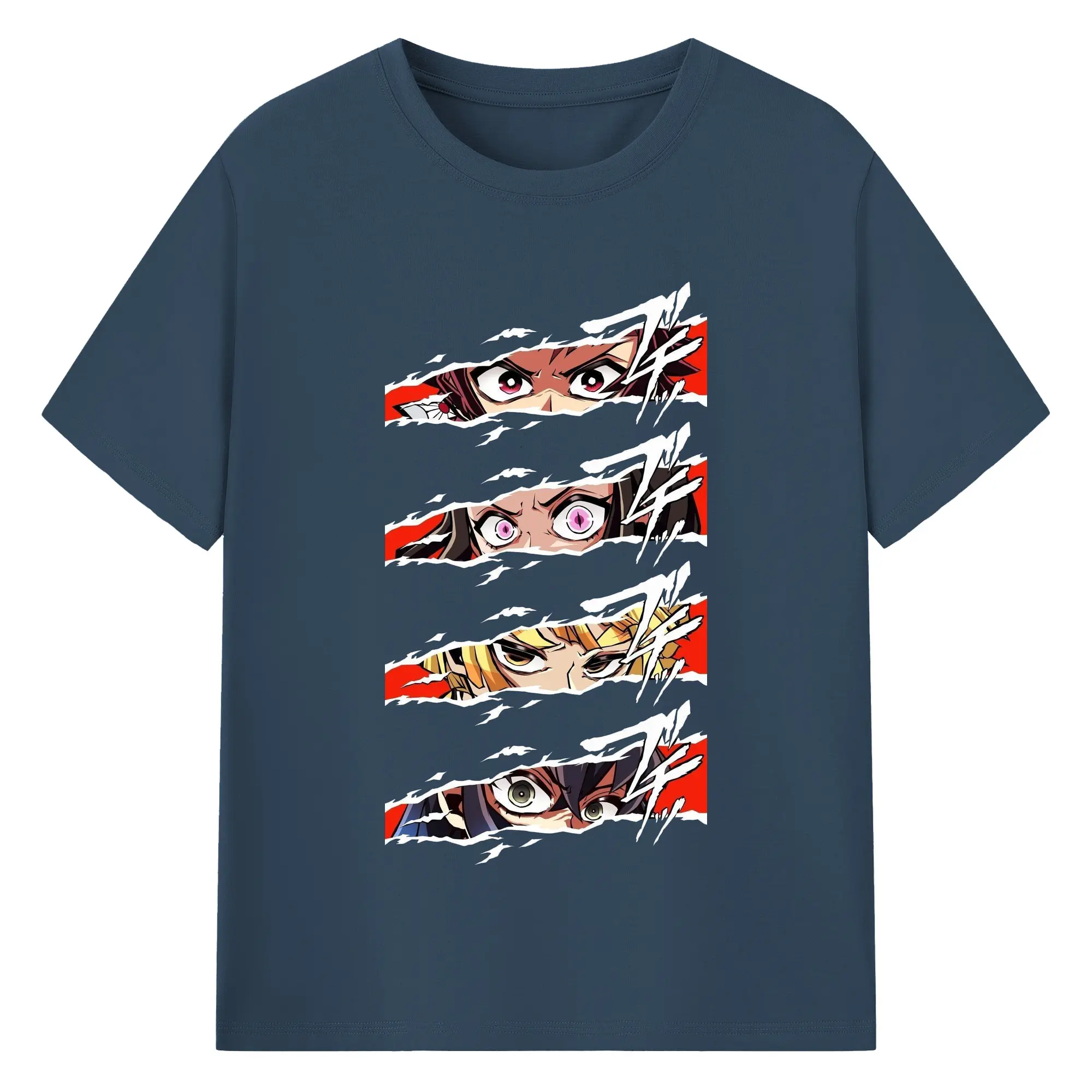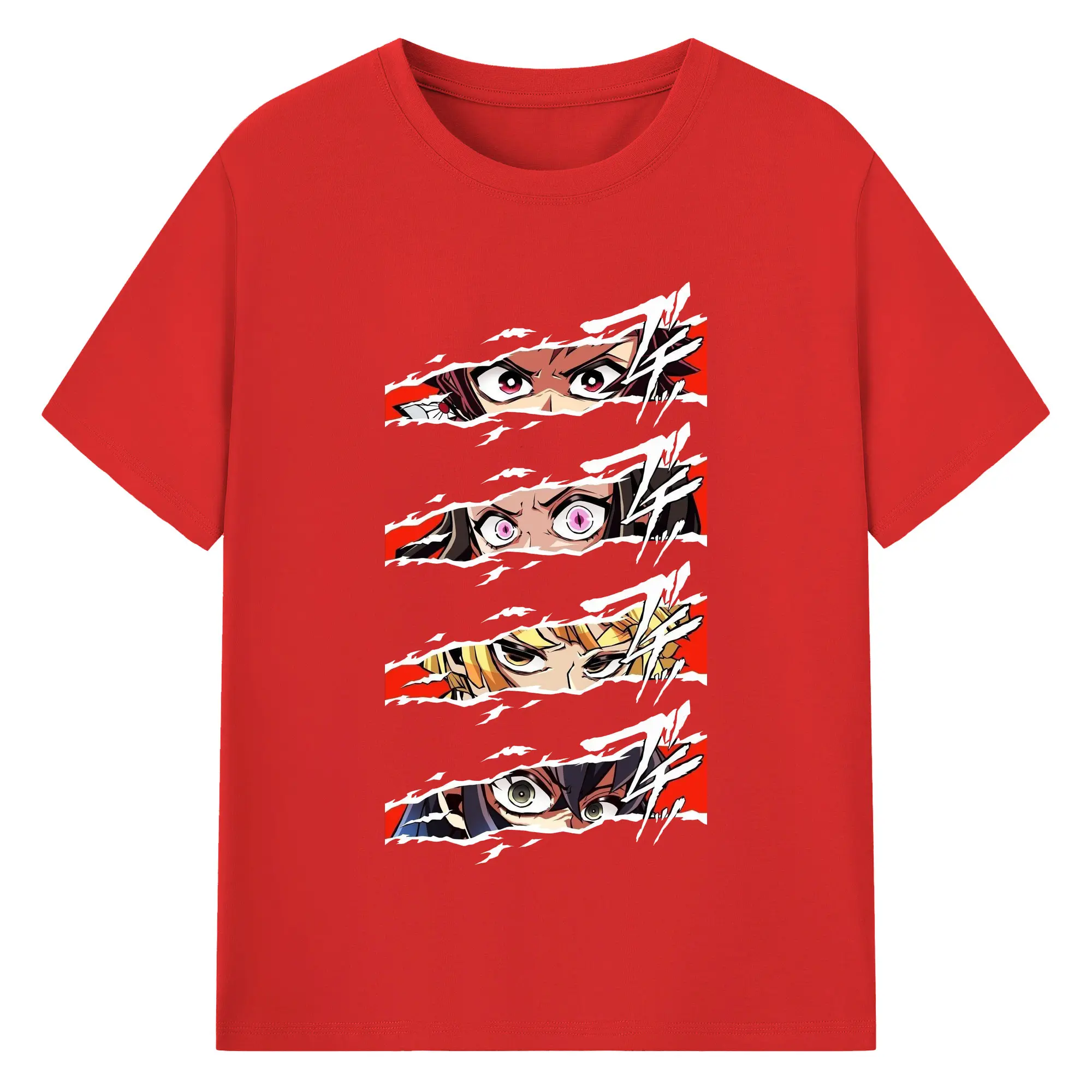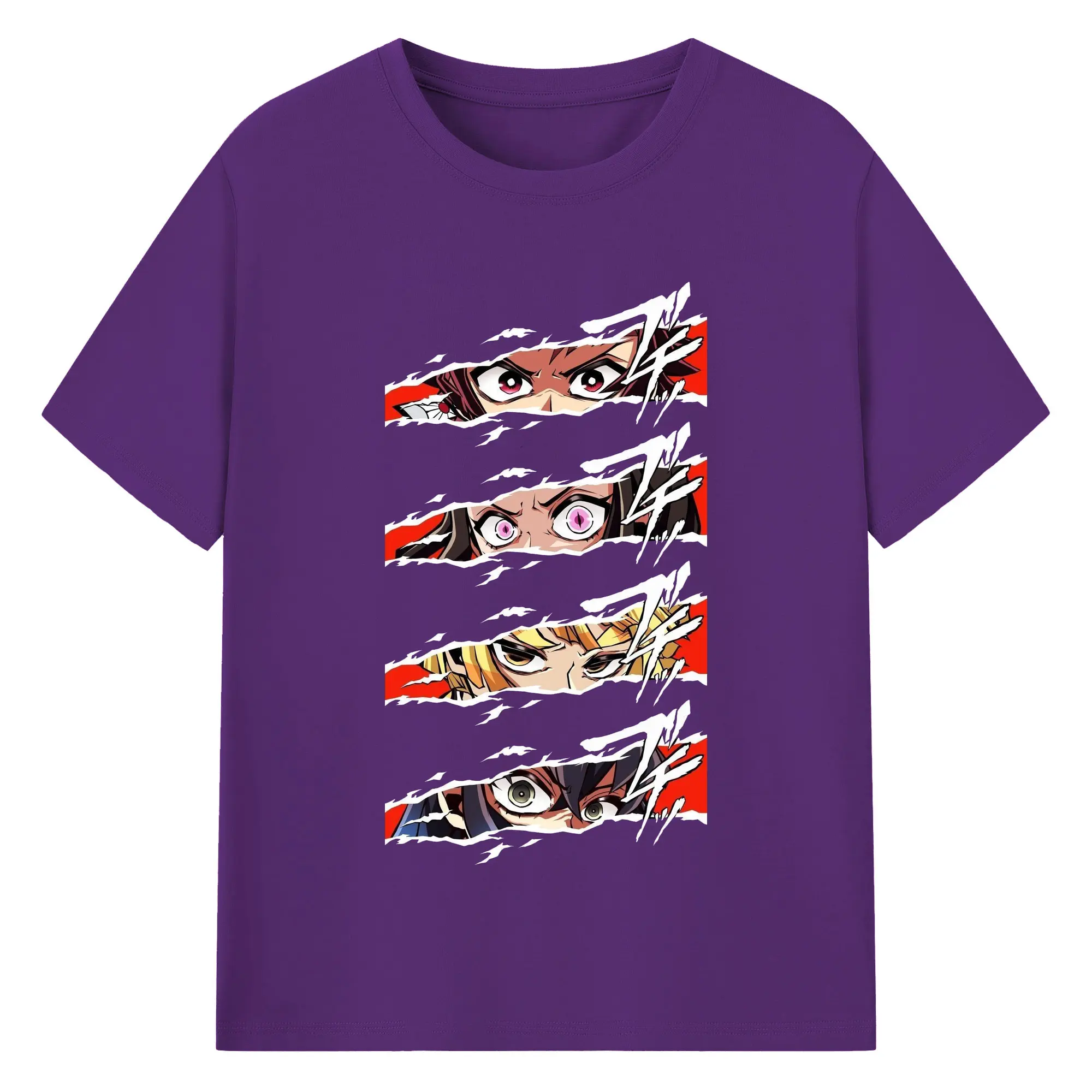 鬼滅の刃 鬼殺隊 炭治郎禰豆子善逸伊之助 - 綿100% 半袖Tシャツ ・ フロントプリント ・ 快適 通気性 ・ 日常使い 散歩 スポーツ用