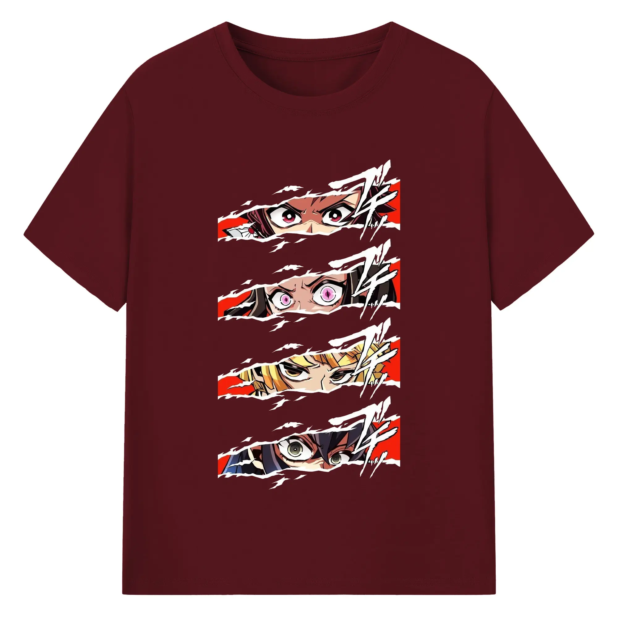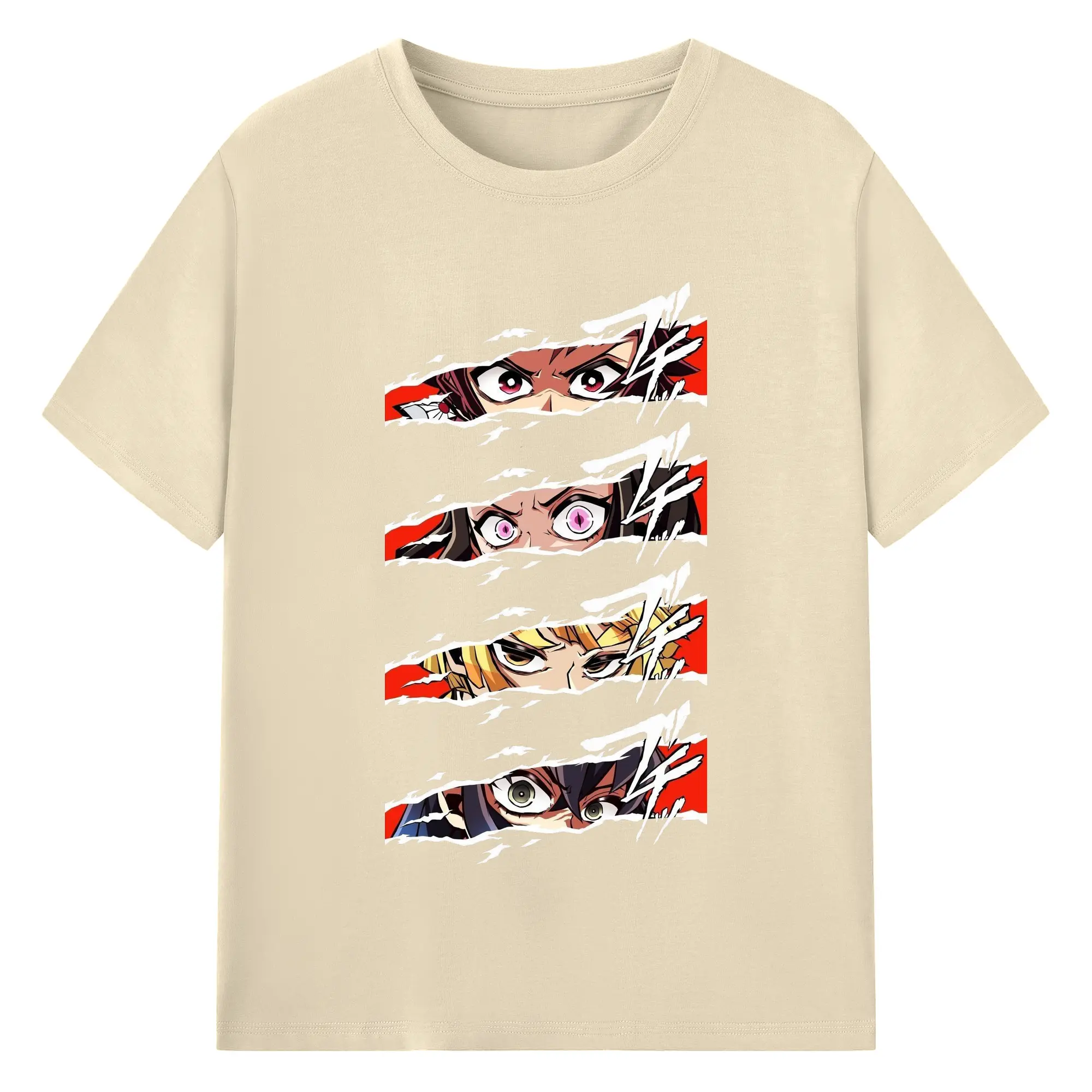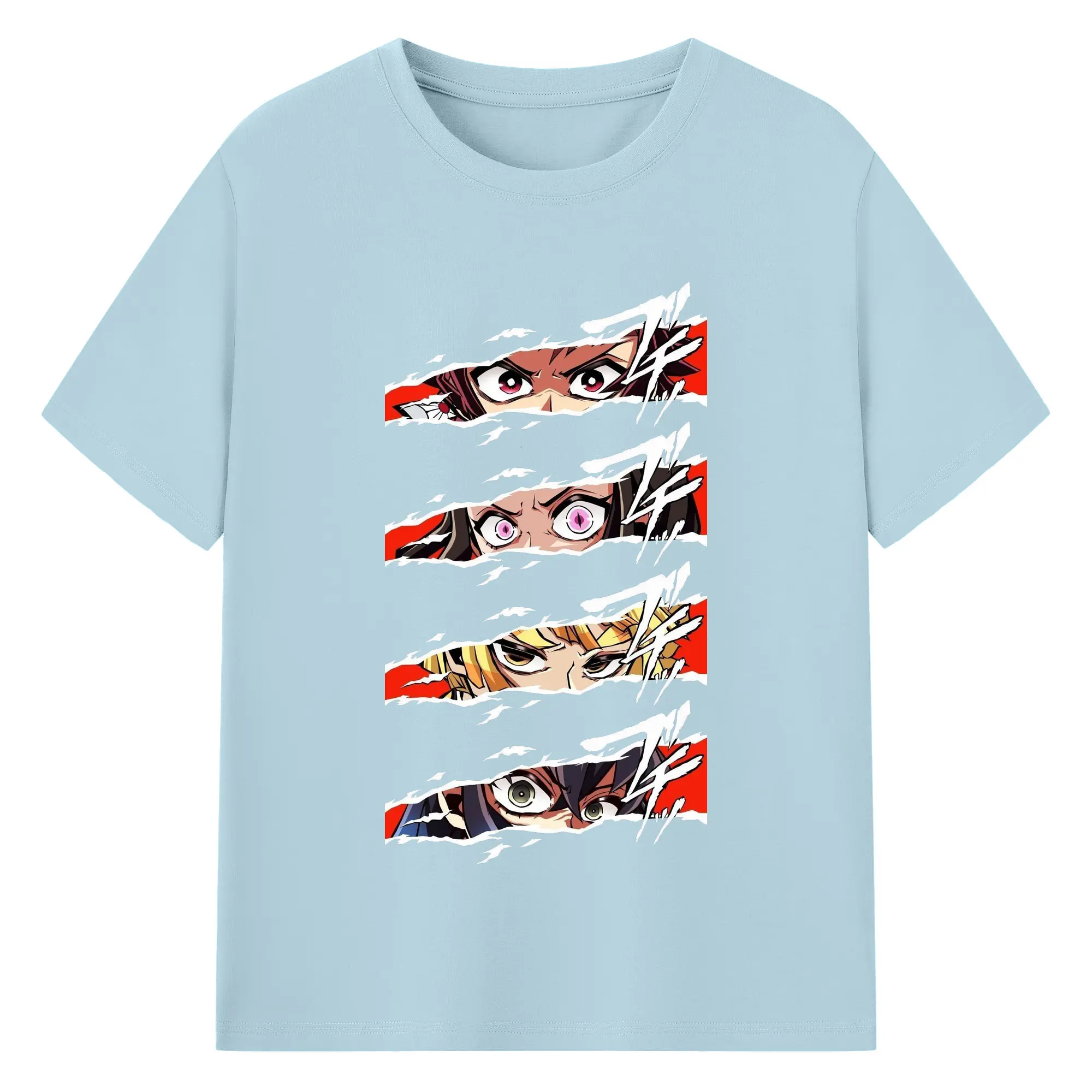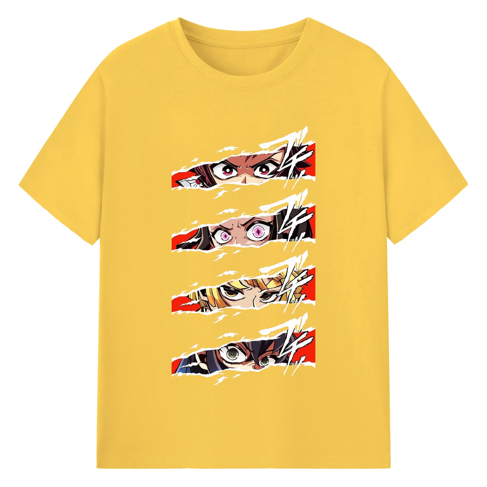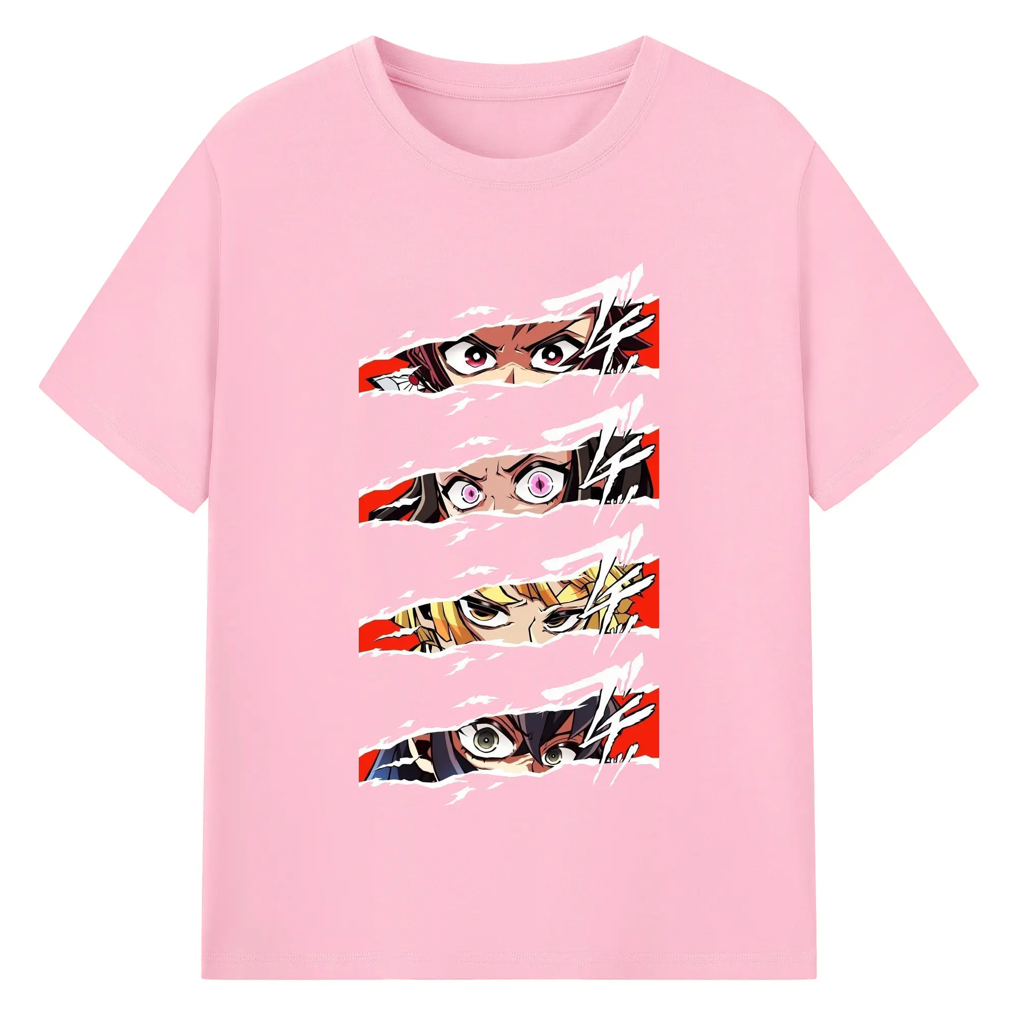 鬼滅の刃 鬼殺隊 炭治郎禰豆子善逸伊之助 - 綿100% 半袖Tシャツ ・ フロントプリント ・ 快適 通気性 ・ 日常使い 散歩 スポーツ用