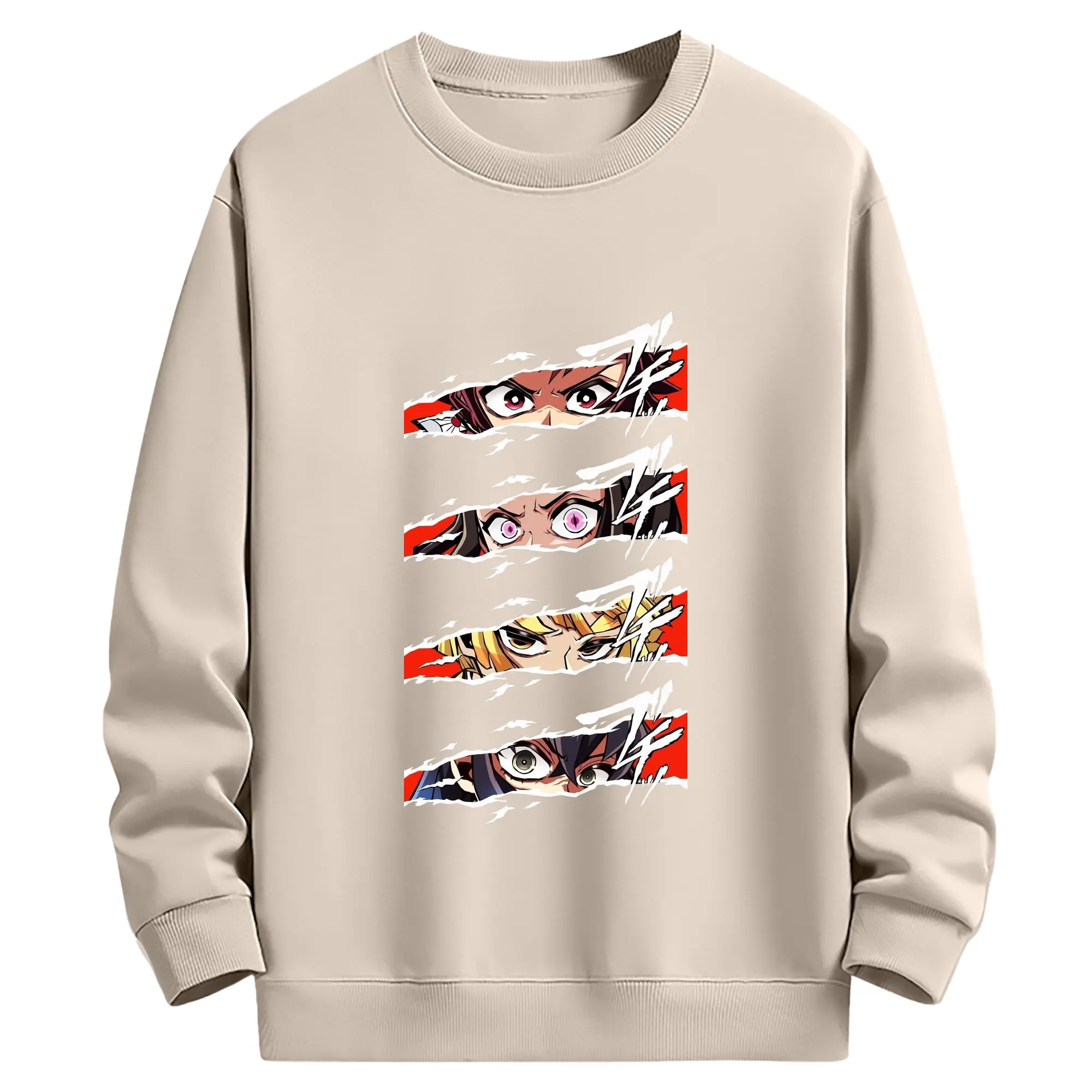 鬼滅の刃 鬼殺隊 炭治郎禰豆子善逸伊之助 - 高品質 クルーネック スウェット ・ コットン59% ポリエステル41% ・ ユニセックス 長袖 トレーナー ・ カジュアル デイリー スポーツ 散歩用