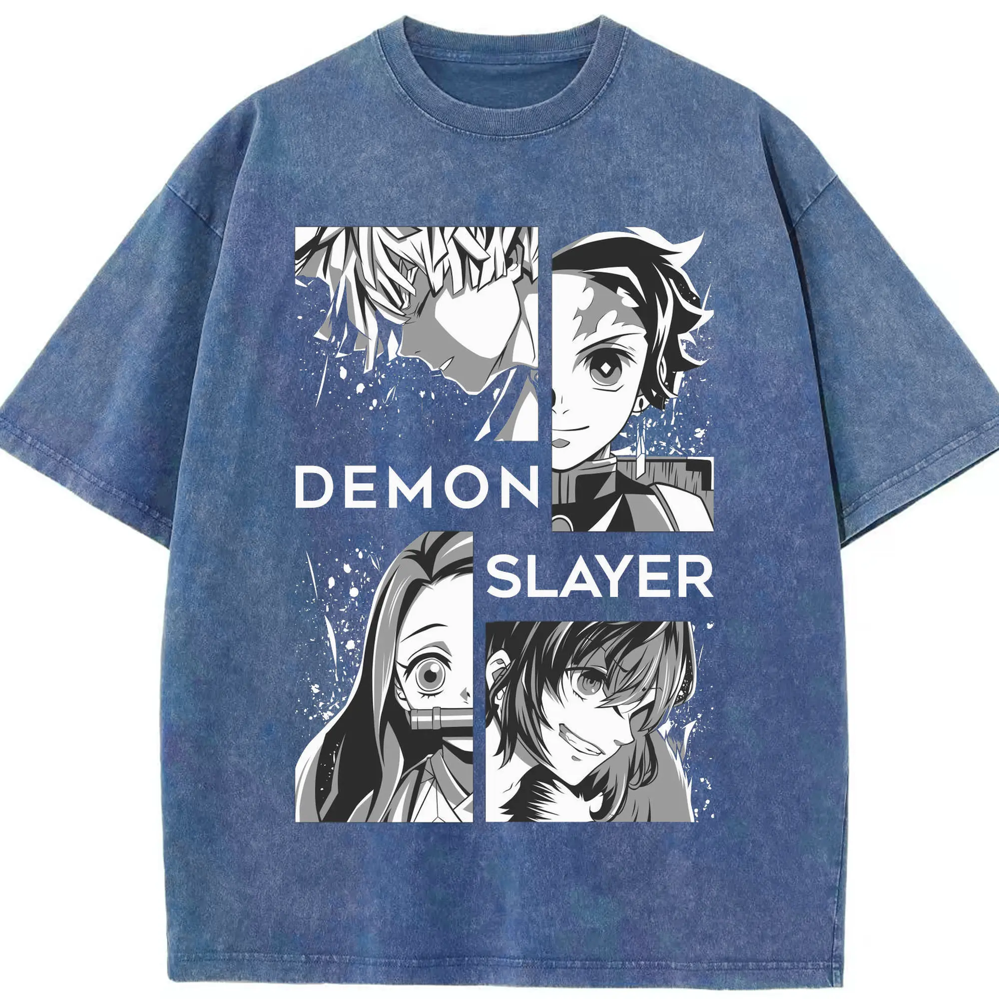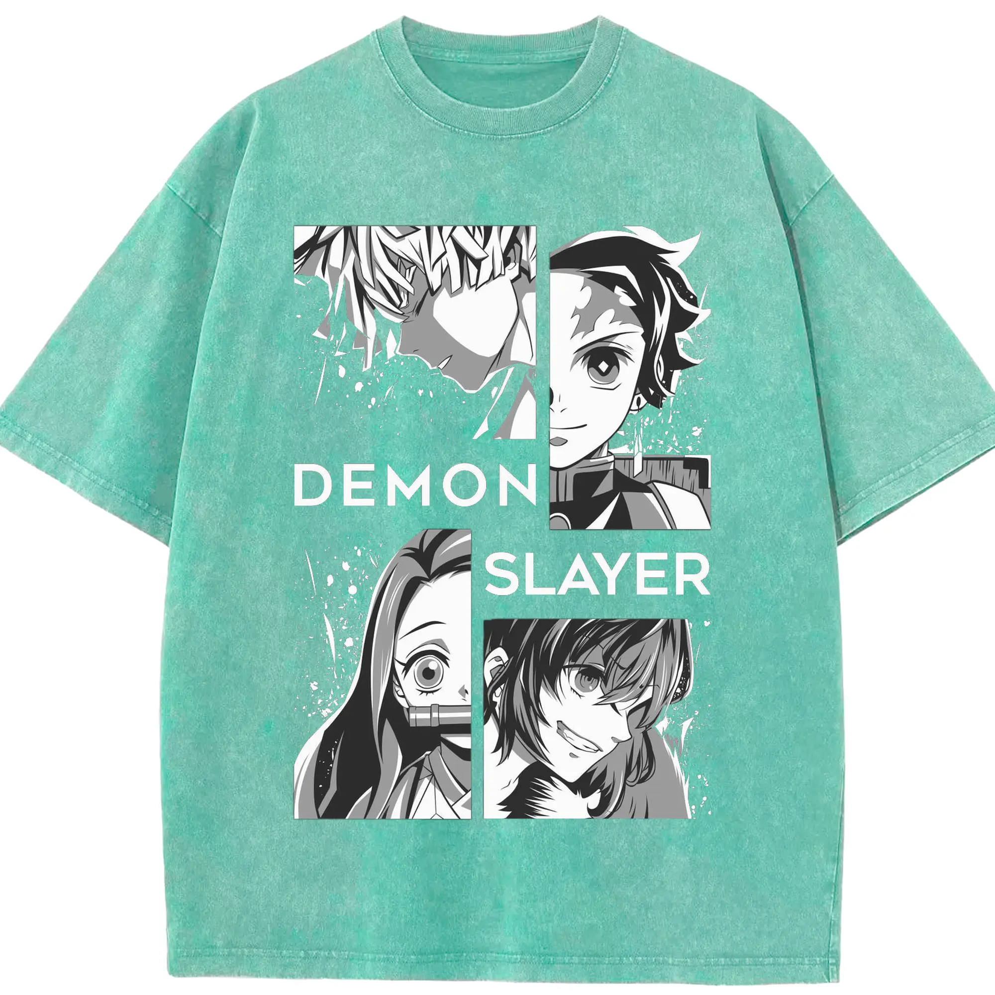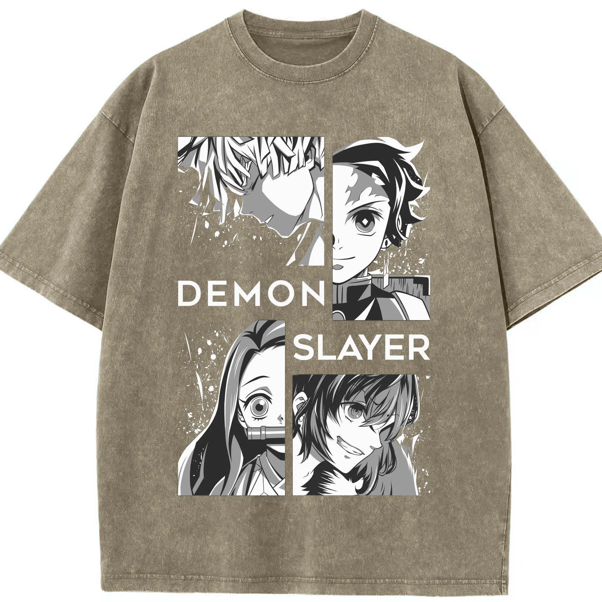 鬼滅の刃 鬼殺隊 炭治郎禰豆子善逸伊之助 - 綿100% ヴィンテージ風 半袖Tシャツ ・ フロントプリント ・ 柔らか肌触り ・ 通気性 快適 ・ スポーツ カジュアル 外出用