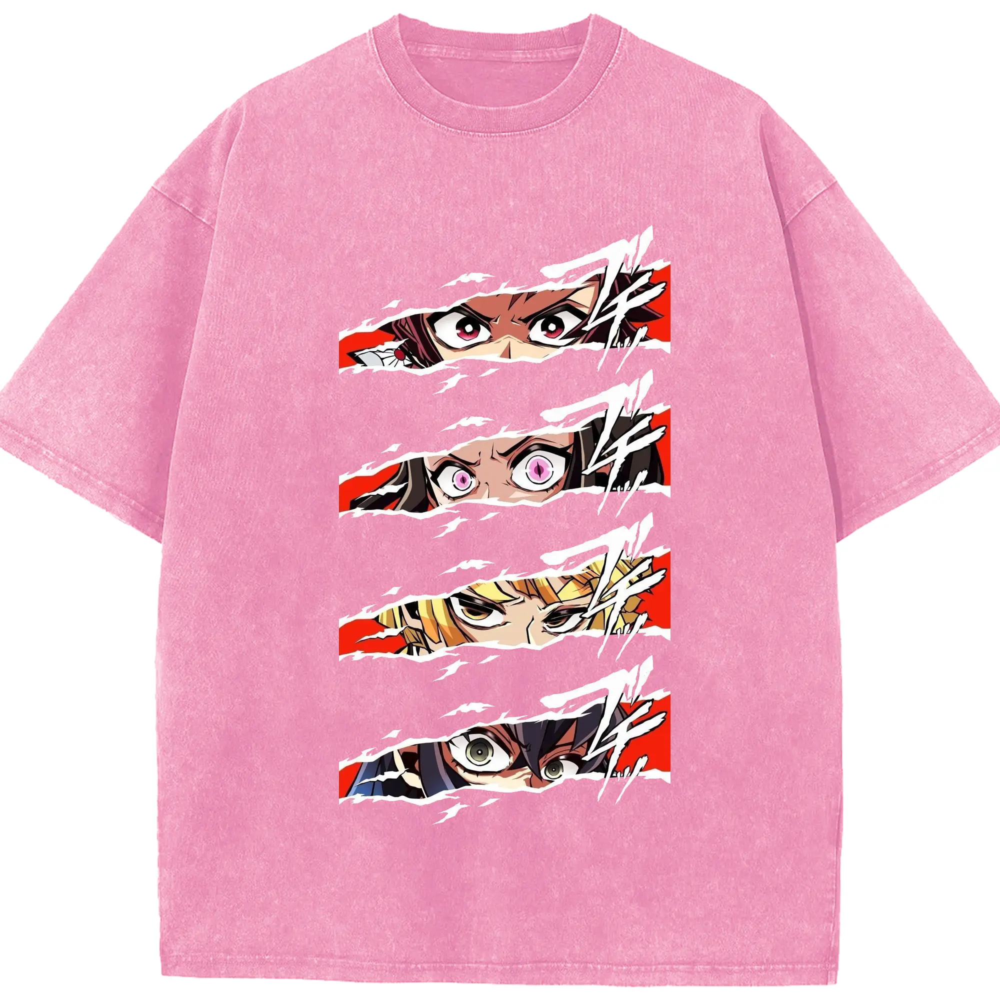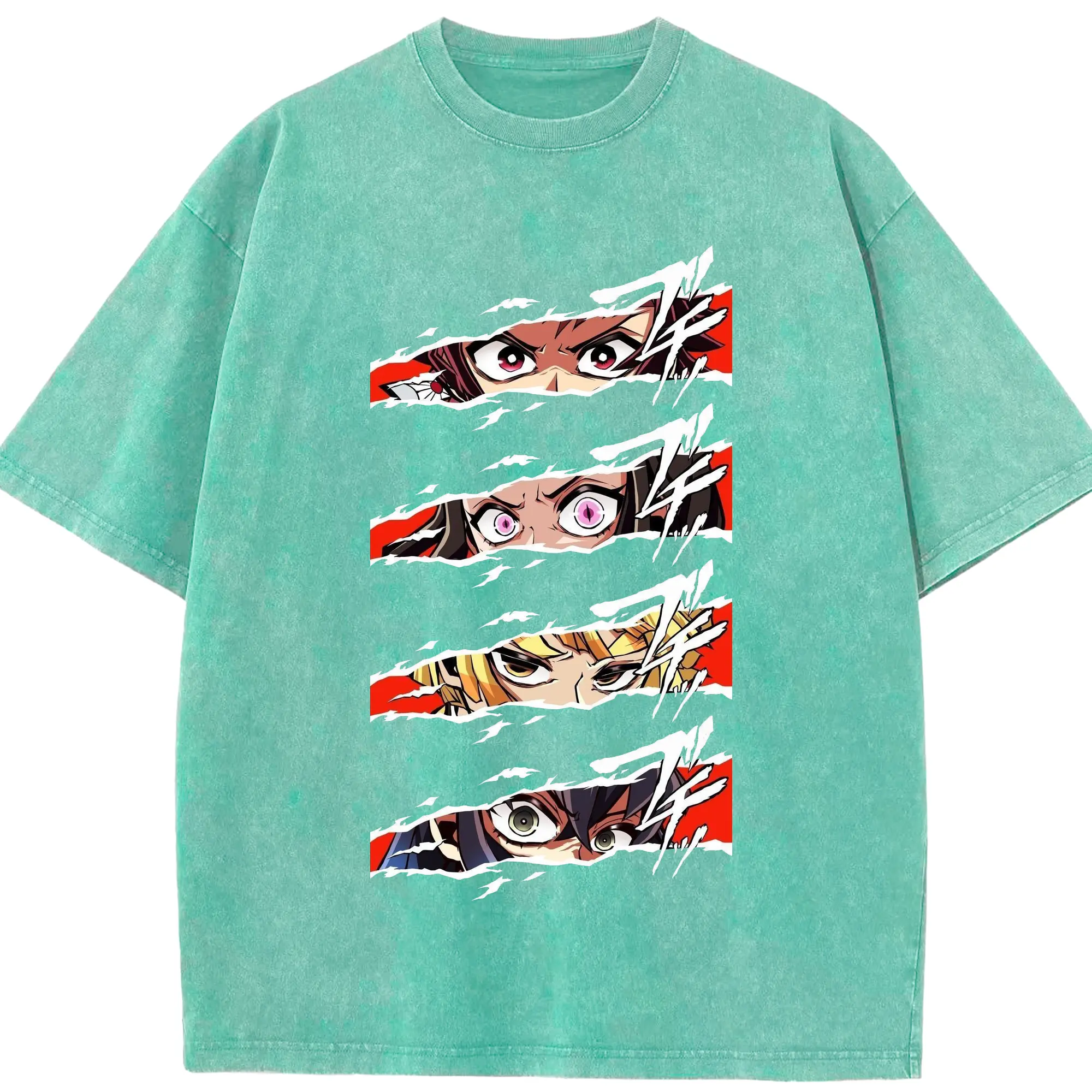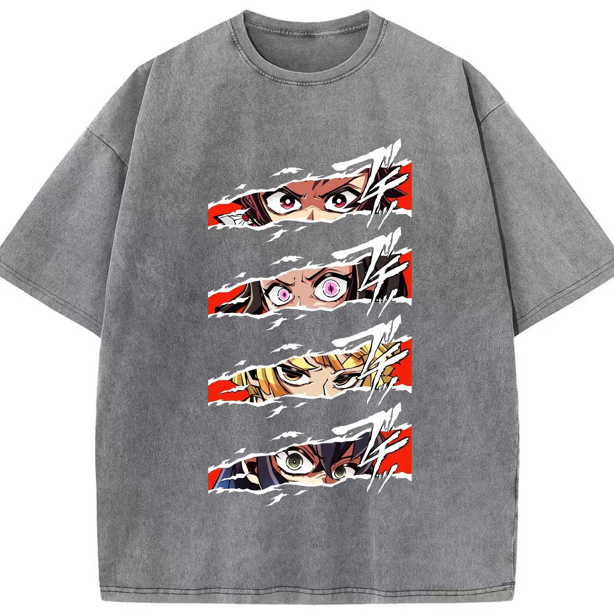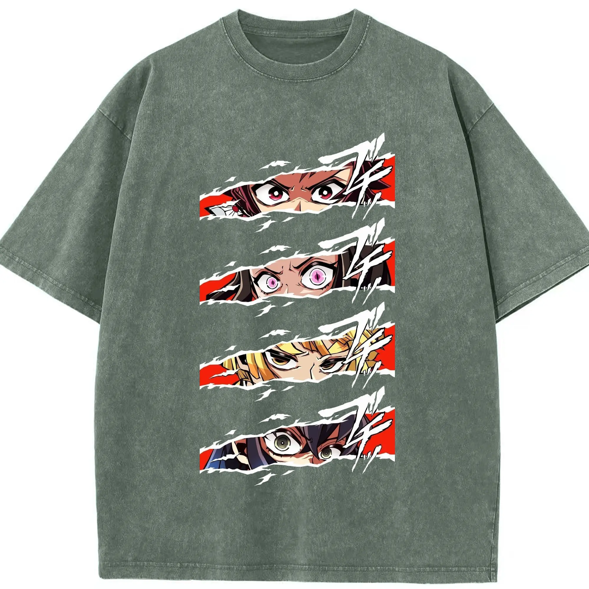 鬼滅の刃 鬼殺隊 炭治郎禰豆子善逸伊之助 - 綿100% ヴィンテージ風 半袖Tシャツ ・ フロントプリント ・ 柔らか肌触り ・ 通気性 快適 ・ スポーツ カジュアル 外出用