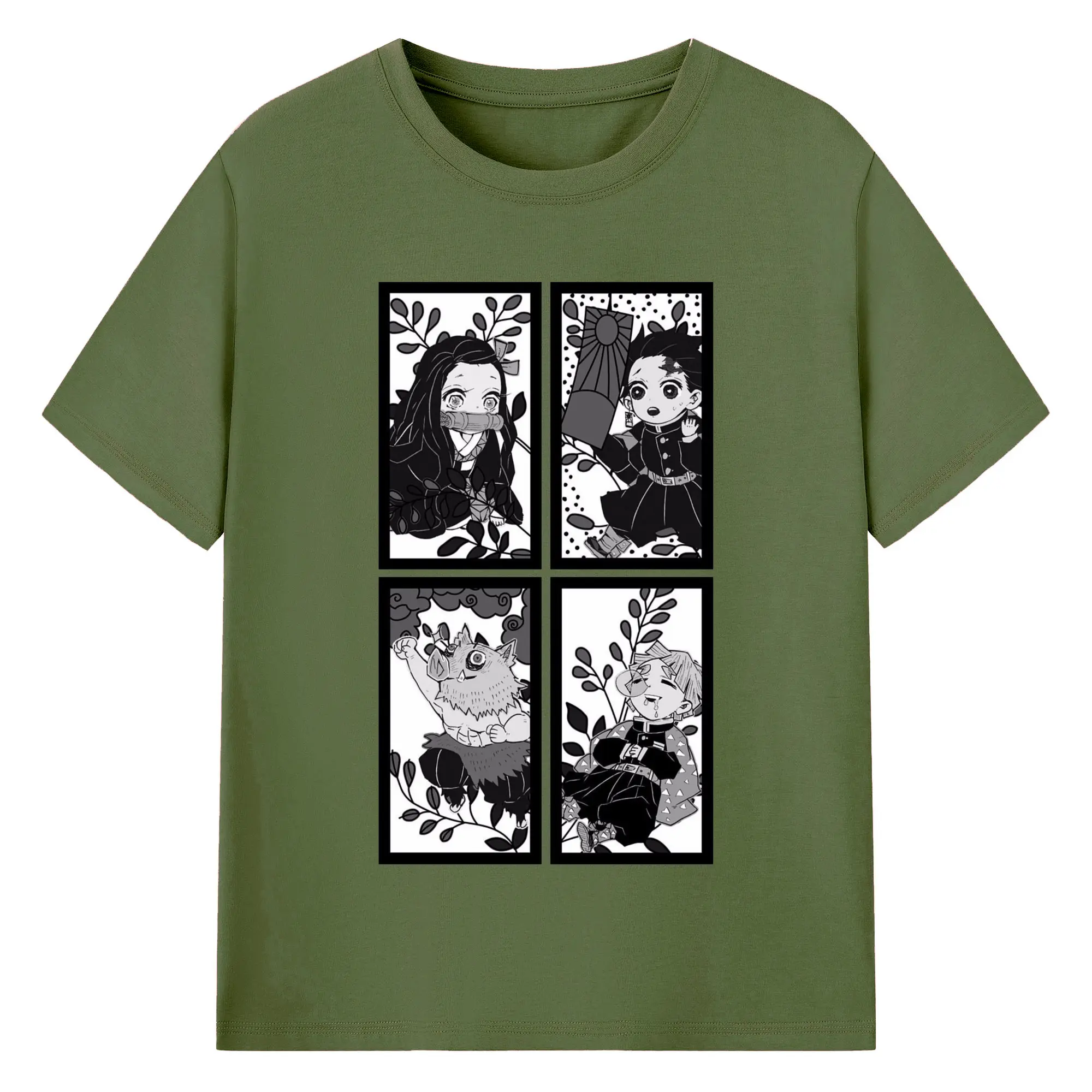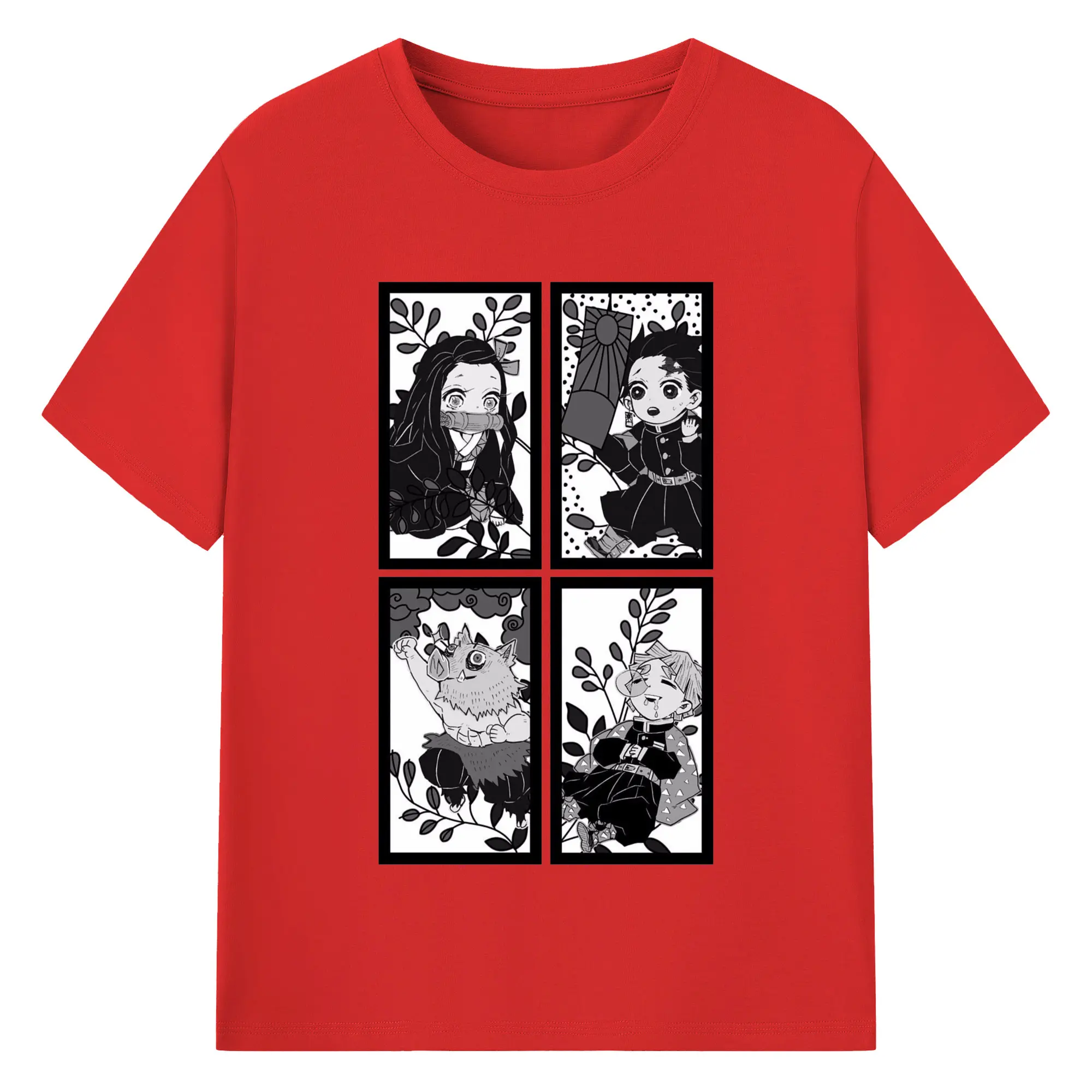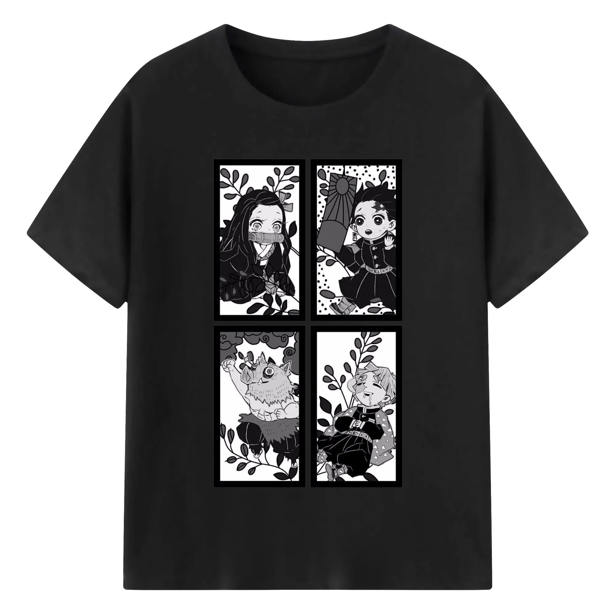 鬼滅の刃 鬼殺隊 炭治郎禰豆子善逸伊之助 - 綿100% 半袖Tシャツ ・ フロントプリント ・ 快適 通気性 ・ 日常使い 散歩 スポーツ用