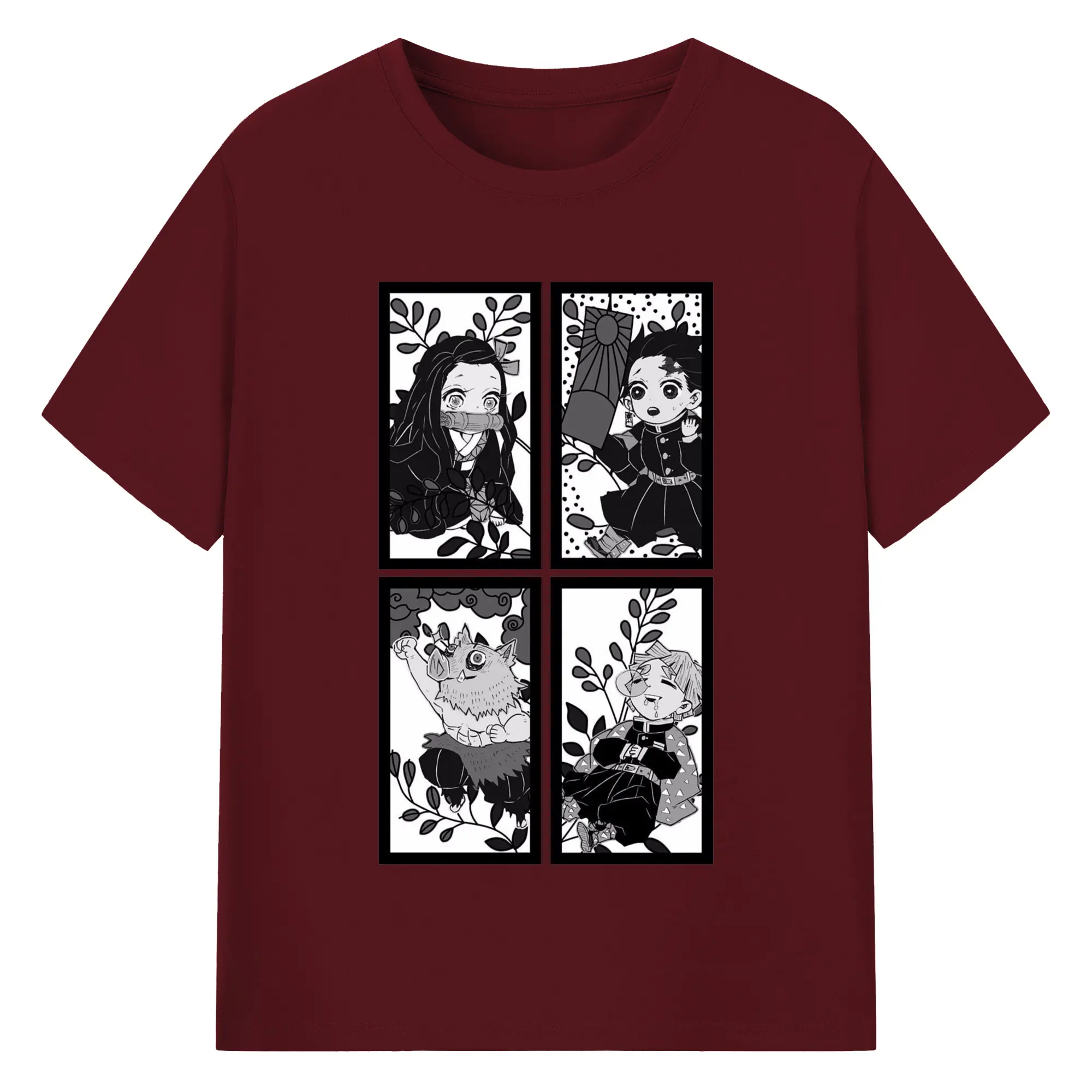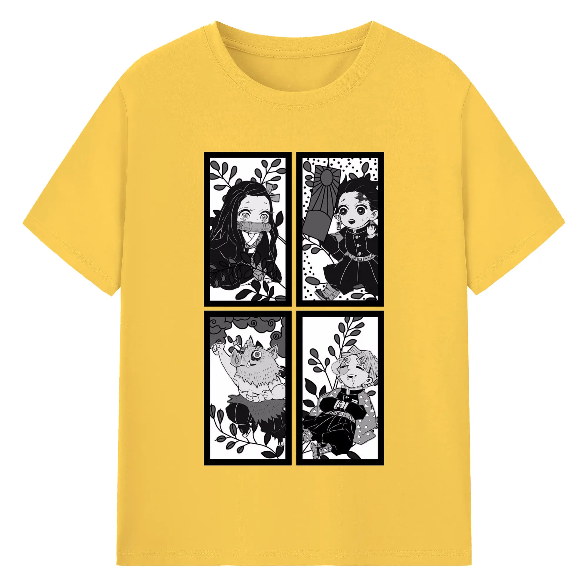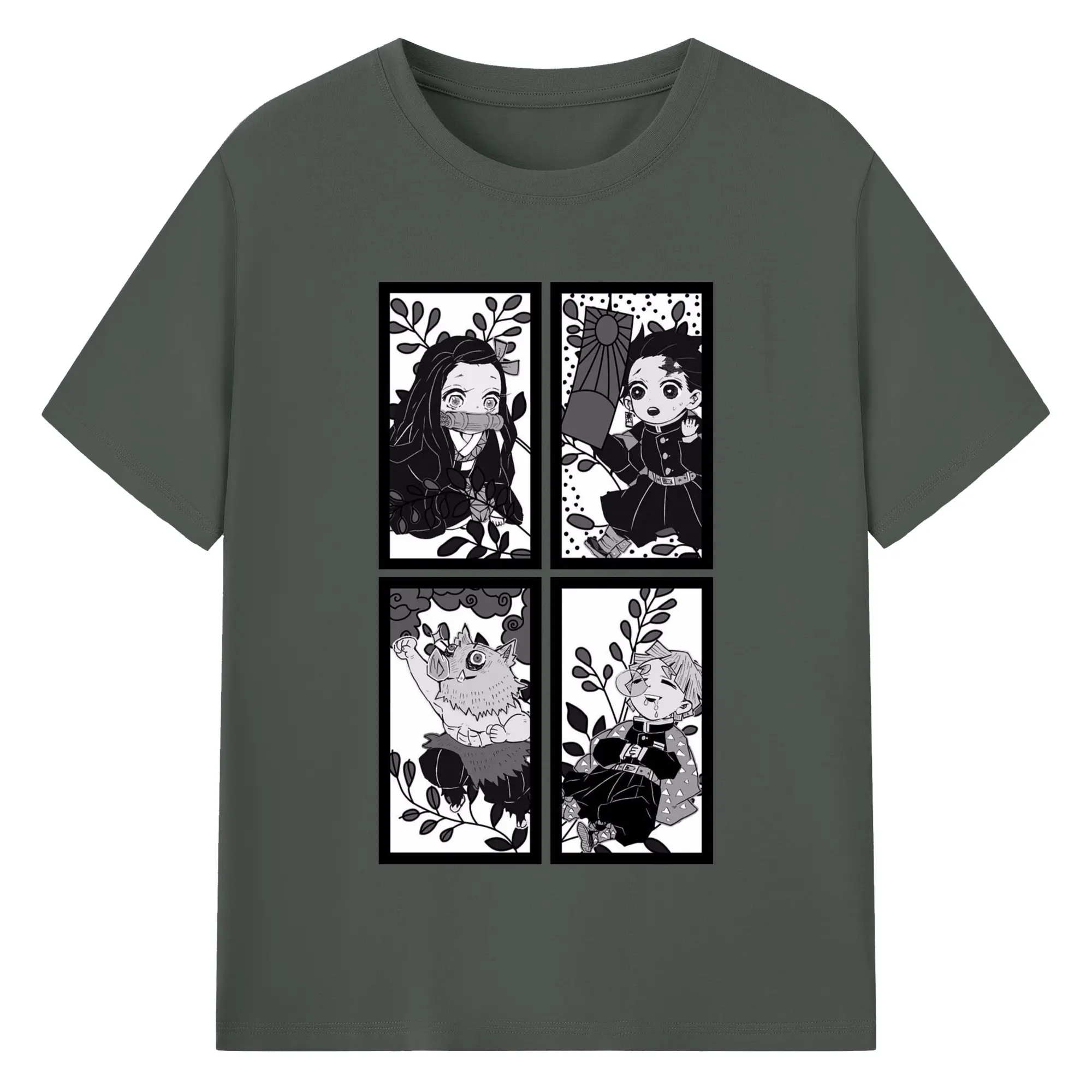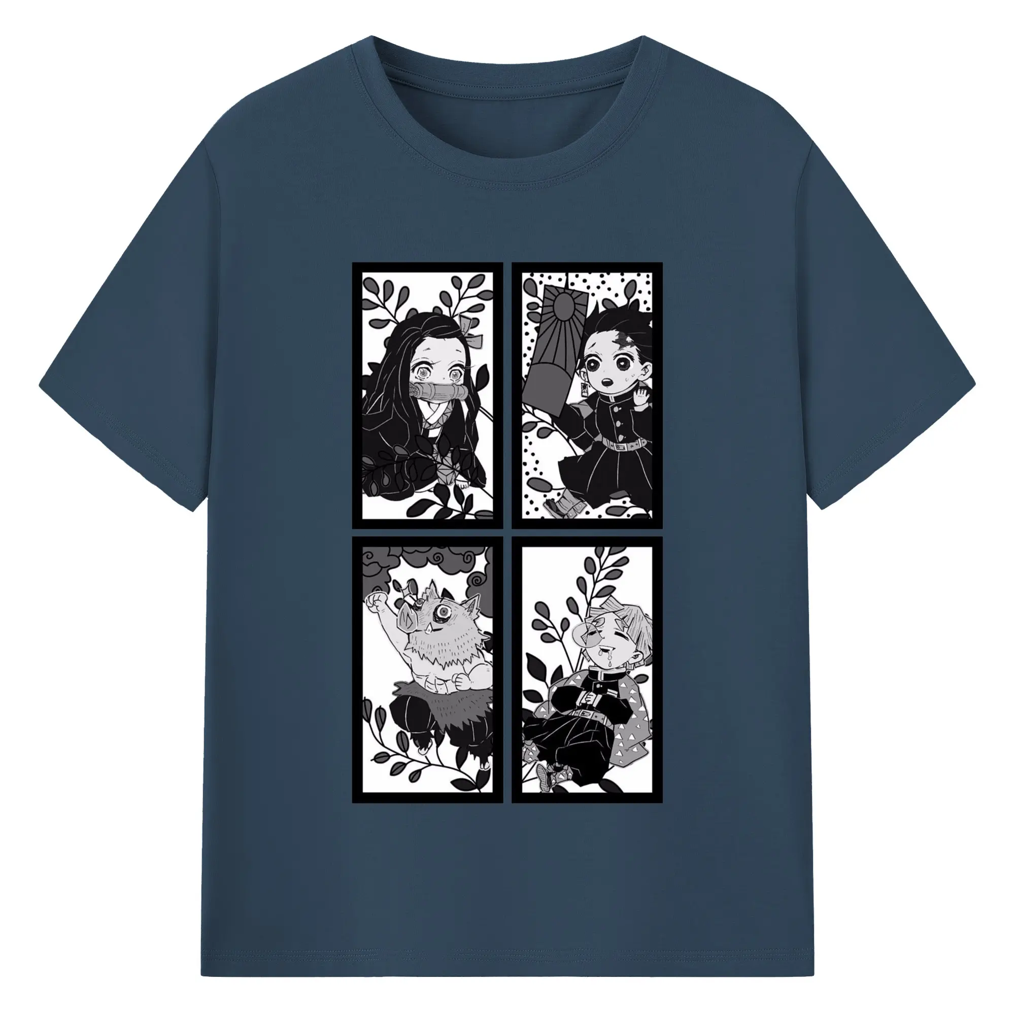 鬼滅の刃 鬼殺隊 炭治郎禰豆子善逸伊之助 - 綿100% 半袖Tシャツ ・ フロントプリント ・ 快適 通気性 ・ 日常使い 散歩 スポーツ用