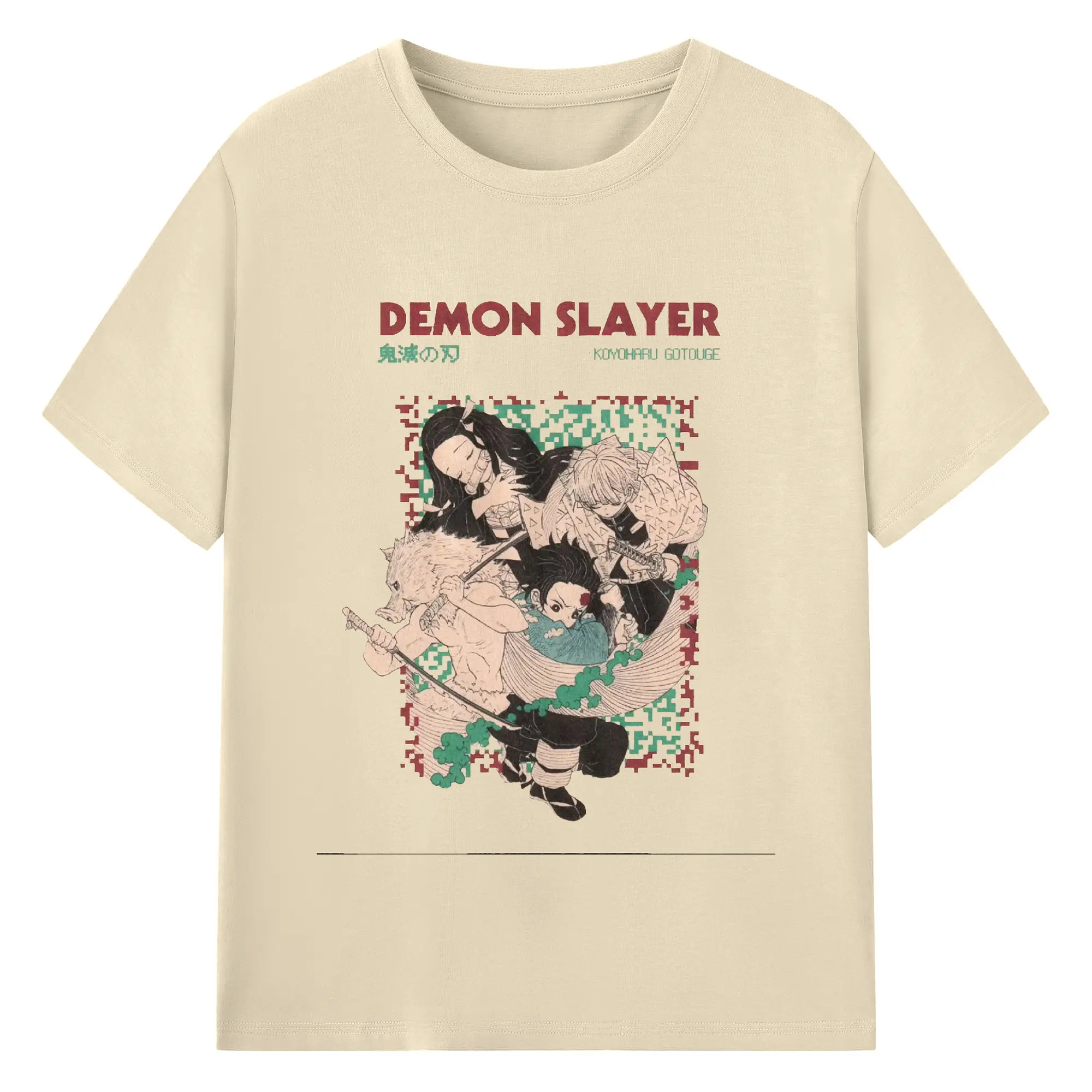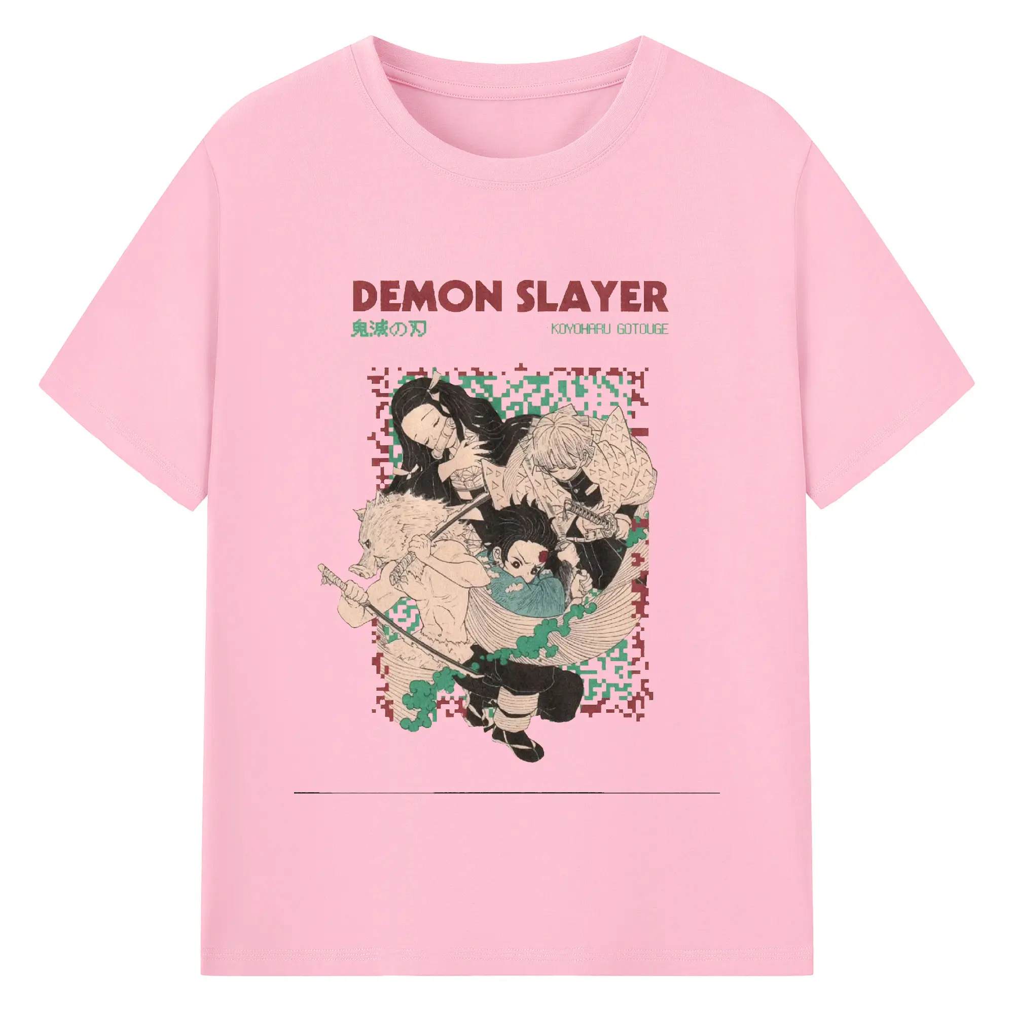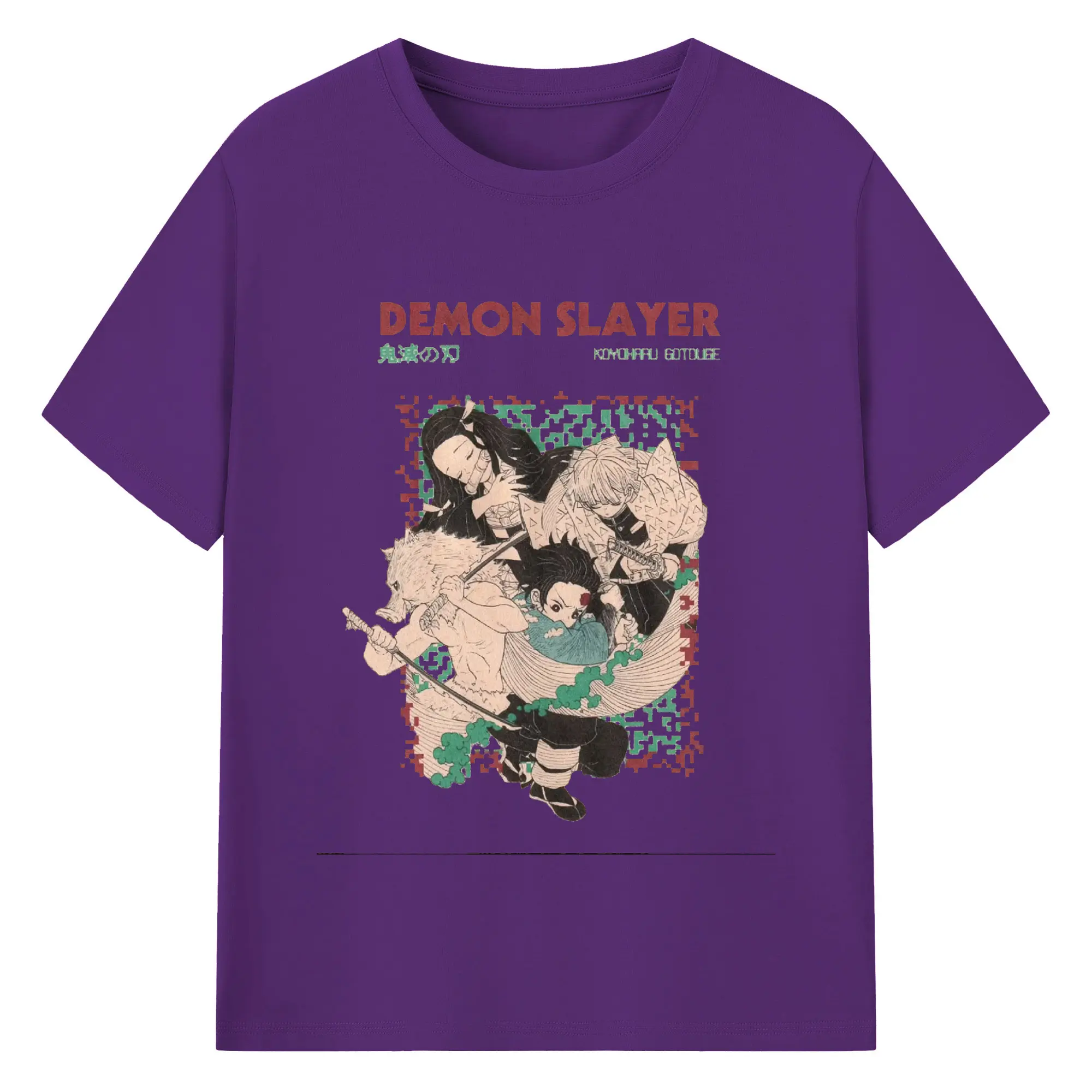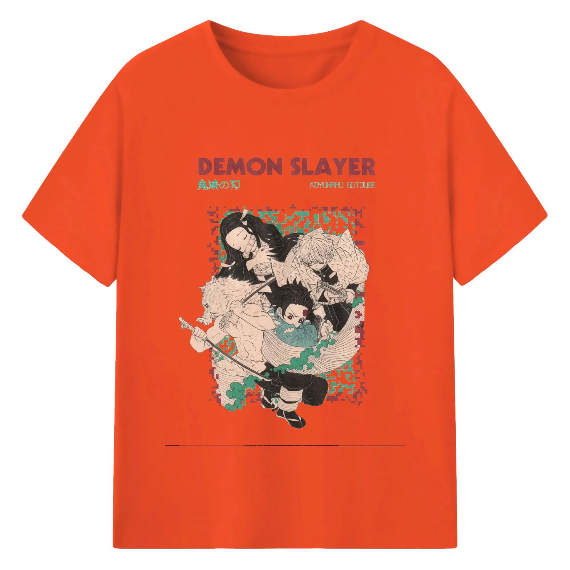 鬼滅の刃 鬼殺隊 炭治郎禰豆子善逸伊之助 - 綿100% 半袖Tシャツ ・ フロントプリント ・ 快適 通気性 ・ 日常使い 散歩 スポーツ用