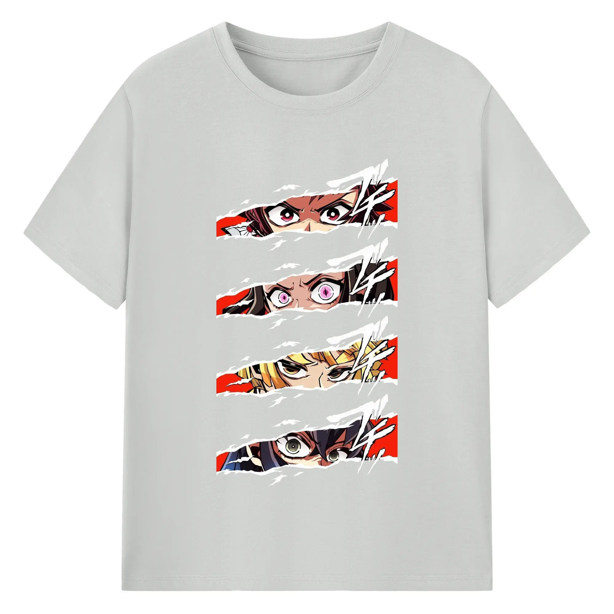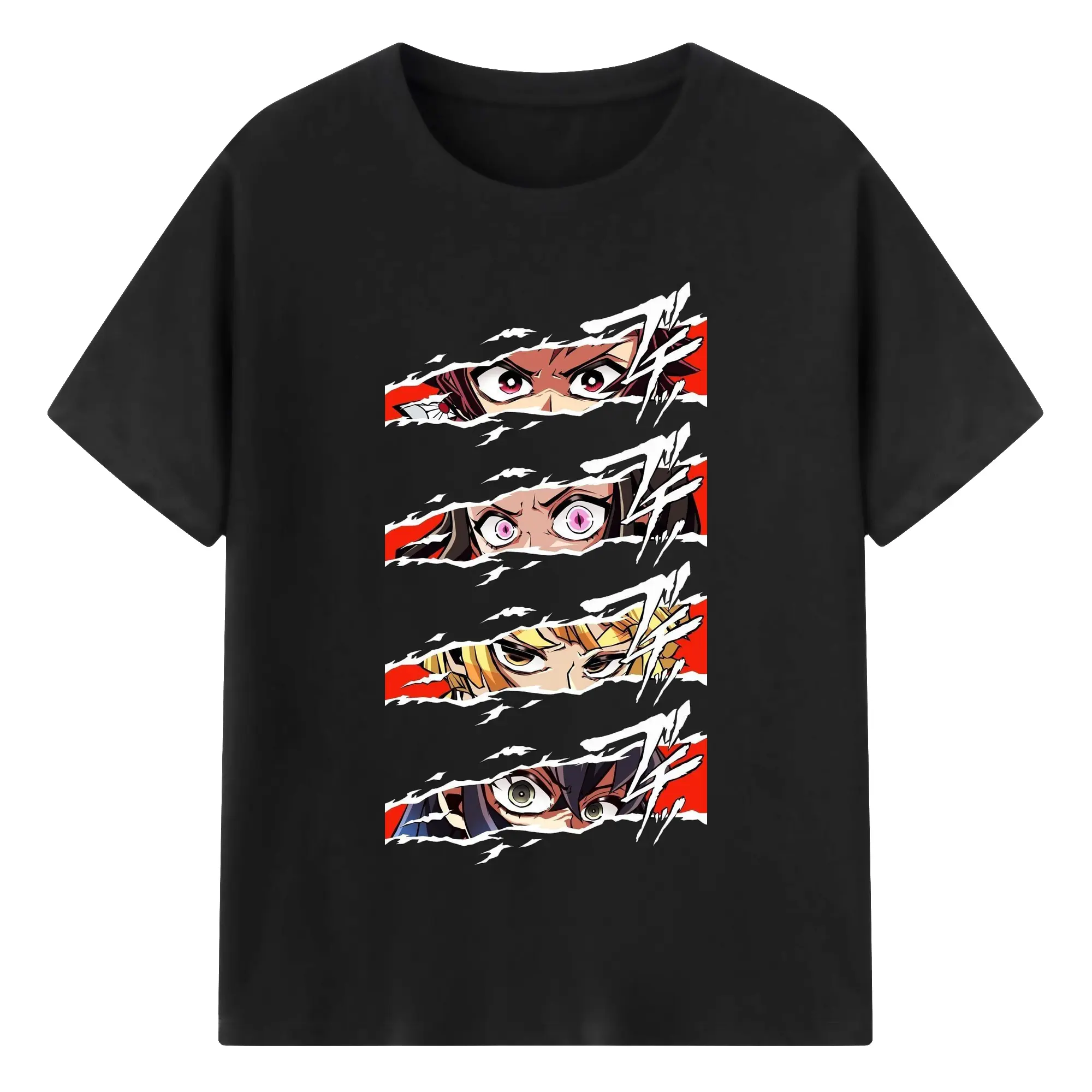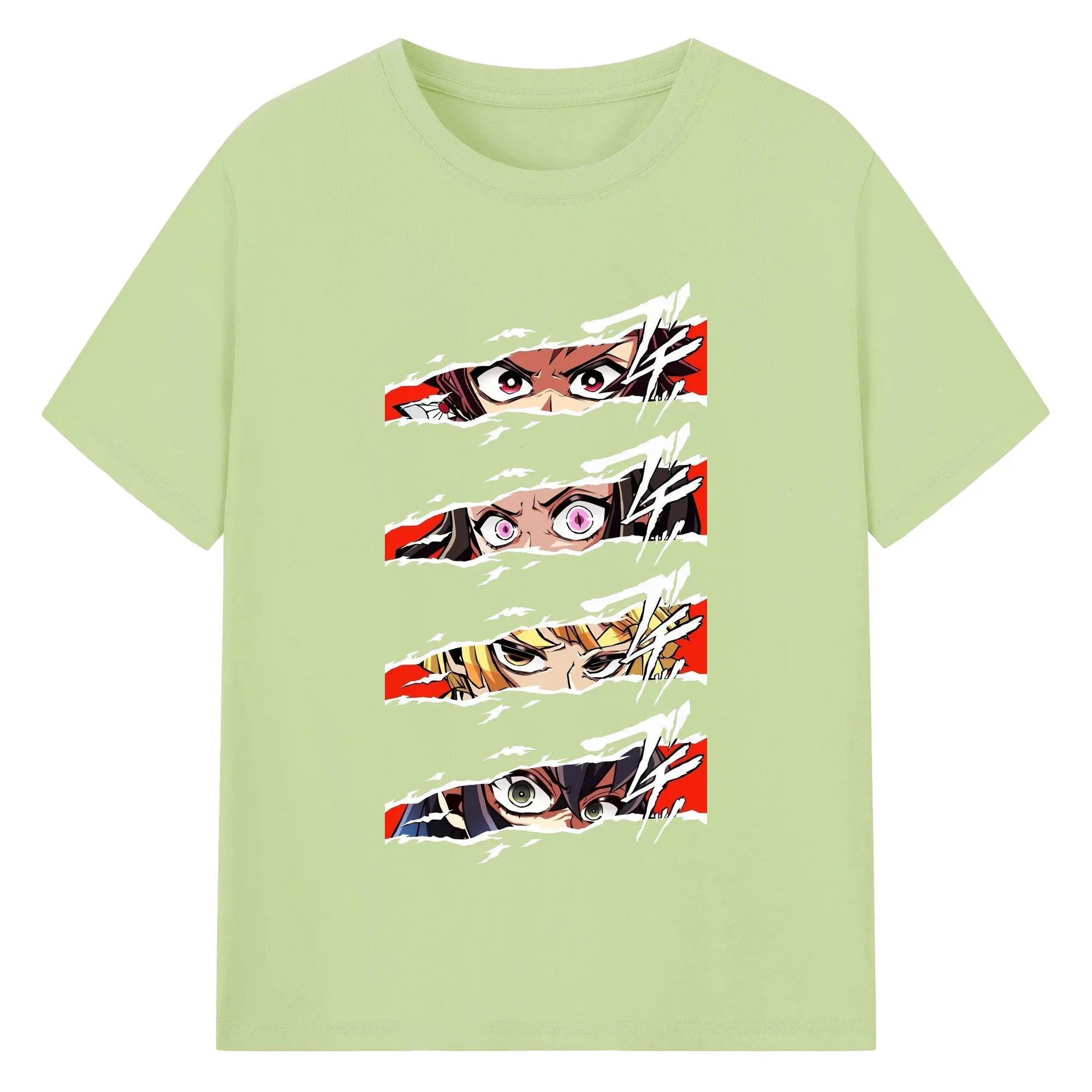 鬼滅の刃 鬼殺隊 炭治郎禰豆子善逸伊之助 - 綿100% 半袖Tシャツ ・ フロントプリント ・ 快適 通気性 ・ 日常使い 散歩 スポーツ用