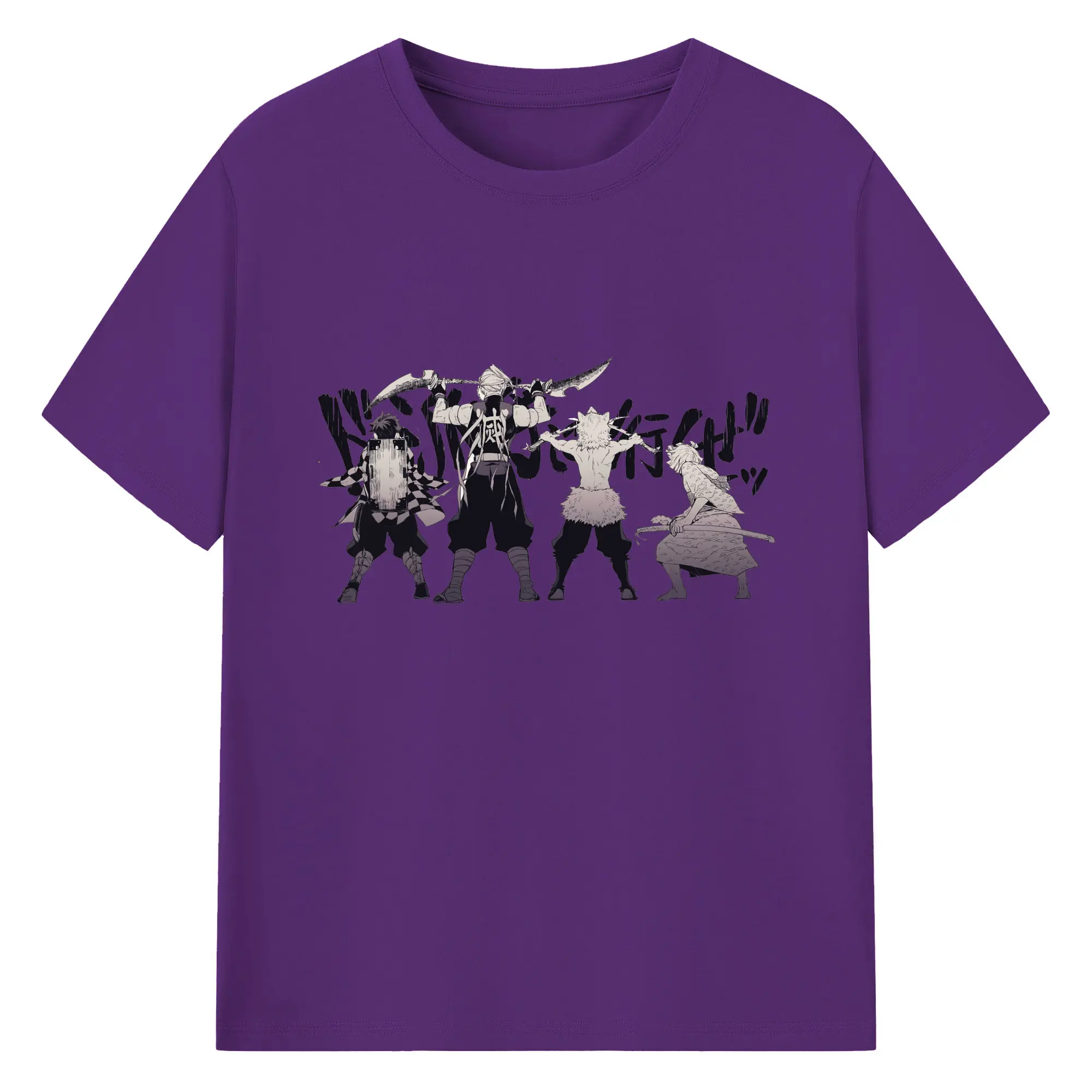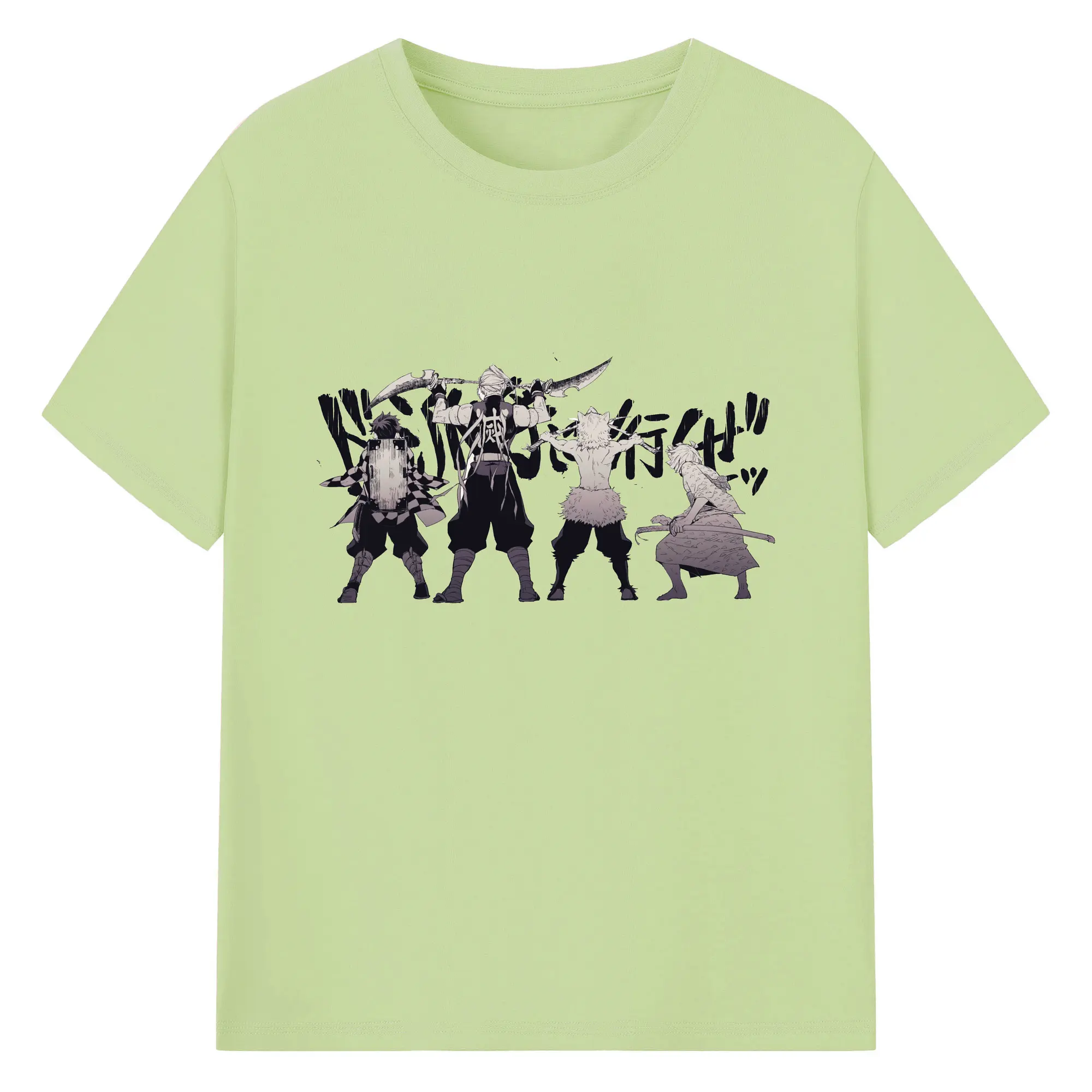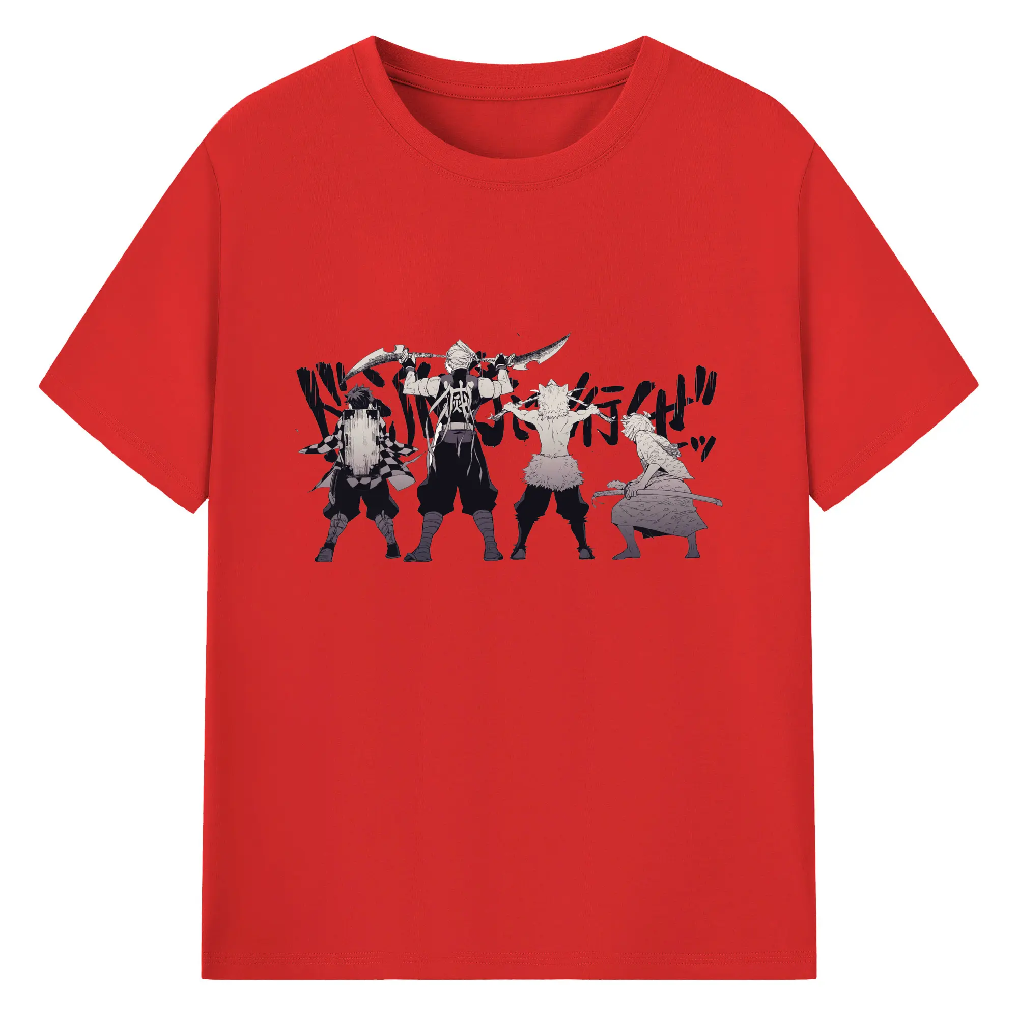 鬼滅の刃 鬼殺隊 炭治郎禰豆子善逸伊之助 - 綿100% 半袖Tシャツ ・ フロントプリント ・ 快適 通気性 ・ 日常使い 散歩 スポーツ用