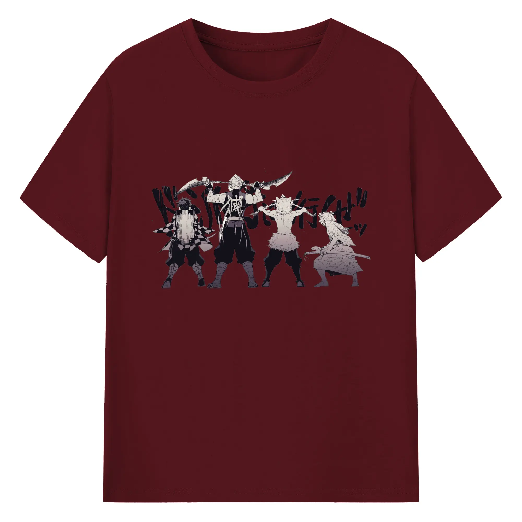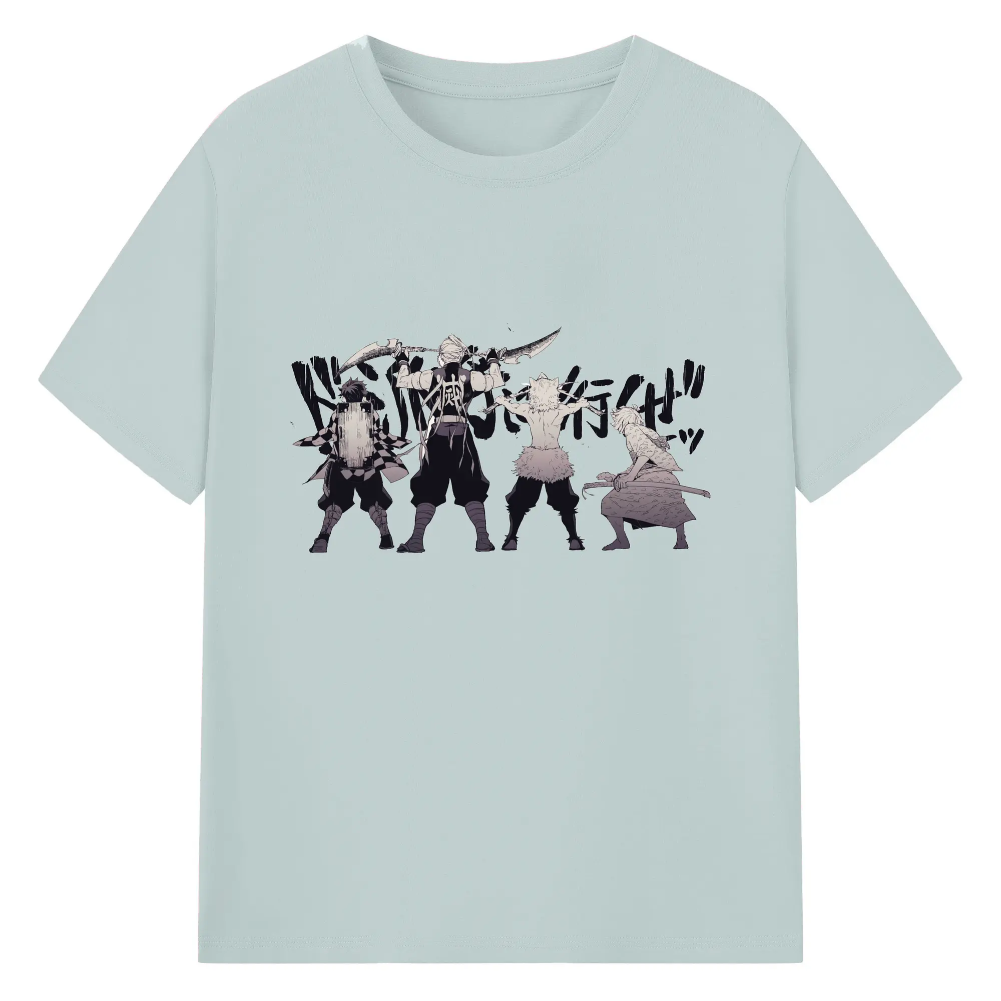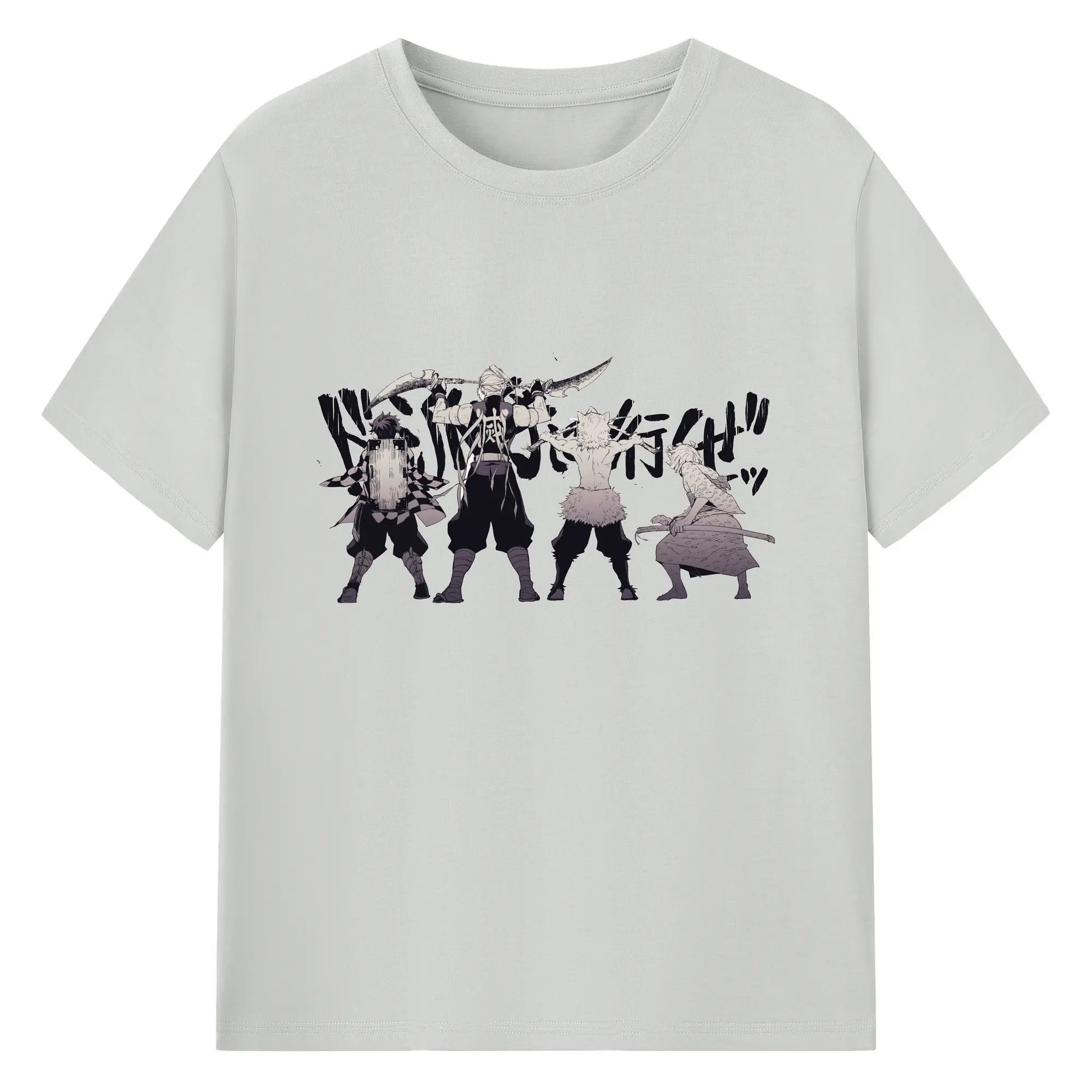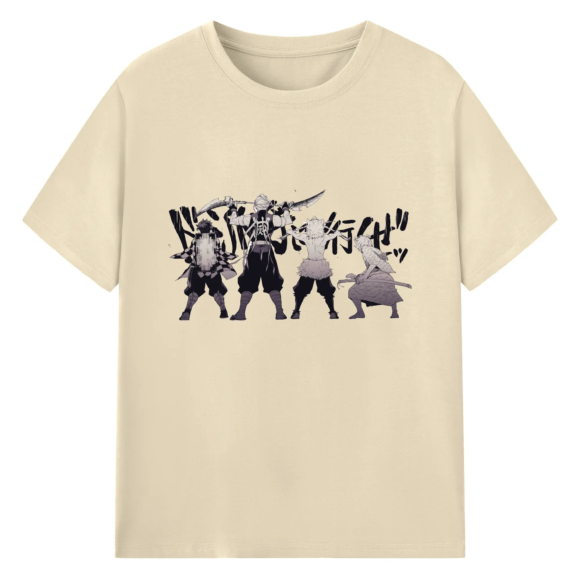 鬼滅の刃 鬼殺隊 炭治郎禰豆子善逸伊之助 - 綿100% 半袖Tシャツ ・ フロントプリント ・ 快適 通気性 ・ 日常使い 散歩 スポーツ用