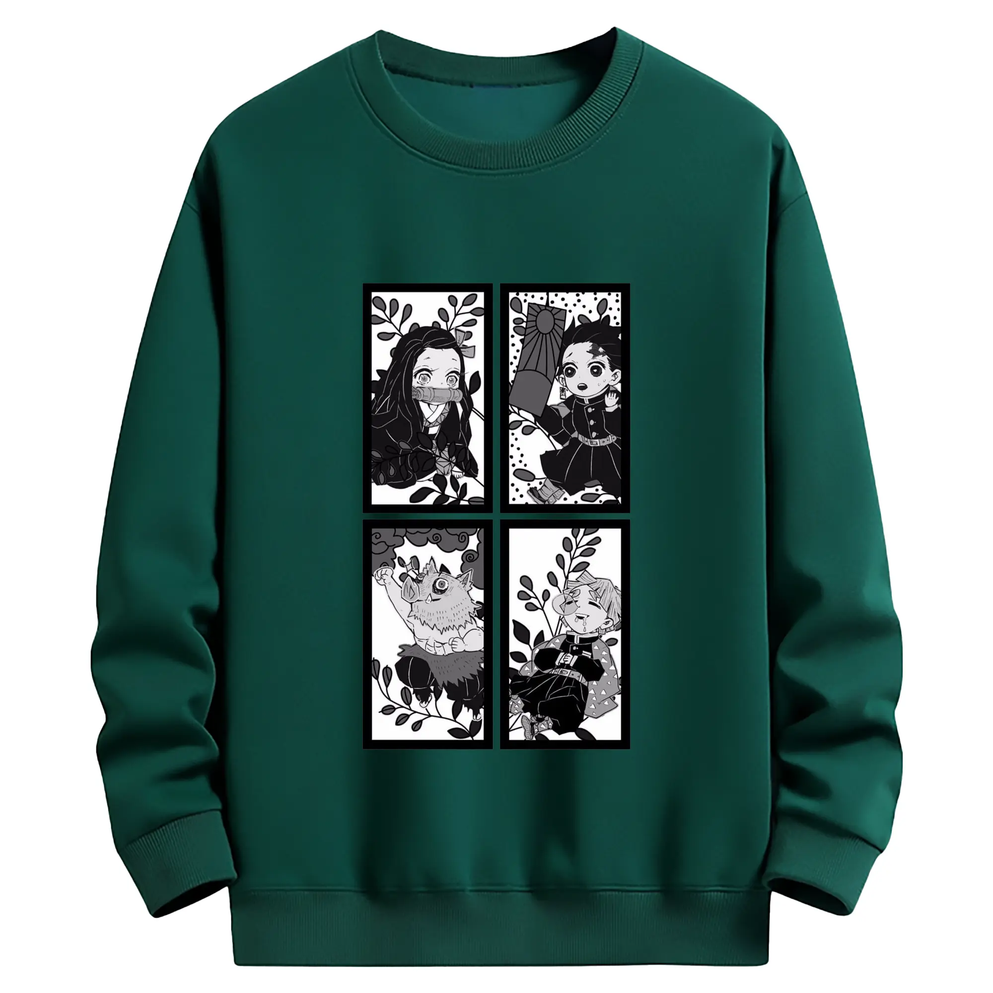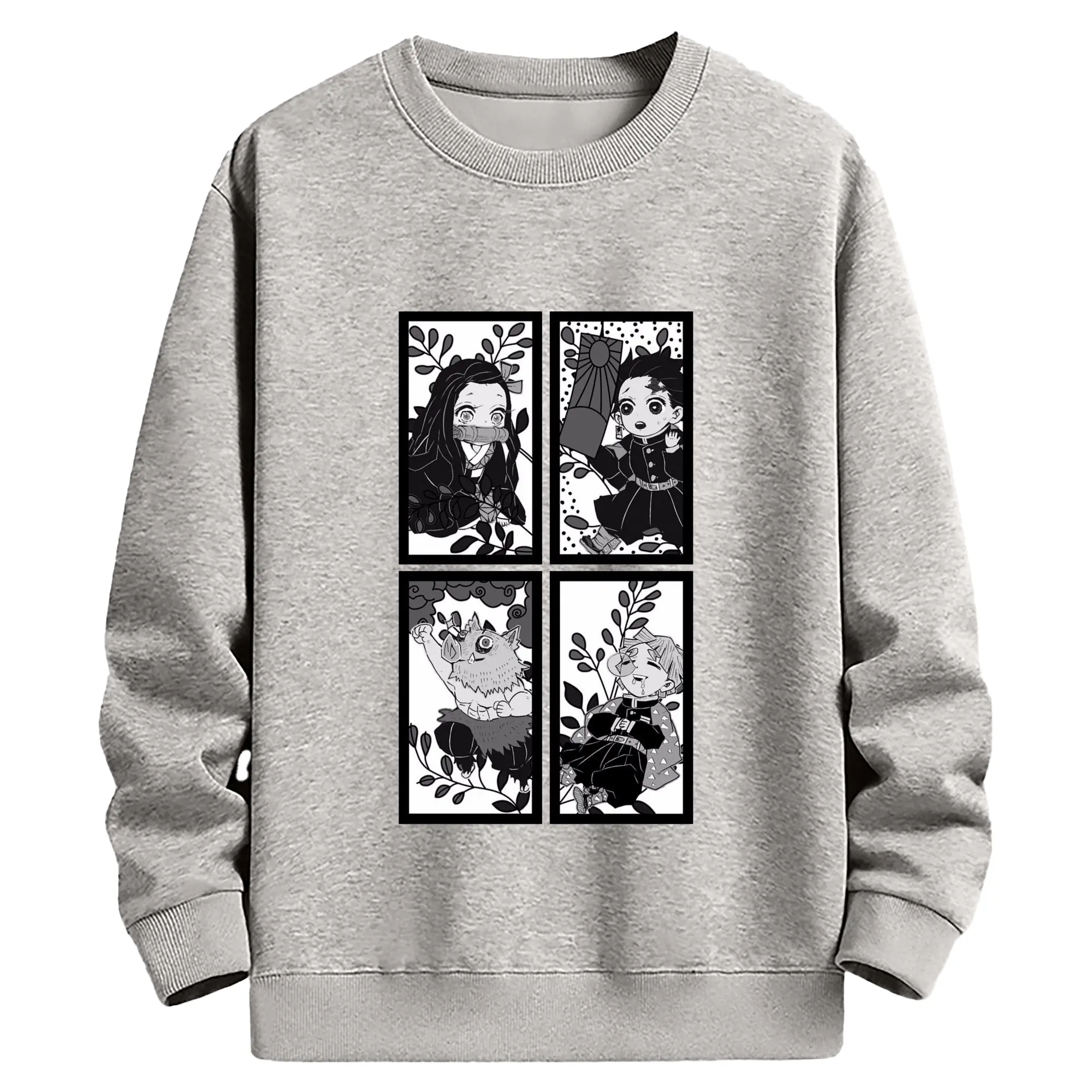 鬼滅の刃 鬼殺隊 炭治郎禰豆子善逸伊之助 - 高品質 クルーネック スウェット ・ コットン59% ポリエステル41% ・ ユニセックス 長袖 トレーナー ・ カジュアル デイリー スポーツ 散歩用