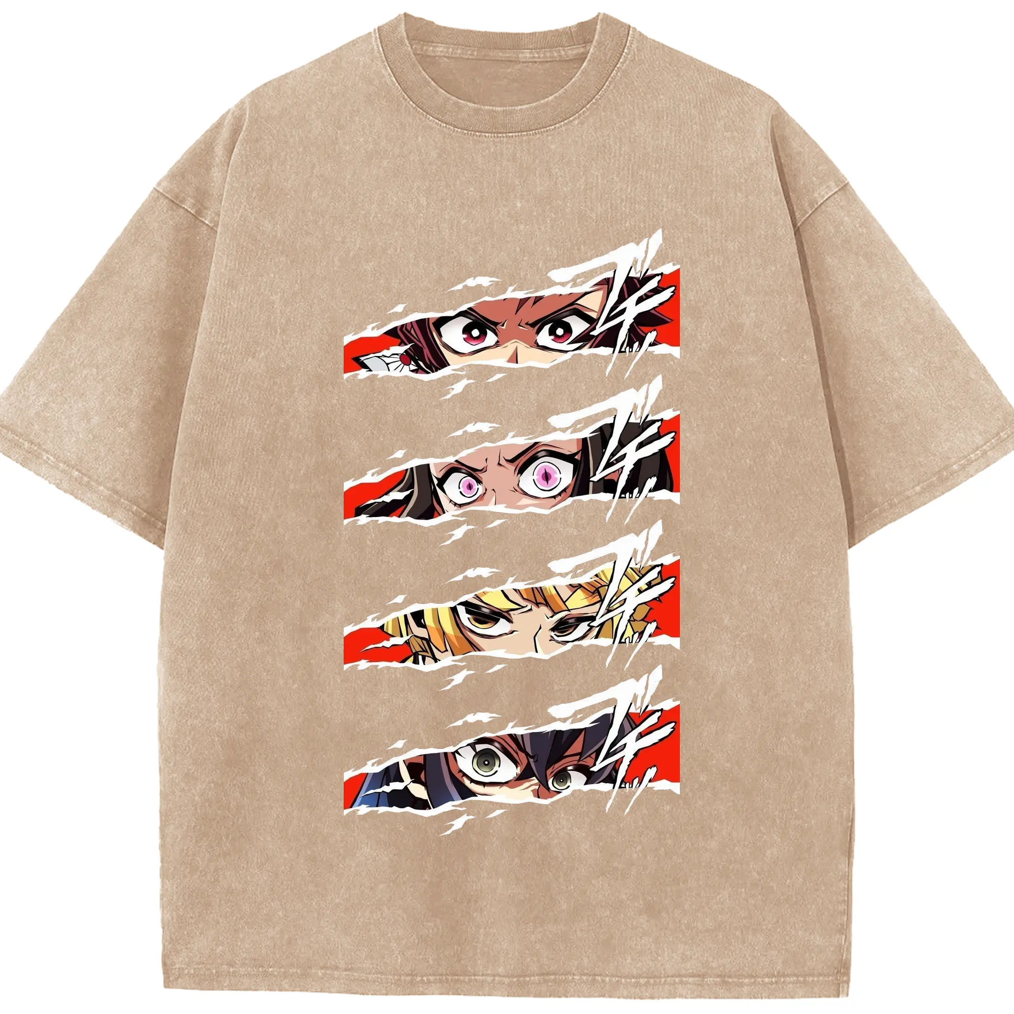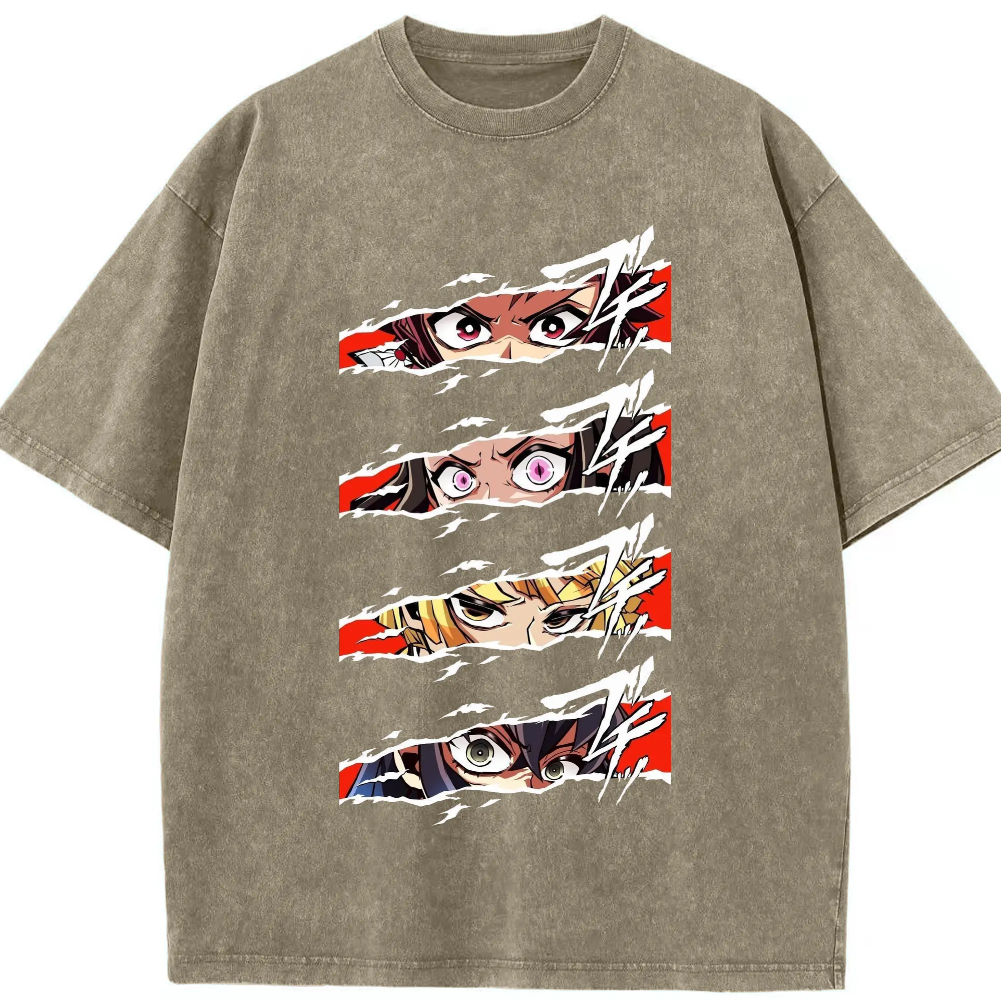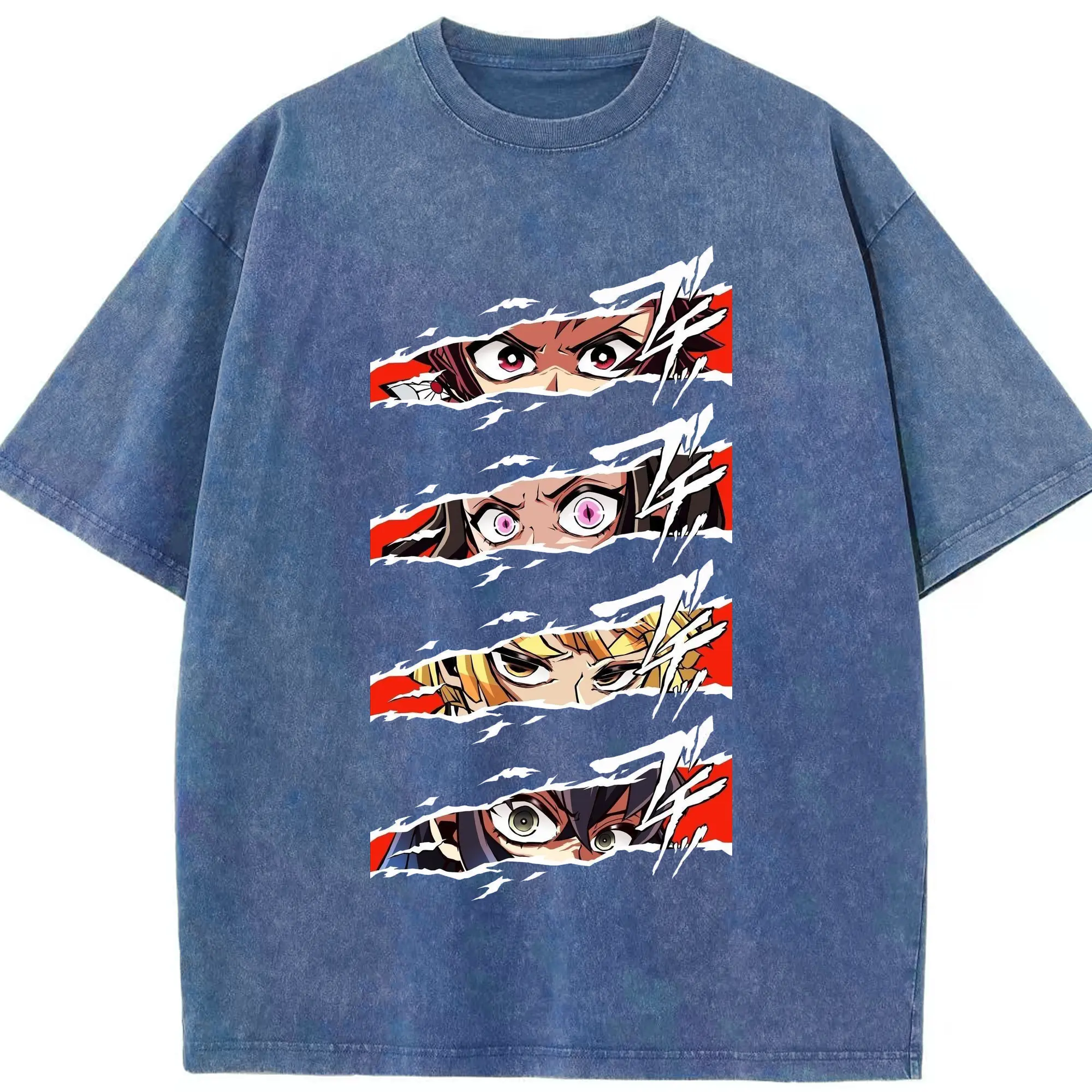 鬼滅の刃 鬼殺隊 炭治郎禰豆子善逸伊之助 - 綿100% ヴィンテージ風 半袖Tシャツ ・ フロントプリント ・ 柔らか肌触り ・ 通気性 快適 ・ スポーツ カジュアル 外出用