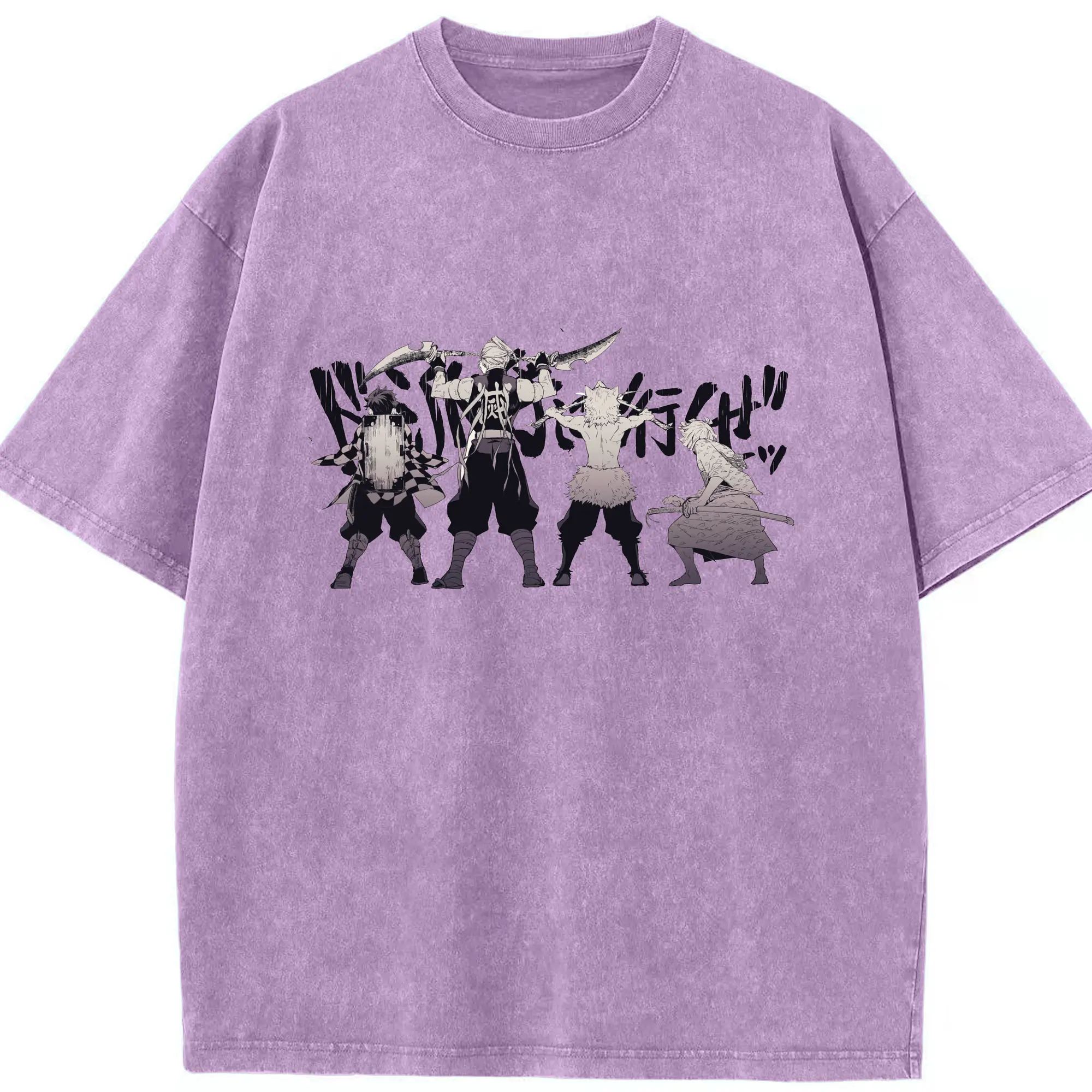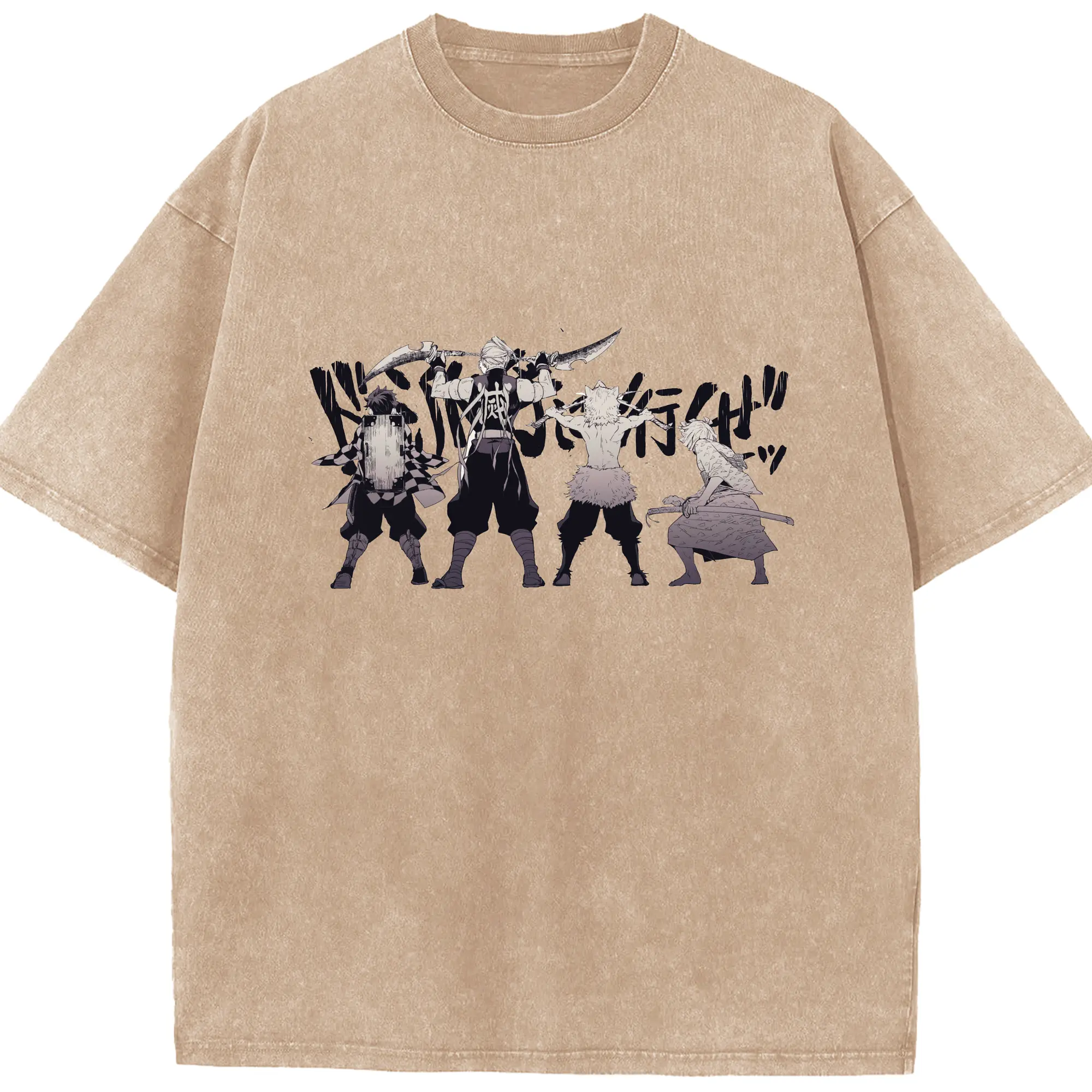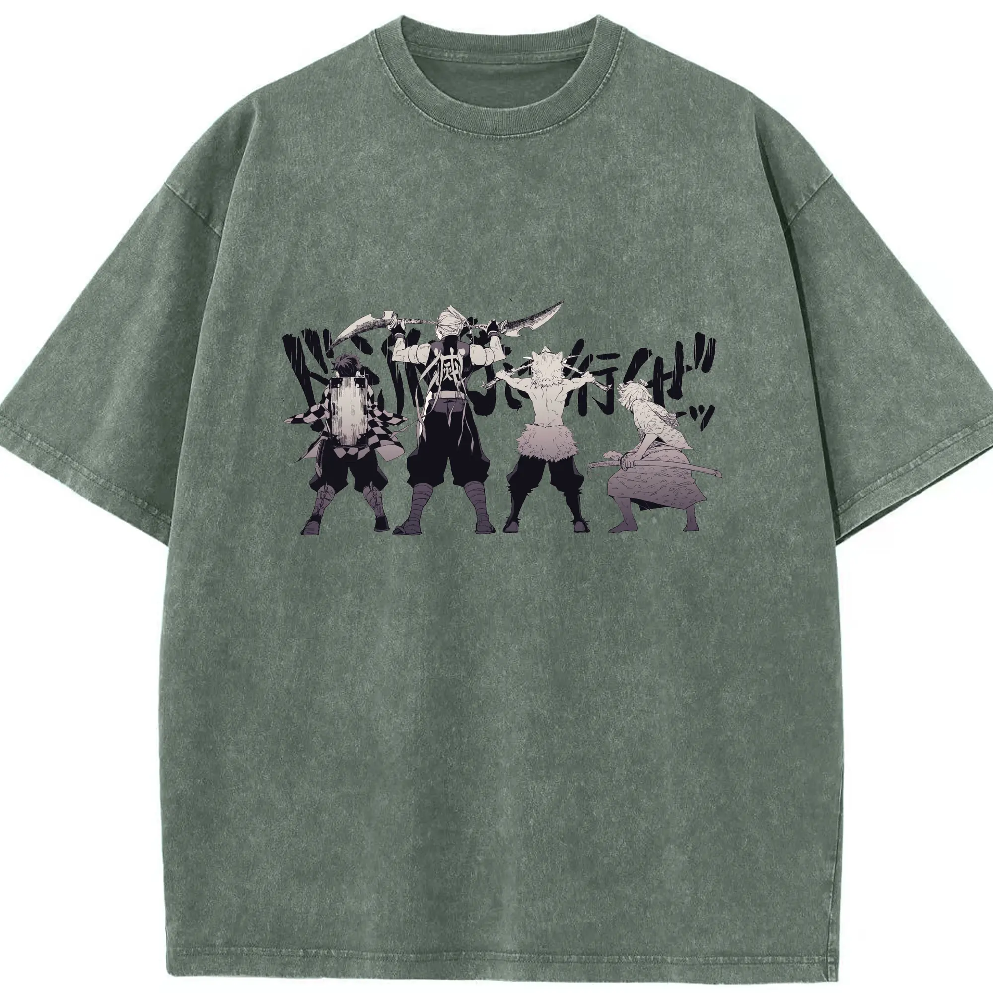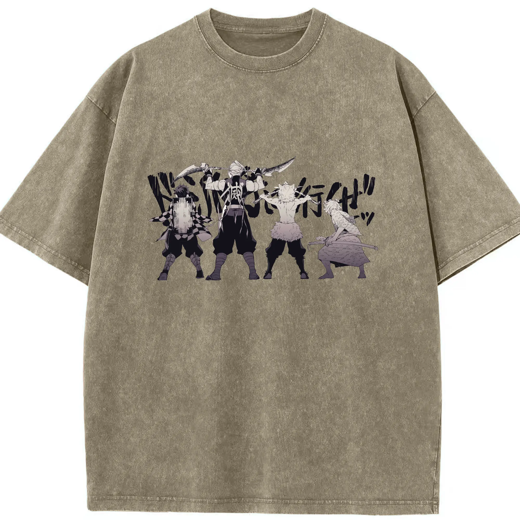 鬼滅の刃 鬼殺隊 炭治郎禰豆子善逸伊之助 - 綿100% ヴィンテージ風 半袖Tシャツ ・ フロントプリント ・ 柔らか肌触り ・ 通気性 快適 ・ スポーツ カジュアル 外出用