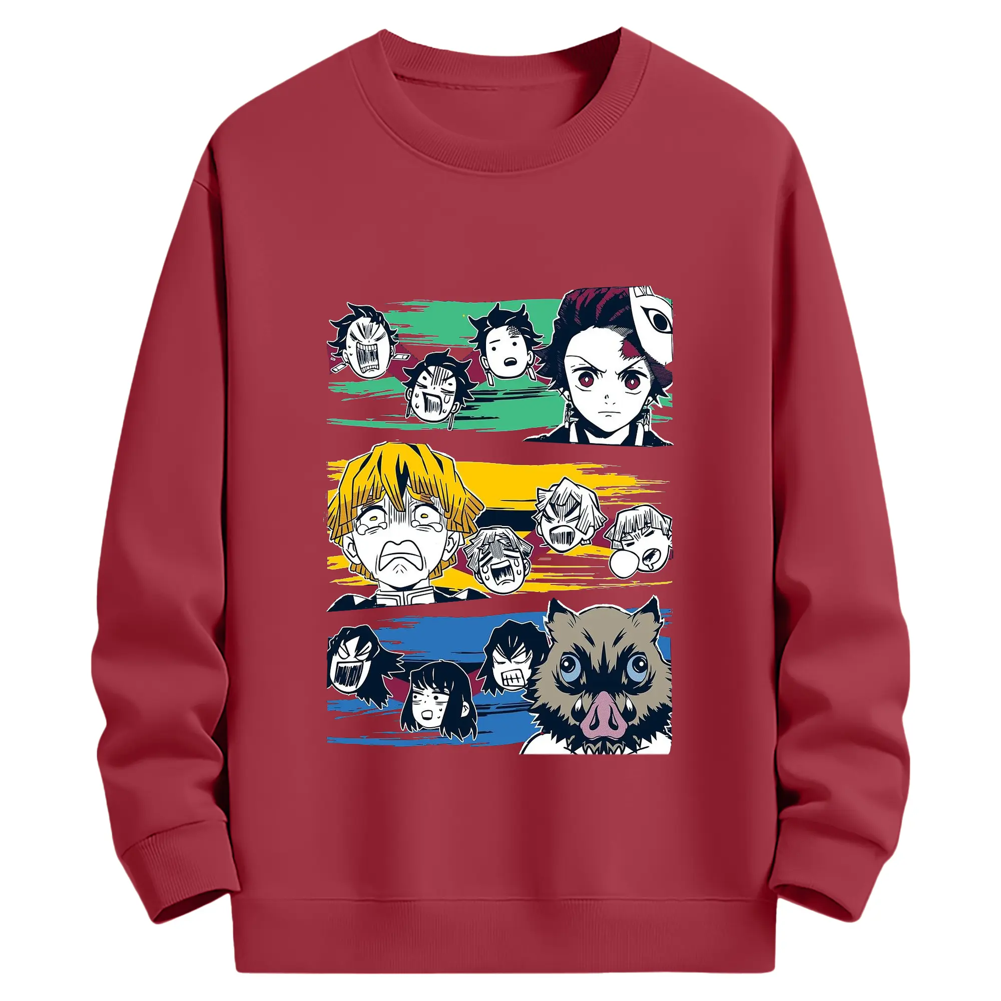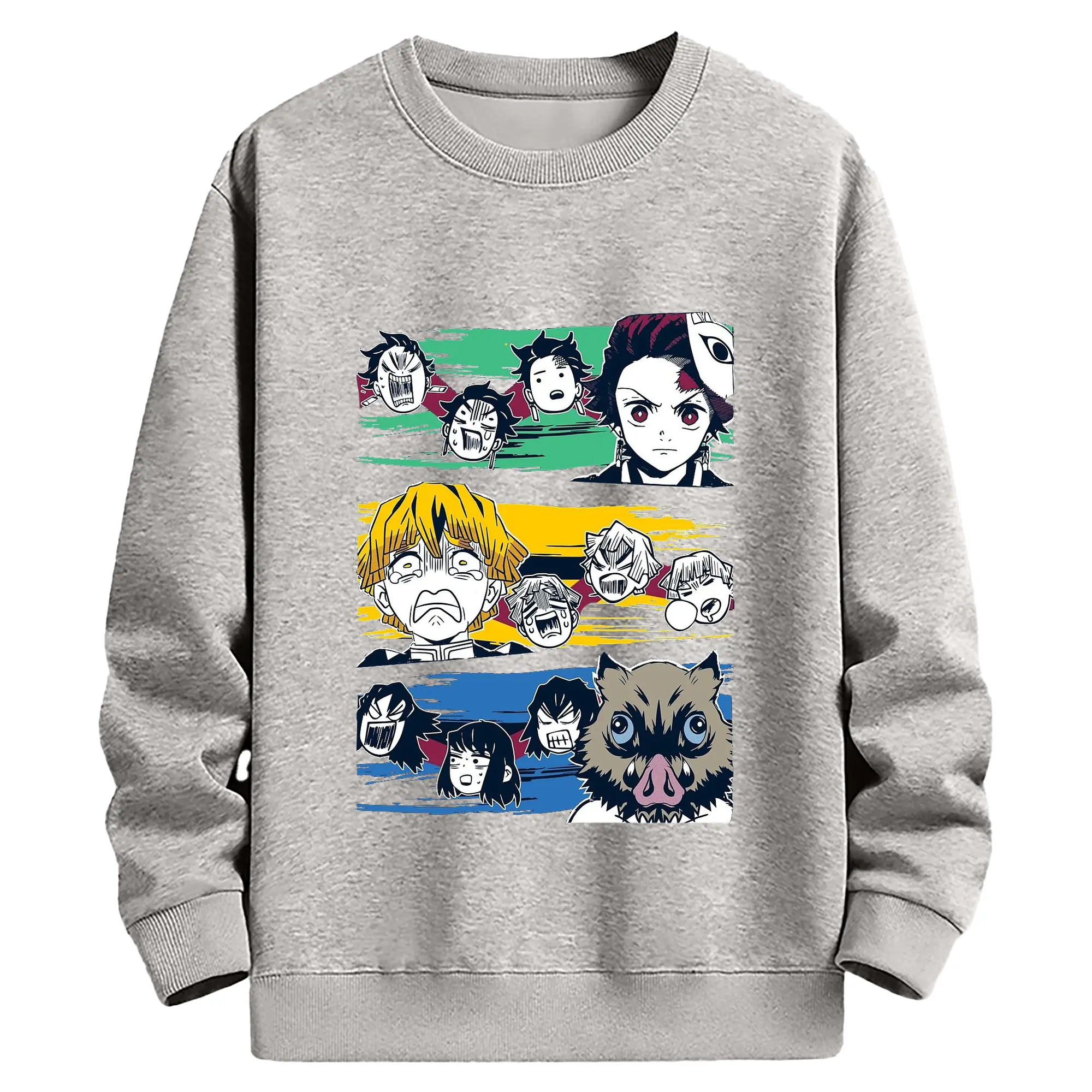 鬼滅の刃 鬼殺隊 - 高品質 クルーネック スウェット ・ コットン59% ポリエステル41% ・ ユニセックス 長袖 トレーナー ・ カジュアル デイリー スポーツ 散歩用