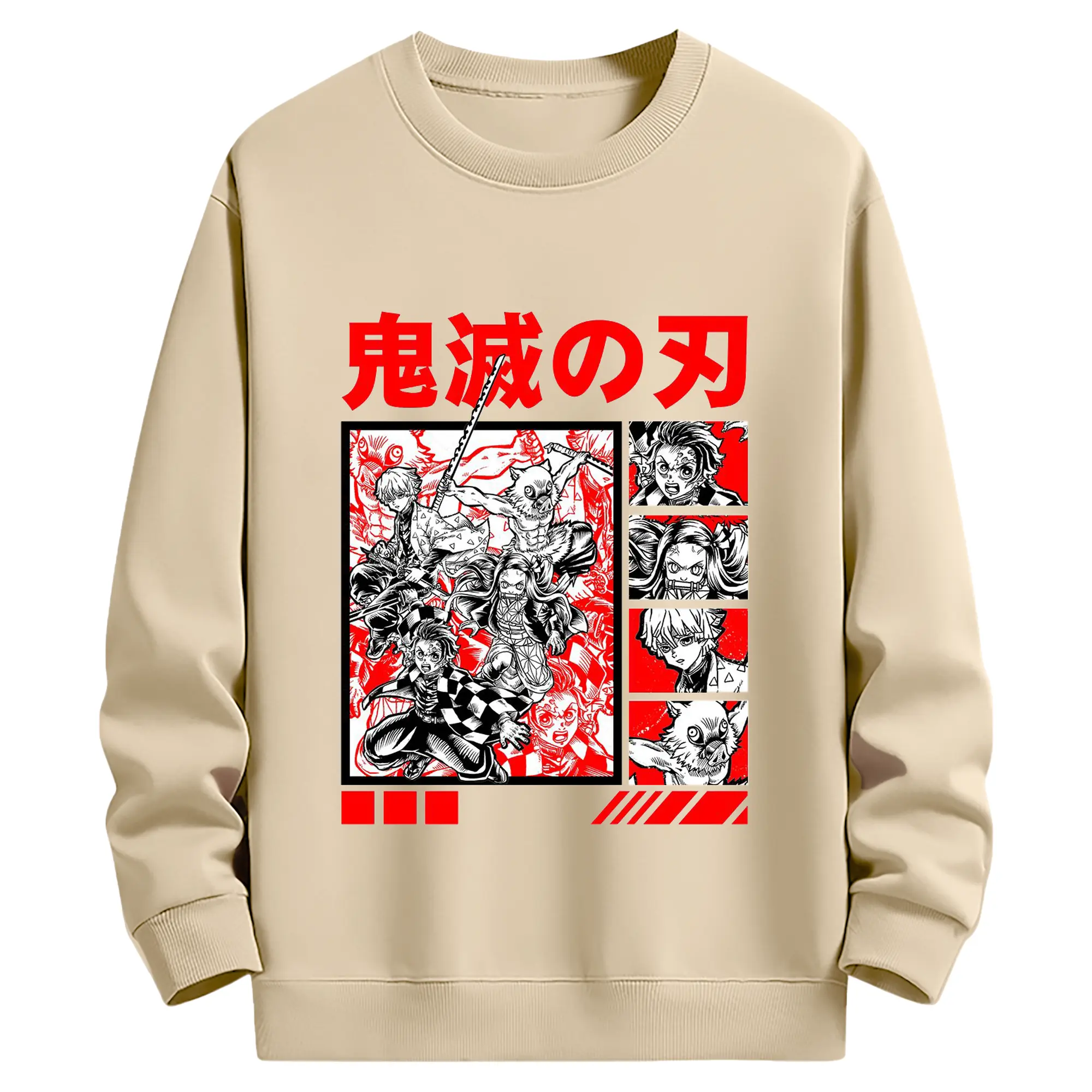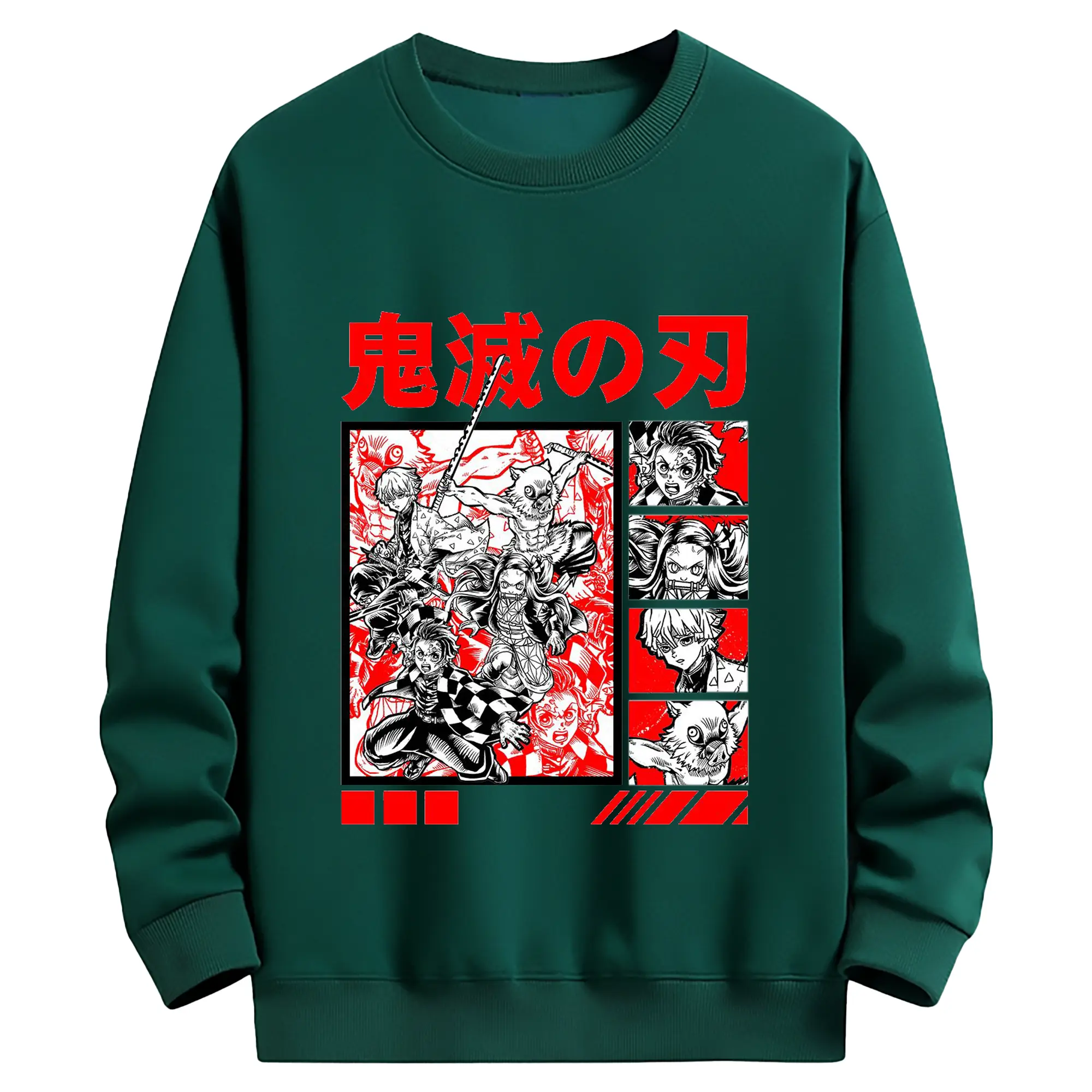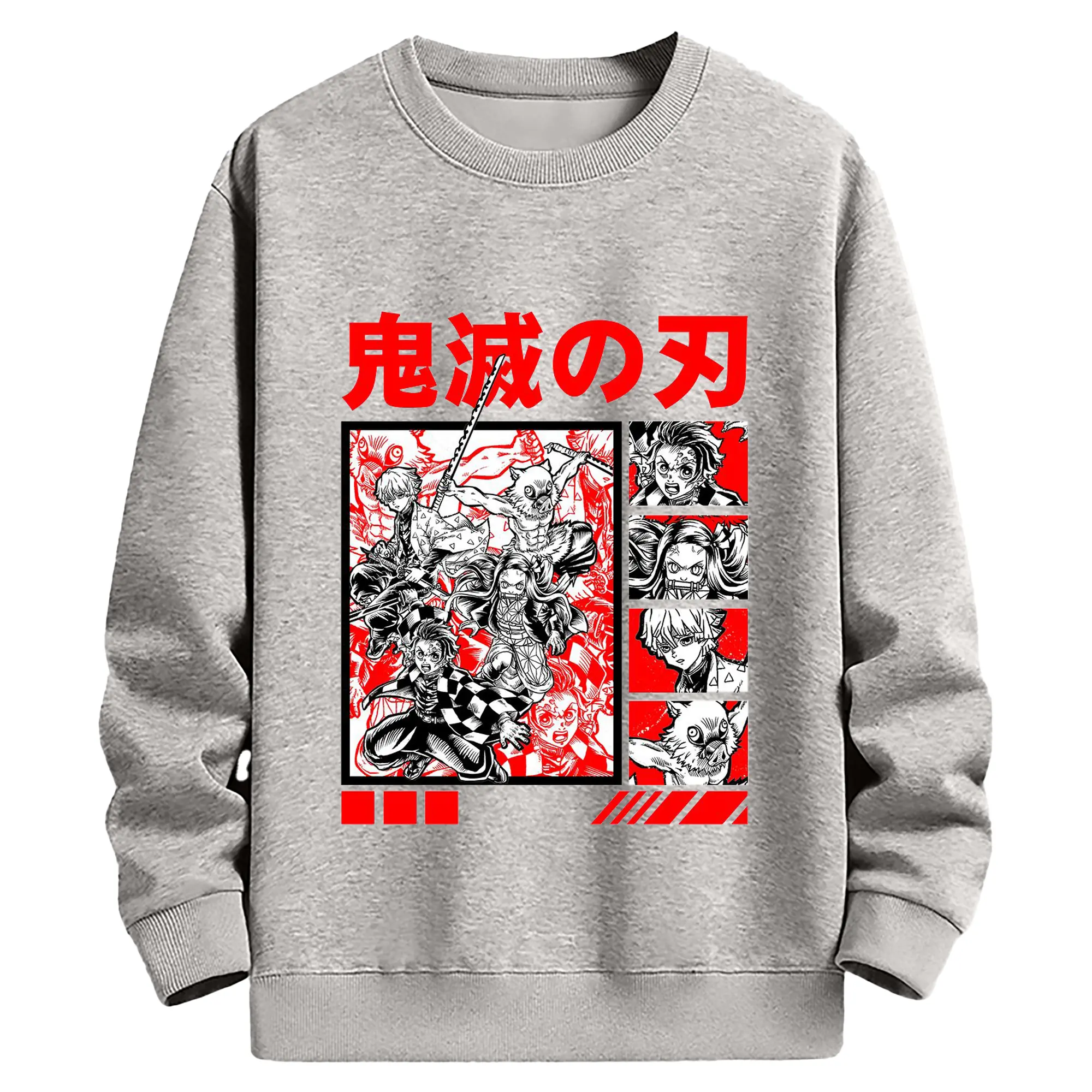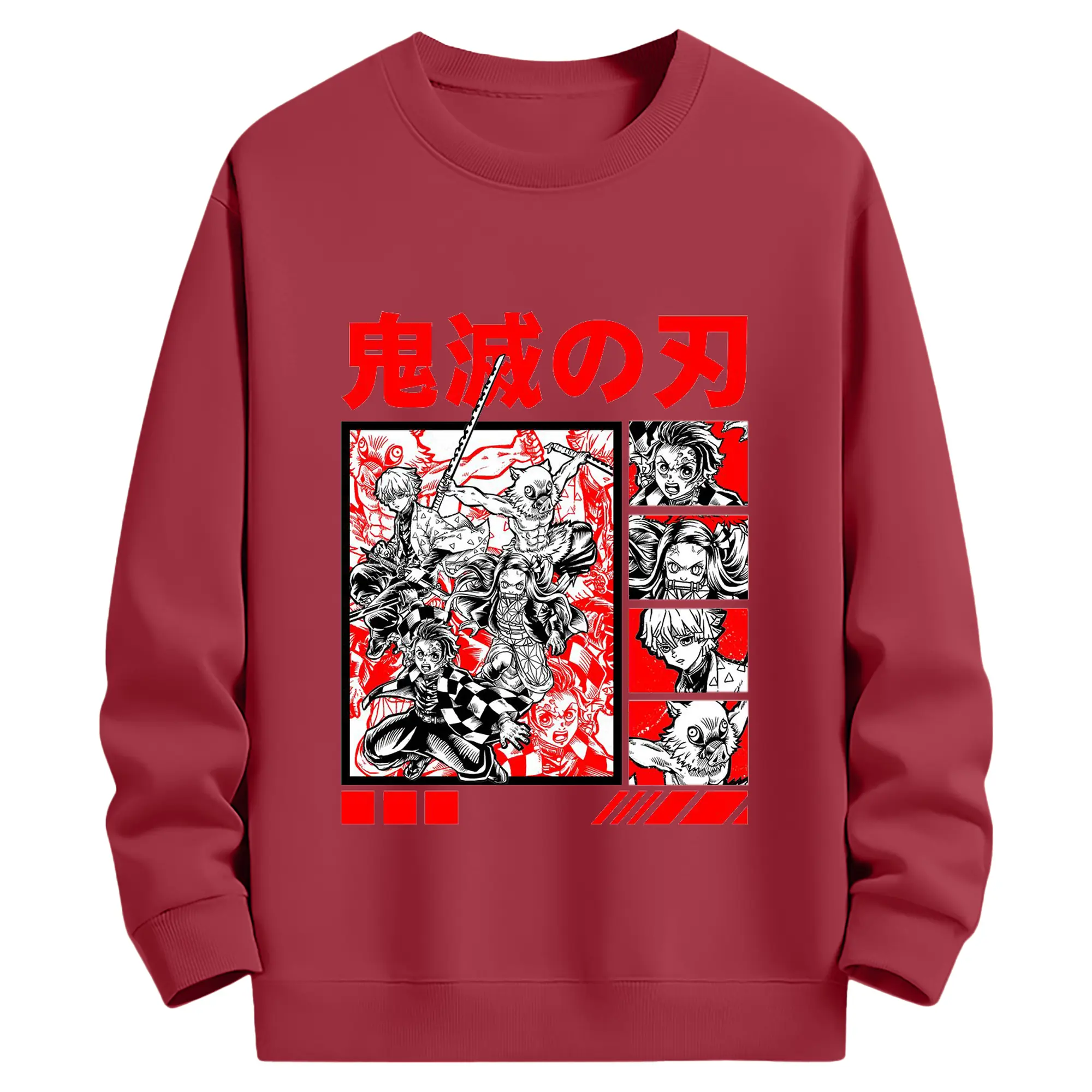 鬼滅の刃 鬼殺隊 - 高品質 クルーネック スウェット ・ コットン59% ポリエステル41% ・ ユニセックス 長袖 トレーナー ・ カジュアル デイリー スポーツ 散歩用