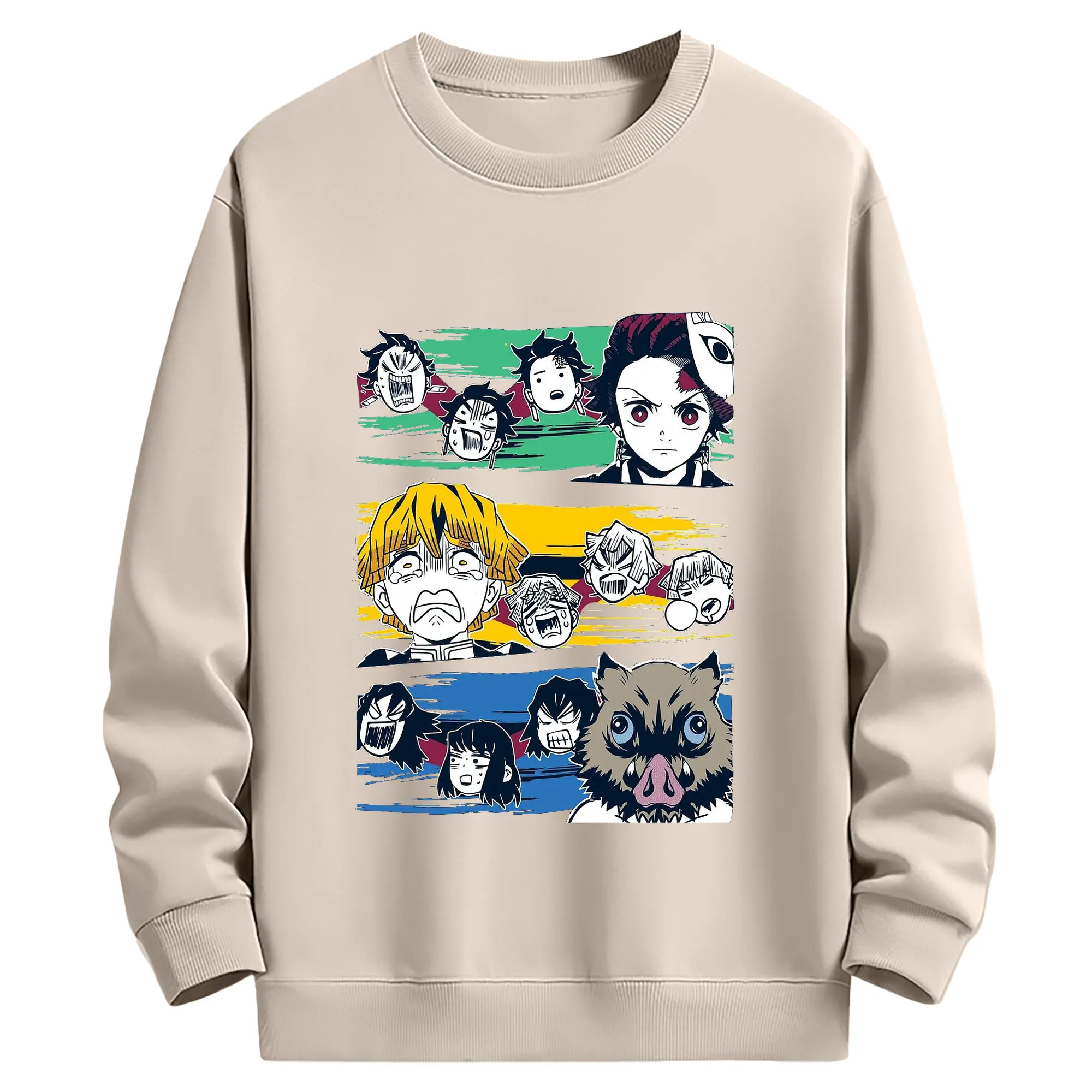 鬼滅の刃 鬼殺隊 - 高品質 クルーネック スウェット ・ コットン59% ポリエステル41% ・ ユニセックス 長袖 トレーナー ・ カジュアル デイリー スポーツ 散歩用