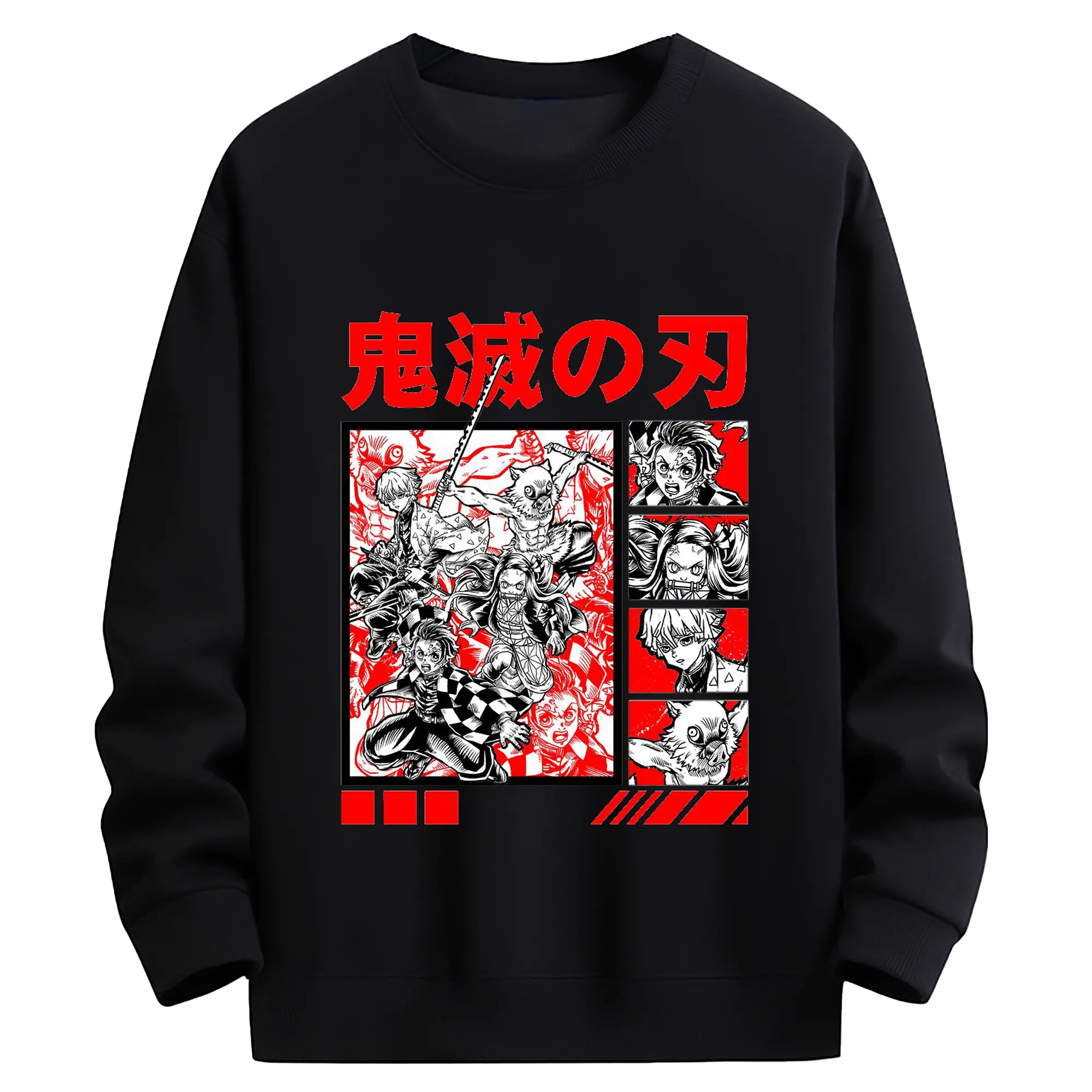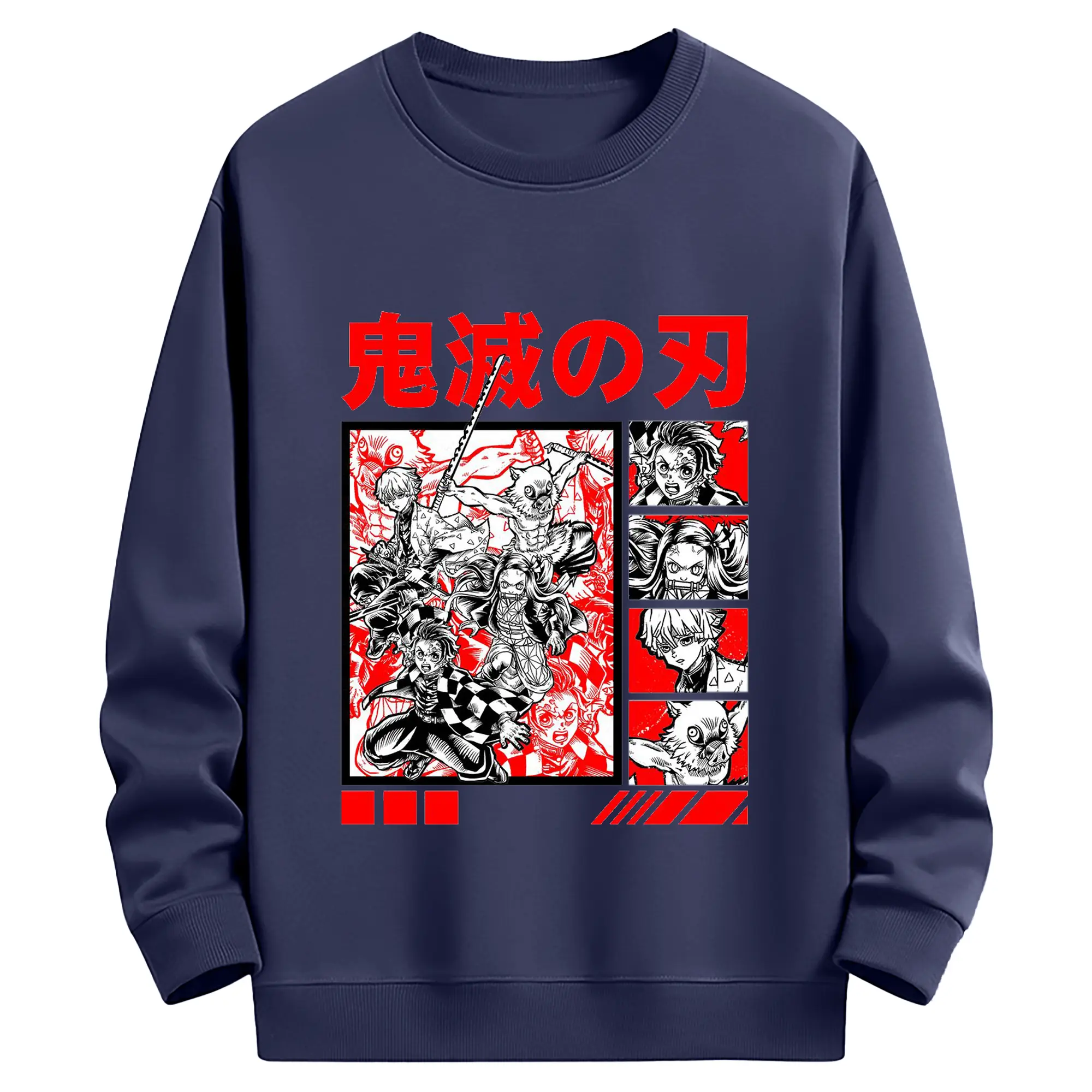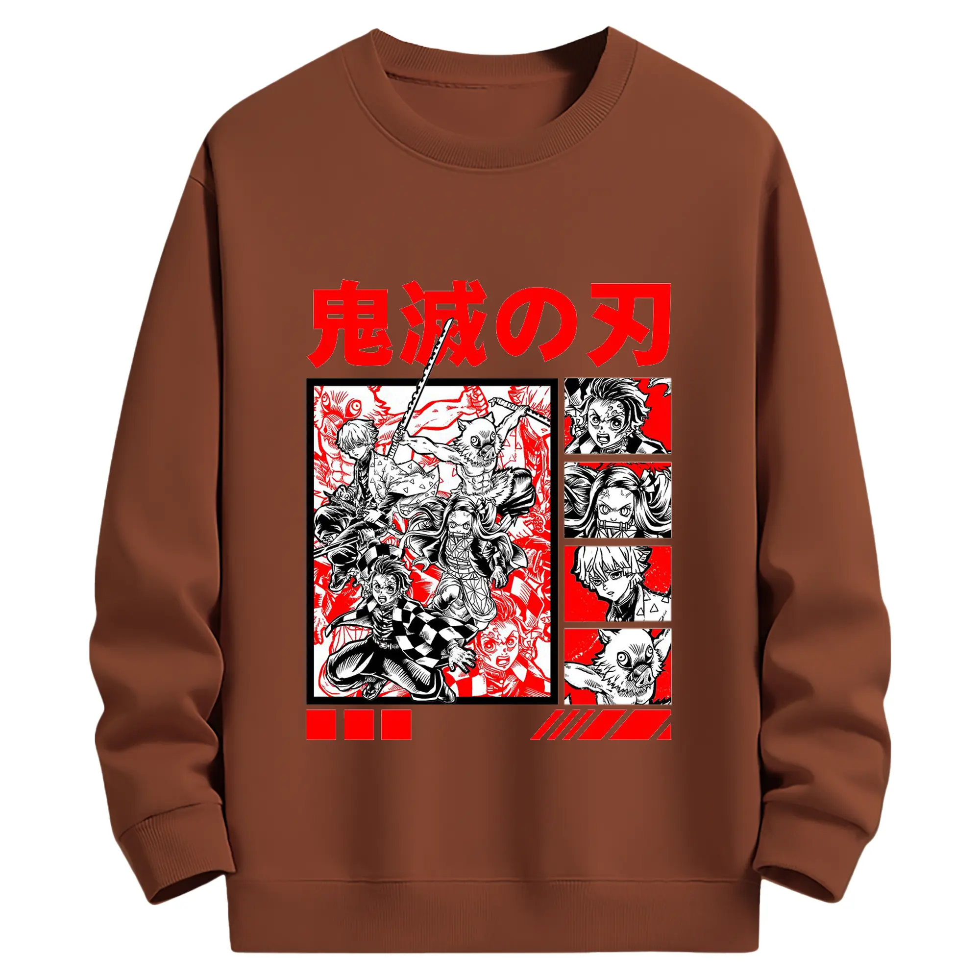 鬼滅の刃 鬼殺隊 - 高品質 クルーネック スウェット ・ コットン59% ポリエステル41% ・ ユニセックス 長袖 トレーナー ・ カジュアル デイリー スポーツ 散歩用