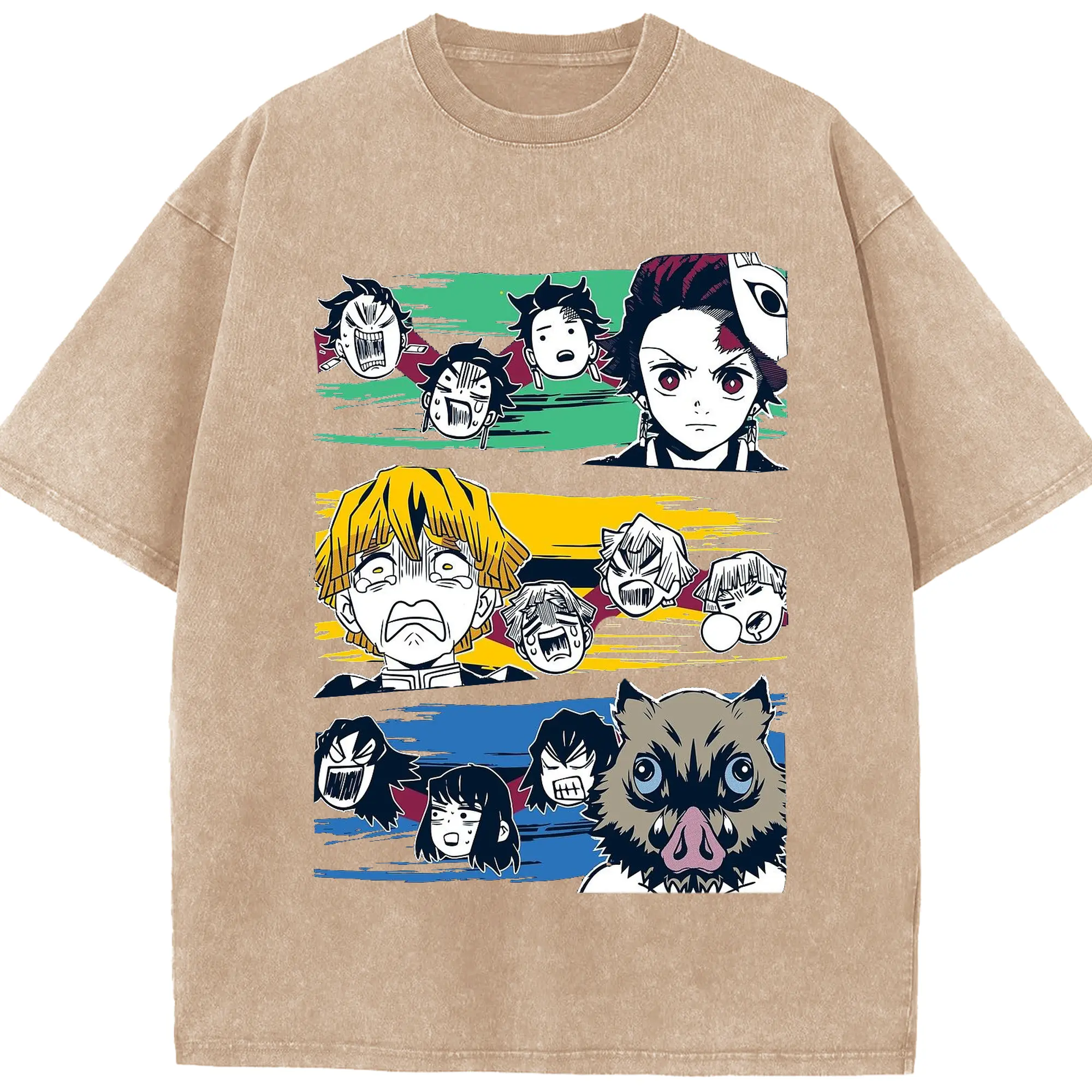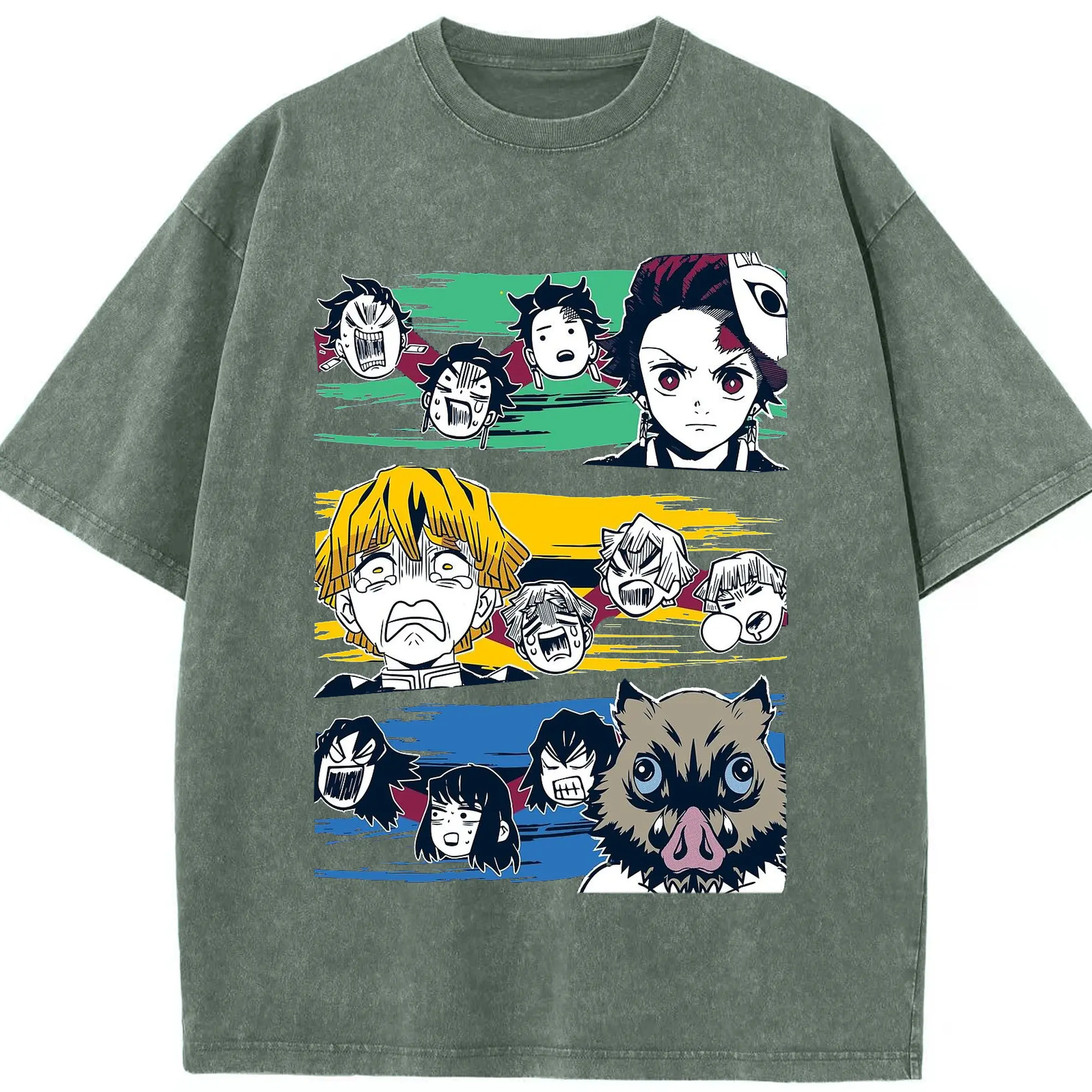 鬼滅の刃 鬼殺隊 - 綿100% ヴィンテージ風 半袖Tシャツ ・ フロントプリント ・ 柔らか肌触り ・ 通気性 快適 ・ スポーツ カジュアル 外出用