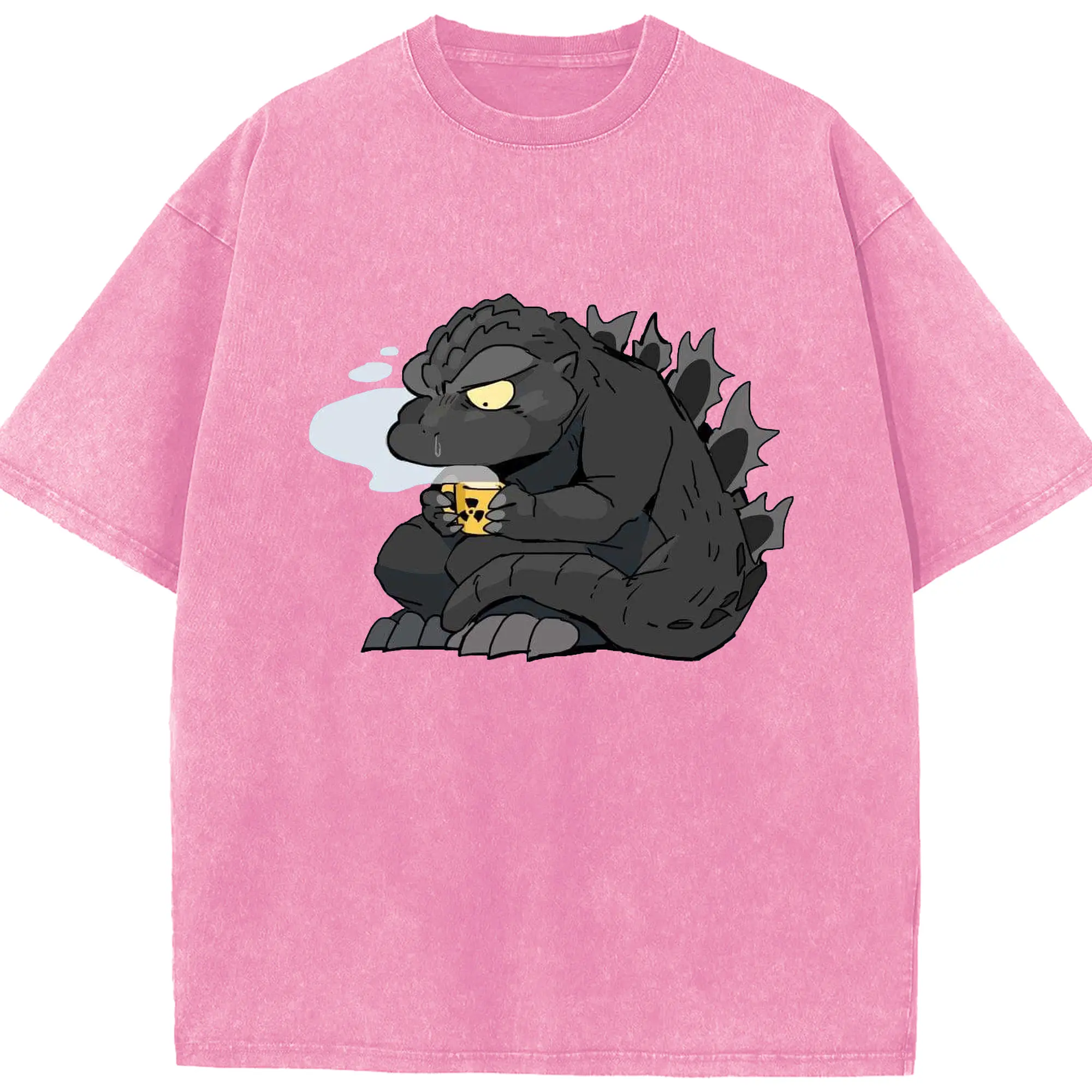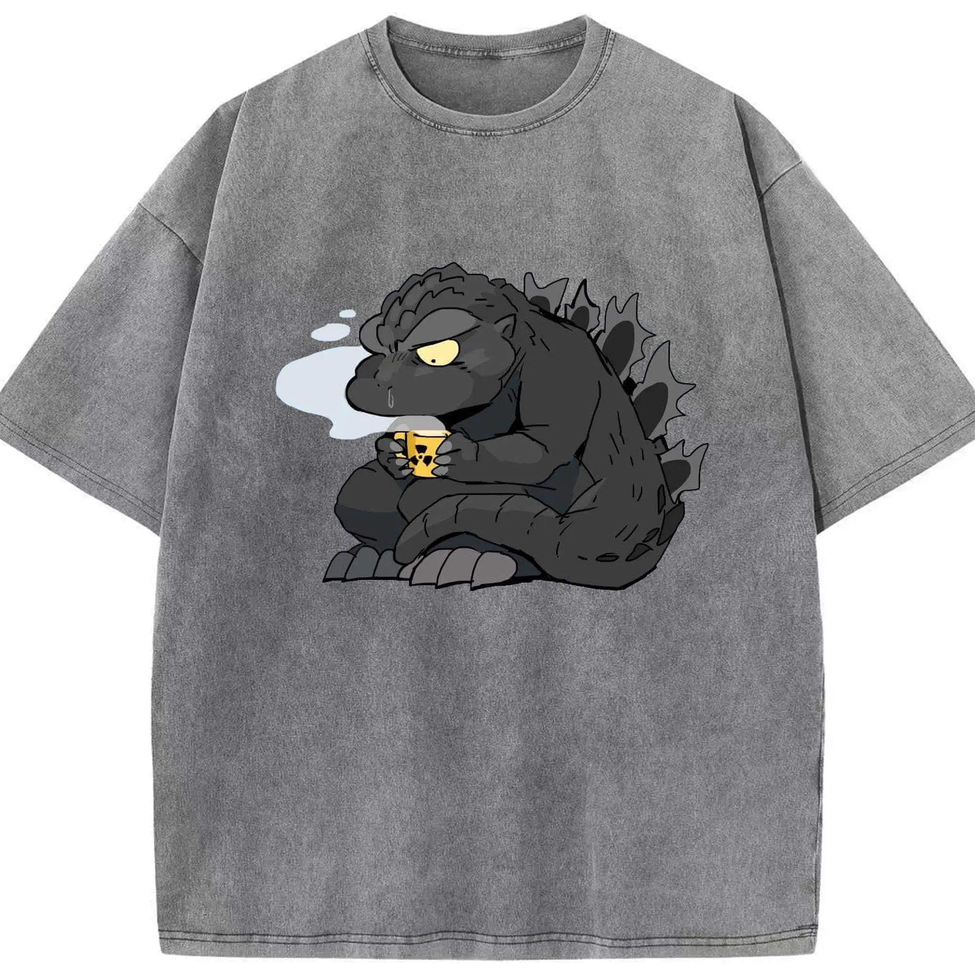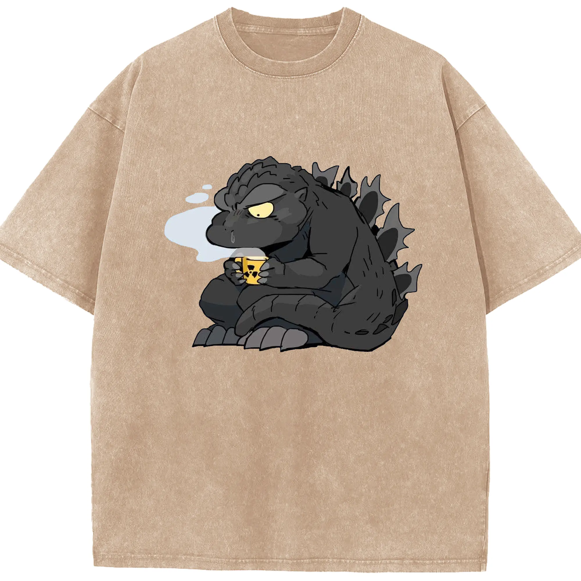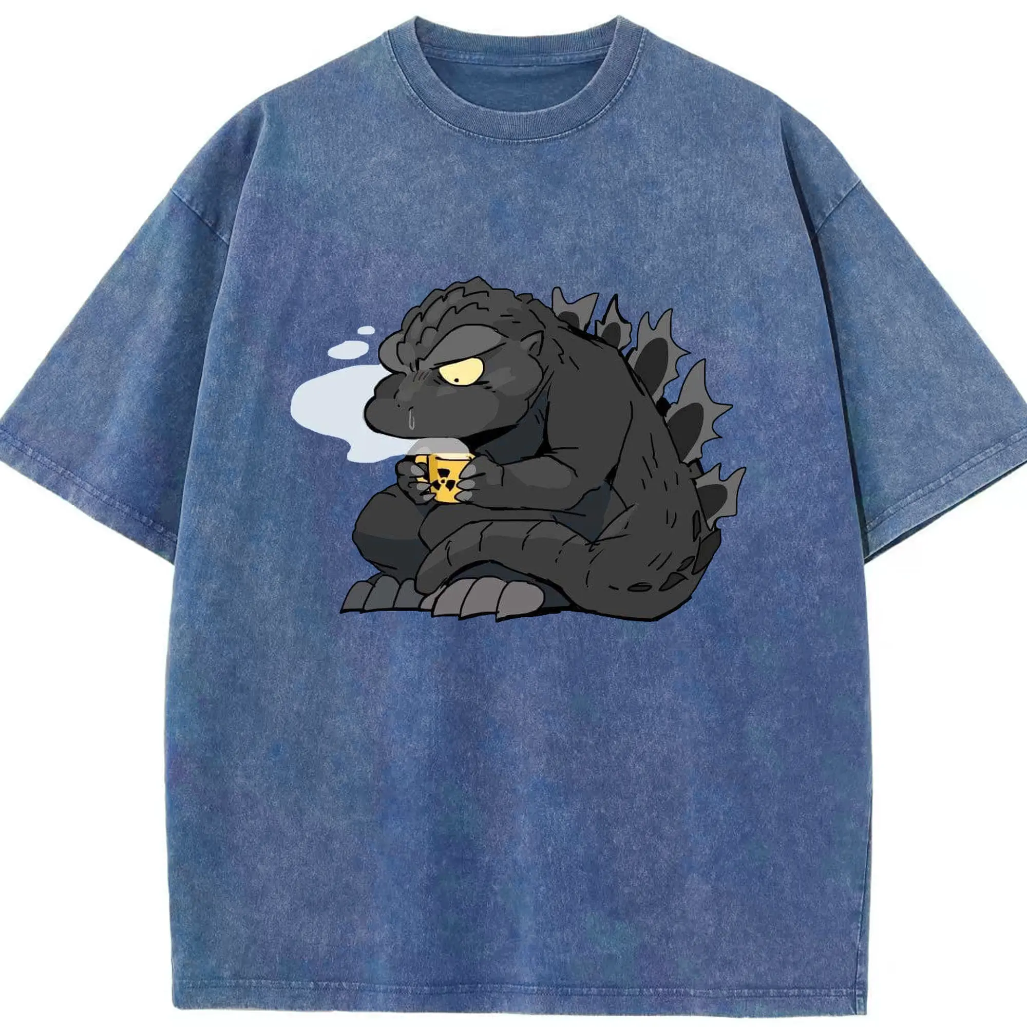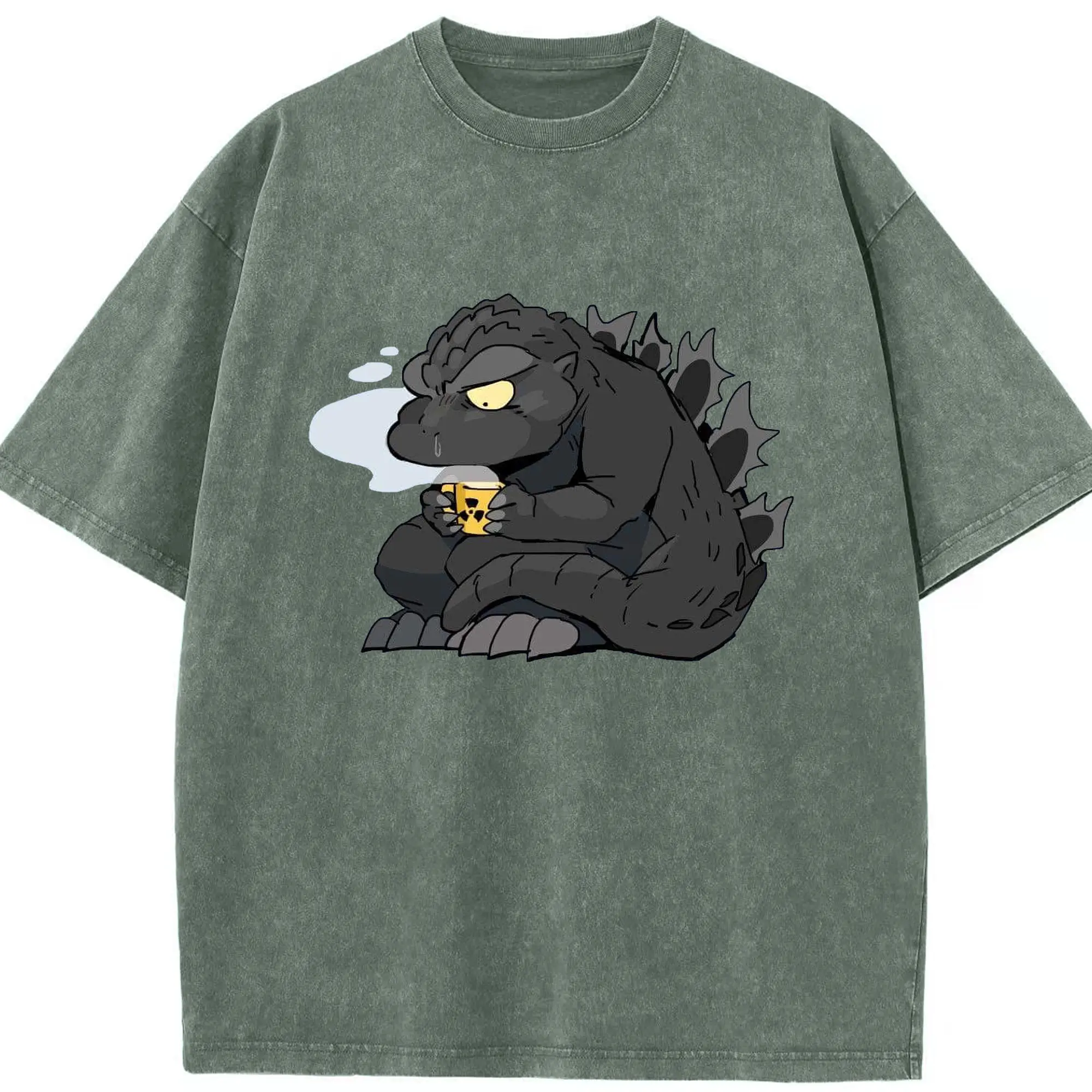 ゴジラの食事タイム - 綿100% ヴィンテージ風 半袖Tシャツ ・ フロントプリント ・ 柔らか肌触り ・ 通気性 快適 ・ スポーツ カジュアル 外出用
