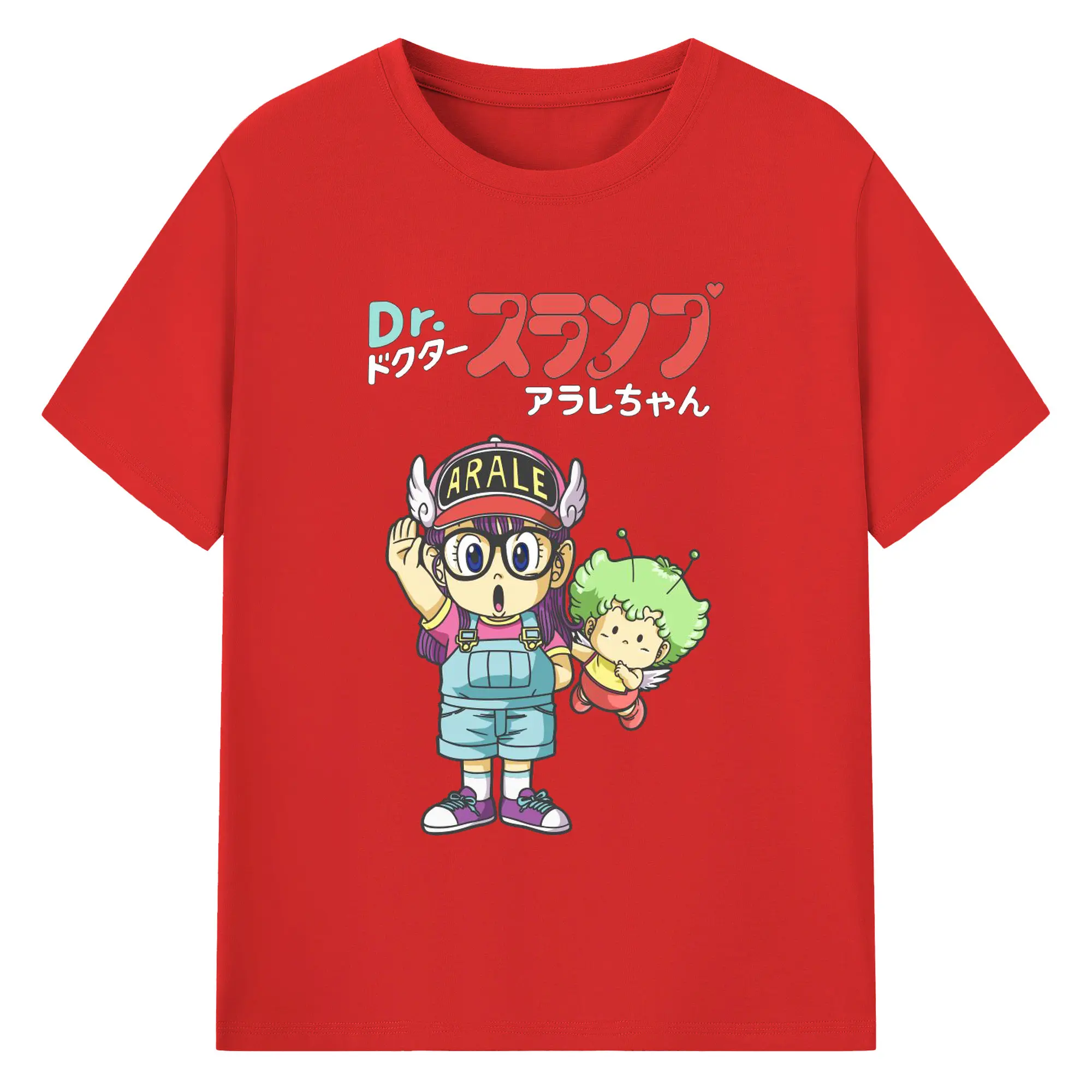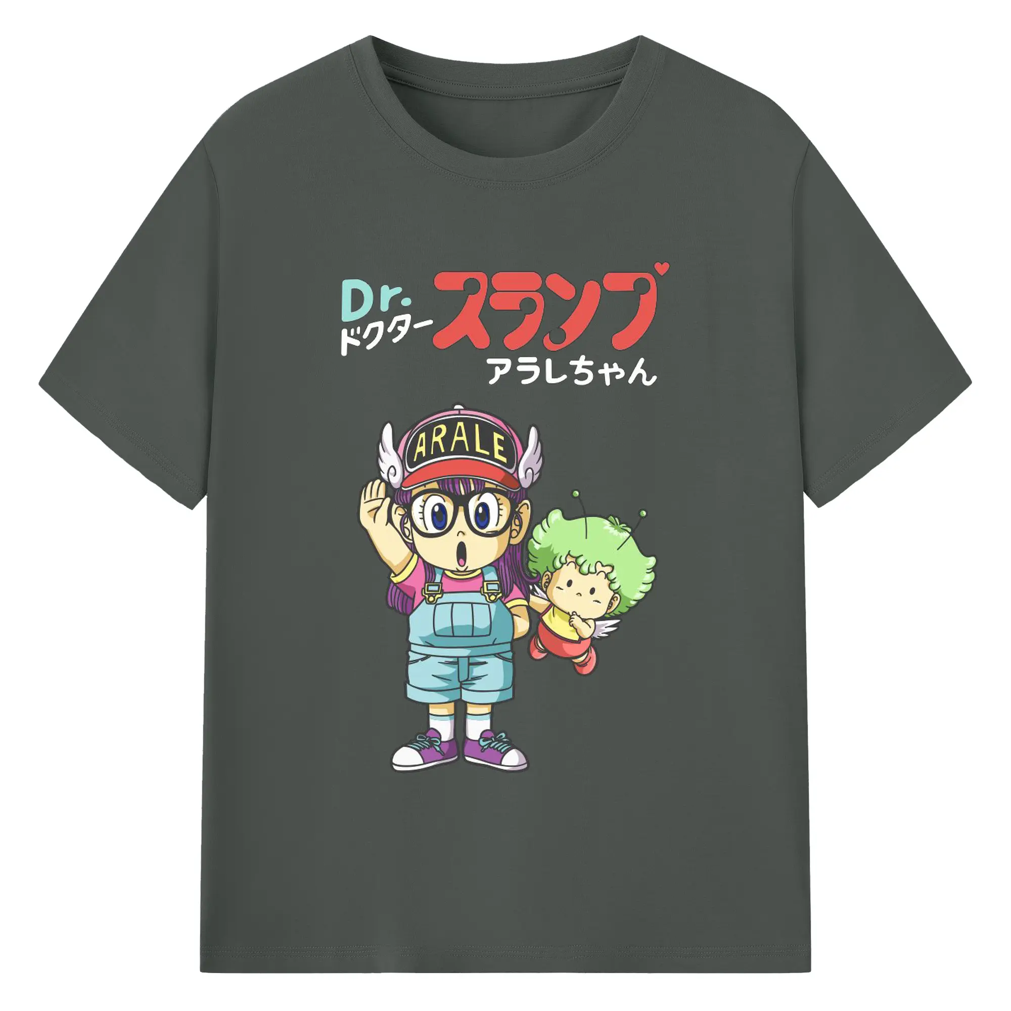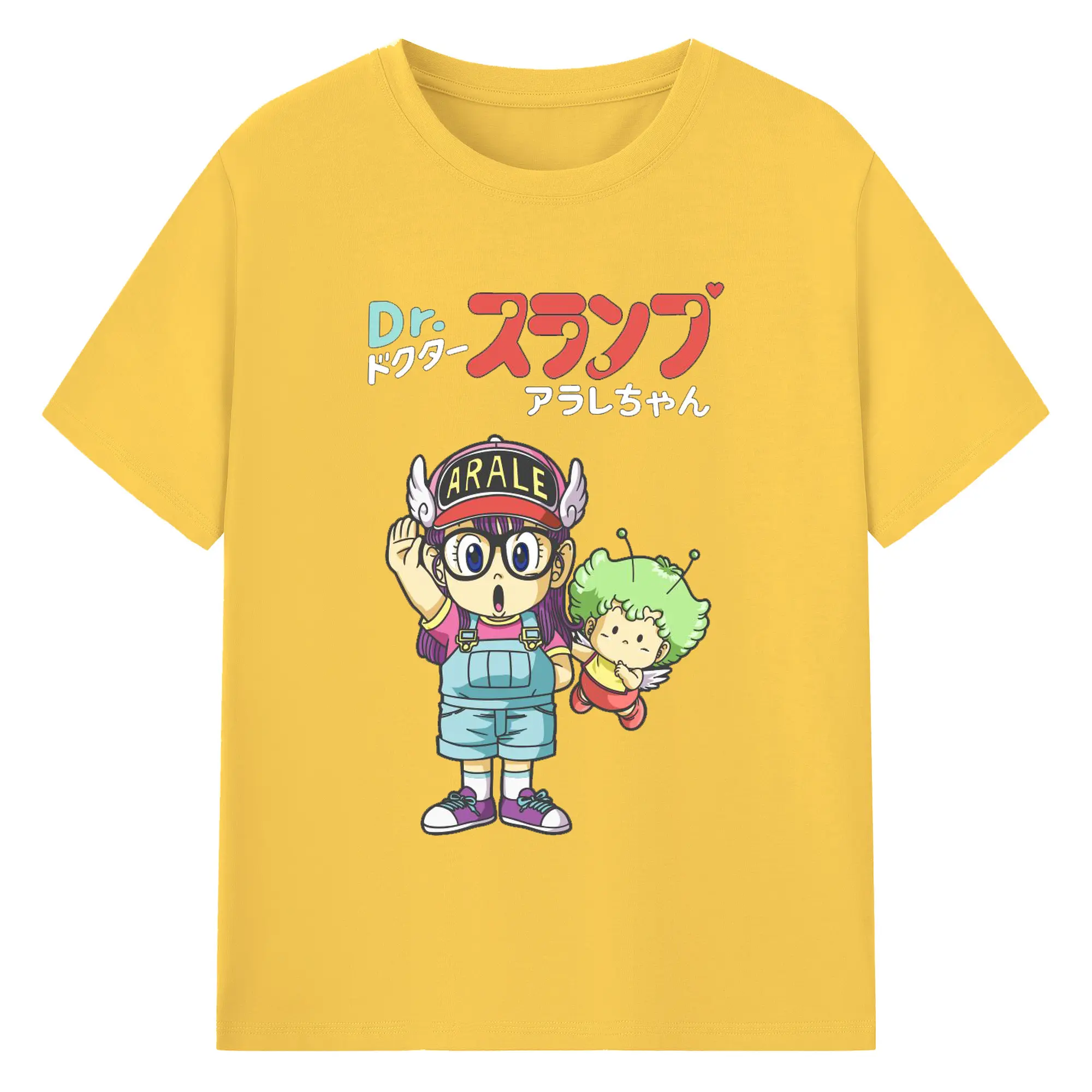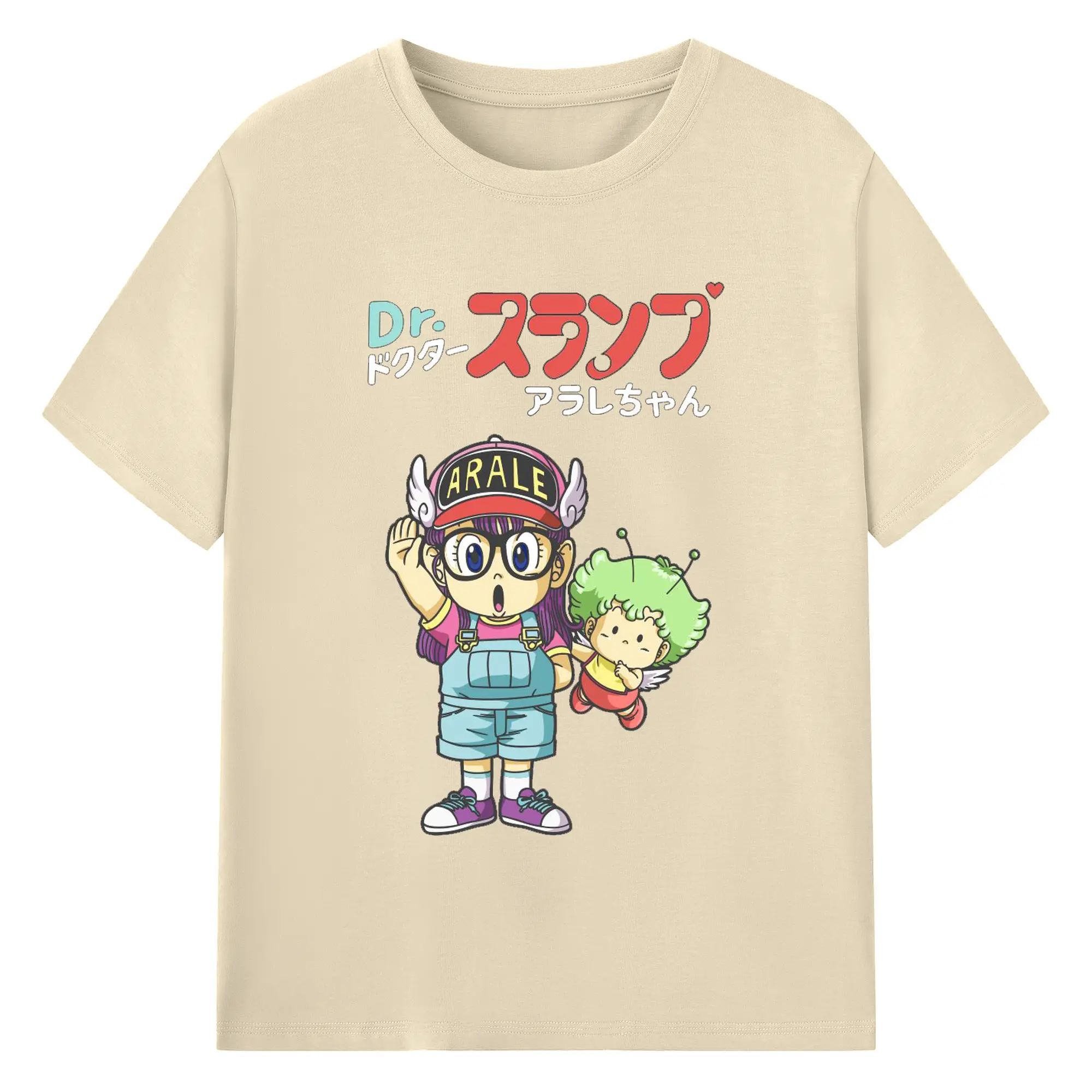 Dr.スランプ アラレちゃん Gatchan マンガ風 - 綿100% ヴィンテージ風 半袖Tシャツ ・ フロントプリント ・ 柔らか肌触り ・ 通気性 快適 ・ スポーツ カジュアル 外出用