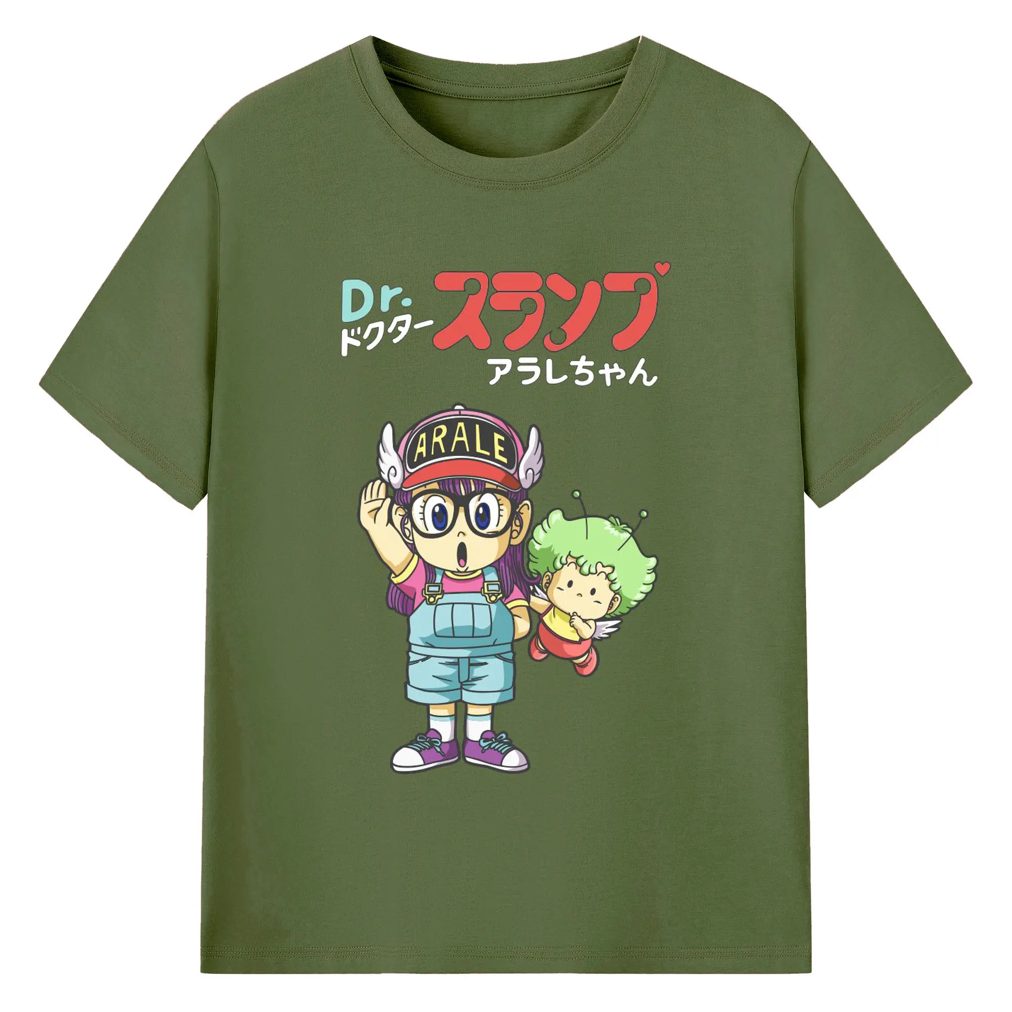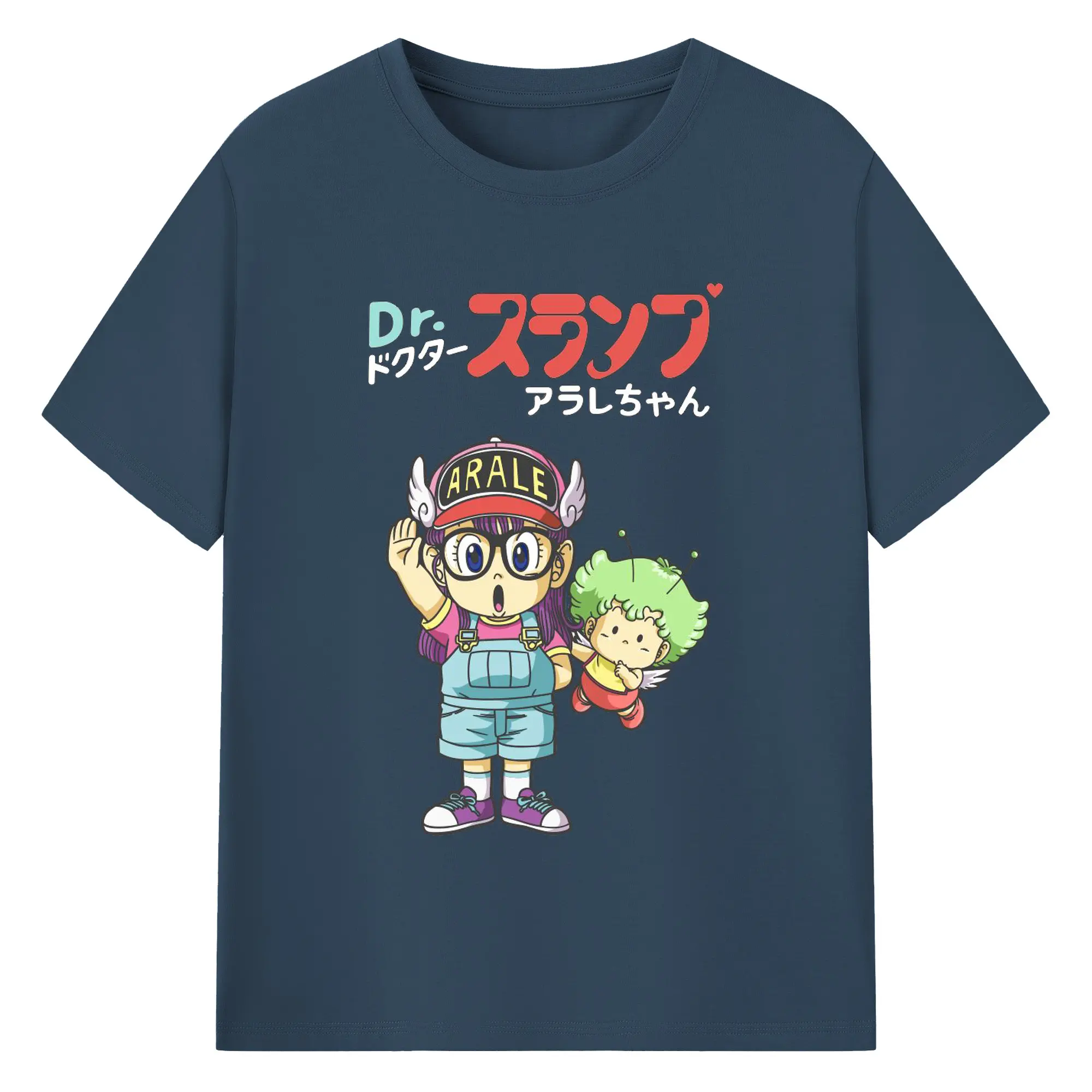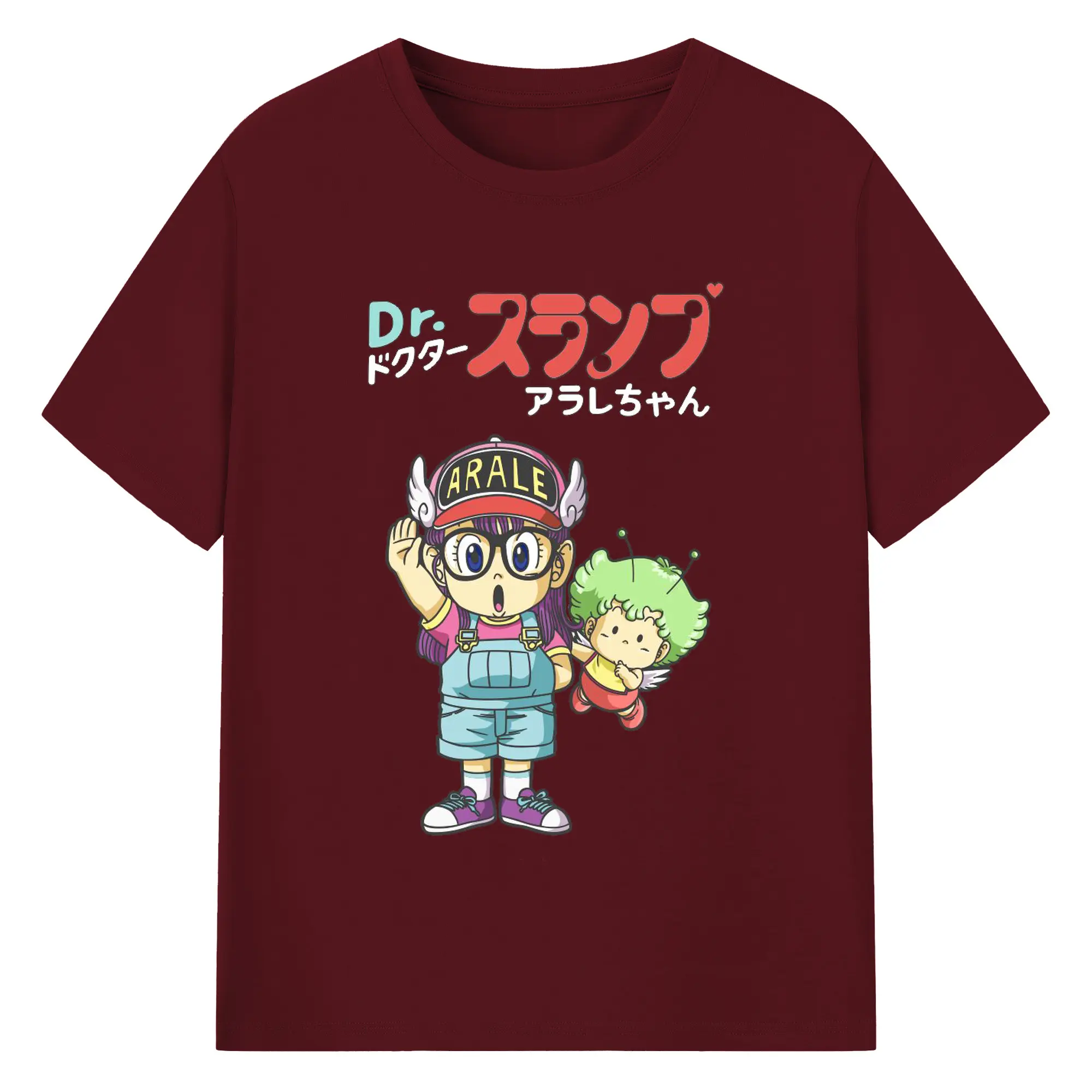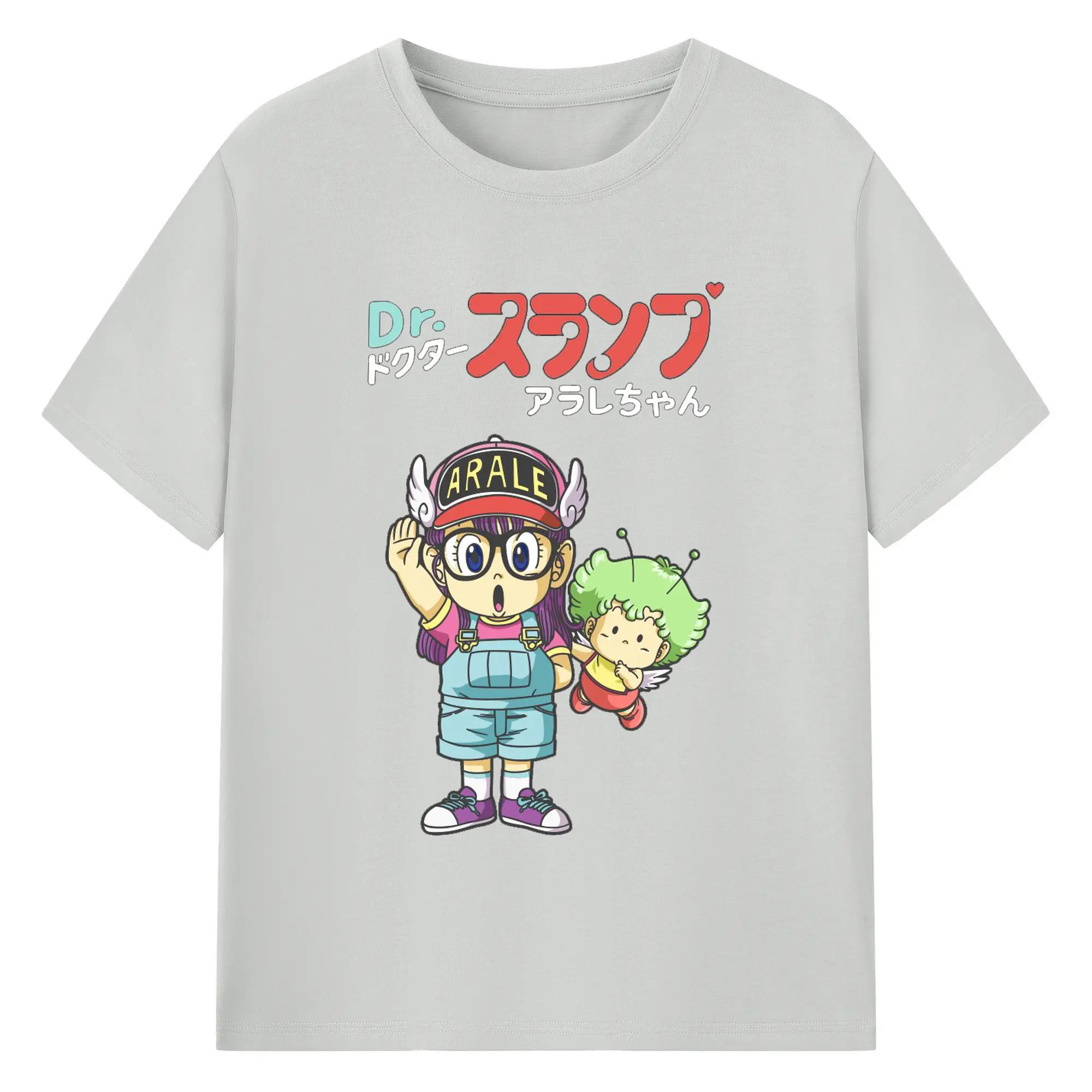 Dr.スランプ アラレちゃん Gatchan マンガ風 - 綿100% ヴィンテージ風 半袖Tシャツ ・ フロントプリント ・ 柔らか肌触り ・ 通気性 快適 ・ スポーツ カジュアル 外出用