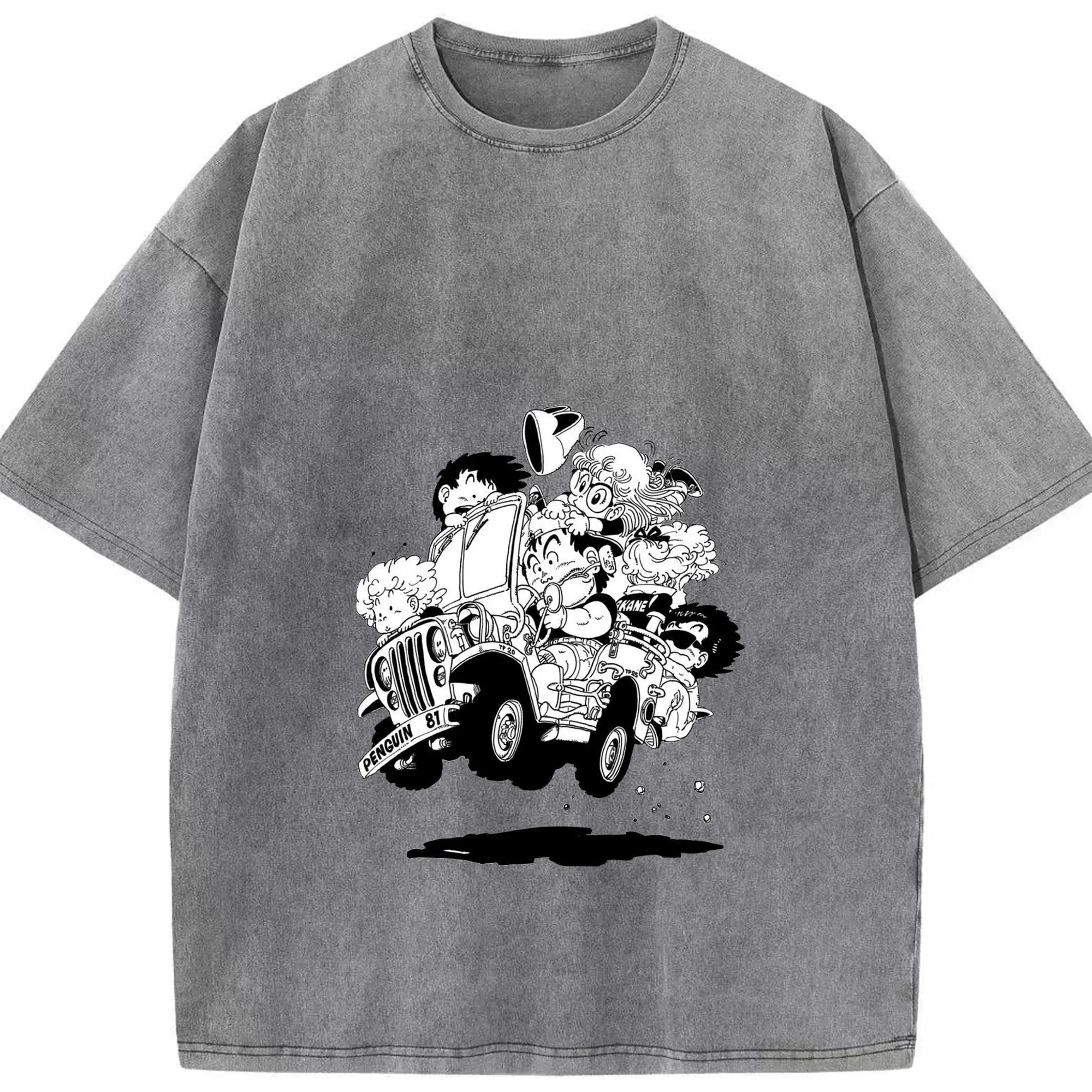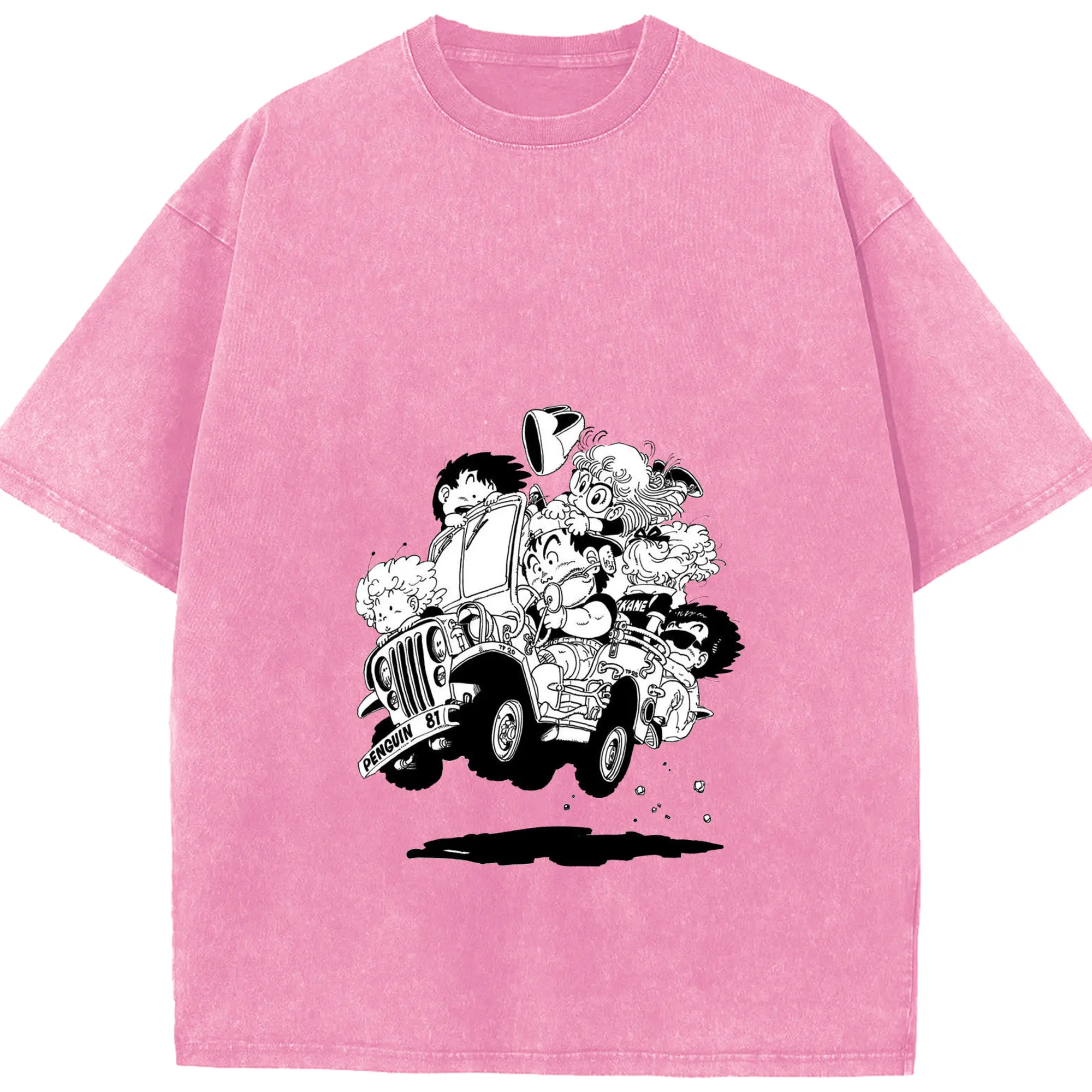 Dr.スランプ アラレちゃん モノクロ風 - 綿100% 半袖Tシャツ ・ フロントプリント ・ 快適 通気性 ・ 日常使い 散歩 スポーツ用
