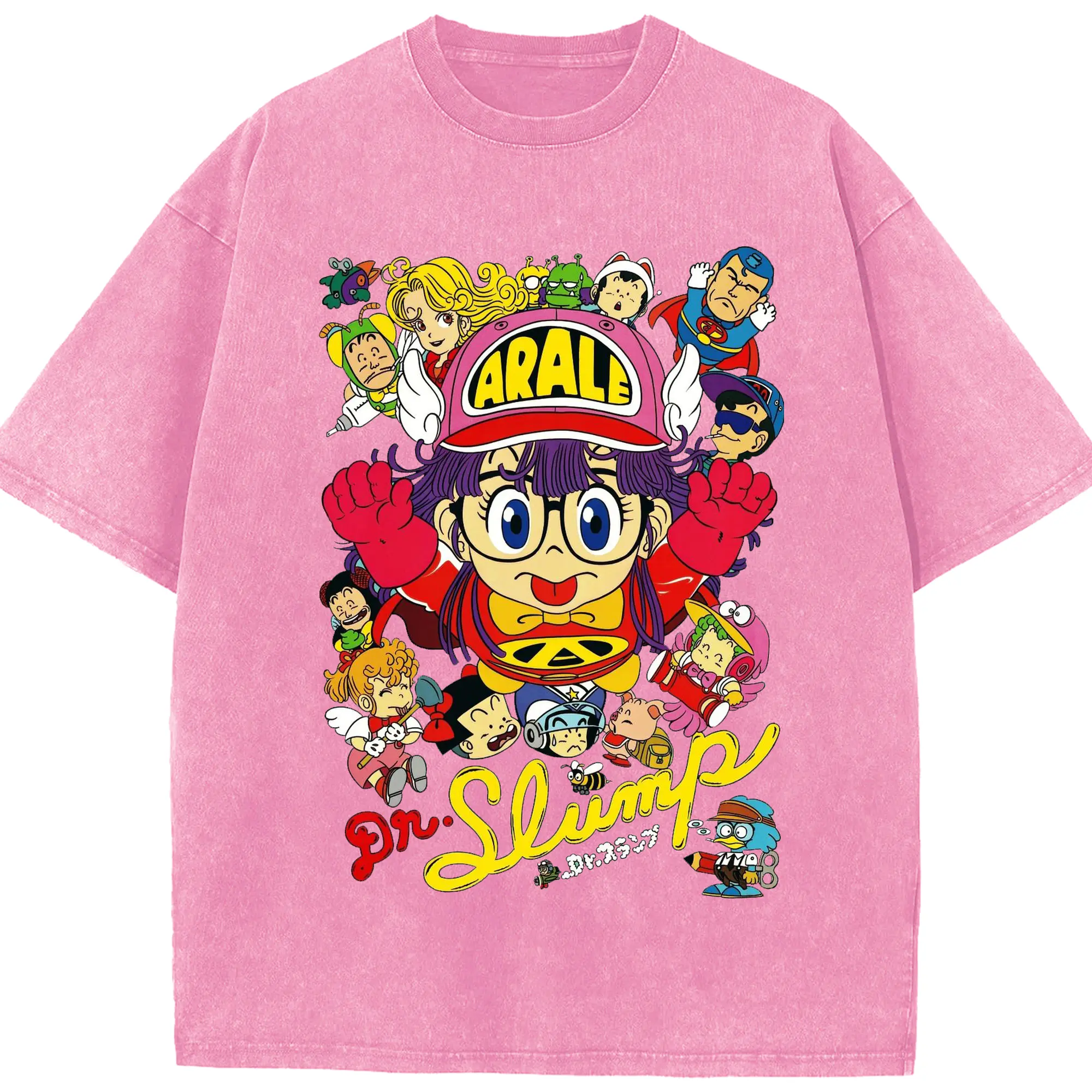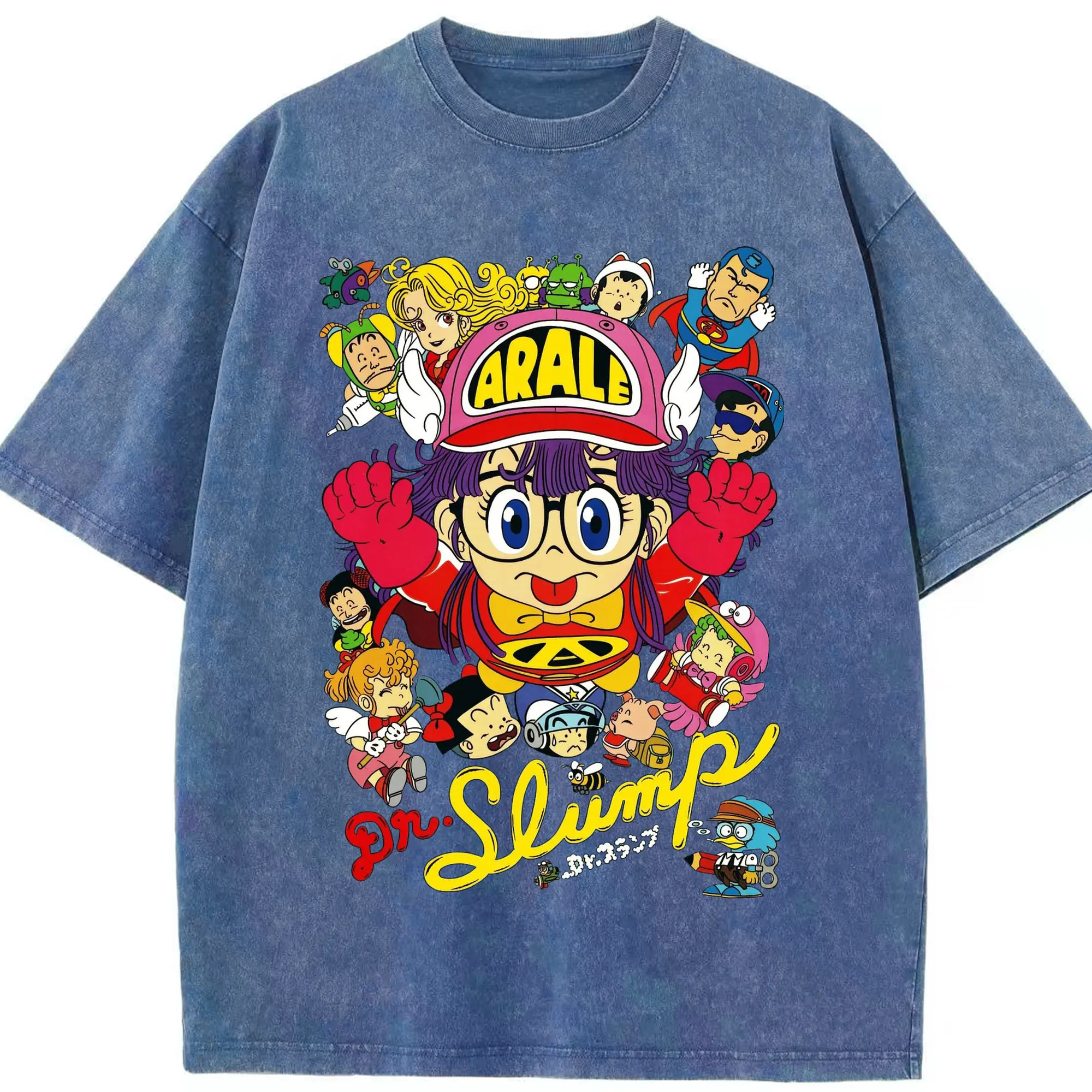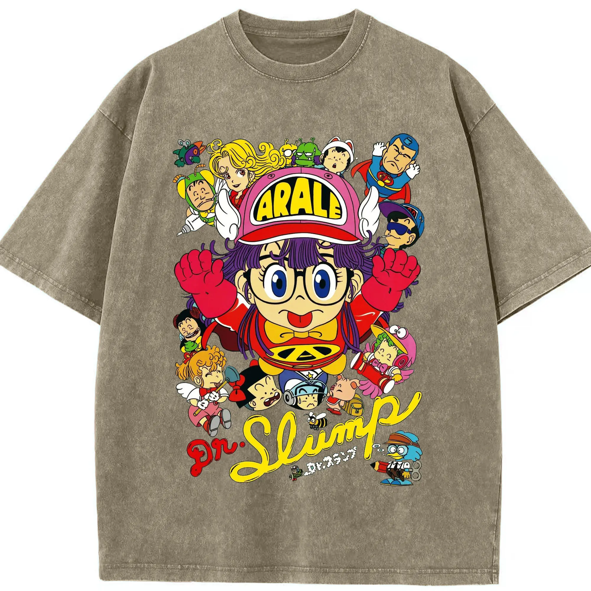 Dr.スランプ アラレちゃん 鳥山明 マンガ風 - 綿100% ヴィンテージ風 半袖Tシャツ ・ フロントプリント ・ 柔らか肌触り ・ 通気性 快適 ・ スポーツ カジュアル 外出用