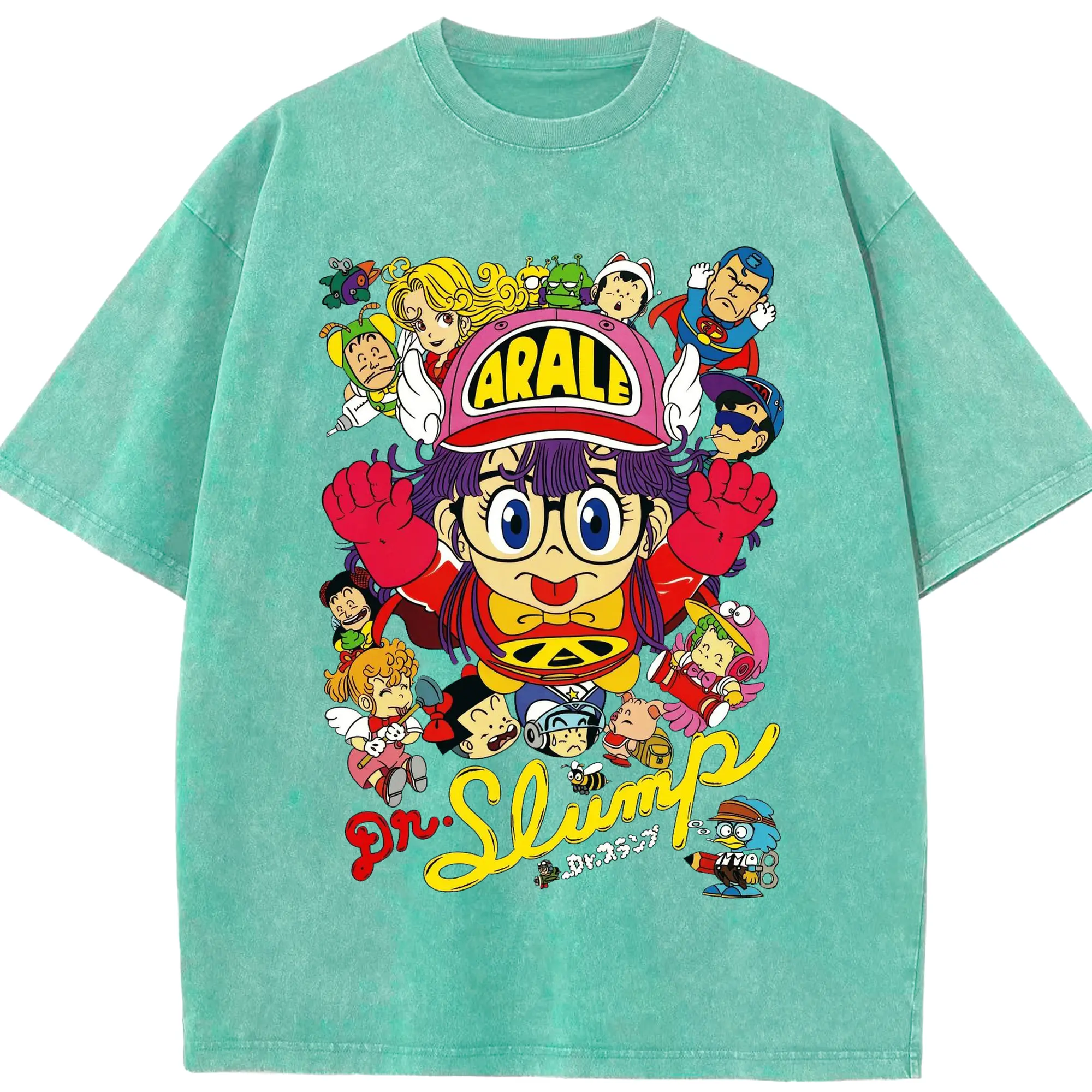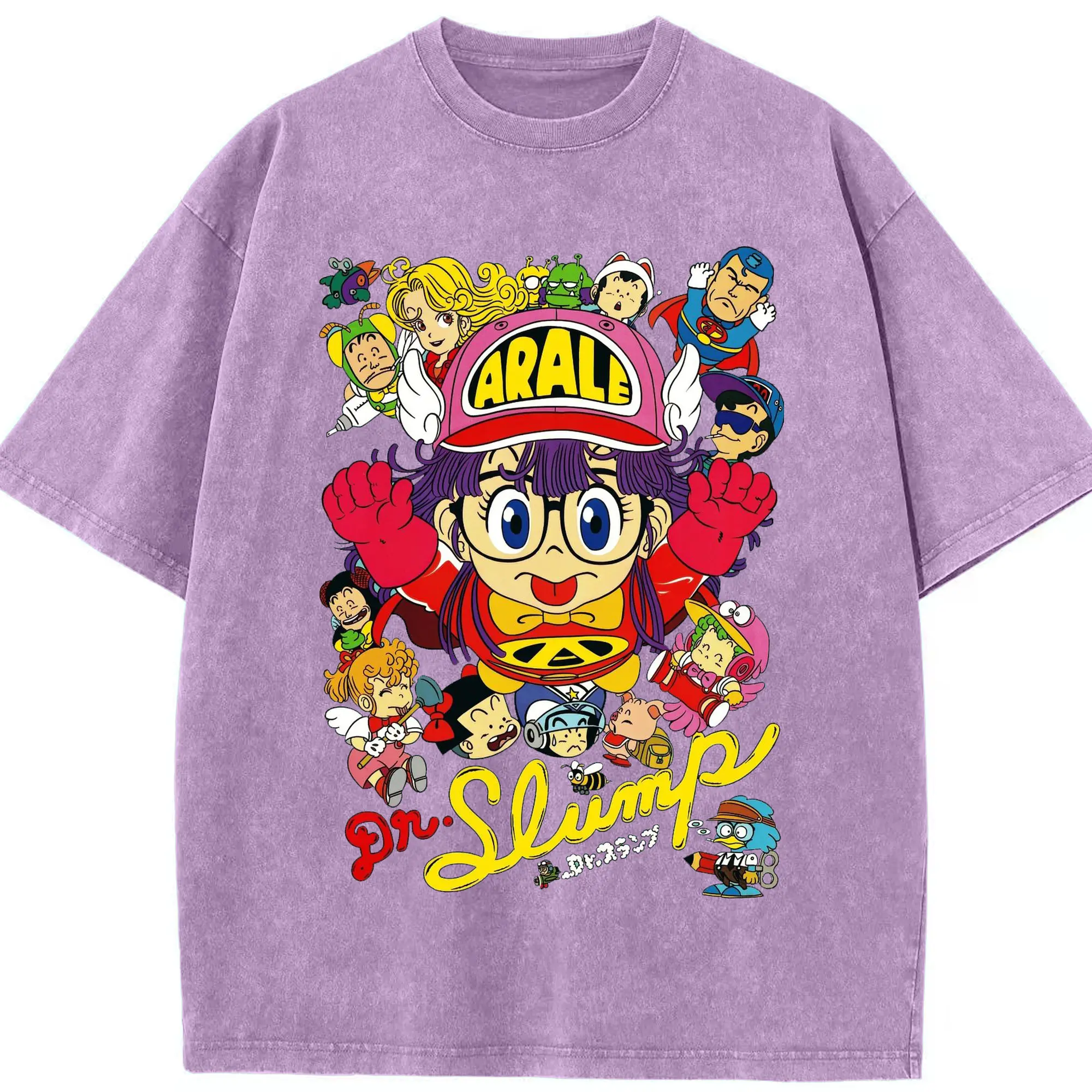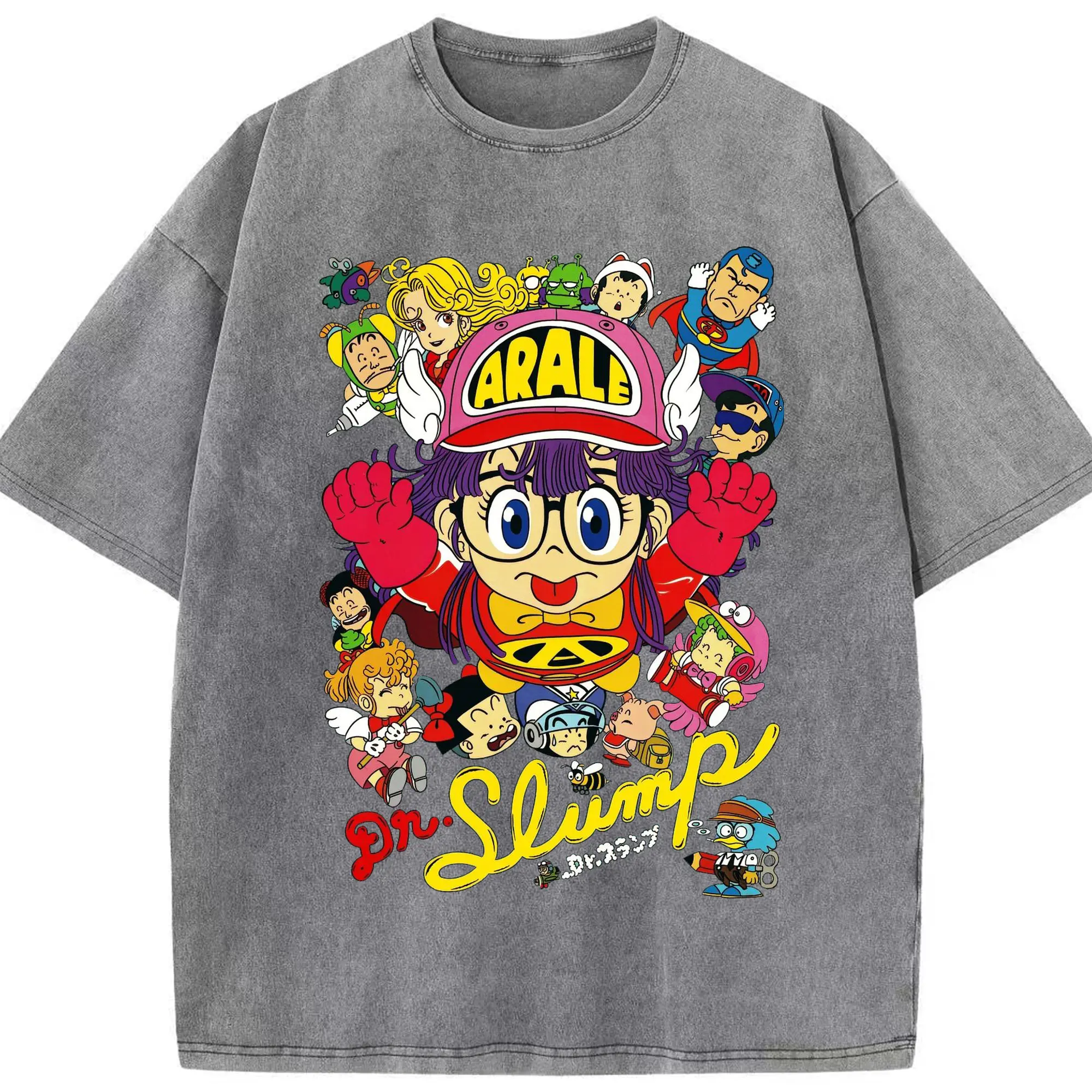 Dr.スランプ アラレちゃん 鳥山明 マンガ風 - 綿100% ヴィンテージ風 半袖Tシャツ ・ フロントプリント ・ 柔らか肌触り ・ 通気性 快適 ・ スポーツ カジュアル 外出用