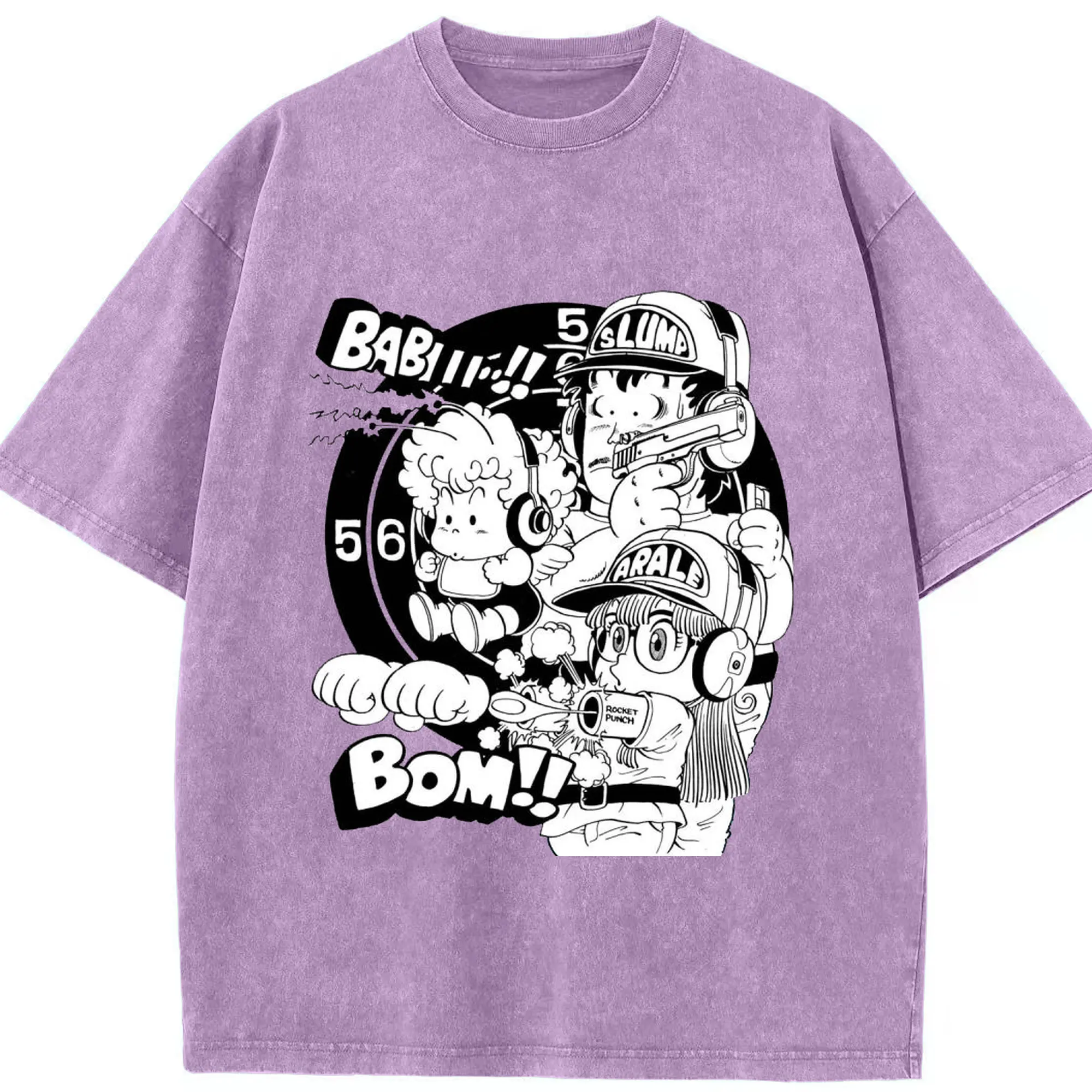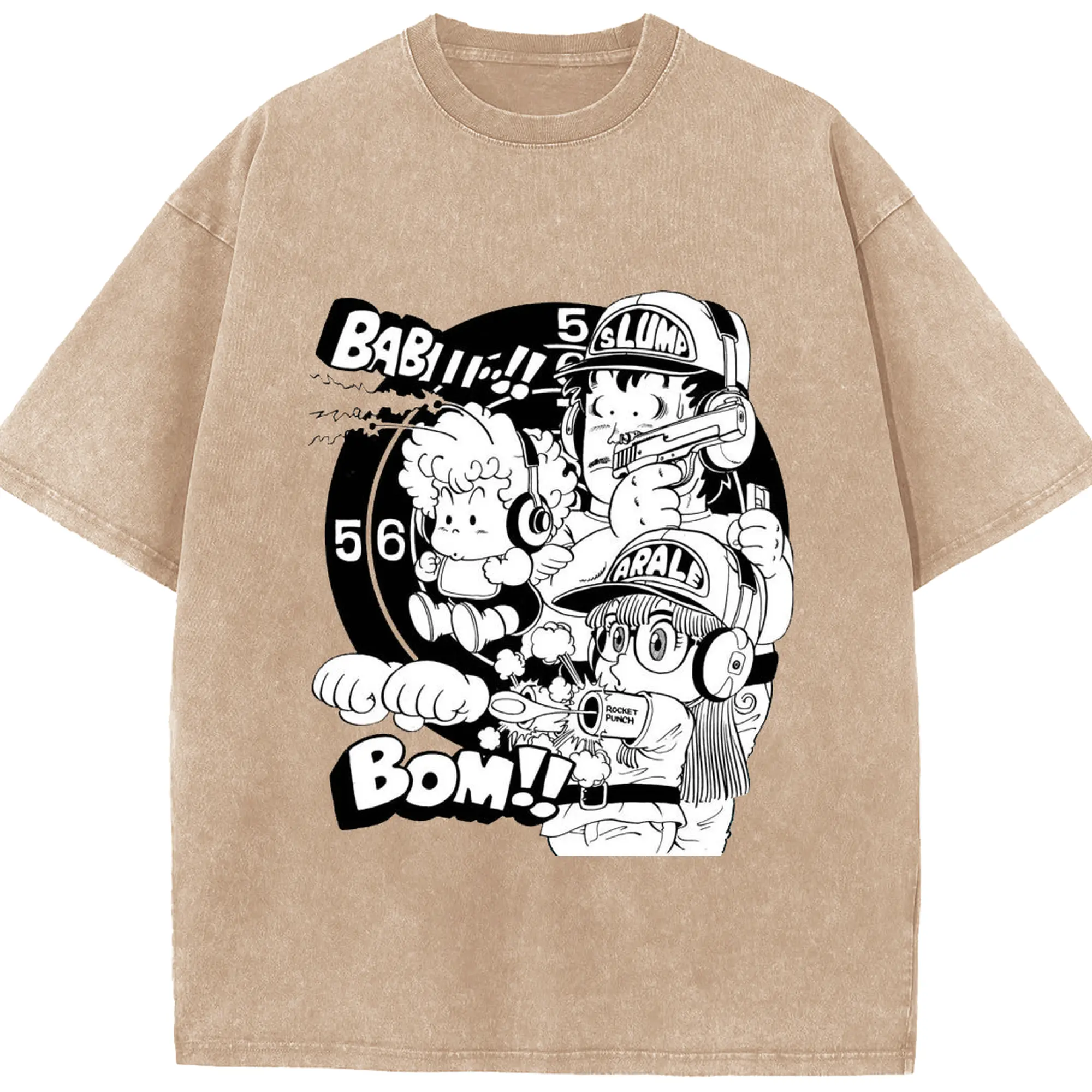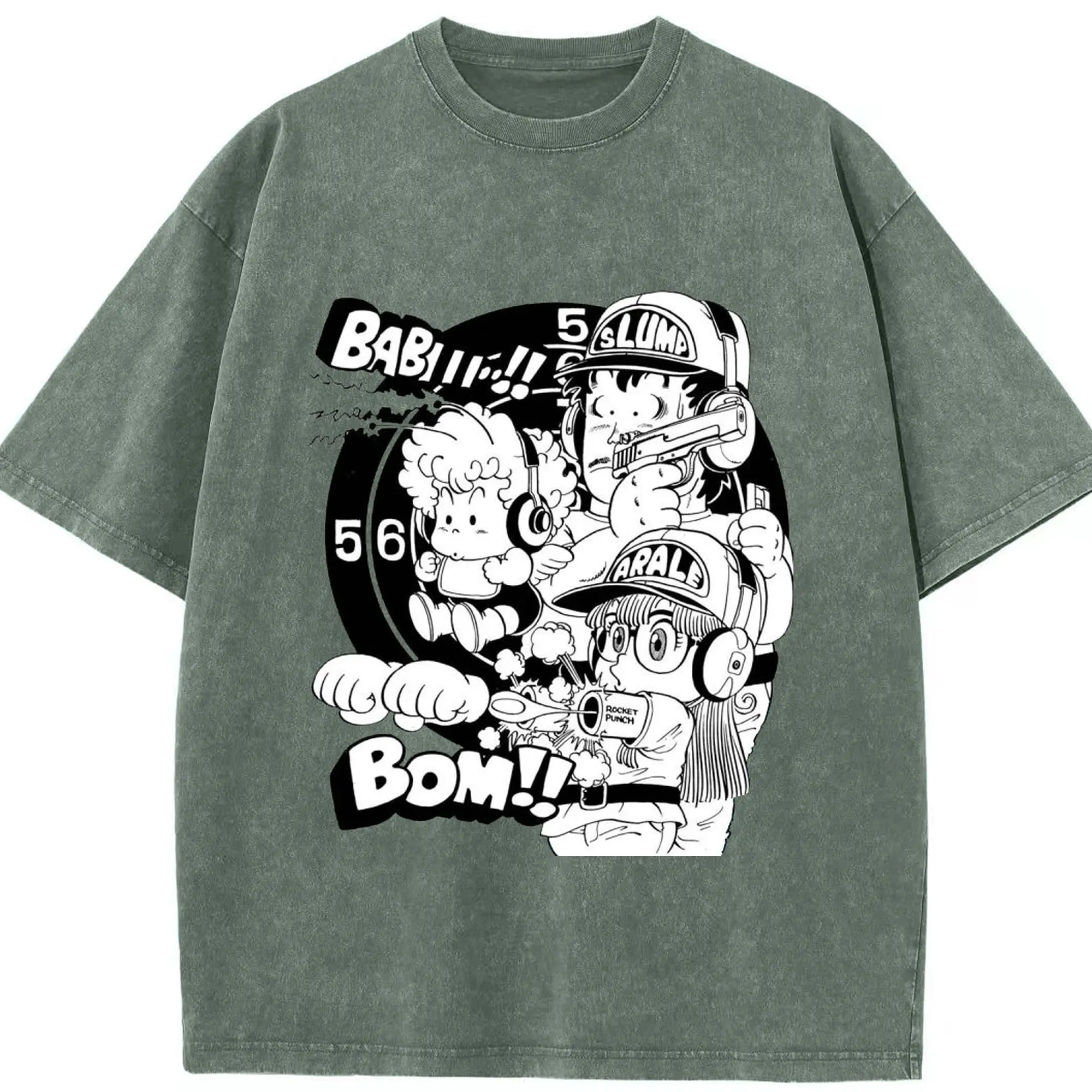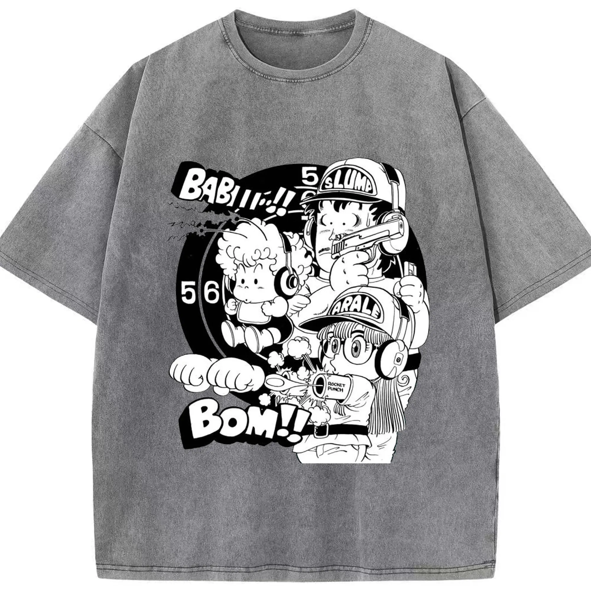 Dr.スランプ アラレちゃん モノクロ風 - 綿100% 半袖Tシャツ ・ フロントプリント ・ 快適 通気性 ・ 日常使い 散歩 スポーツ用