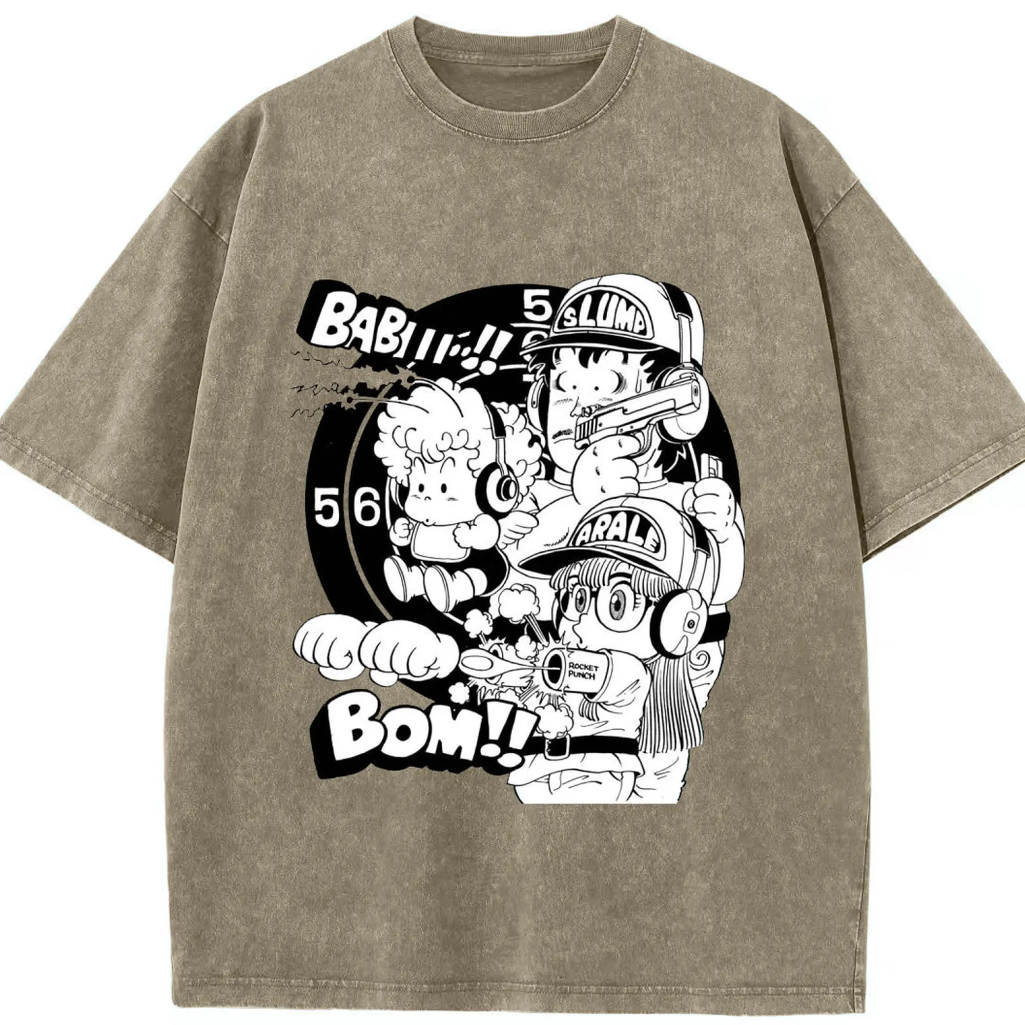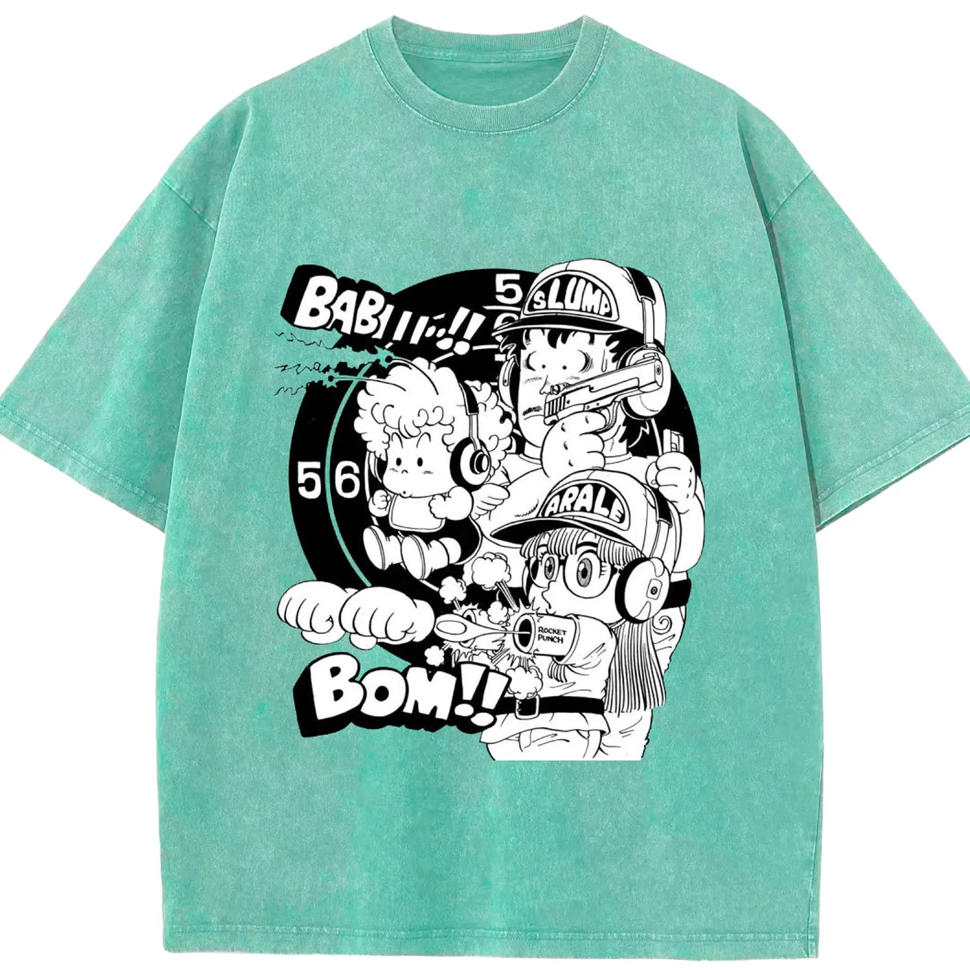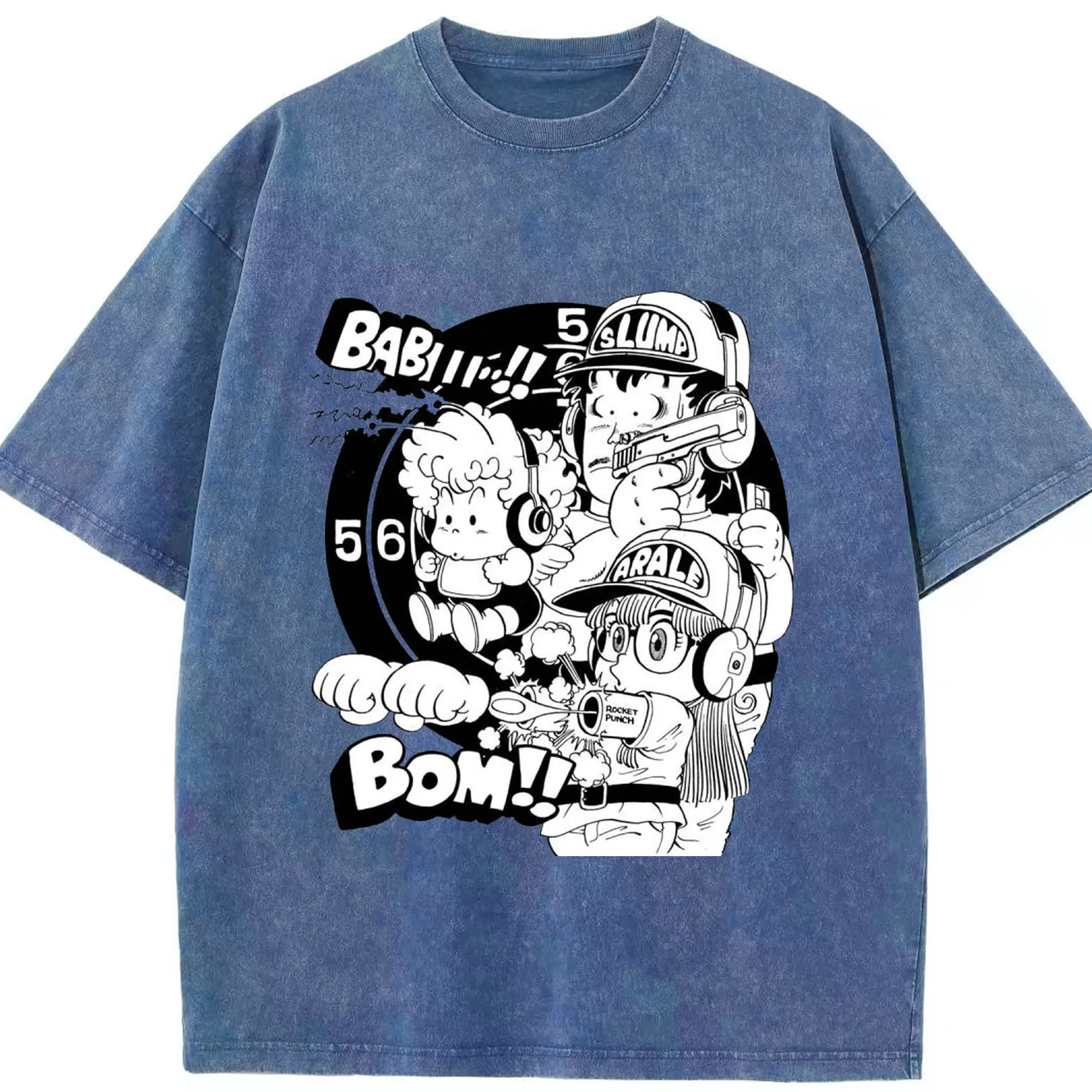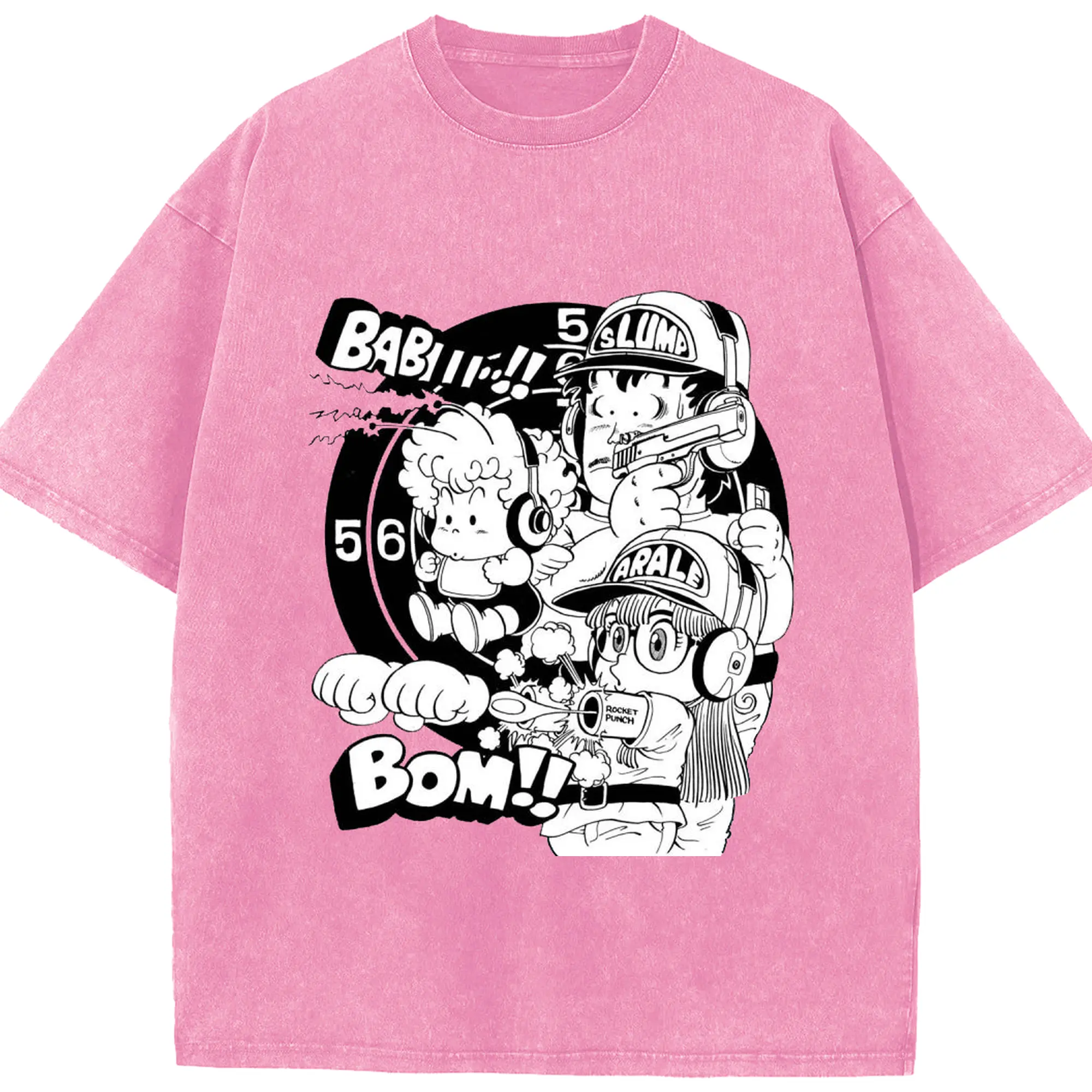 Dr.スランプ アラレちゃん モノクロ風 - 綿100% 半袖Tシャツ ・ フロントプリント ・ 快適 通気性 ・ 日常使い 散歩 スポーツ用
