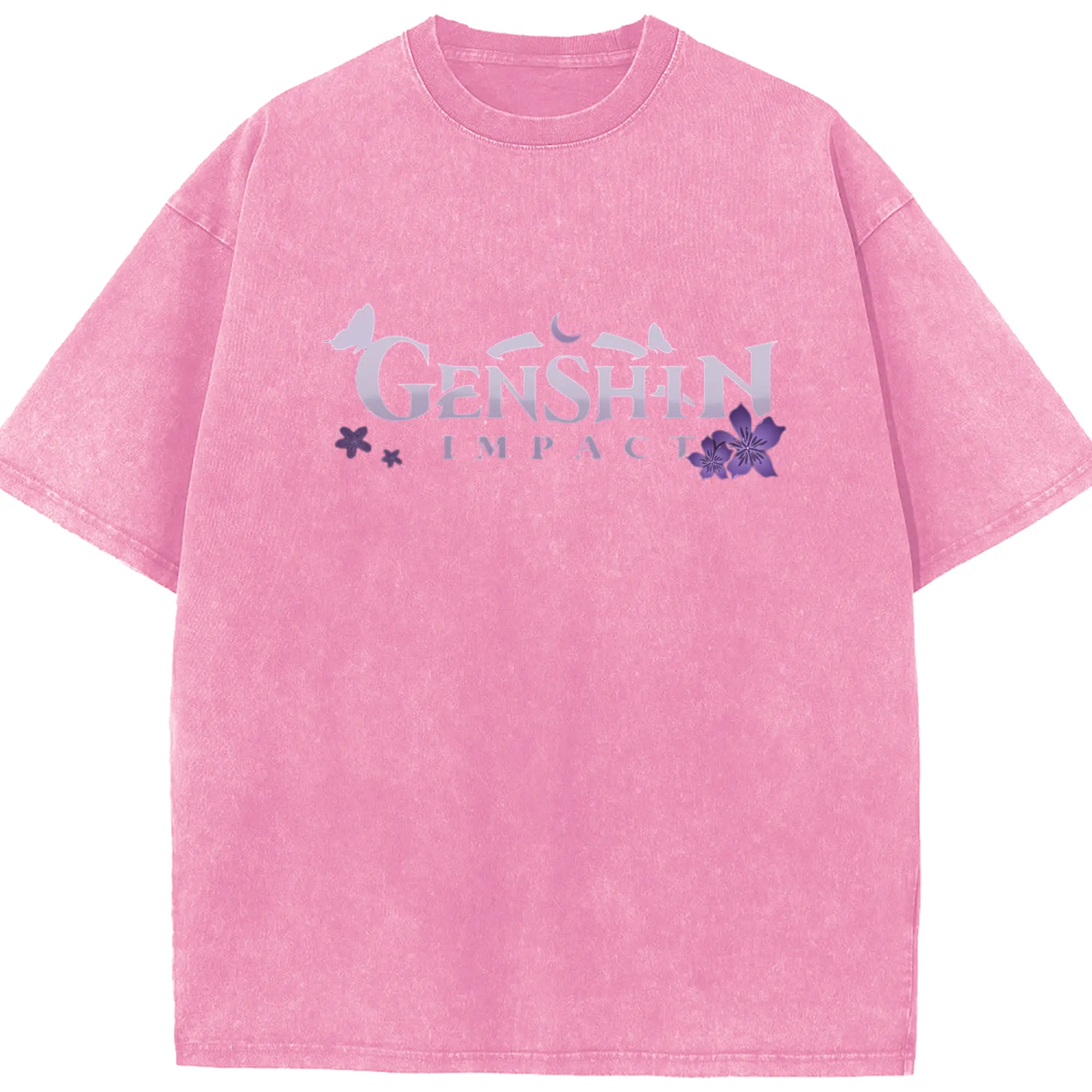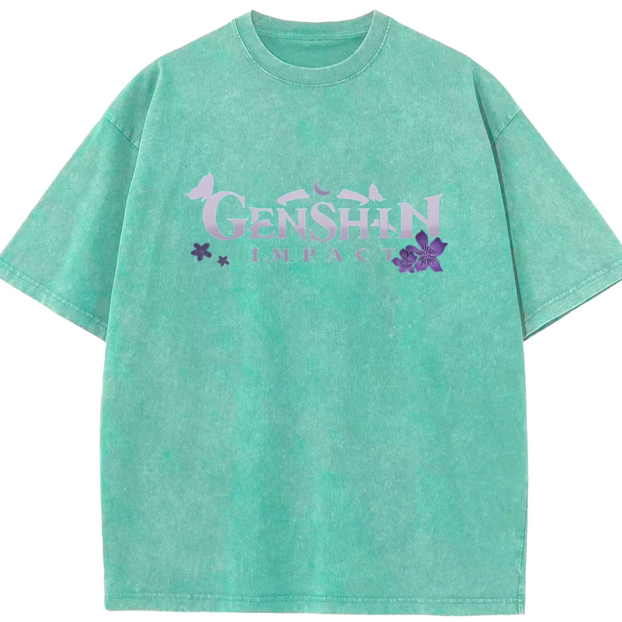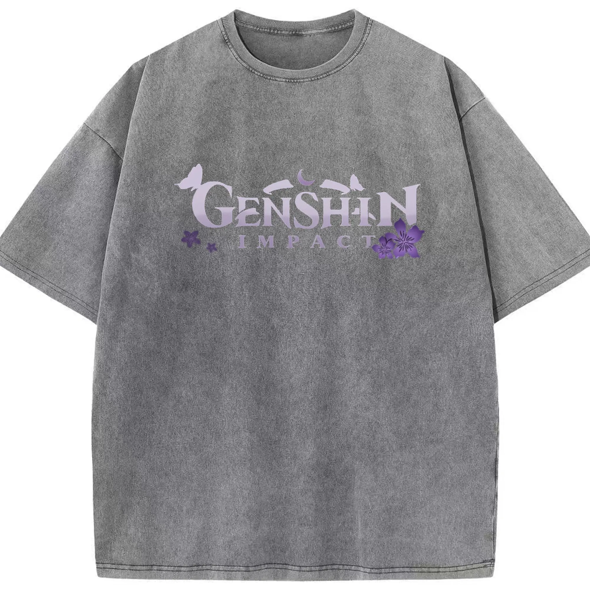 Genshin シンプルロゴ - 綿100% ヴィンテージ風 半袖Tシャツ ・ フロントプリント ・ 柔らか肌触り ・ 通気性 快適 ・ スポーツ カジュアル 外出用