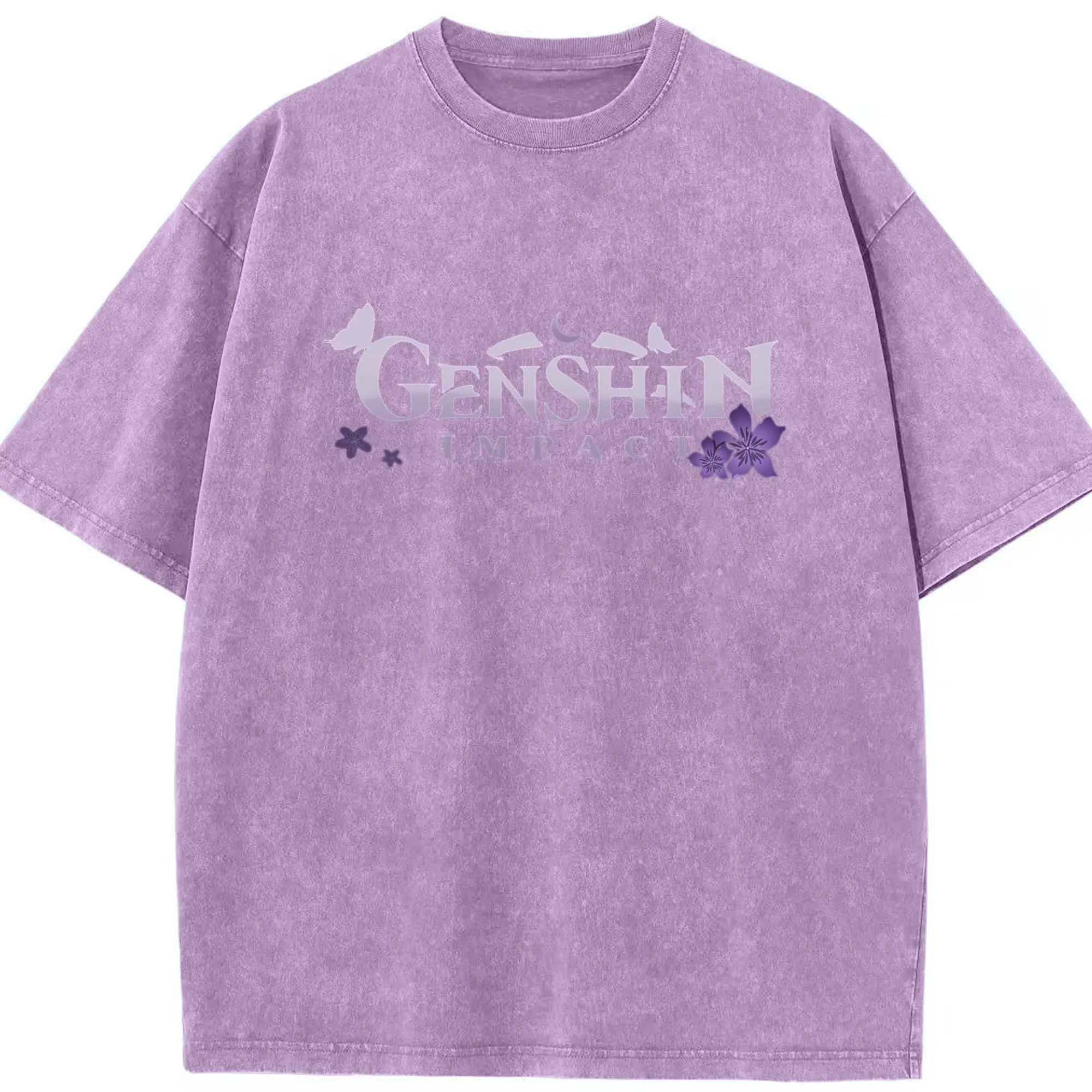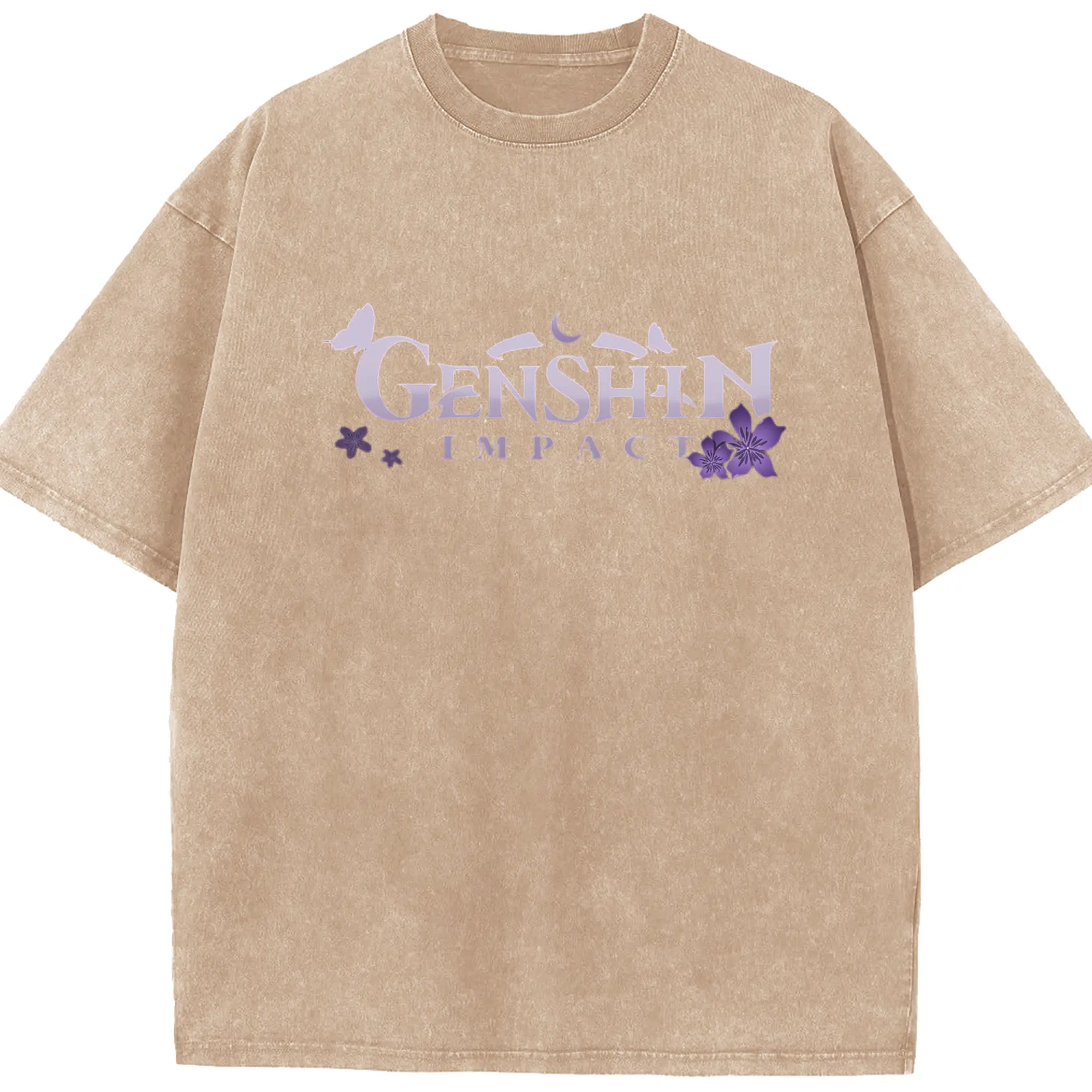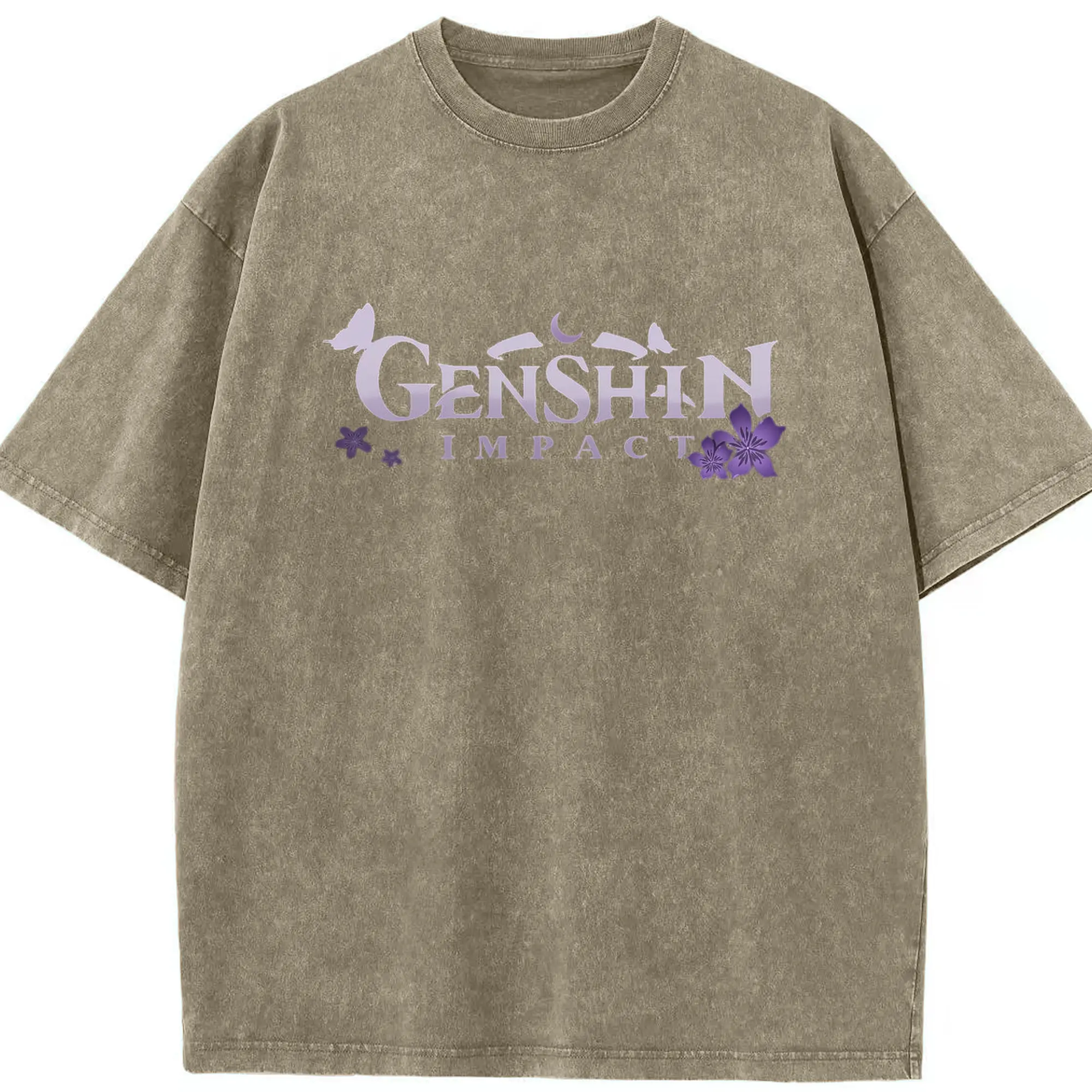 Genshin シンプルロゴ - 綿100% ヴィンテージ風 半袖Tシャツ ・ フロントプリント ・ 柔らか肌触り ・ 通気性 快適 ・ スポーツ カジュアル 外出用
