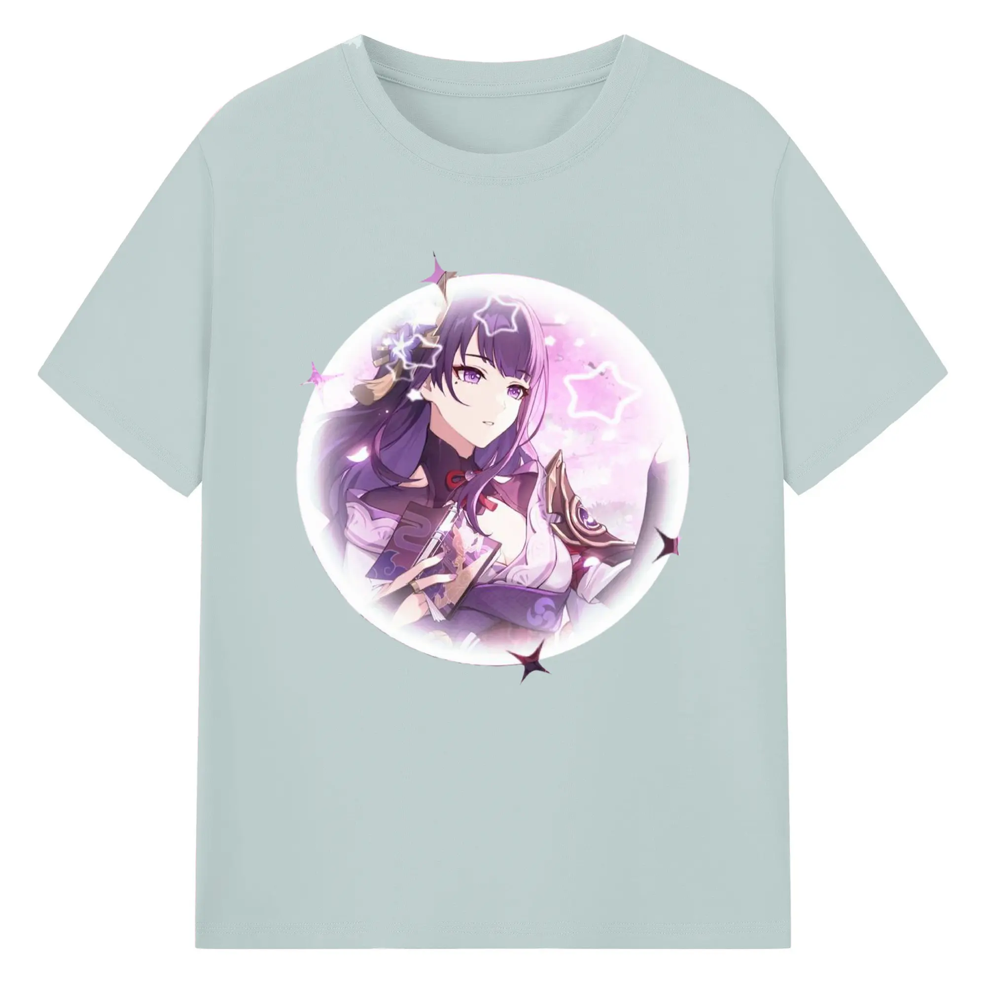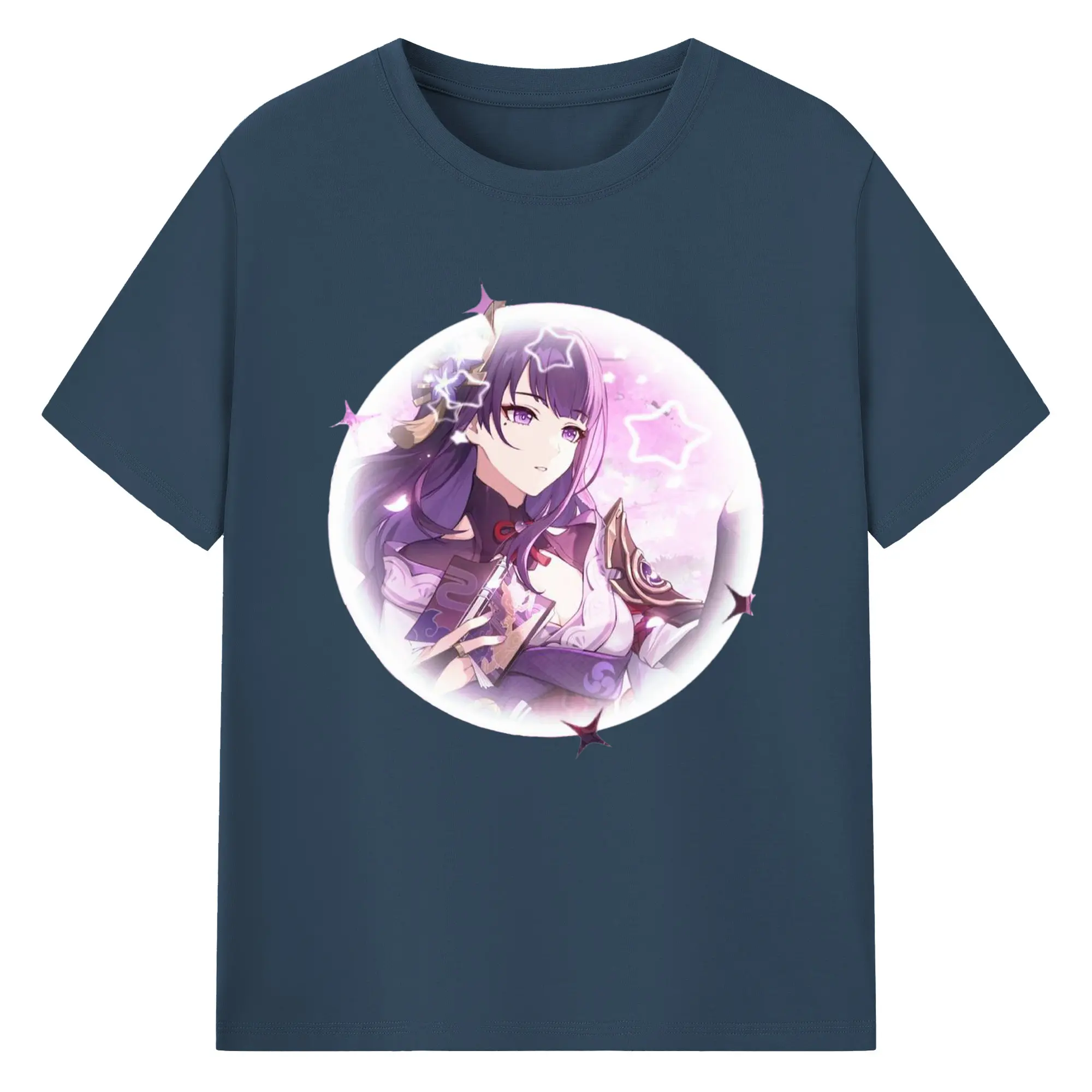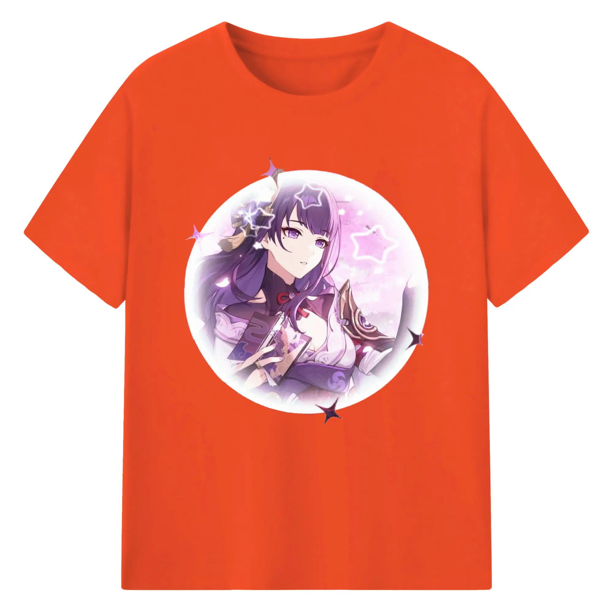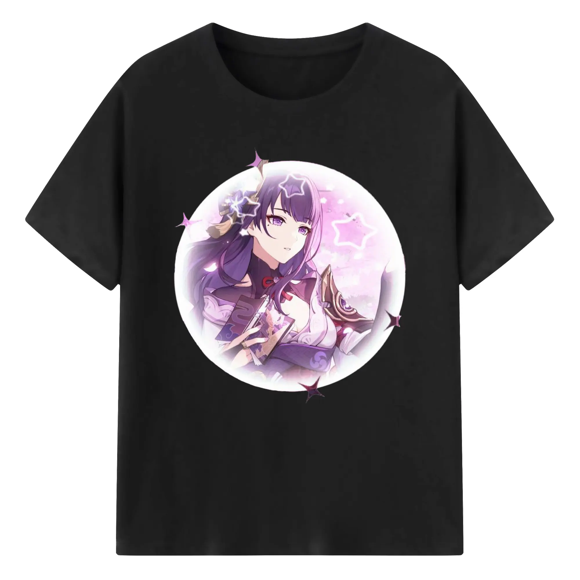 Genshinイナズマ 雷電将軍 - 綿100% 半袖Tシャツ ・ フロントプリント ・ 快適 通気性 ・ 日常使い 散歩 スポーツ用